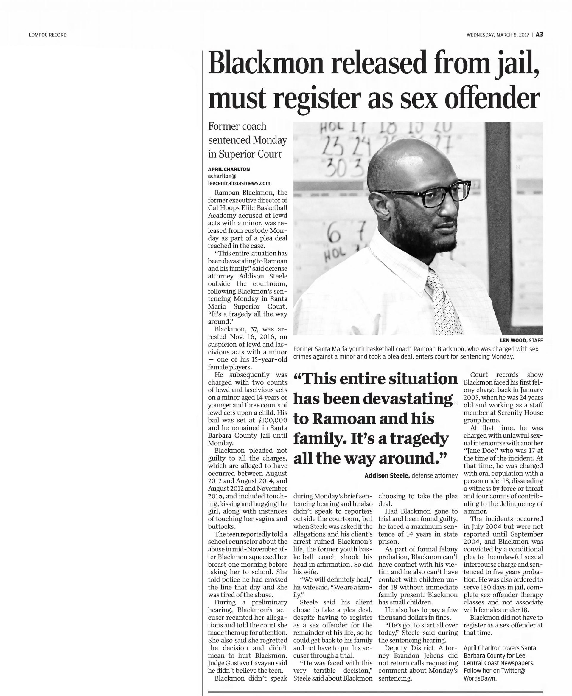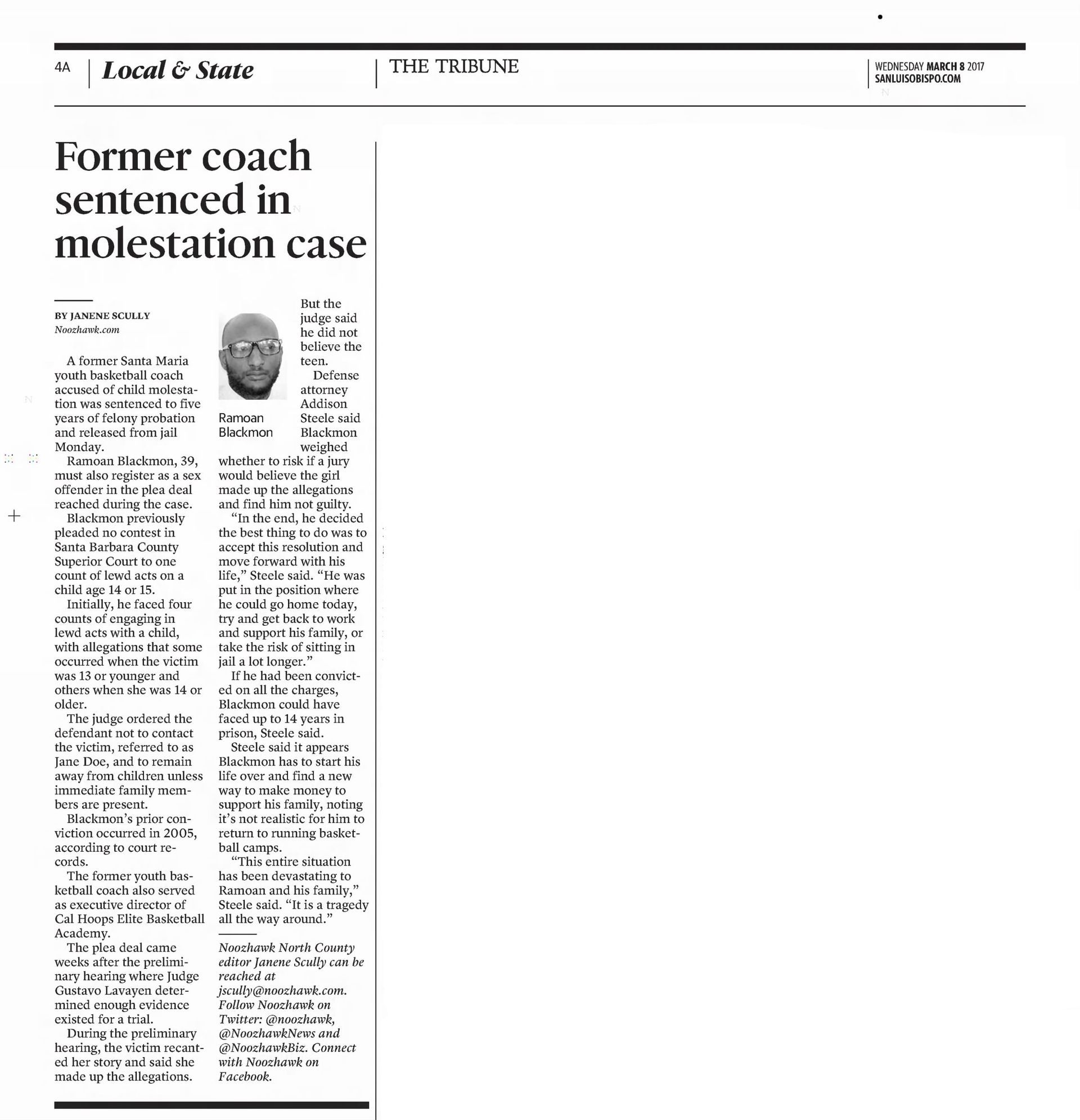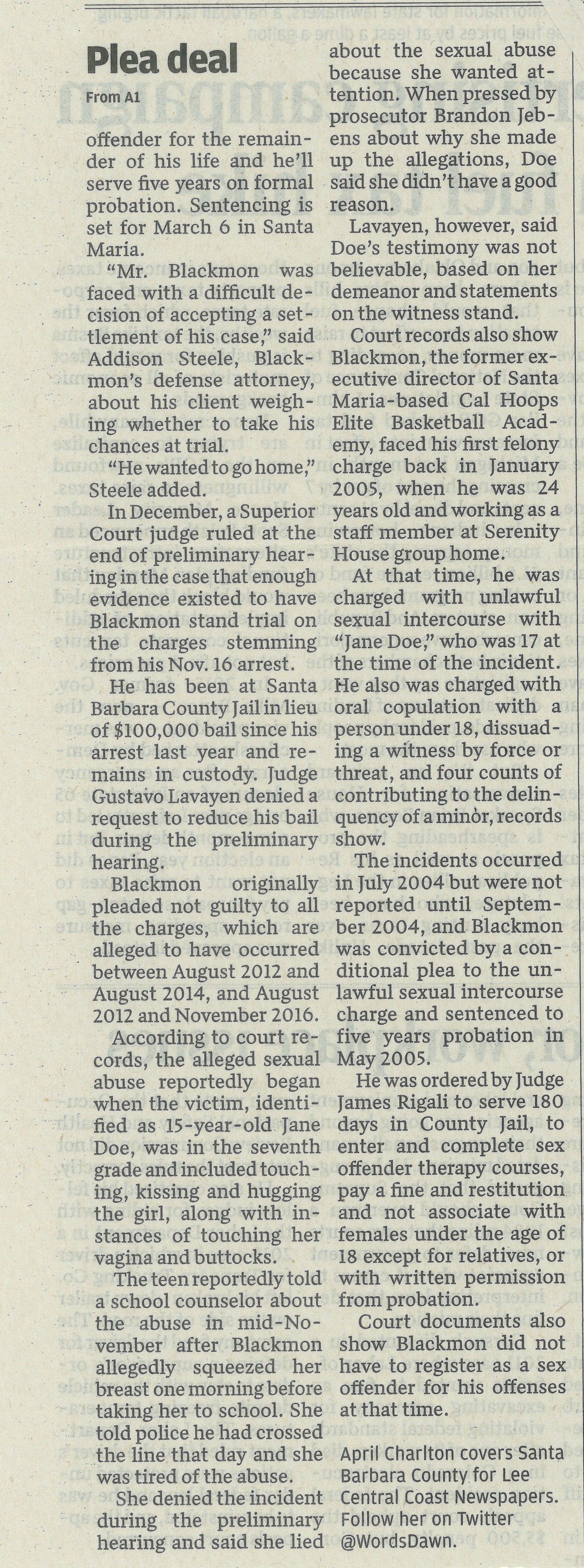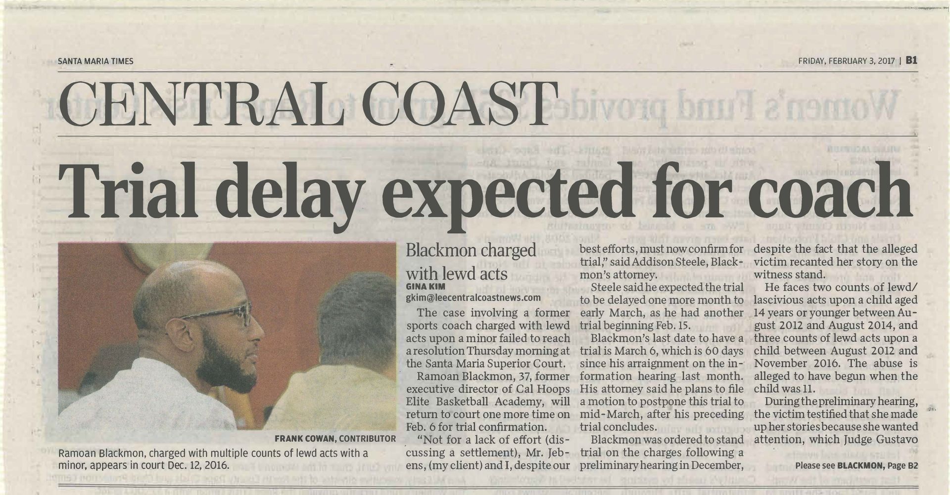 What Were Noozhawk's 16 Most-Read Stories of 2016?: Carnage, killings, wildfires and court cases captivated readers during a tumultuous year | December 30, 2016 | Noozhawk | Tom Bolton and Giana Magnoli Man Gets Seven Years in Domestic Violence Case | December 21, 2016 | Santa Barbara Independent | Kelsey Brugger Santa Maria youth basketball coach to face trial on molestation charges | December 20, 2016 | San Luis Obispo Tribune | Janene Scully Santa Maria Youth Basketball Coach Will Face Trial on Molestation Charges | December 19, 2016 | Noozhawk | Janene Scully Tentative April Trial Date Set for Goleta-Area Quadruple Murder Case: Nicolas Holzer has entered an insanity plea to charges he murdered his parents and two sons in August of 2014 | December 15, 2016 | Noozhawk | Giana Magnoli Han family murder suspect sent letter to DA after alleged crimes | December 6, 2016 | News Channel 12-3-11 | News Channel 3-12 Basketball coach charged with lewd acts pleads not guilty | December 5, 2016 | Santa Maria Times | Gina Kim Preliminary Hearing Date Delayed for Santa Barbara-Area Triple-Murder Suspect | November 15, 2016 | Noozhawk | Giana Magnoli Han Family Murder Suspect Appears Appears in Santa Barbara Court Tuesday | August 9, 2016 | News Channel 12-3-11 | News Channel 3-12 Hearing Delayed for Suspect in Han Family Triple Murder Case | August 9, 2016 | Noozhawk | Brooke Holland Former youth pastor charged with sex abuse sentenced to 8 years | July 6, 2016 | Santa Maria Times | Gina Kim Haobsh Claims Innocence in Han Family Murders: Not Guilty Plea Pushes Case Forward | May 5, 2016 | Santa Barbara Independent | Lena Garcia Triple-Murder Suspect Pleads Not Guilty in Santa Barbara Superior Court | May 5, 2016 | Noozhawk | Giana Magnoli Operation Matador defendants will wait to set preliminary hearing: Suspects linked to MS-13 will return to court in July | April 29, 2016 | Santa Maria Times | Gina Kim Attorneys Subpoena Mental-Health Records in Goleta-Area Quadruple Murder Case: Nicolas Holzer has entered an insanity plea for killing of his parents and 2 children in 2014 | April 26, 2016 | Noozhawk | Giana Magnoli Arraignment for SM man accused of sex abuse continued | April 25, 2016 | Santa Maria Times | April Charlton Haobsh Denied Access to Public Defender; Attorney Not Allowed in County Jail, Calls Block "Unprecedented" | April 14, 2016 | Santa Barbara Independent | Lena Garcia Pierre Haobsh Makes Second Court Appearance | April 13, 2016 | YouTube | News Channel 3-12 Arraignment Delayed Again For Triple-A Suspect Pierre Haobsh: Man accused of killing Dr. Weidong "Henry" Han, his wife and daughter ordered to return to Santa Barbara Superior Court on May 5 | April 12, 2016 | Noozhawk | Giana Magnoli Inside the Han Family Murders: The Investigation, and Legacy of Dr. Henry Han | March 30, 2016 | Santa Barbara Independent | Lena Garcia Triple-Homicide Suspect Appears in Court to Face First-Degree Murder Charges: Pierre Haobsh is also accused of special allegations that could lead to death penalty in slayings of 3 Han family members | March 28, 2016 | Noozhawk | Sam Goldman MS-13 Gang Arraignment | March 18, 2016 | YouTube | Santa Maria Times