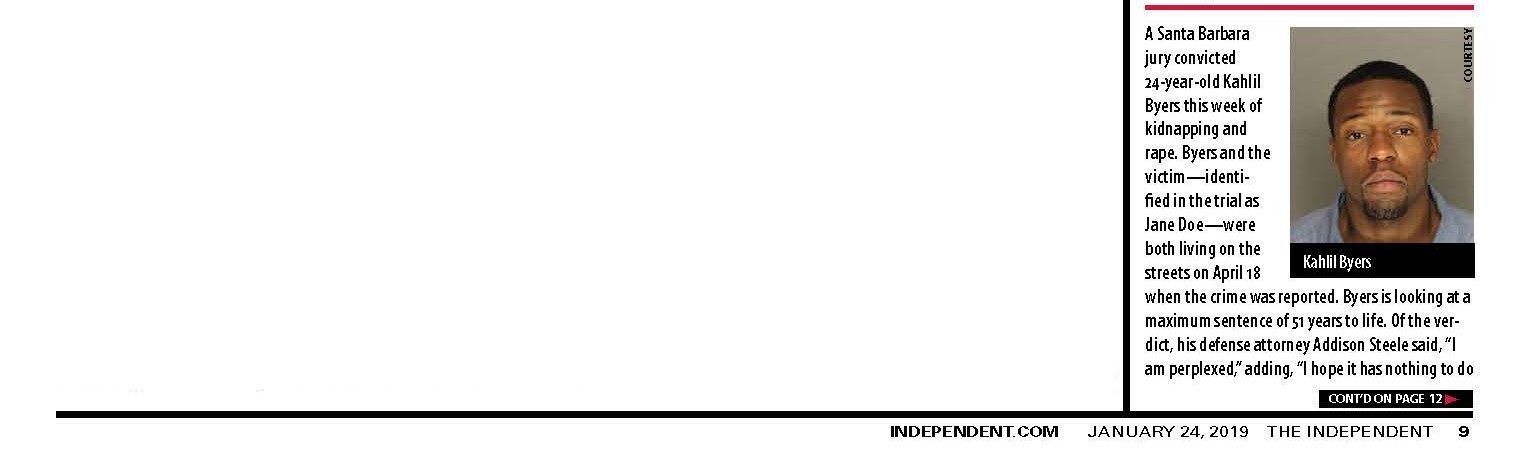 Defendants In Marilyn Pharis's Death Make Brief Court Appearance | November 19, 2015 | Noozhawk | Janene Scully Goleta-Area Man Accused of Killing His Family Enters Not Guilty by Reason of Insanity | October 21, 2015 | Noozhawk | Lara Cooper Arraignment Delayed for Former Hancock College Basketball Players Charged With Murder | October 19, 2015 | Noozhawk | Janene Scully At a Glance: Santa Maria: Arraignment continued again in Lompoc murder case | September 30, 2015 | Lompoc Record Men accused in Marilyn Pharis attack in court, case continued: New attorney on board as Public Defender's Office prepares for potential death penalty defense | September 17, 2015 | Santa Ynes Valley News | Kyle Harding Men accused in Marilyn Pharis attack in court, case continued: New attorney on board as Public Defender's Office prepares for potential death penalty defense | September 17, 2015 | Santa Maria Times | Kyle Harding Psychiatric Search Narrows in Holzer Case: Five Forensic Experts Considered to Perform Evaluation | September 16, 2015 | Santa Barbara Independent | Kelsey Knorp Prosecution in Lompoc murder case focuses on social media activity | September 1, 2015 | Santa Maria Times | Kenny Lindberg Inept Inmate Care by Corizon? Supervisors Must Decide Path for County Inmates' Health | August 20, 2015 | Santa Barbara Independent | Kelsey Brugger Defense continues cross-examination of boy, 14 | August 20, 2015 | Santa Barbara Times | Kenny Lindberg Man Accused of Murdering Family May Enter Insanity Plea in Santa Barbara Court | August 11, 2015 | Noozhawk | Lara Cooper Last U-Haul defendant sentenced | August 3, 2015 | Santa Ynez Valley News | Ryah Cooley Last U-Haul defendant sentenced | August 3, 2015 | Santa Maria Times | Ryah Cooley Man accused of ordering murder from behind bars appears in court: Three others enter not-guilty pleas, will proceed to trial | July 21, 2015 | Santa Maria Times | Kyle Harding Judge Rules Former Allan Hancock College Basketball Players to Be Tried on Murder, Other Charges | June 24, 2015 | Noozhawk | Janene Scully Preliminary Hearing Begins for Former Hancock College Basketball Players Charged with Murder: Ali Mohammed and Lavell White are accused of the fatal shooting of a 23-year-0ld man in Santa Maria during an alleged drug deal | June 23, 2015 | Noozhawk | Janene Scully Preliminary hearing set in robbery and carjacking case | May 27, 2015 | Santa Maria Times | Kyle Harding Five Men Sentenced to Life in Prison Without Parole for Torture-Murder of Anthony Ibarra: Judge rules on numerous motions during the hearing, during which family members of Ibarra speak out about 'the nightmare that will never end | May 22, 2015 | Noozhawk | Janene Scully Trio Held to Answer on Charges Related to Guadalupe Homicide | May 16, 2015 | Lompoc Record | Kyle Harding State Prison Inmate Accused of Orchestrating Murder of Santa Maria Man: Judge rules three other defendants should stand trial in the shooting of Javier Limon | May 15, 2015 | Noozhawk | Janene Scully 5 of 6 Defendants Found Guilty of First Degree Murder in U-Haul Trial: Sixth defendant pleads to kidnapping after mistrial declared | April 7, 2015 | Santa Maria Times | Kyle Harding 5 of 6 Defendants Found Guilty of First Degree Murder in U-Haul Trial: Sixth defendant pleads to kidnapping after mistrial declared | April 7, 2015 | Santa Ynez Valley News | Kyle Harding 5 Men Found Guilty in Santa Maria Torture-Murder Case: Jury in Ibarra case returns guilty verdicts against five of the six defendants | April 7, 2015 | Noozhawk | Janene Scully U-Haul juror dismissed, deliberations start over | March 31, 2015 | Santa Maria Times | Kyle Harding Jury Begins Deliberating in Santa Maria Torture-Murder Trial | March 24, 2015 | Noozhawk | Janene Scully U-Haul closing arguments continue | March 20, 2015 | Santa Maria Times | Kyle Harding U-Haul defense casts doubt on witness credibility | March 19, 2015 | Santa Maria Times | Kyle Harding County Lines: Santa Maria: U-Haul defense casts doubt on witness credibility | March 19, 2015 | Santa Maria Times No hearing yet for Hancock College basketball players | March 16, 2015 | Santa Maria Times | Staff Report Sentencing Hearing an Explosive Ending to Santa Barbara County's First Human Trafficking Trial: Brannon Lawrence Pitcher, found guilty by a jury of prostituting a teen girl, is kicked out of the courtroom for shouting at the judge | March 13, 2015 | Noozhawk | Lara Cooper Second Defendant Testifies in Ibarra Murder Trial | March 13, 2015 | Noozhawk | Janene Scully Second U-Haul Defendant Testifies, Counters Allegations | March 12, 2015 | Lompoc Record | Kyle Harding Sentencing Delayed in Human Trafficking Case | March 8, 2015 | Santa Barbara Independent | Colleen Flaherty Cameron Oliver Arraigned on Murder Charges is Drunk Driving Crash | March 8, 201 5 | News Channel 12-3-11 | News Channel 3-12 Week 8: Santa Maria Ibarra Murder Trial | March 7, 2015 | New Channel 12-3-11 | News Channel 3-12 Defendant testifies he was not present when Anthony Ibarra died | March 6, 2015 | Santa Maria Times | Kyle Harding U-Haul Defendant Takes the Stand | March 5, 2015 | Santa Maria Times | Kyle Harding Defendant Takes Witness Stand in Own Defense in Ibarra Murder Trial: Anthony "AJ" Solis denies gang membership during testimony | March 5, 2015 | Noozhawk | Janene Scully Defense Expert Testifies About Phrase 'Gang Associate' During Ibarra Murder Trial | March 3, 2015 | Noozhawk | Janene Scully Prosecution Rests in Santa Maria Trial of Six Defendants Charged in Ibarra Murder: Defense attorneys ask the judge to acquit their clients, accused of the gang-related torture-slaying of Anthony Ibarra in March 2013 | February 27, 2015 | Noozhawk | Janene Scully U-Haul defense continues cross-examination of SMPD gang detective | February 26, 2015 | Santa Maria Times | Kyle Harding U-Haul defense attorneys question SMPD detective: Prosecutor, detective paint picture of local gang violence | February 24, 2015 | Santa M