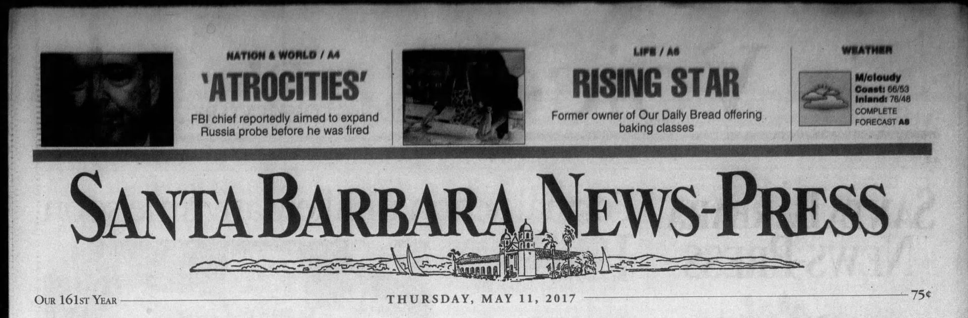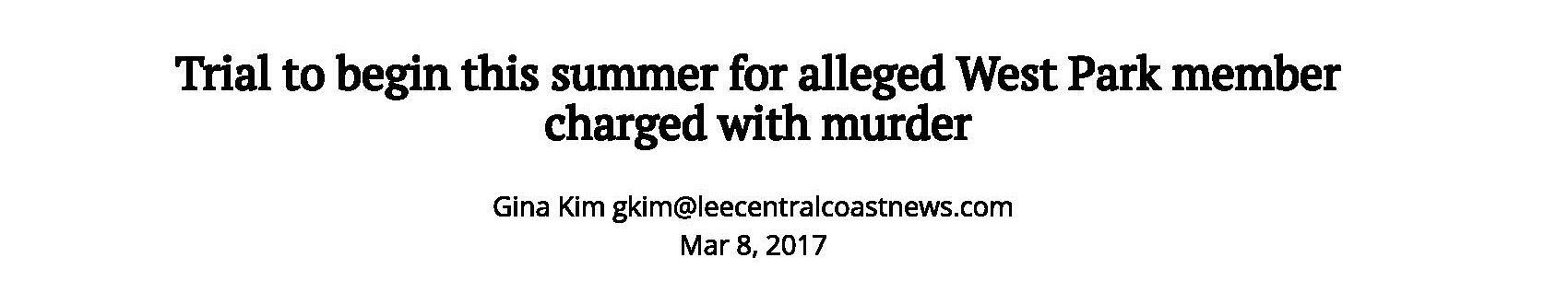 What Were Noozhawk's 16 Most-Read Stories of 2016?: Carnage, killings, wildfires and court cases captivated readers during a tumultuous year | December 30, 2016 | Noozhawk | Tom Bolton and Giana Magnoli Man Gets Seven Years in Domestic Violence Case | December 21, 2016 | Santa Barbara Independent | Kelsey Brugger Santa Maria youth basketball coach to face trial on molestation charges | December 20, 2016 | San Luis Obispo Tribune | Janene Scully Santa Maria Youth Basketball Coach Will Face Trial on Molestation Charges | December 19, 2016 | Noozhawk | Janene Scully Tentative April Trial Date Set for Goleta-Area Quadruple Murder Case: Nicolas Holzer has entered an insanity plea to charges he murdered his parents and two sons in August of 2014 | December 15, 2016 | Noozhawk | Giana Magnoli Han family murder suspect sent letter to DA after alleged crimes | December 6, 2016 | News Channel 12-3-11 | News Channel 3-12 Basketball coach charged with lewd acts pleads not guilty | December 5, 2016 | Santa Maria Times | Gina Kim Preliminary Hearing Date Delayed for Santa Barbara-Area Triple-Murder Suspect | November 15, 2016 | Noozhawk | Giana Magnoli Han Family Murder Suspect Appears Appears in Santa Barbara Court Tuesday | August 9, 2016 | News Channel 12-3-11 | News Channel 3-12 Hearing Delayed for Suspect in Han Family Triple Murder Case | August 9, 2016 | Noozhawk | Brooke Holland Former youth pastor charged with sex abuse sentenced to 8 years | July 6, 2016 | Santa Maria Times | Gina Kim Haobsh Claims Innocence in Han Family Murders: Not Guilty Plea Pushes Case Forward | May 5, 2016 | Santa Barbara Independent | Lena Garcia Triple-Murder Suspect Pleads Not Guilty in Santa Barbara Superior Court | May 5, 2016 | Noozhawk | Giana Magnoli Operation Matador defendants will wait to set preliminary hearing: Suspects linked to MS-13 will return to court in July | April 29, 2016 | Santa Maria Times | Gina Kim Attorneys Subpoena Mental-Health Records in Goleta-Area Quadruple Murder Case: Nicolas Holzer has entered an insanity plea for killing of his parents and 2 children in 2014 | April 26, 2016 | Noozhawk | Giana Magnoli Arraignment for SM man accused of sex abuse continued | April 25, 2016 | Santa Maria Times | April Charlton Haobsh Denied Access to Public Defender; Attorney Not Allowed in County Jail, Calls Block "Unprecedented" | April 14, 2016 | Santa Barbara Independent | Lena Garcia Pierre Haobsh Makes Second Court Appearance | April 13, 2016 | YouTube | News Channel 3-12 Arraignment Delayed Again For Triple-A Suspect Pierre Haobsh: Man accused of killing Dr. Weidong "Henry" Han, his wife and daughter ordered to return to Santa Barbara Superior Court on May 5 | April 12, 2016 | Noozhawk | Giana Magnoli Inside the Han Family Murders: The Investigation, and Legacy of Dr. Henry Han | March 30, 2016 | Santa Barbara Independent | Lena Garcia Triple-Homicide Suspect Appears in Court to Face First-Degree Murder Charges: Pierre Haobsh is also accused of special allegations that could lead to death penalty in slayings of 3 Han family members | March 28, 2016 | Noozhawk | Sam Goldman MS-13 Gang Arraignment | March 18, 2016 | YouTube | Santa Maria Times