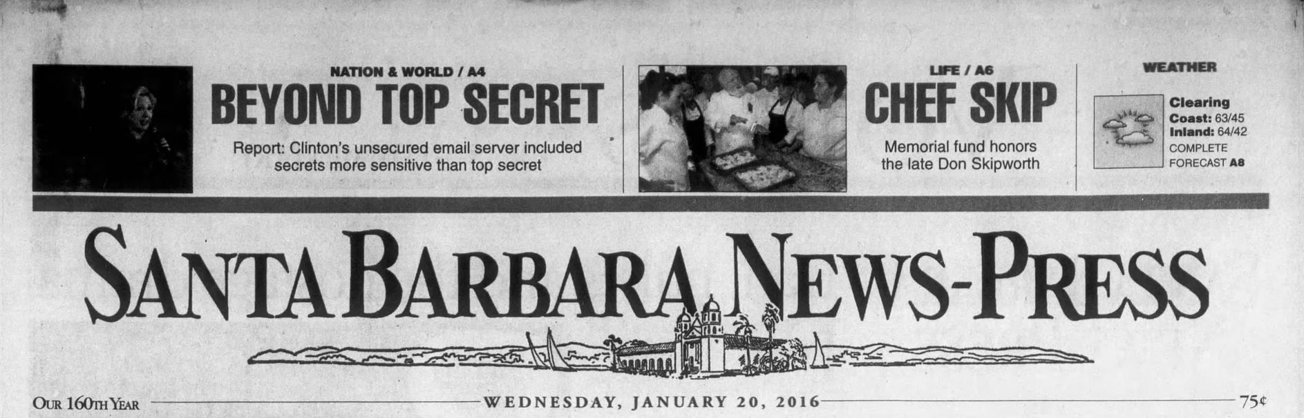 What Were Noozhawk's 16 Most-Read Stories of 2016?: Carnage, killings, wildfires and court cases captivated readers during a tumultuous year | December 30, 2016 | Noozhawk | Tom Bolton and Giana Magnoli Man Gets Seven Years in Domestic Violence Case | December 21, 2016 | Santa Barbara Independent | Kelsey Brugger Santa Maria youth basketball coach to face trial on molestation charges | December 20, 2016 | San Luis Obispo Tribune | Janene Scully Santa Maria Youth Basketball Coach Will Face Trial on Molestation Charges | December 19, 2016 | Noozhawk | Janene Scully Tentative April Trial Date Set for Goleta-Area Quadruple Murder Case: Nicolas Holzer has entered an insanity plea to charges he murdered his parents and two sons in August of 2014 | December 15, 2016 | Noozhawk | Giana Magnoli Han family murder suspect sent letter to DA after alleged crimes | December 6, 2016 | News Channel 12-3-11 | News Channel 3-12 Basketball coach charged with lewd acts pleads not guilty | December 5, 2016 | Santa Maria Times | Gina Kim Preliminary Hearing Date Delayed for Santa Barbara-Area Triple-Murder Suspect | November 15, 2016 | Noozhawk | Giana Magnoli Han Family Murder Suspect Appears Appears in Santa Barbara Court Tuesday | August 9, 2016 | News Channel 12-3-11 | News Channel 3-12 Hearing Delayed for Suspect in Han Family Triple Murder Case | August 9, 2016 | Noozhawk | Brooke Holland Former youth pastor charged with sex abuse sentenced to 8 years | July 6, 2016 | Santa Maria Times | Gina Kim Haobsh Claims Innocence in Han Family Murders: Not Guilty Plea Pushes Case Forward | May 5, 2016 | Santa Barbara Independent | Lena Garcia Triple-Murder Suspect Pleads Not Guilty in Santa Barbara Superior Court | May 5, 2016 | Noozhawk | Giana Magnoli Operation Matador defendants will wait to set preliminary hearing: Suspects linked to MS-13 will return to court in July | April 29, 2016 | Santa Maria Times | Gina Kim Attorneys Subpoena Mental-Health Records in Goleta-Area Quadruple Murder Case: Nicolas Holzer has entered an insanity plea for killing of his parents and 2 children in 2014 | April 26, 2016 | Noozhawk | Giana Magnoli Arraignment for SM man accused of sex abuse continued | April 25, 2016 | Santa Maria Times | April Charlton Haobsh Denied Access to Public Defender; Attorney Not Allowed in County Jail, Calls Block "Unprecedented" | April 14, 2016 | Santa Barbara Independent | Lena Garcia Pierre Haobsh Makes Second Court Appearance | April 13, 2016 | YouTube | News Channel 3-12 Arraignment Delayed Again For Triple-A Suspect Pierre Haobsh: Man accused of killing Dr. Weidong "Henry" Han, his wife and daughter ordered to return to Santa Barbara Superior Court on May 5 | April 12, 2016 | Noozhawk | Giana Magnoli Inside the Han Family Murders: The Investigation, and Legacy of Dr. Henry Han | March 30, 2016 | Santa Barbara Independent | Lena Garcia Triple-Homicide Suspect Appears in Court to Face First-Degree Murder Charges: Pierre Haobsh is also accused of special allegations that could lead to death penalty in slayings of 3 Han family members | March 28, 2016 | Noozhawk | Sam Goldman MS-13 Gang Arraignment | March 18, 2016 | YouTube | Santa Maria Times