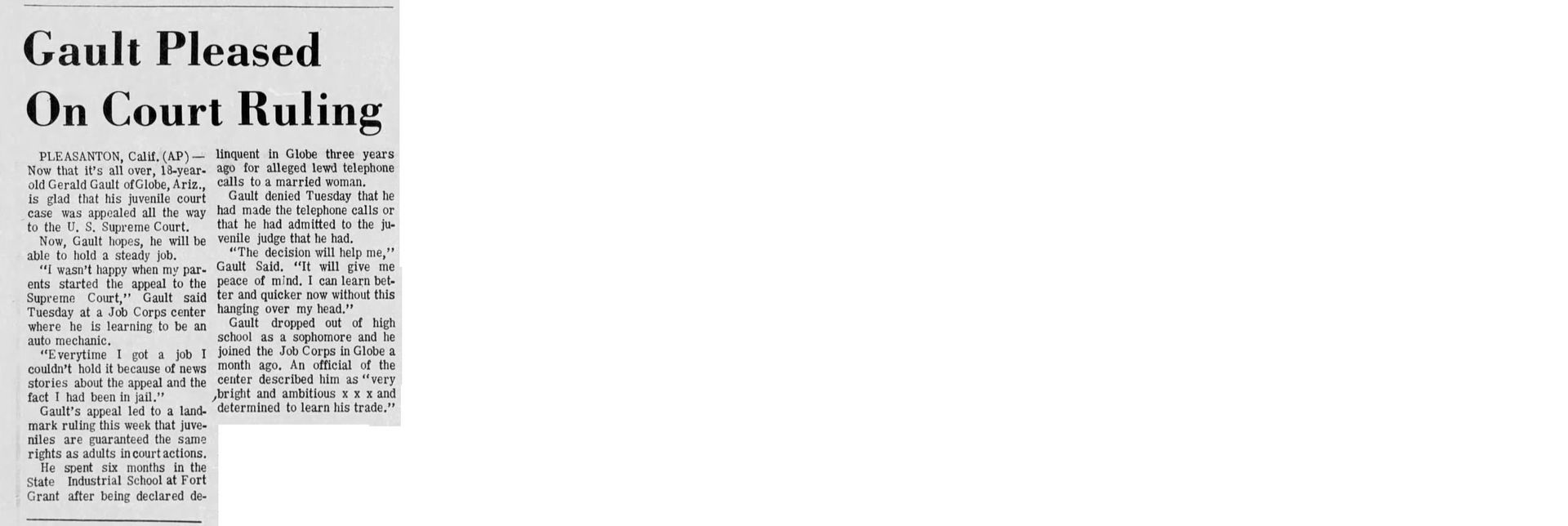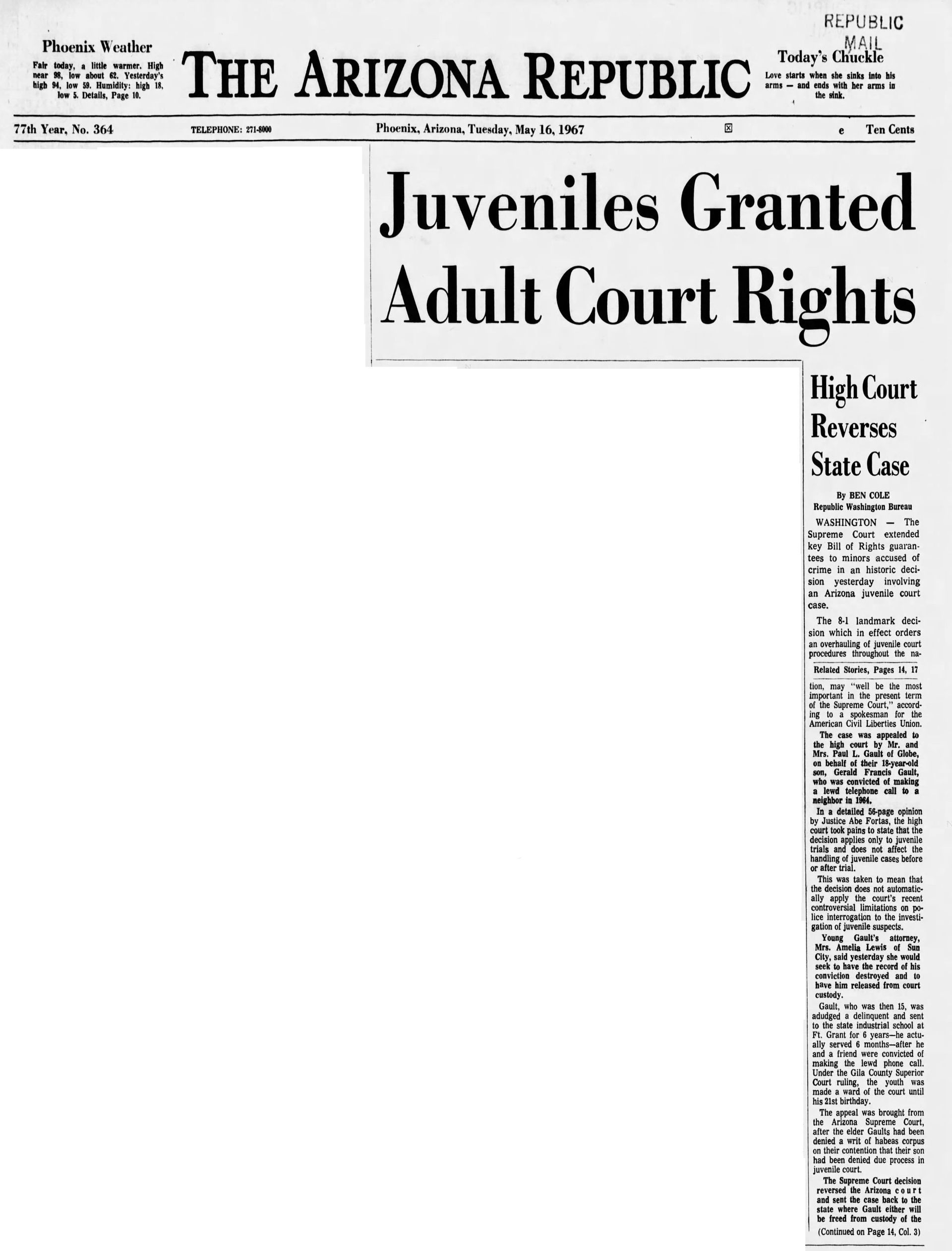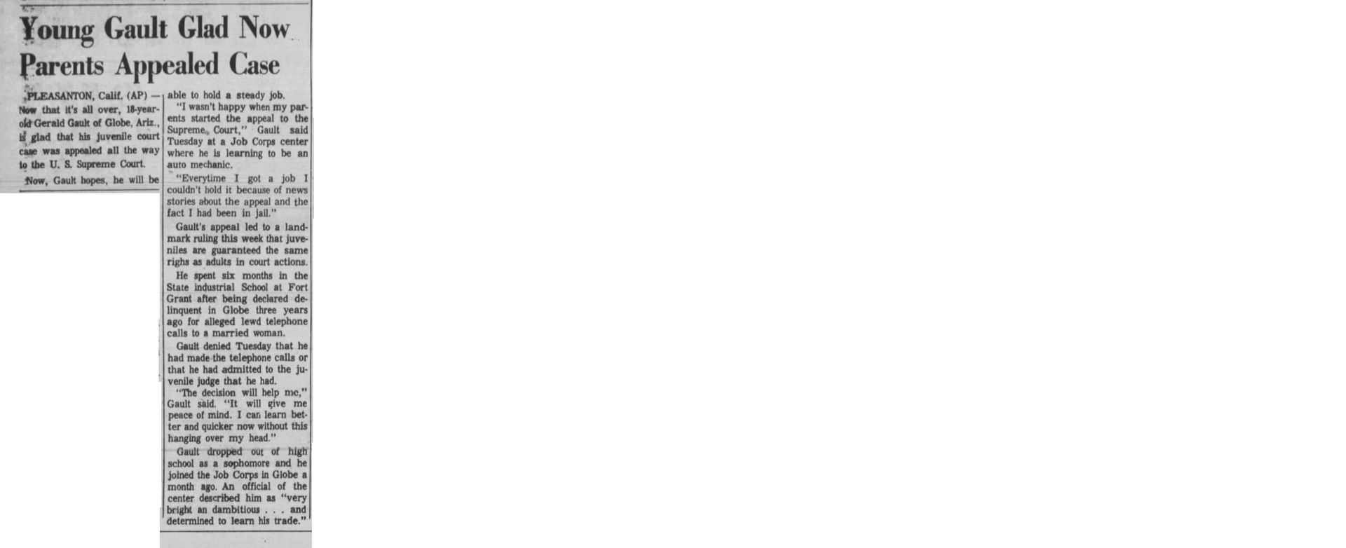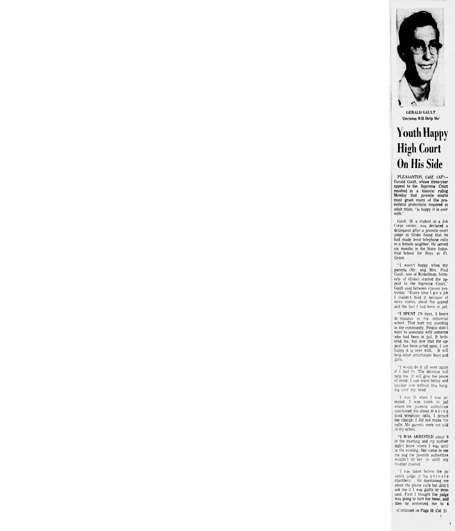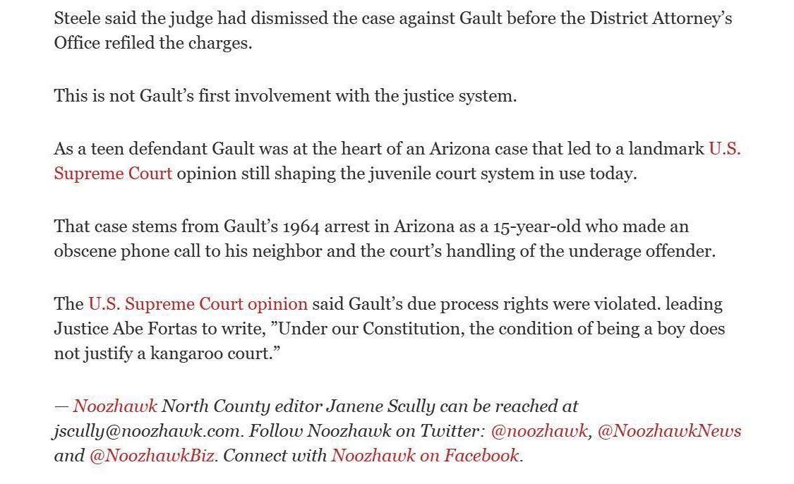 With this case Addison was part of legal history and the landmark case IN re Gault (1967) 387 U.S. 1
