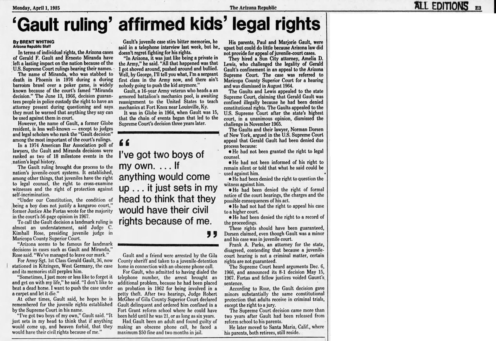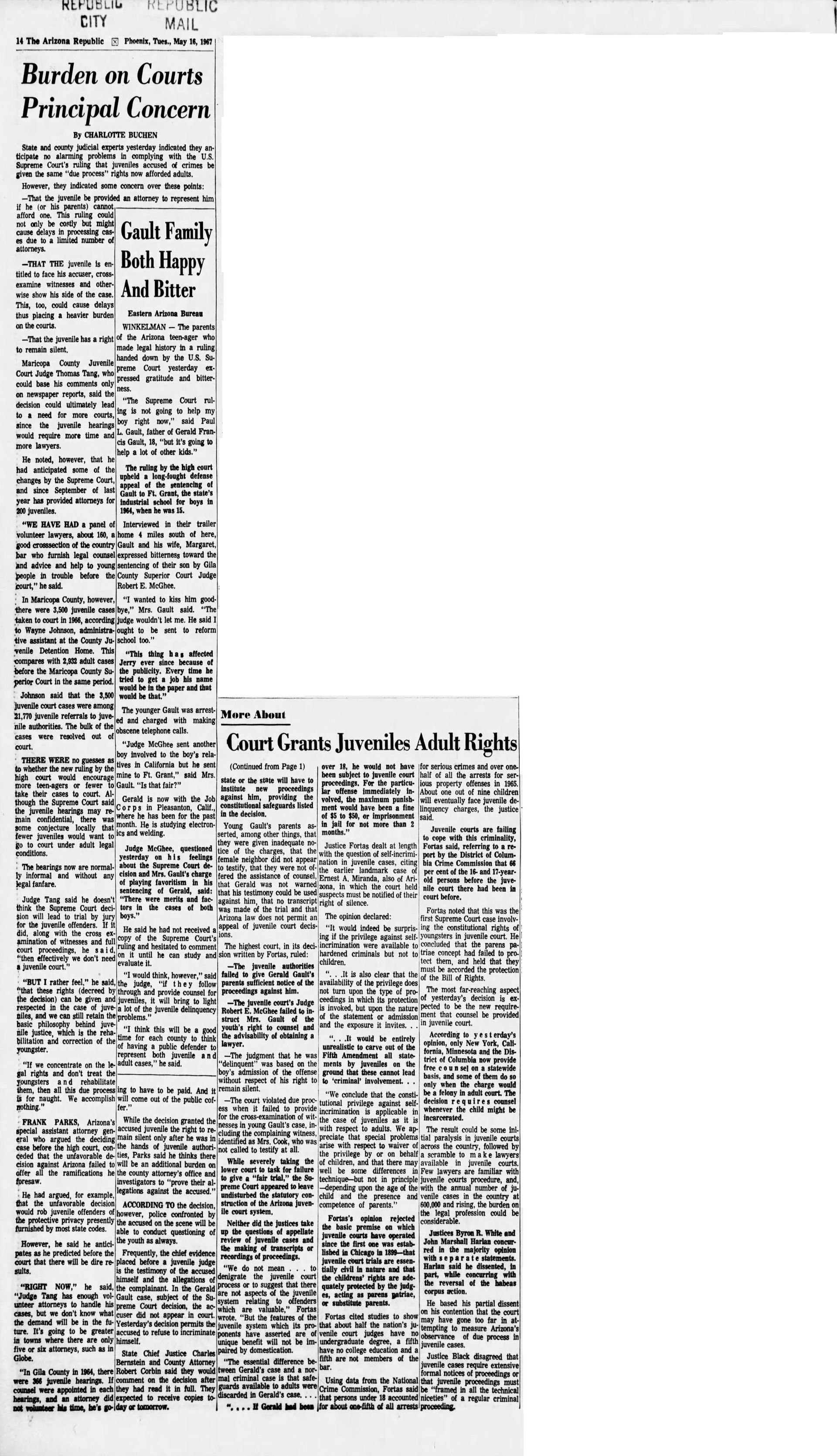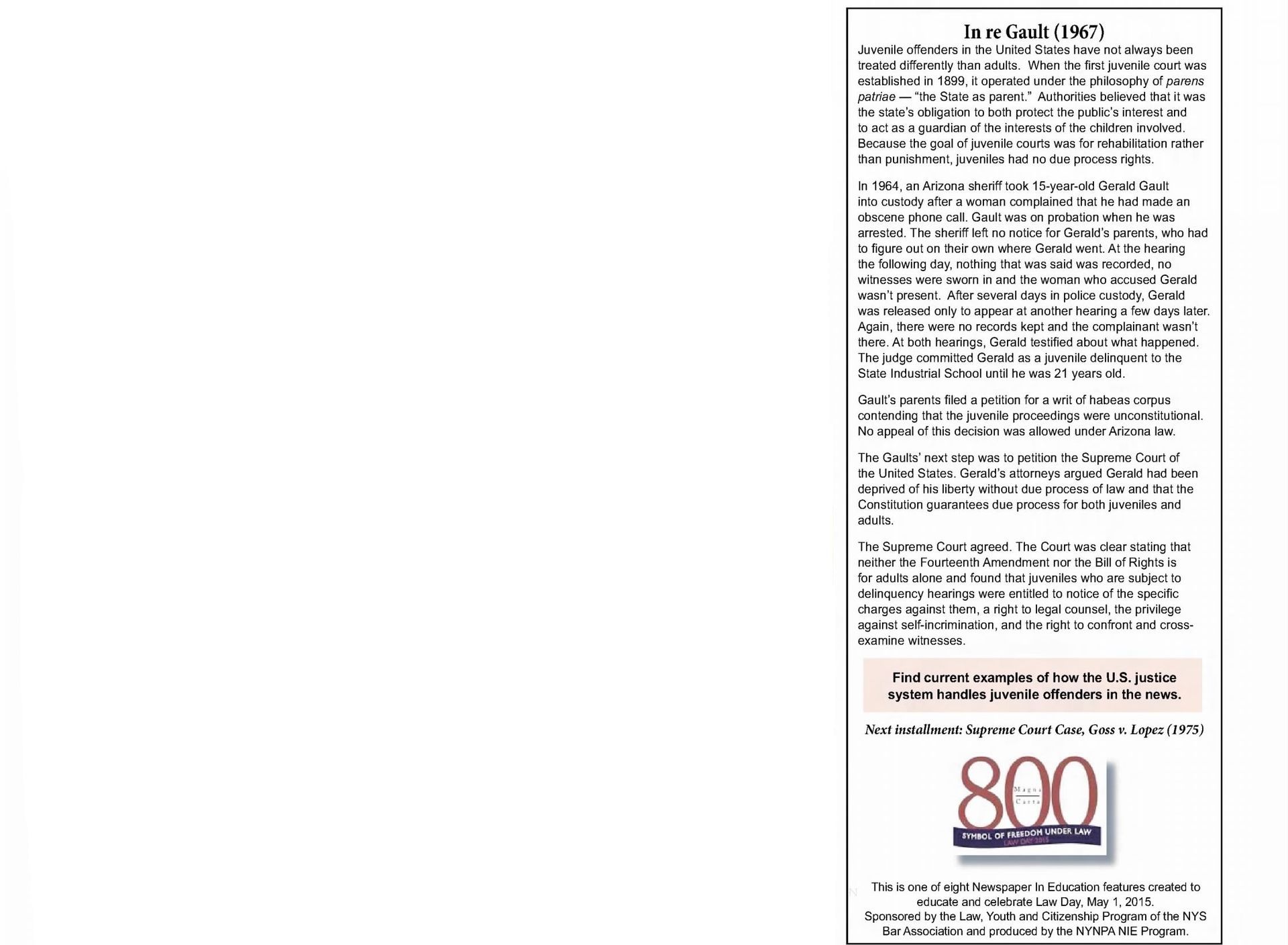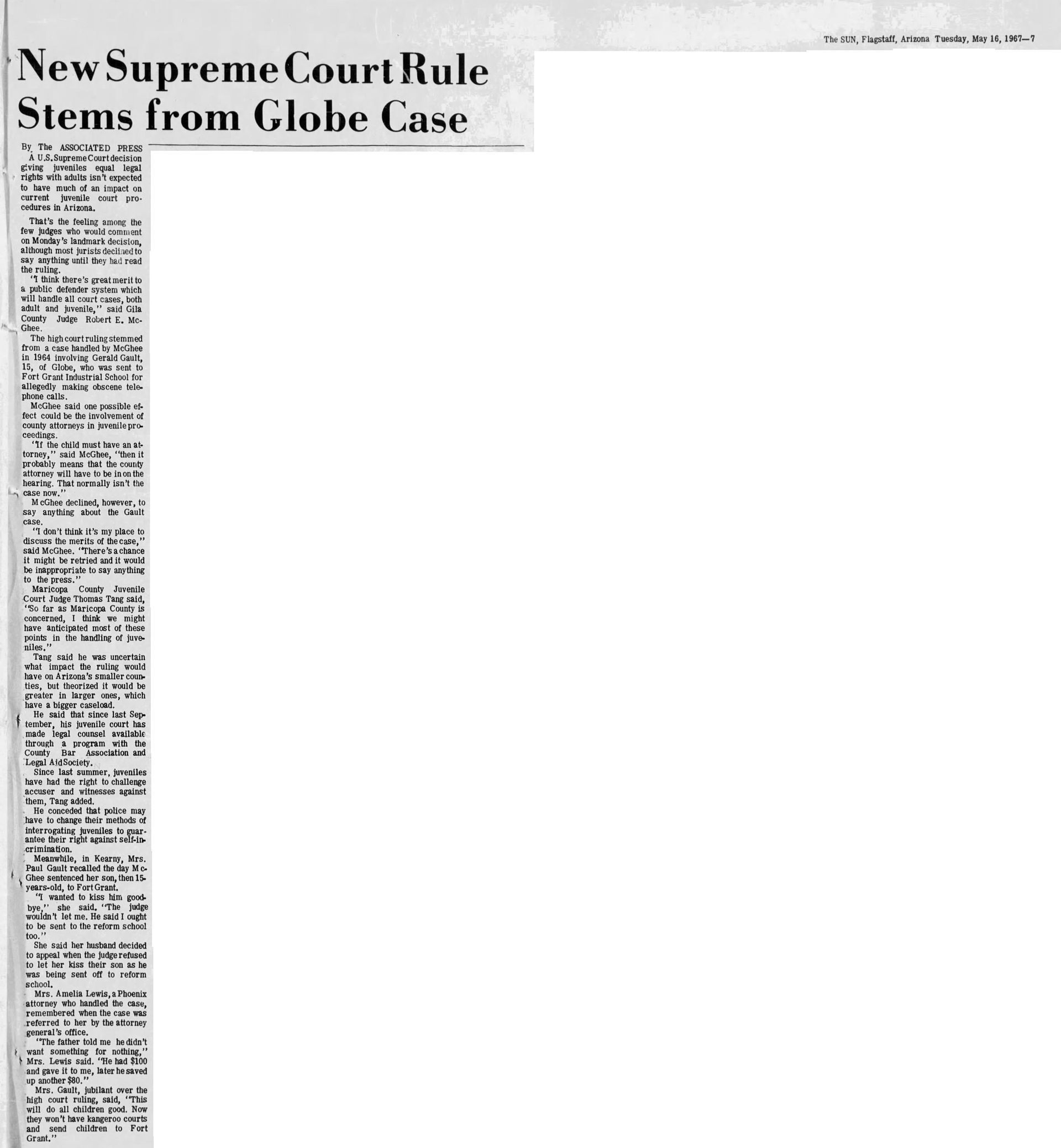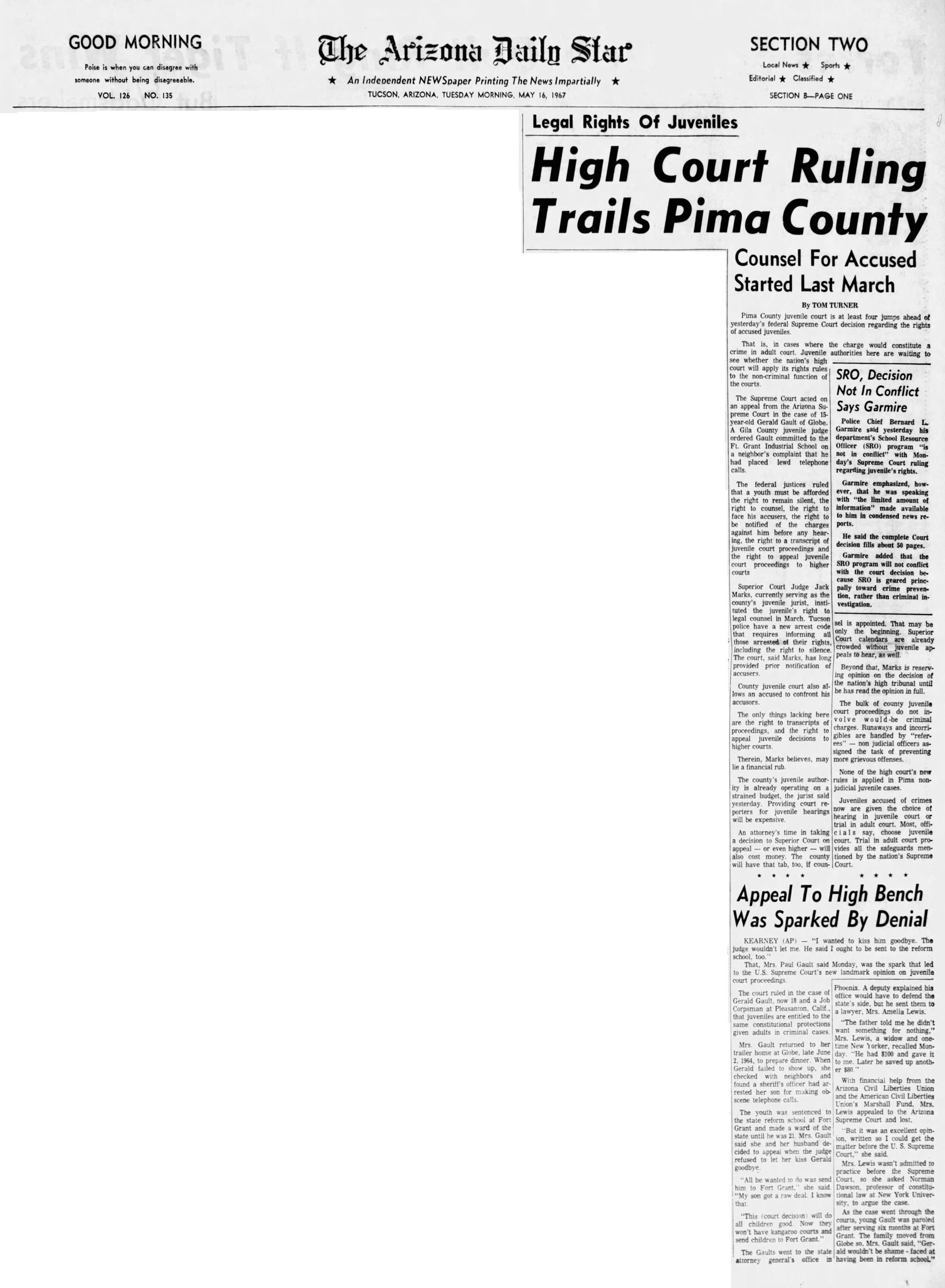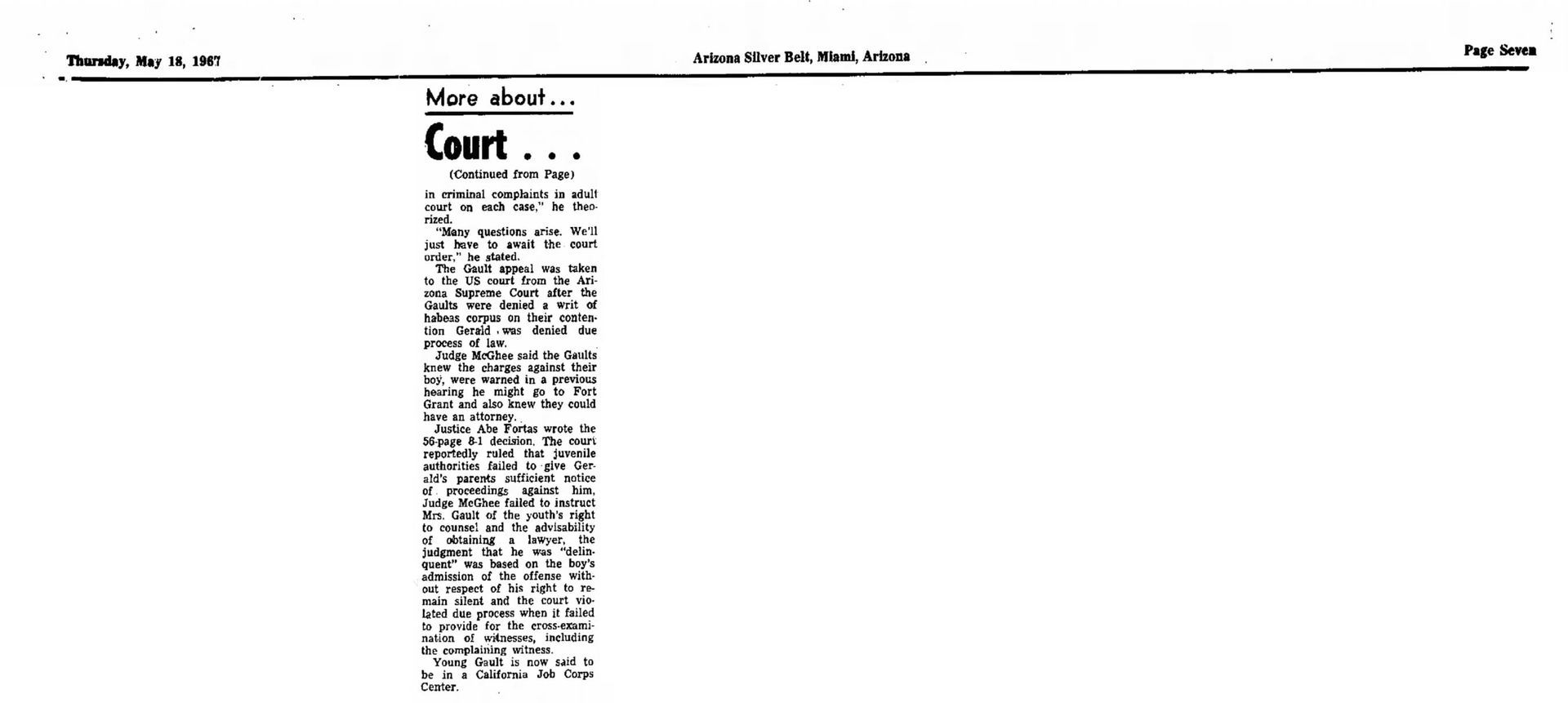 With this case Addison was part of legal history and the landmark case IN re Gault (1967) 387 U.S. 1