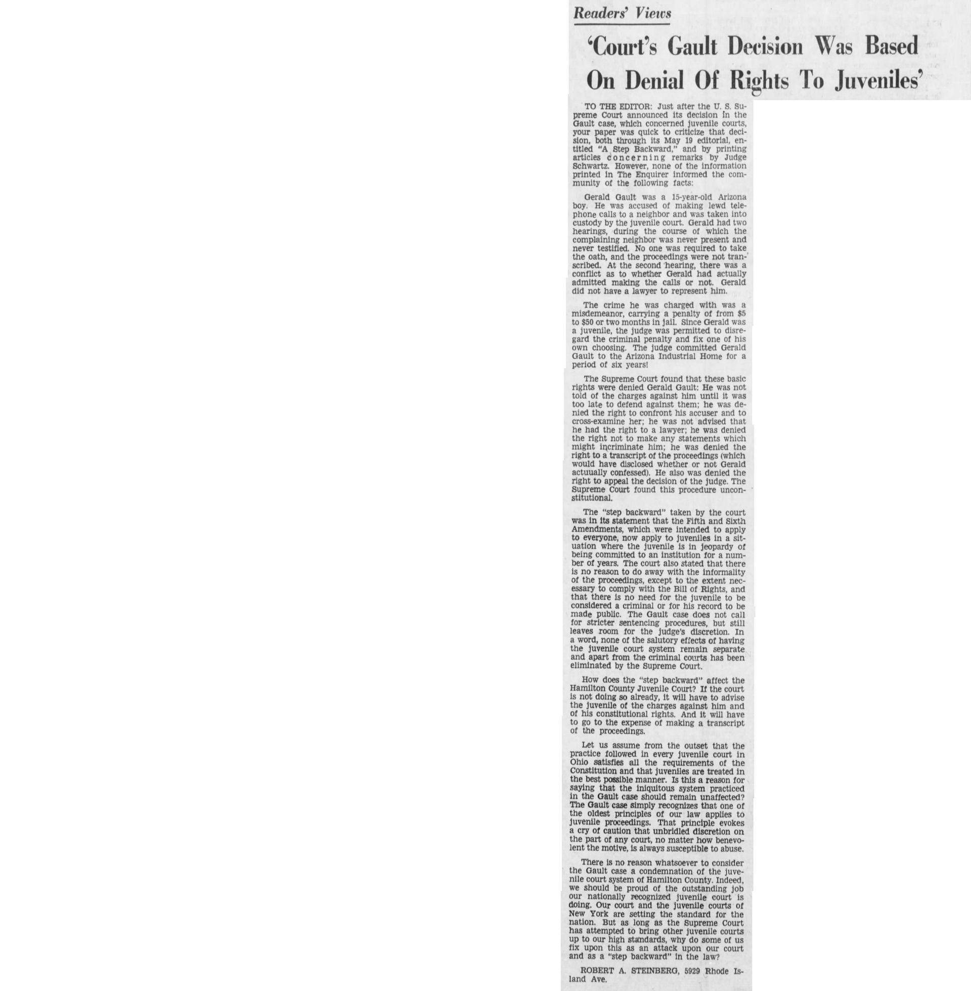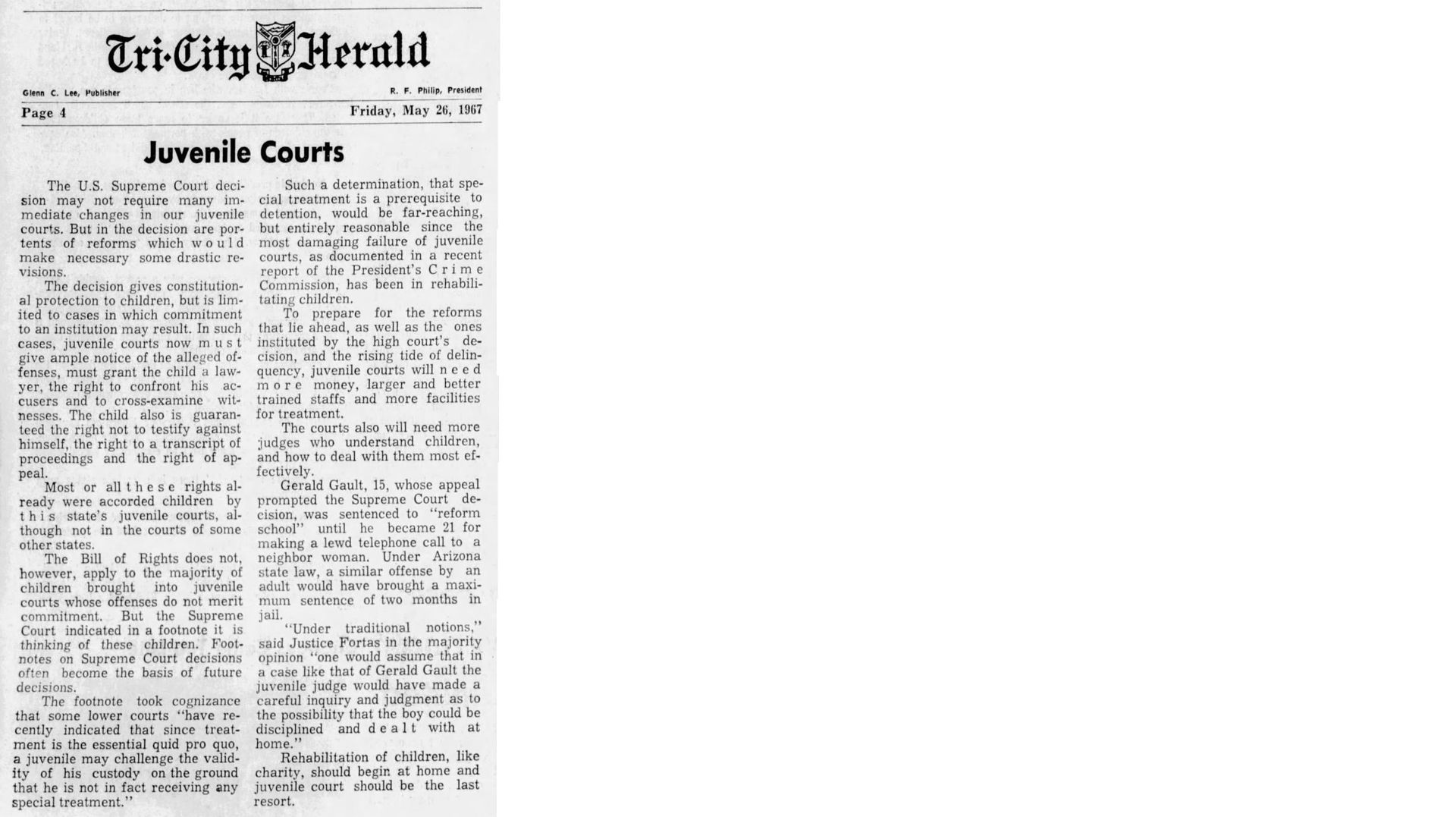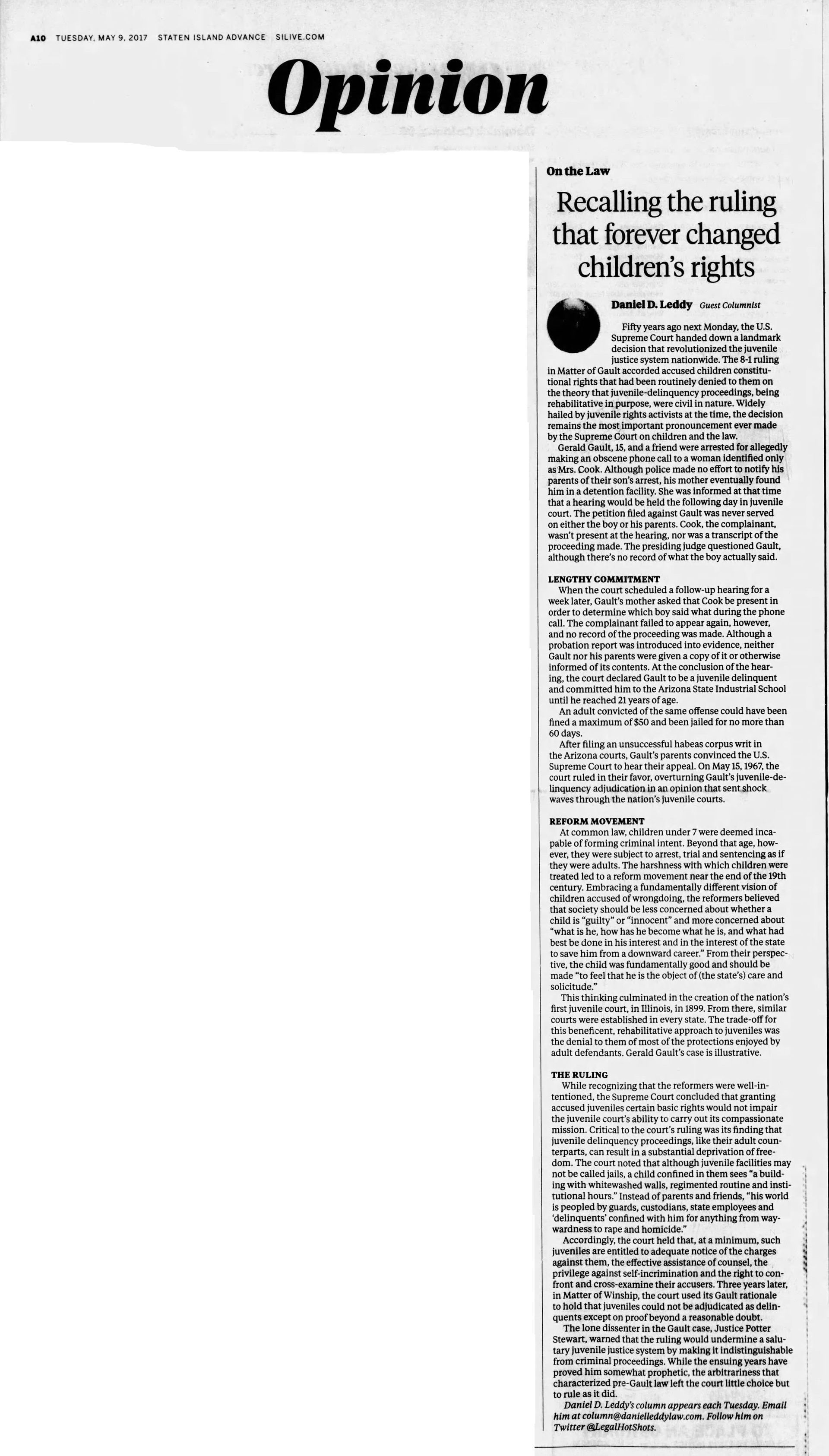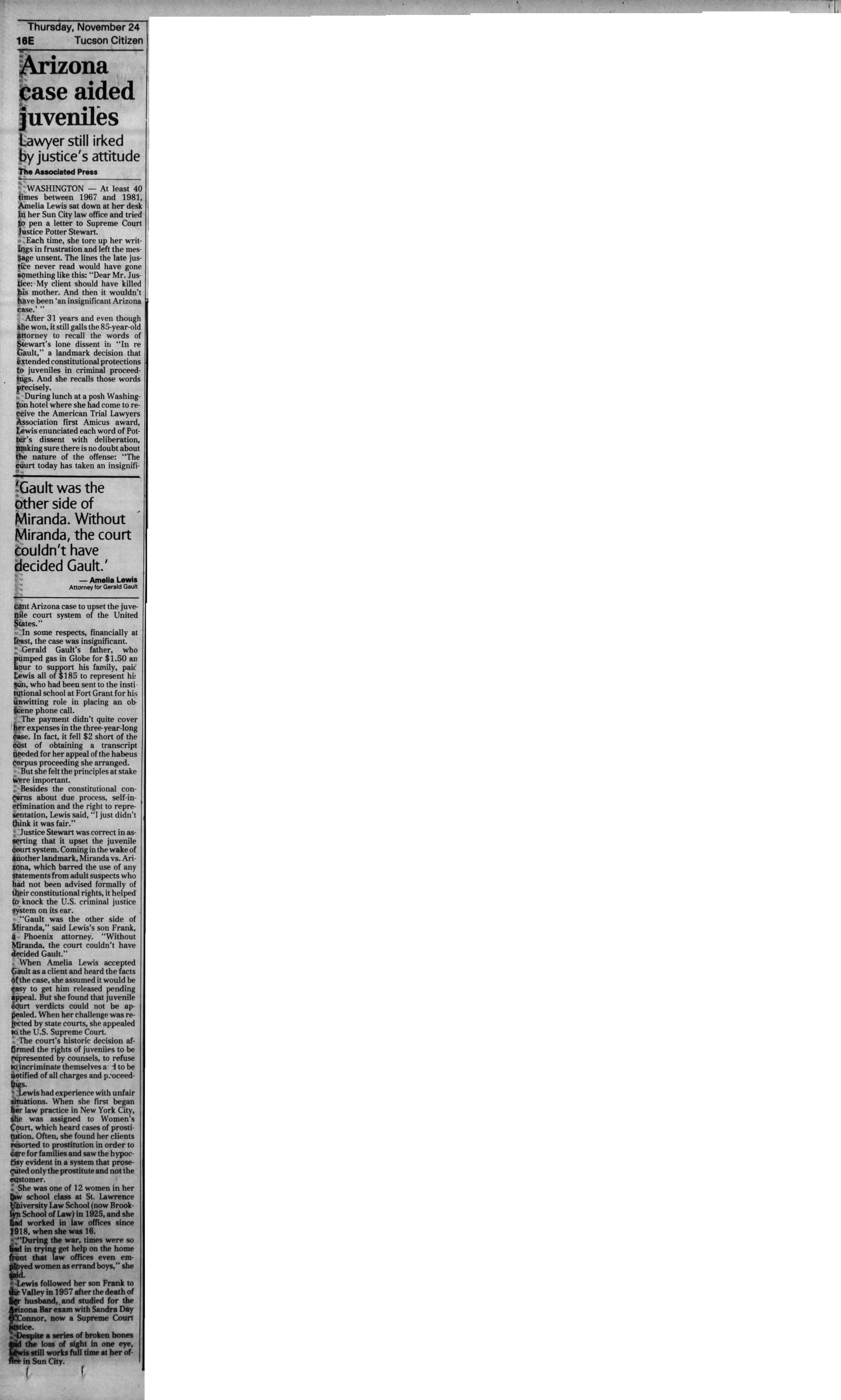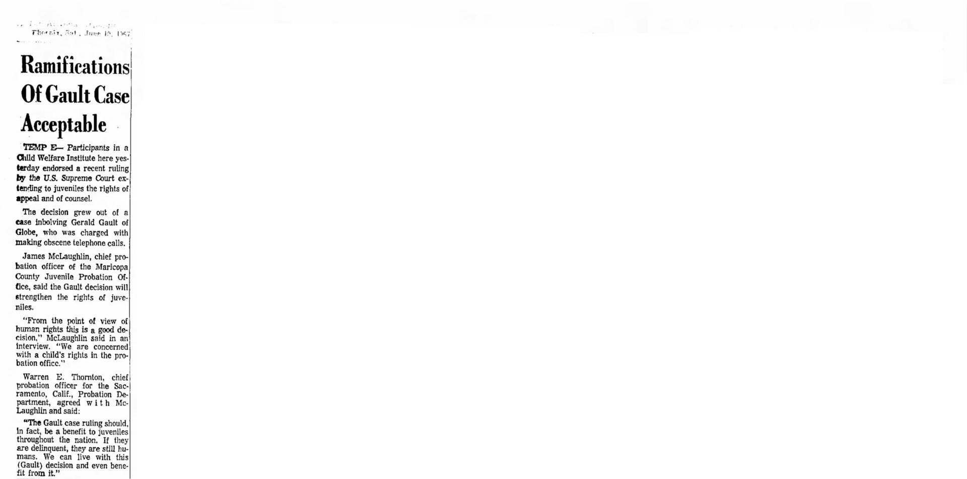 With this case Addison was part of legal history and the landmark case IN re Gault (1967) 387 U.S. 1