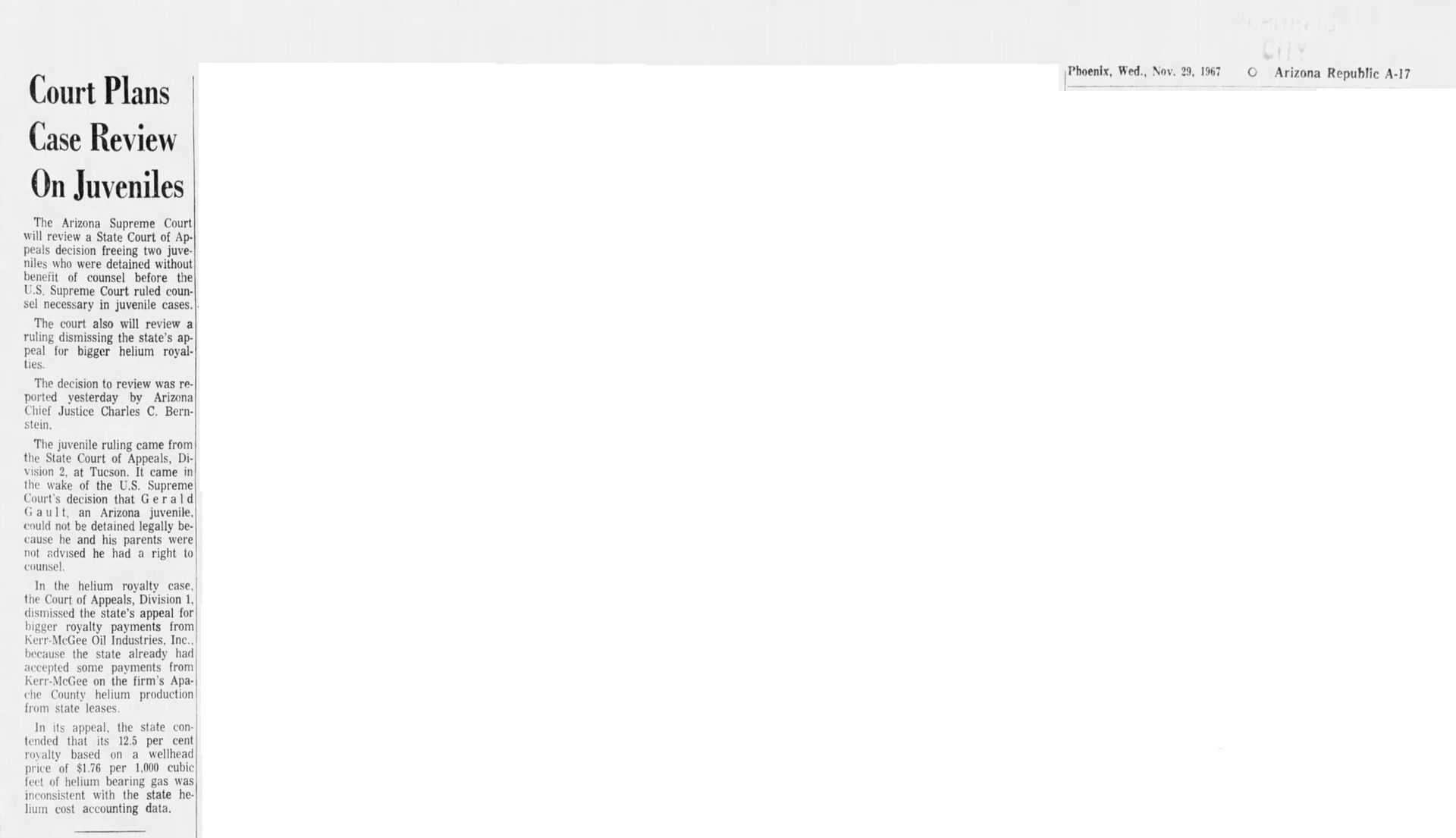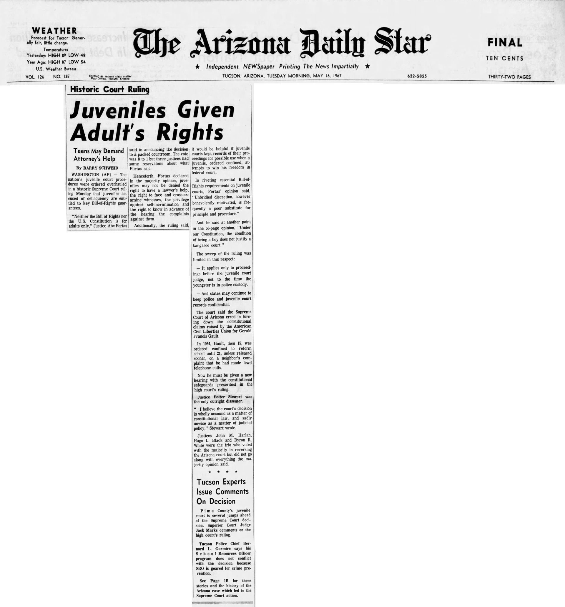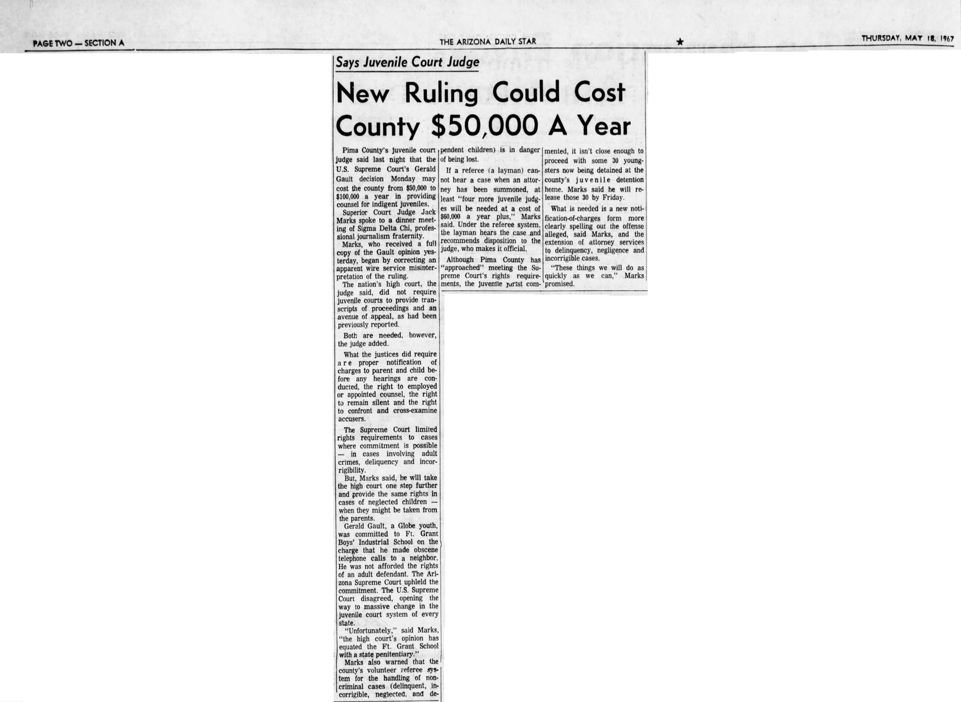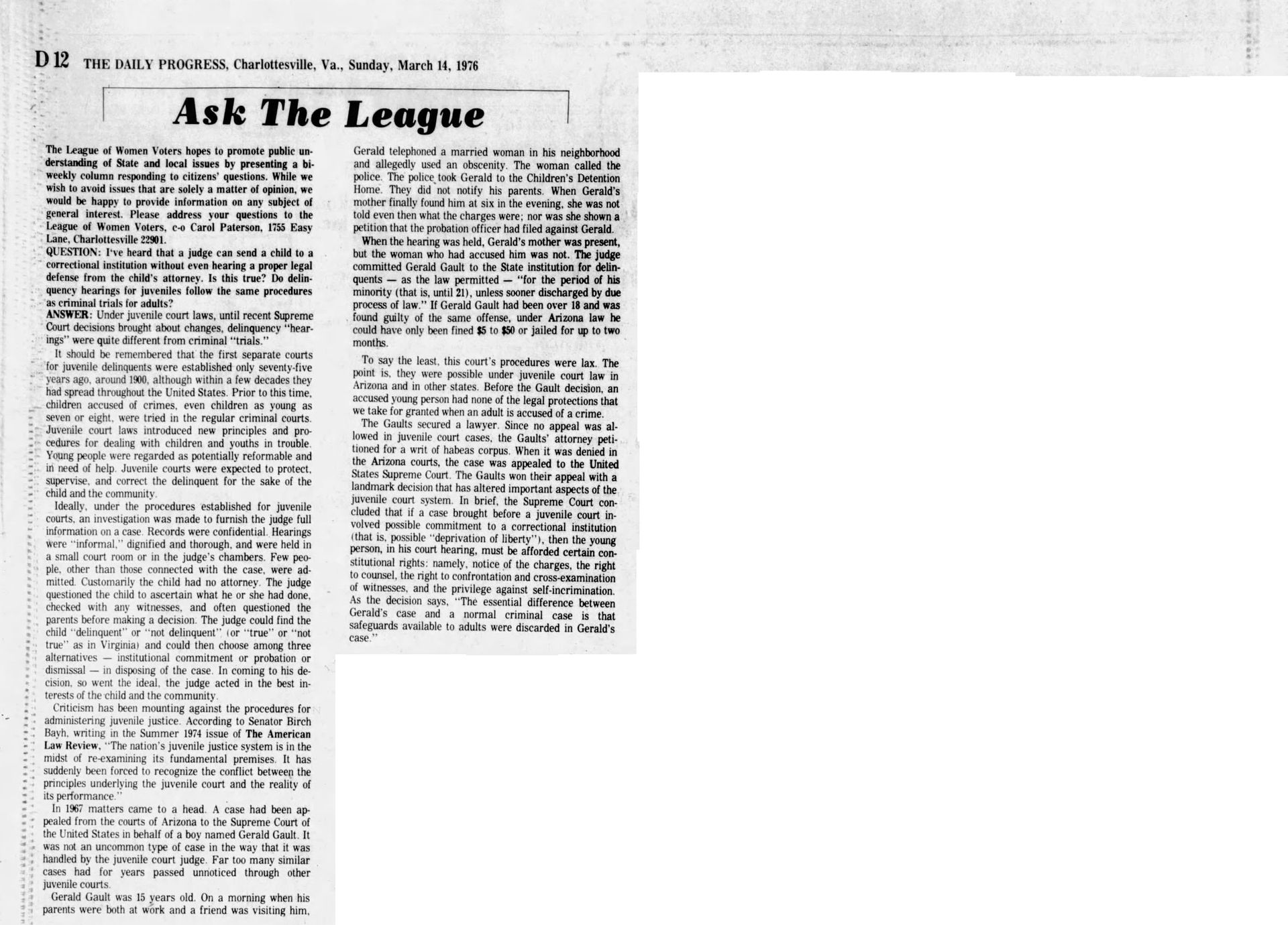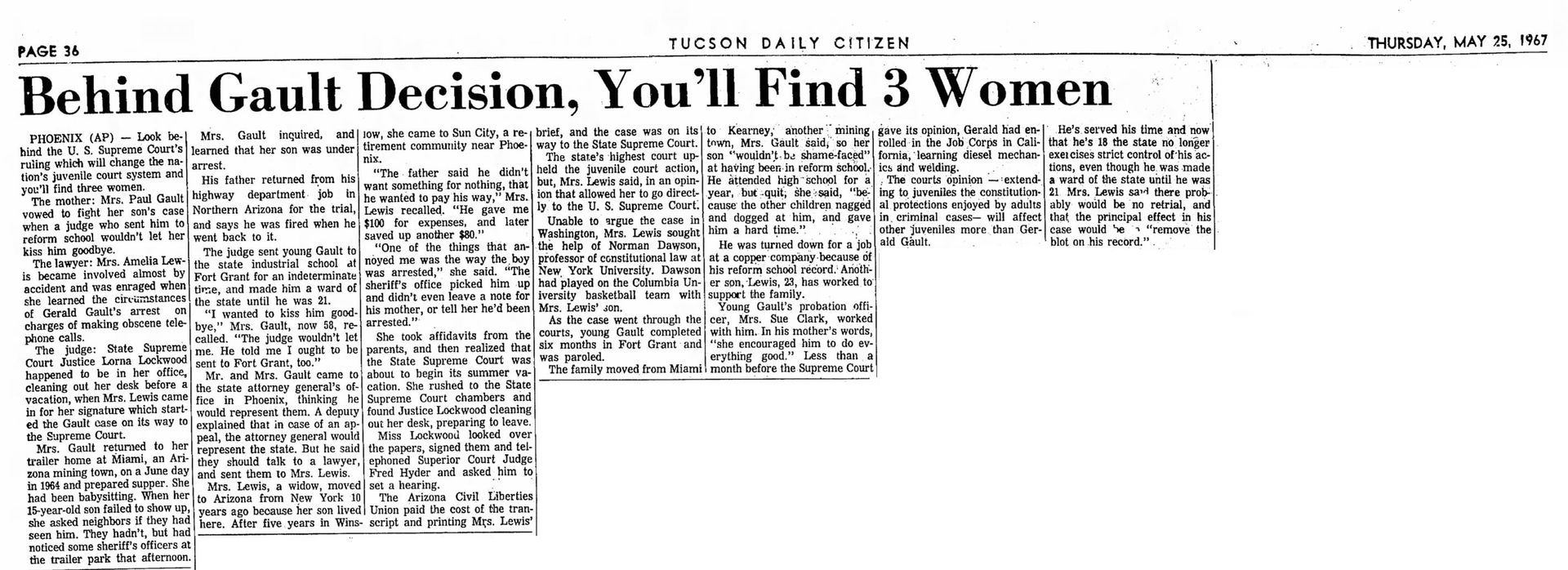 With this case Addison was part of legal history and the landmark case IN re Gault (1967) 387 U.S. 1