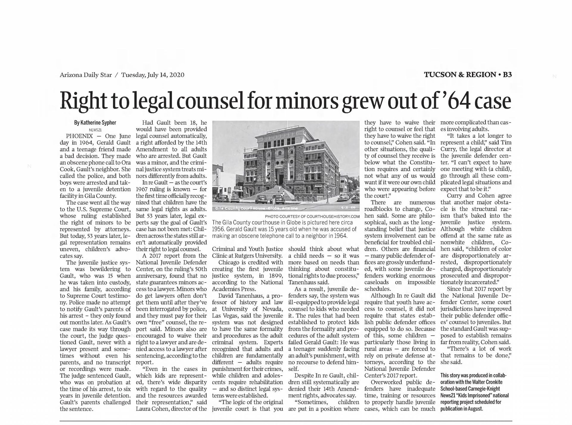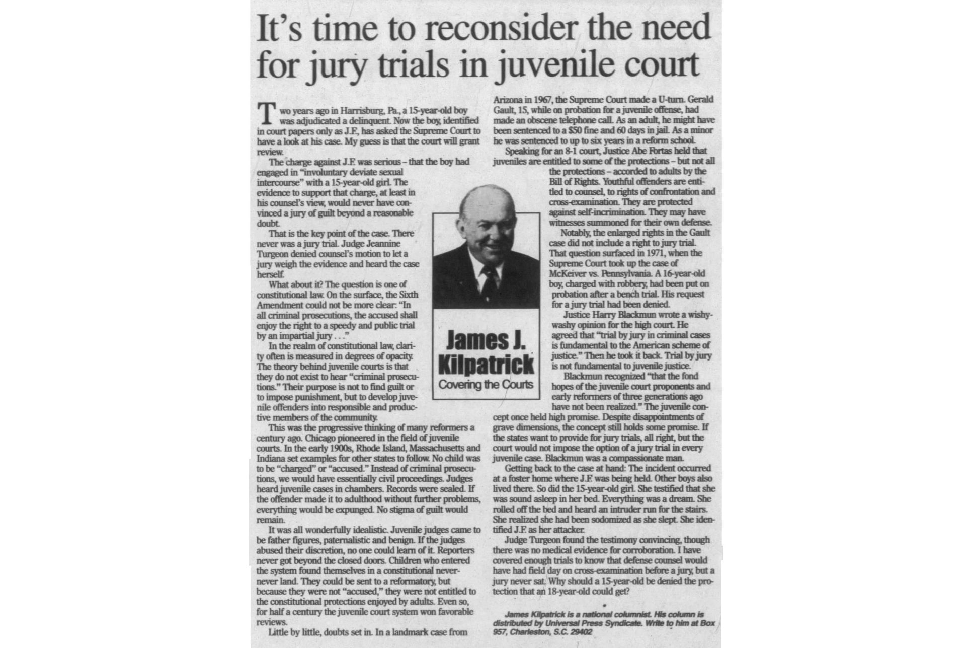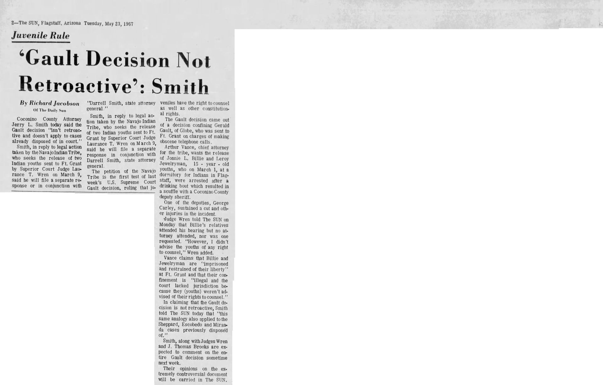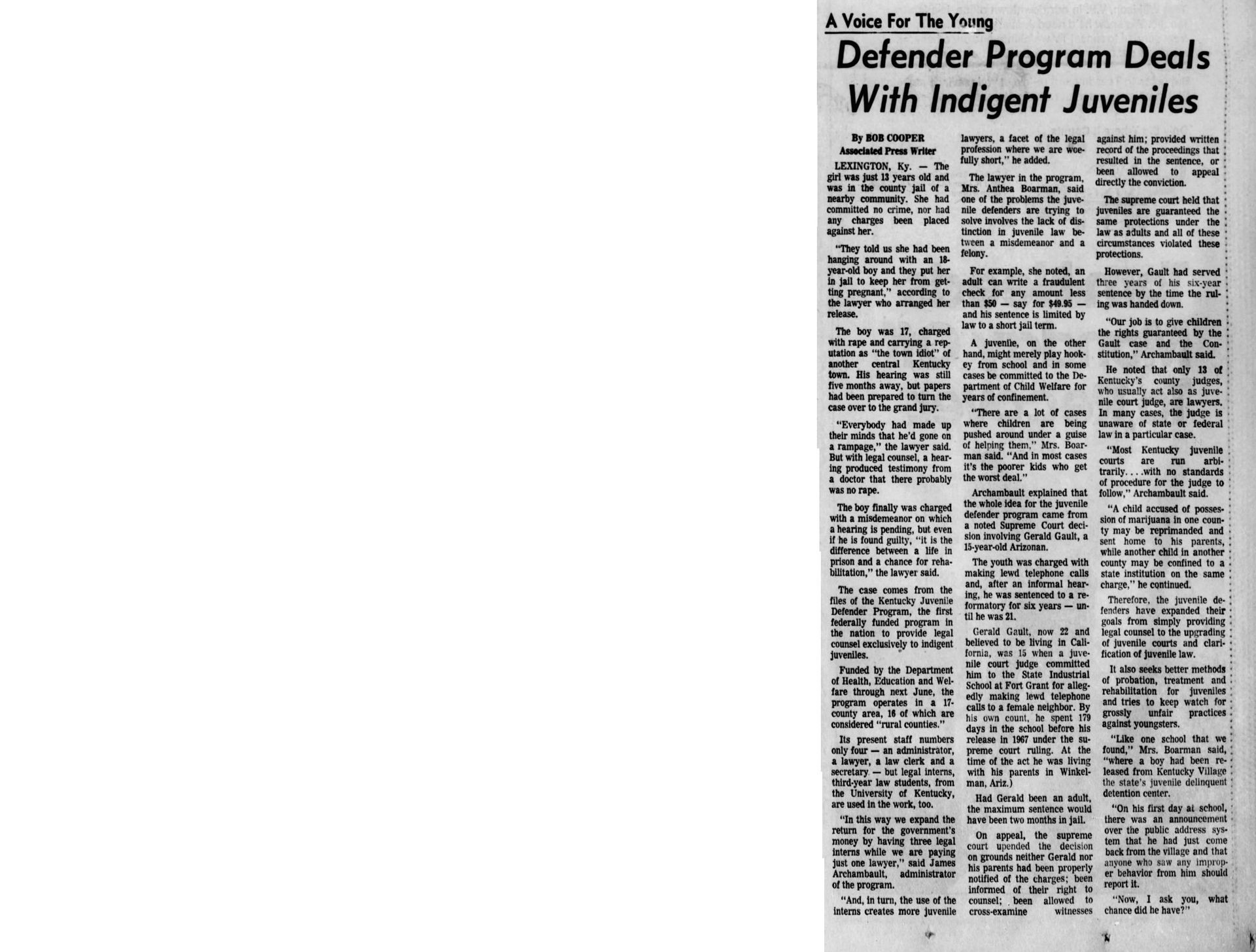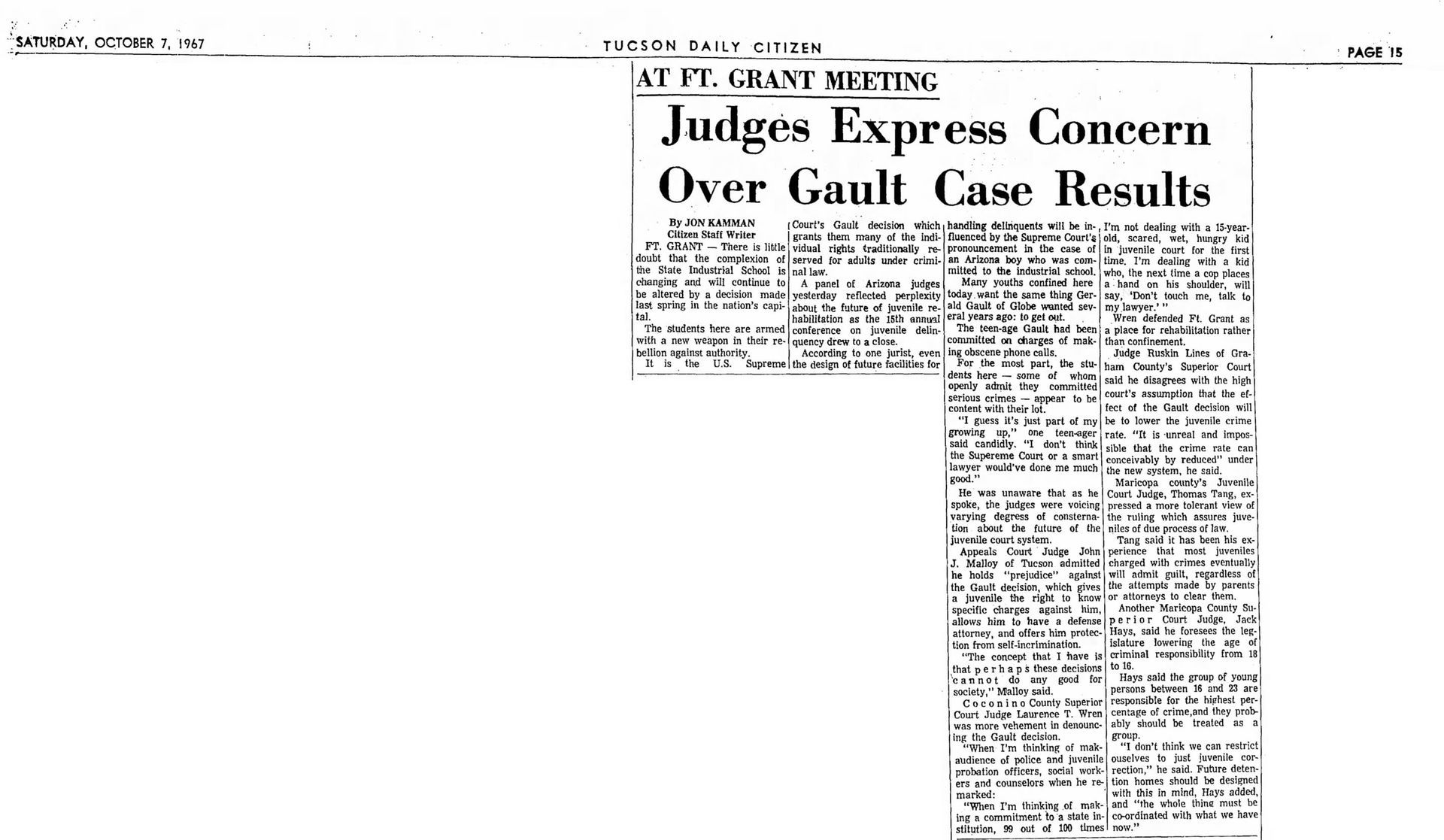 With this case Addison was part of legal history and the landmark case IN re Gault (1967) 387 U.S. 1