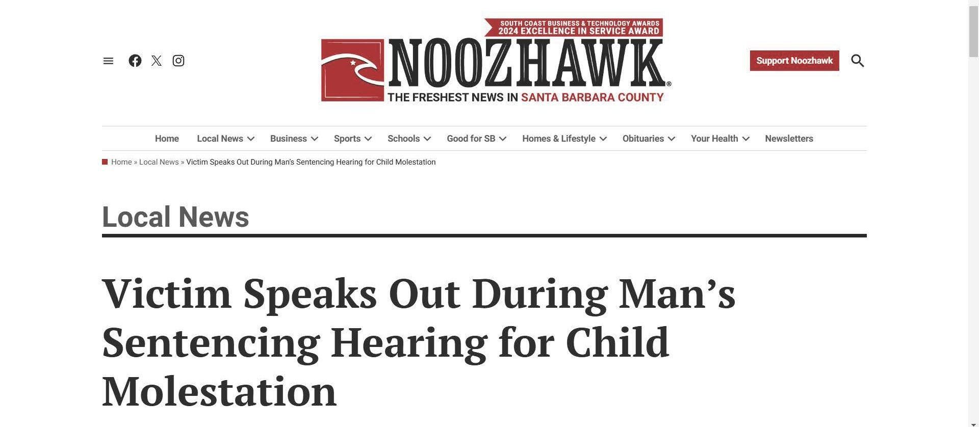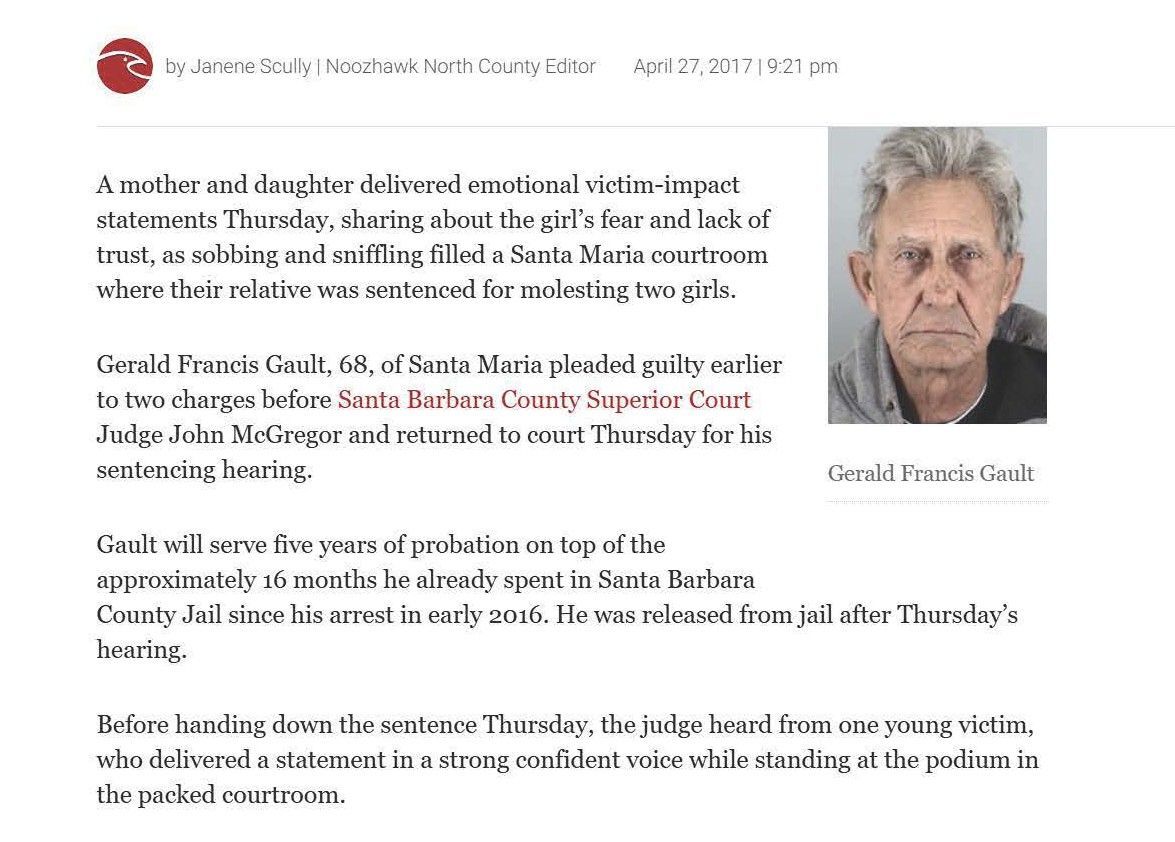 What Were Noozhawk's 16 Most-Read Stories of 2016?: Carnage, killings, wildfires and court cases captivated readers during a tumultuous year | December 30, 2016 | Noozhawk | Tom Bolton and Giana Magnoli Man Gets Seven Years in Domestic Violence Case | December 21, 2016 | Santa Barbara Independent | Kelsey Brugger Santa Maria youth basketball coach to face trial on molestation charges | December 20, 2016 | San Luis Obispo Tribune | Janene Scully Santa Maria Youth Basketball Coach Will Face Trial on Molestation Charges | December 19, 2016 | Noozhawk | Janene Scully Tentative April Trial Date Set for Goleta-Area Quadruple Murder Case: Nicolas Holzer has entered an insanity plea to charges he murdered his parents and two sons in August of 2014 | December 15, 2016 | Noozhawk | Giana Magnoli Han family murder suspect sent letter to DA after alleged crimes | December 6, 2016 | News Channel 12-3-11 | News Channel 3-12 Basketball coach charged with lewd acts pleads not guilty | December 5, 2016 | Santa Maria Times | Gina Kim Preliminary Hearing Date Delayed for Santa Barbara-Area Triple-Murder Suspect | November 15, 2016 | Noozhawk | Giana Magnoli Han Family Murder Suspect Appears Appears in Santa Barbara Court Tuesday | August 9, 2016 | News Channel 12-3-11 | News Channel 3-12 Hearing Delayed for Suspect in Han Family Triple Murder Case | August 9, 2016 | Noozhawk | Brooke Holland Former youth pastor charged with sex abuse sentenced to 8 years | July 6, 2016 | Santa Maria Times | Gina Kim Haobsh Claims Innocence in Han Family Murders: Not Guilty Plea Pushes Case Forward | May 5, 2016 | Santa Barbara Independent | Lena Garcia Triple-Murder Suspect Pleads Not Guilty in Santa Barbara Superior Court | May 5, 2016 | Noozhawk | Giana Magnoli Operation Matador defendants will wait to set preliminary hearing: Suspects linked to MS-13 will return to court in July | April 29, 2016 | Santa Maria Times | Gina Kim Attorneys Subpoena Mental-Health Records in Goleta-Area Quadruple Murder Case: Nicolas Holzer has entered an insanity plea for killing of his parents and 2 children in 2014 | April 26, 2016 | Noozhawk | Giana Magnoli Arraignment for SM man accused of sex abuse continued | April 25, 2016 | Santa Maria Times | April Charlton Haobsh Denied Access to Public Defender; Attorney Not Allowed in County Jail, Calls Block "Unprecedented" | April 14, 2016 | Santa Barbara Independent | Lena Garcia Pierre Haobsh Makes Second Court Appearance | April 13, 2016 | YouTube | News Channel 3-12 Arraignment Delayed Again For Triple-A Suspect Pierre Haobsh: Man accused of killing Dr. Weidong "Henry" Han, his wife and daughter ordered to return to Santa Barbara Superior Court on May 5 | April 12, 2016 | Noozhawk | Giana Magnoli Inside the Han Family Murders: The Investigation, and Legacy of Dr. Henry Han | March 30, 2016 | Santa Barbara Independent | Lena Garcia Triple-Homicide Suspect Appears in Court to Face First-Degree Murder Charges: Pierre Haobsh is also accused of special allegations that could lead to death penalty in slayings of 3 Han family members | March 28, 2016 | Noozhawk | Sam Goldman MS-13 Gang Arraignment | March 18, 2016 | YouTube | Santa Maria Times