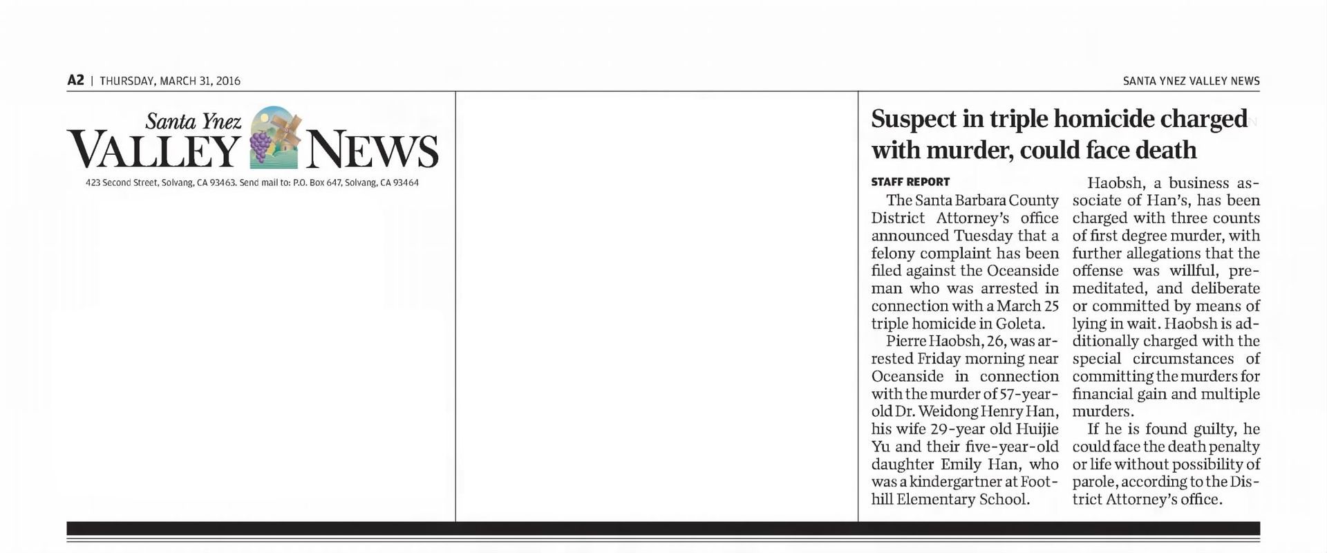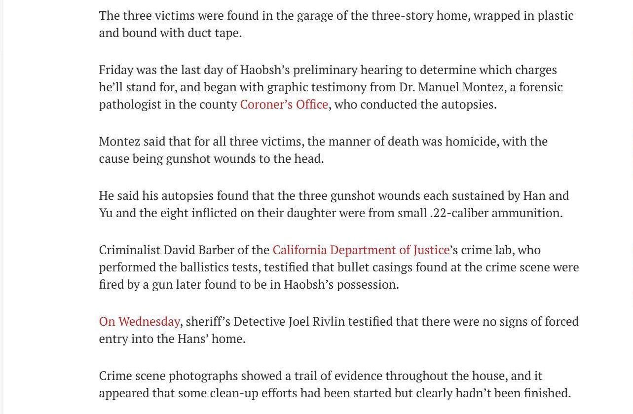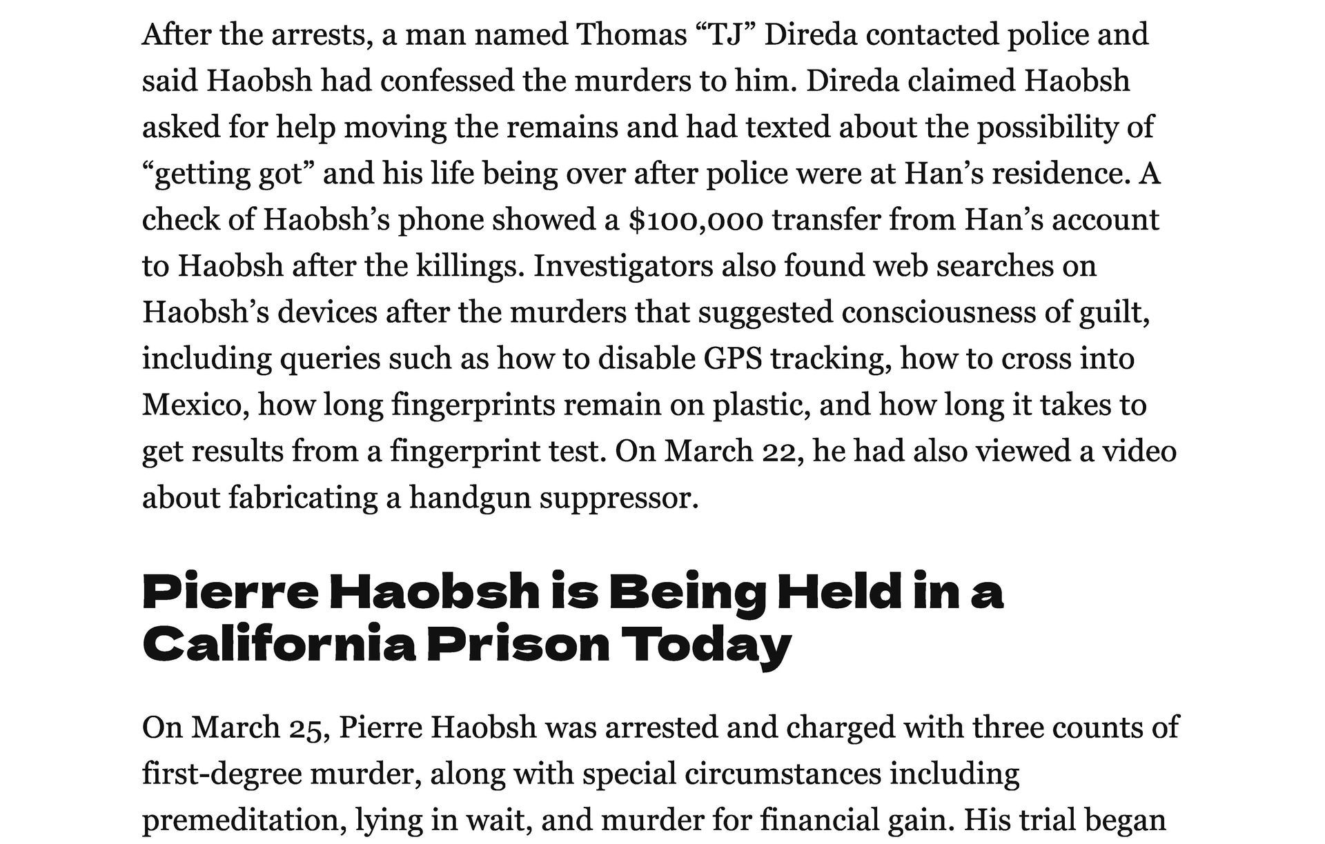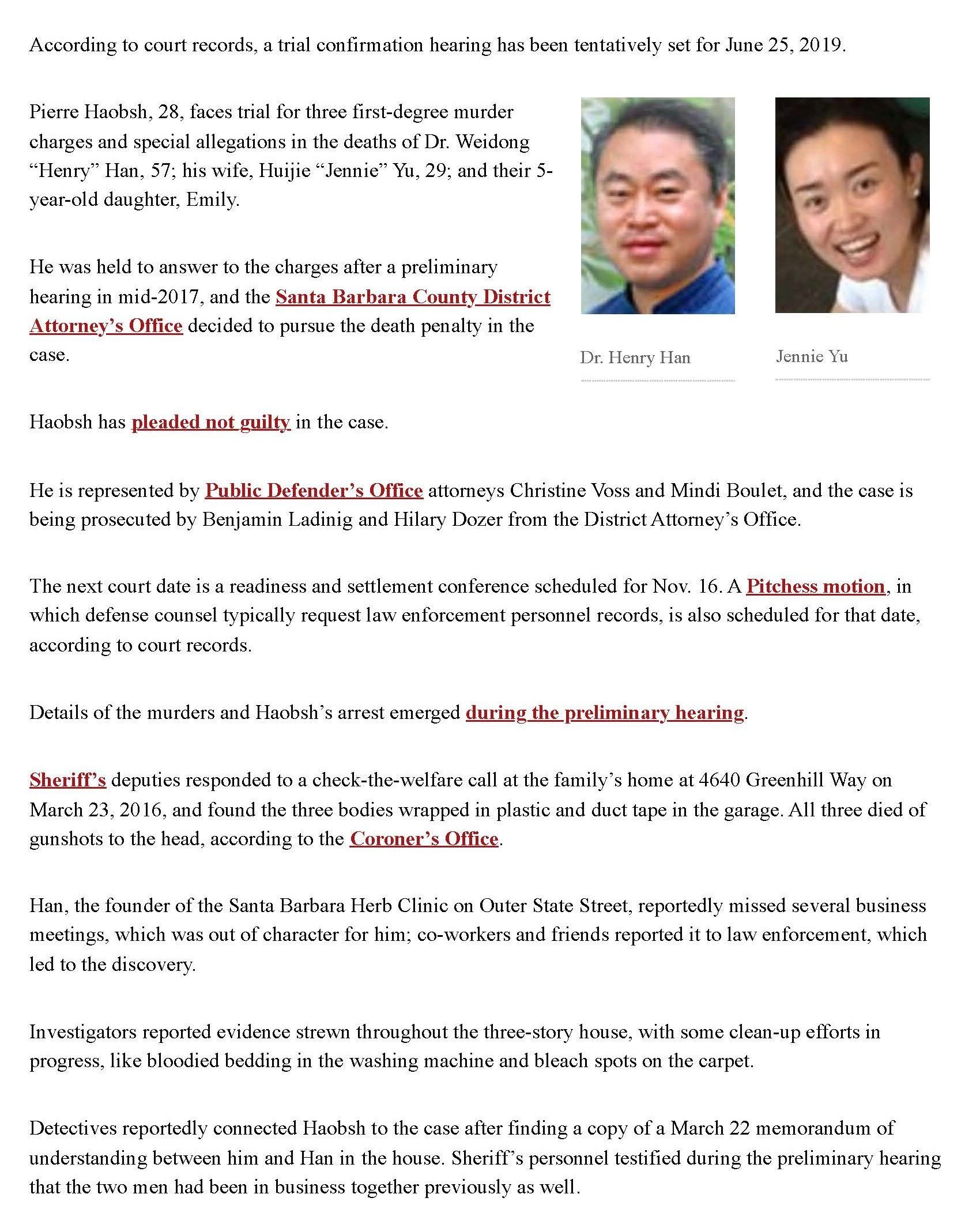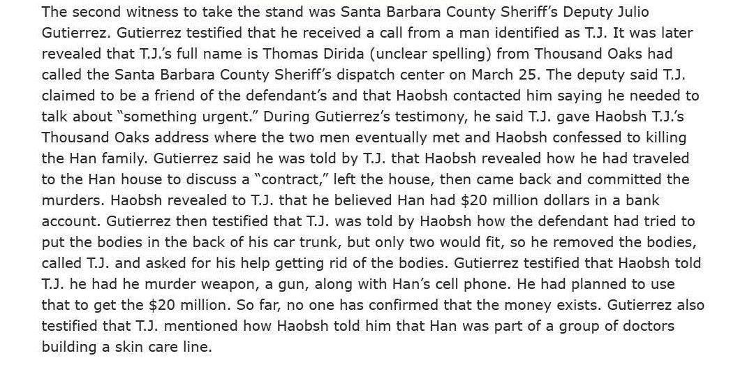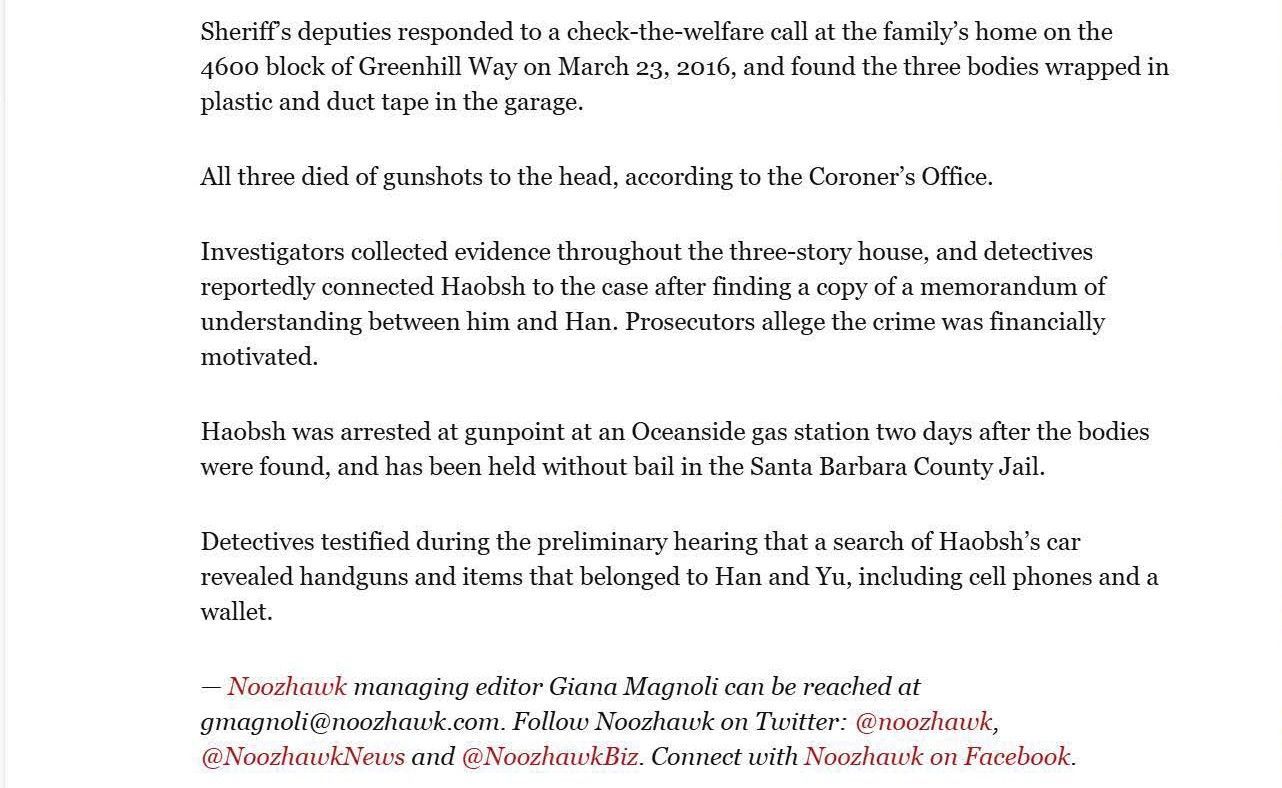 - Charges: Three counts of murder (Penal Code § 187(a)) with special circumstances of murder for financial gain (Penal Code § 190.2(a)(1)) and multiple murder (Penal Code § 190.2(a)(3), as well as a great bodily injury enhancement (Penal Code § 12022.7).