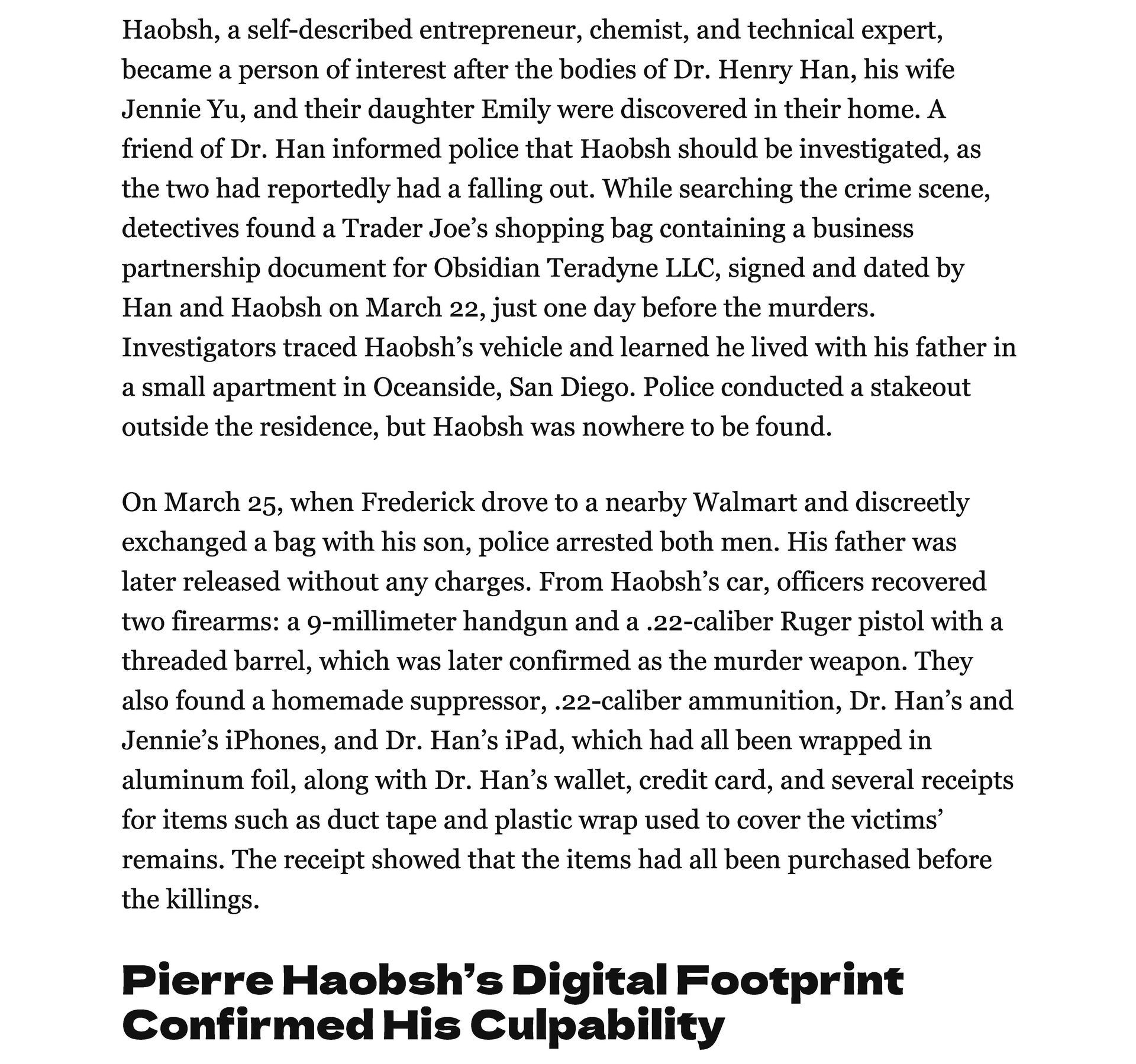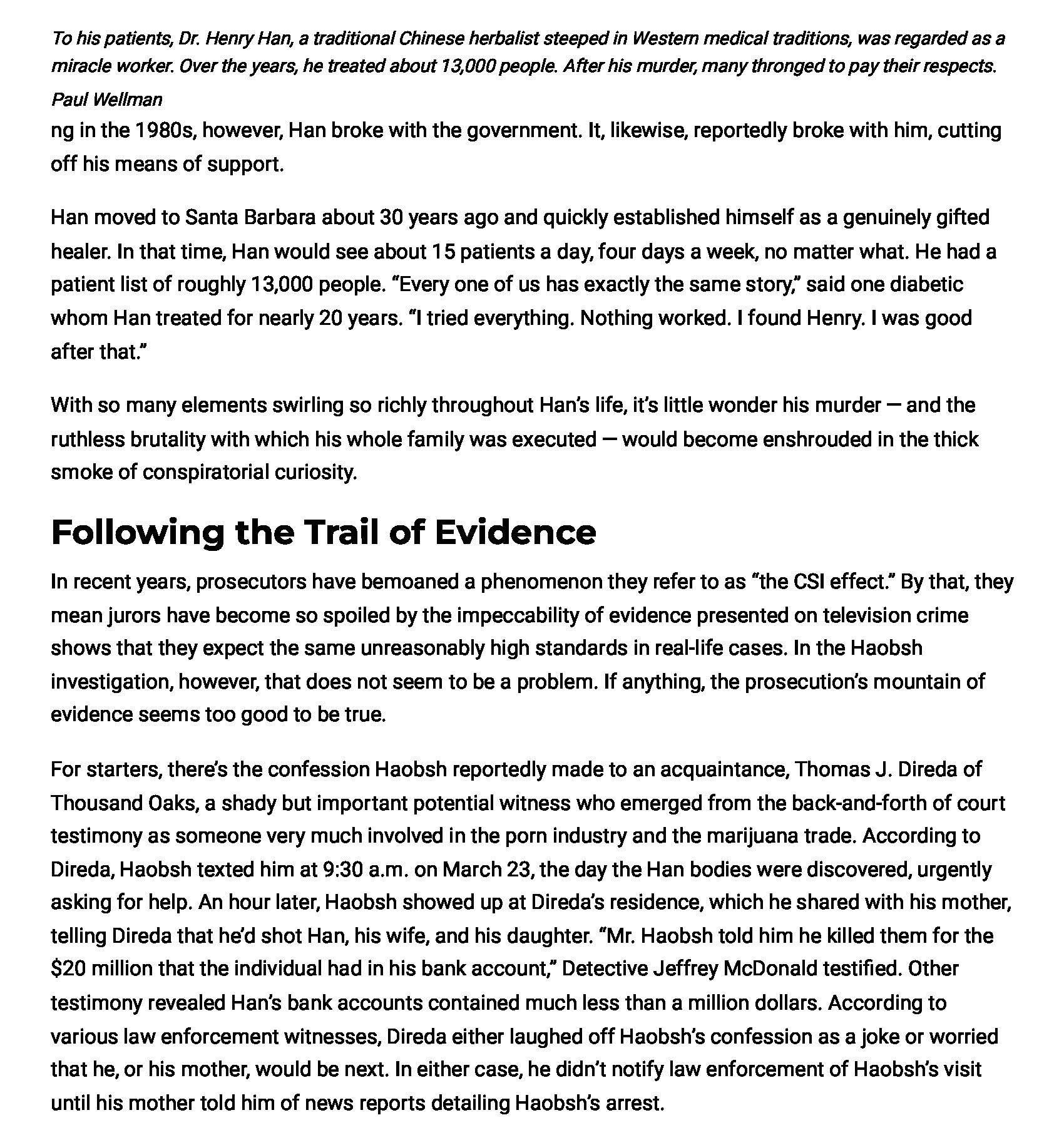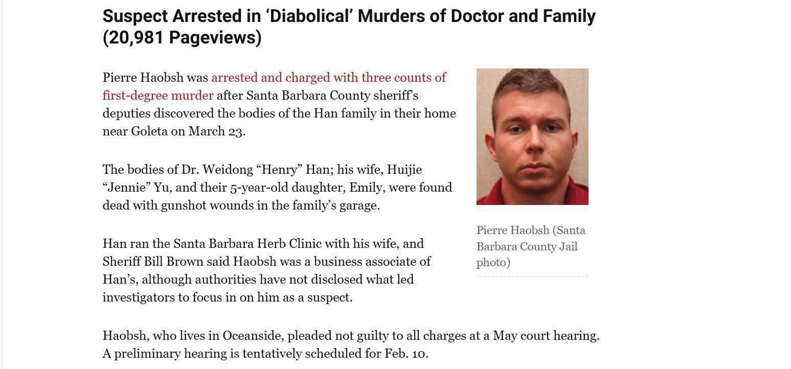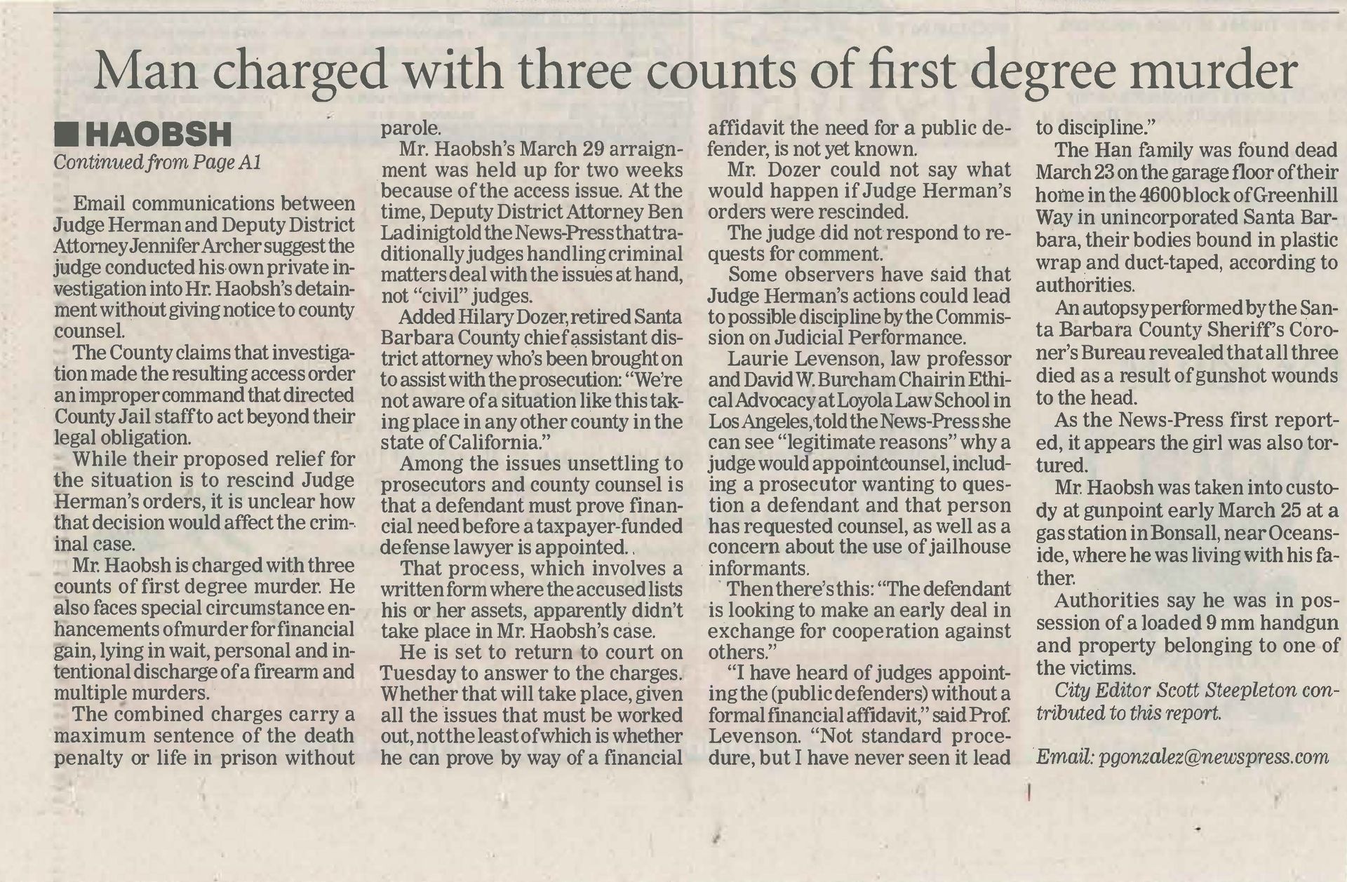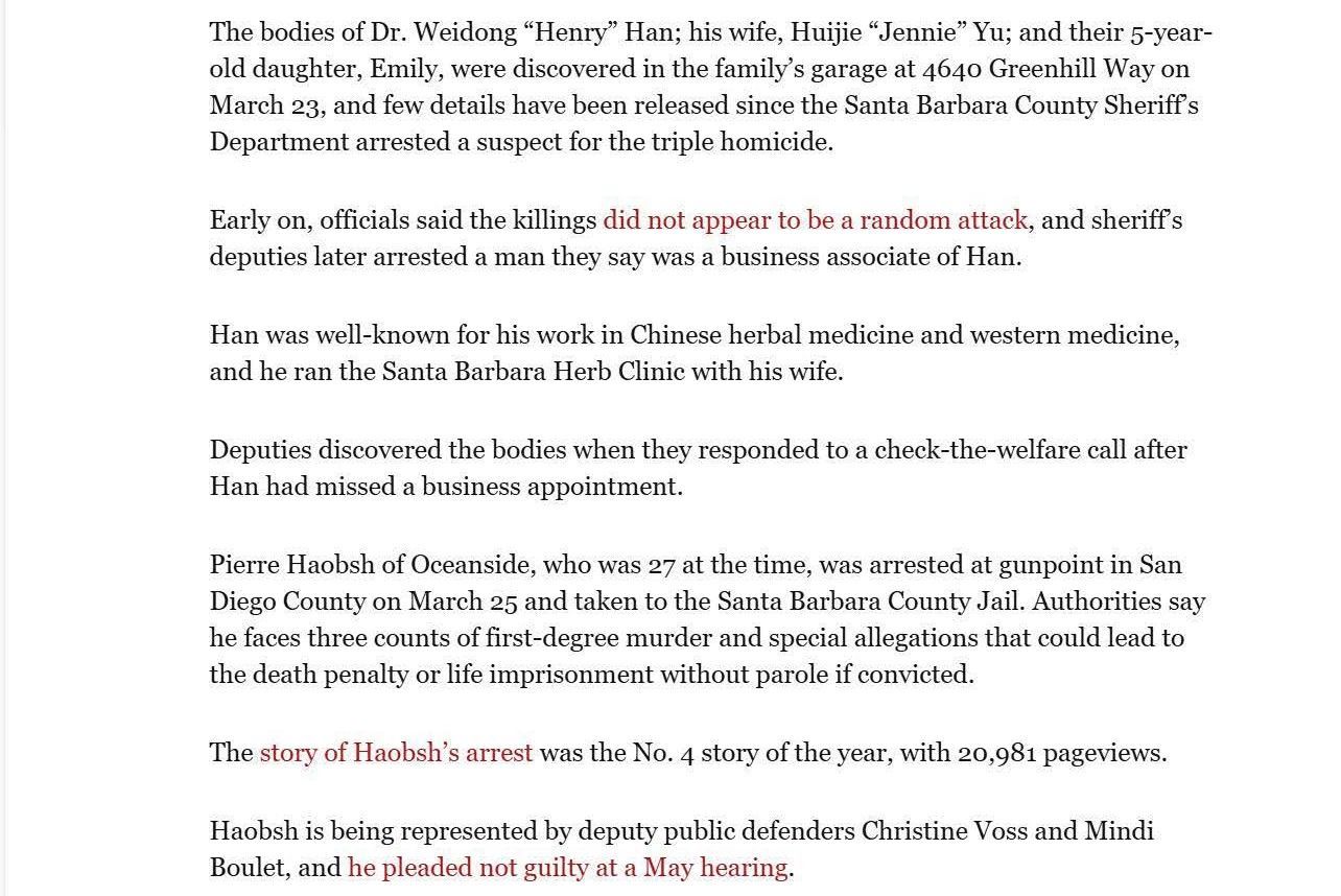 - Charges: Three counts of murder (Penal Code § 187(a)) with special circumstances of murder for financial gain (Penal Code § 190.2(a)(1)) and multiple murder (Penal Code § 190.2(a)(3), as well as a great bodily injury enhancement (Penal Code § 12022.7).