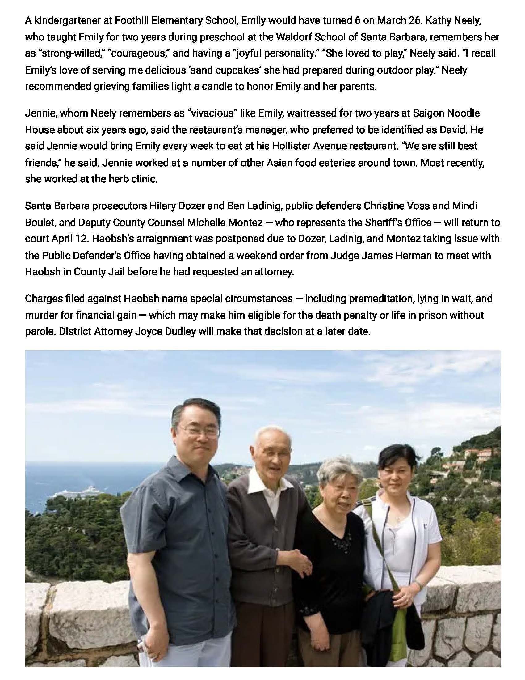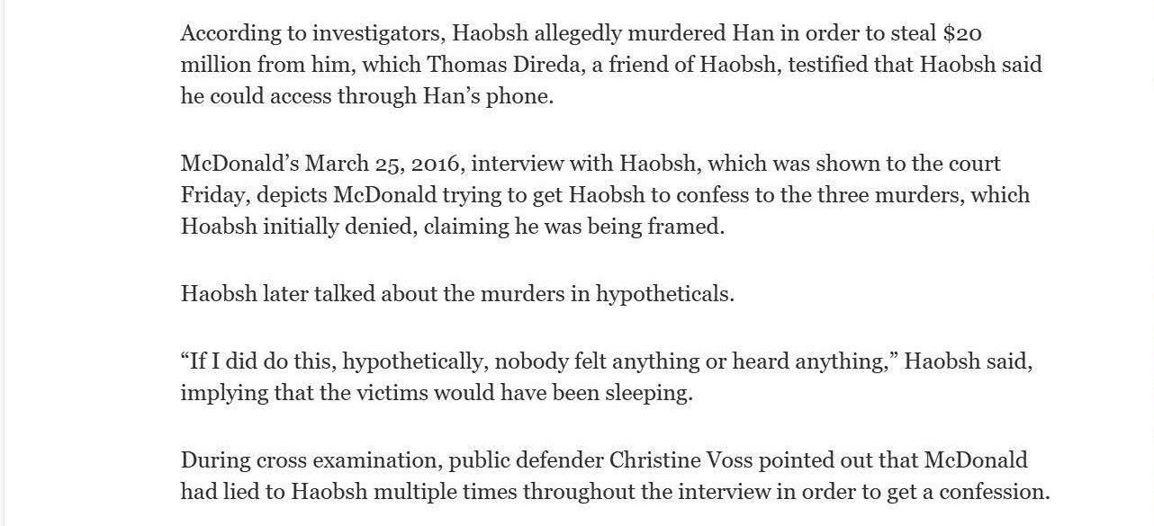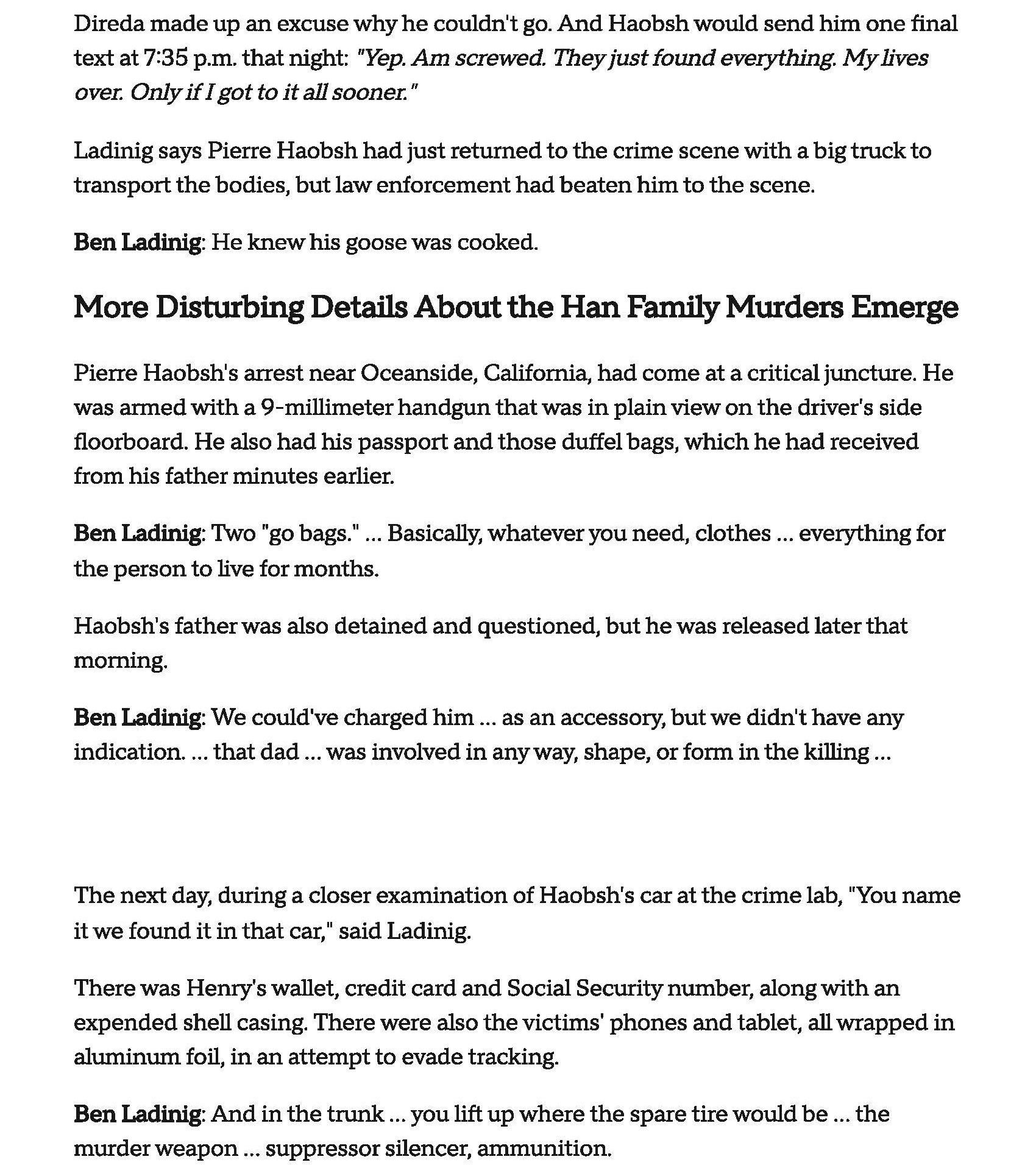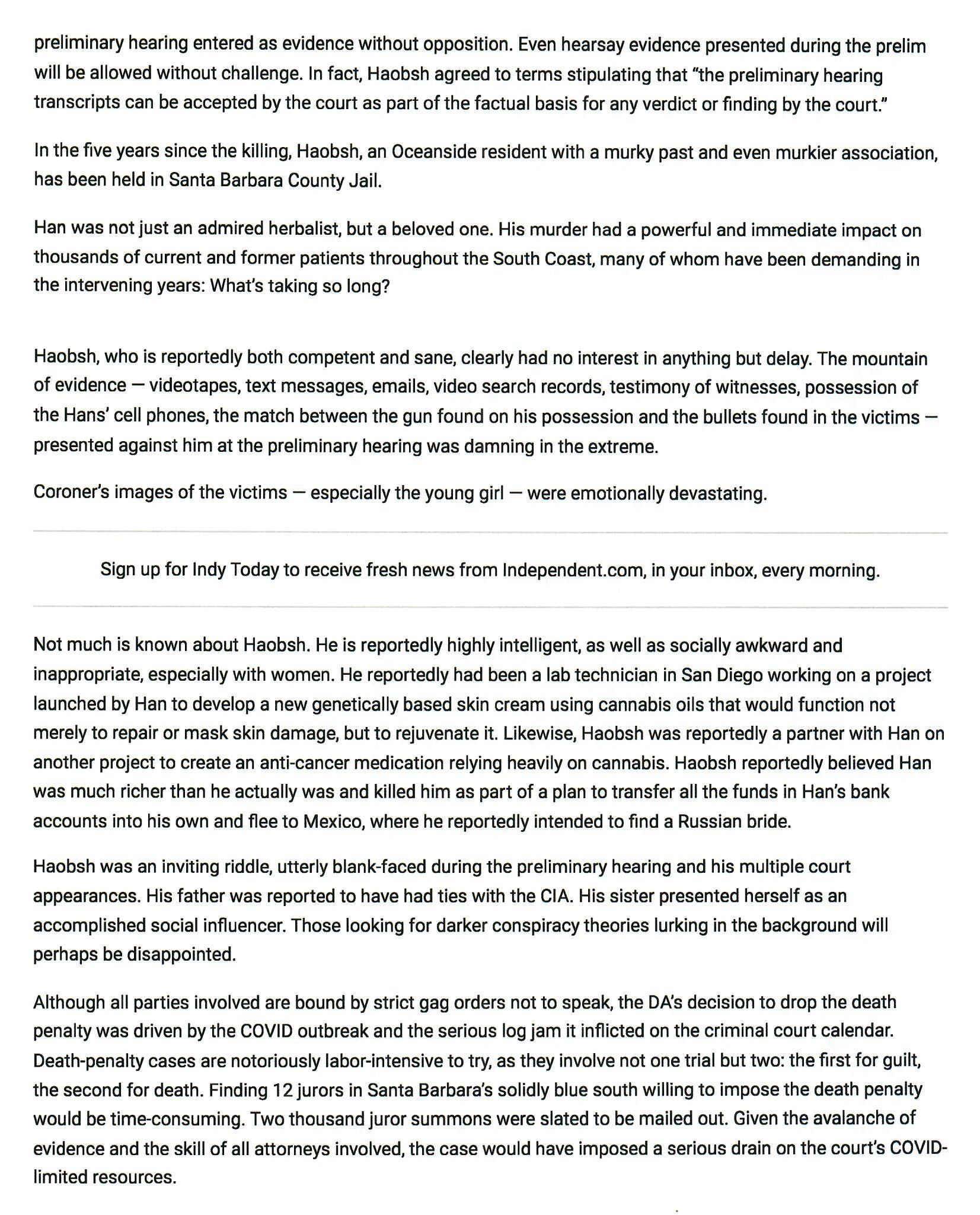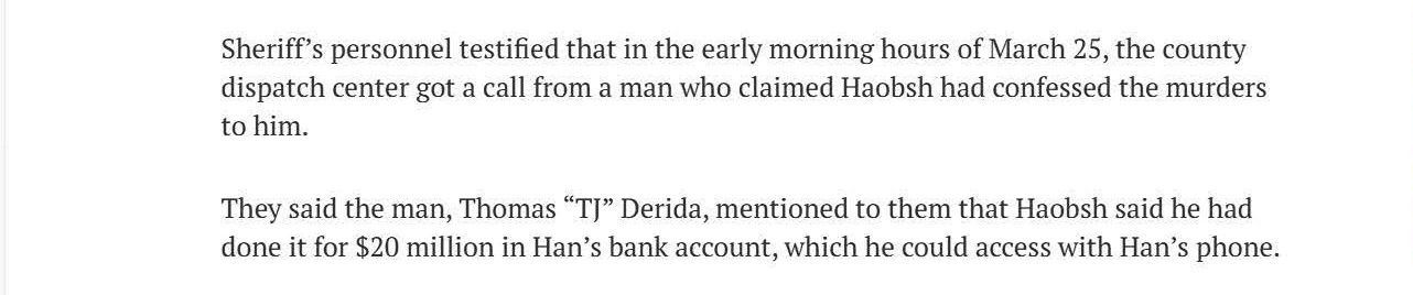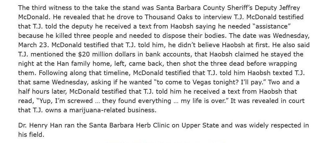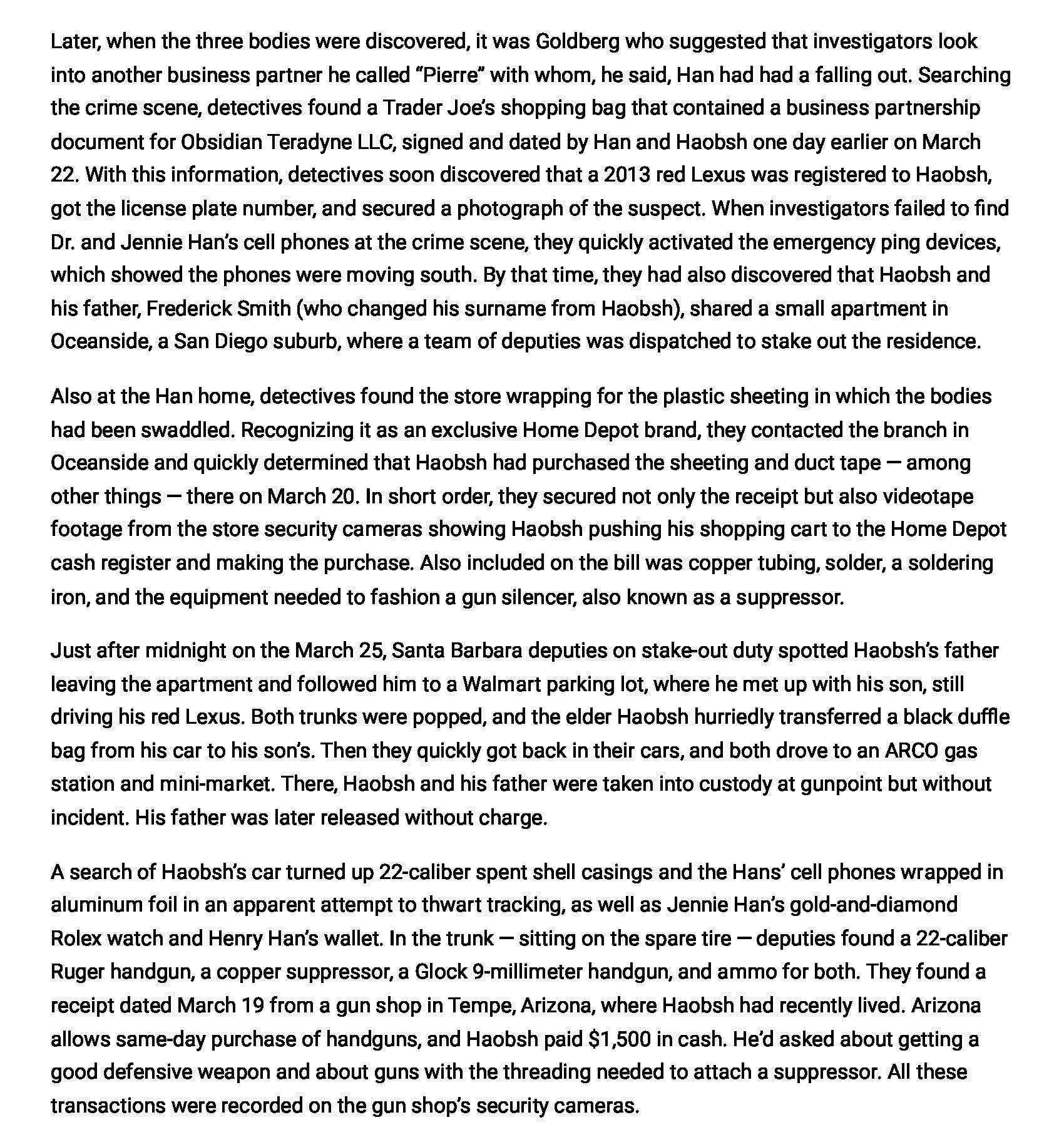 - Charges: Three counts of murder (Penal Code § 187(a)) with special circumstances of murder for financial gain (Penal Code § 190.2(a)(1)) and multiple murder (Penal Code § 190.2(a)(3), as well as a great bodily injury enhancement (Penal Code § 12022.7).