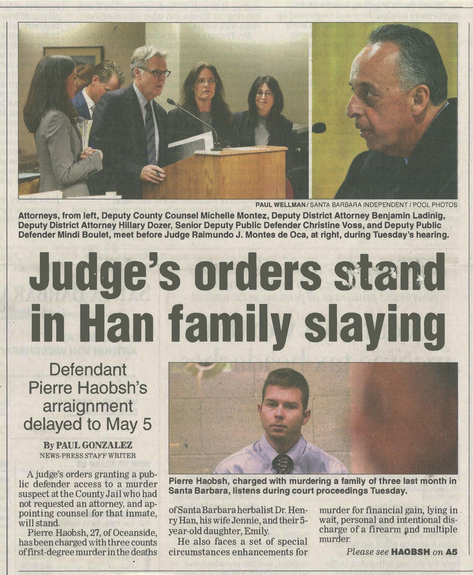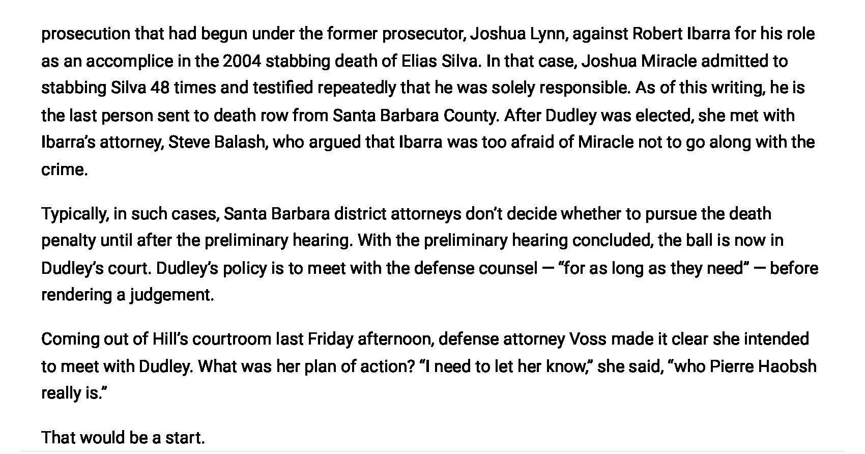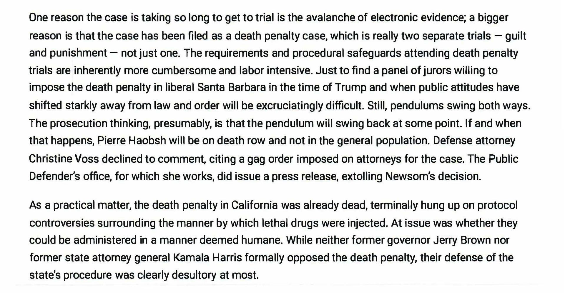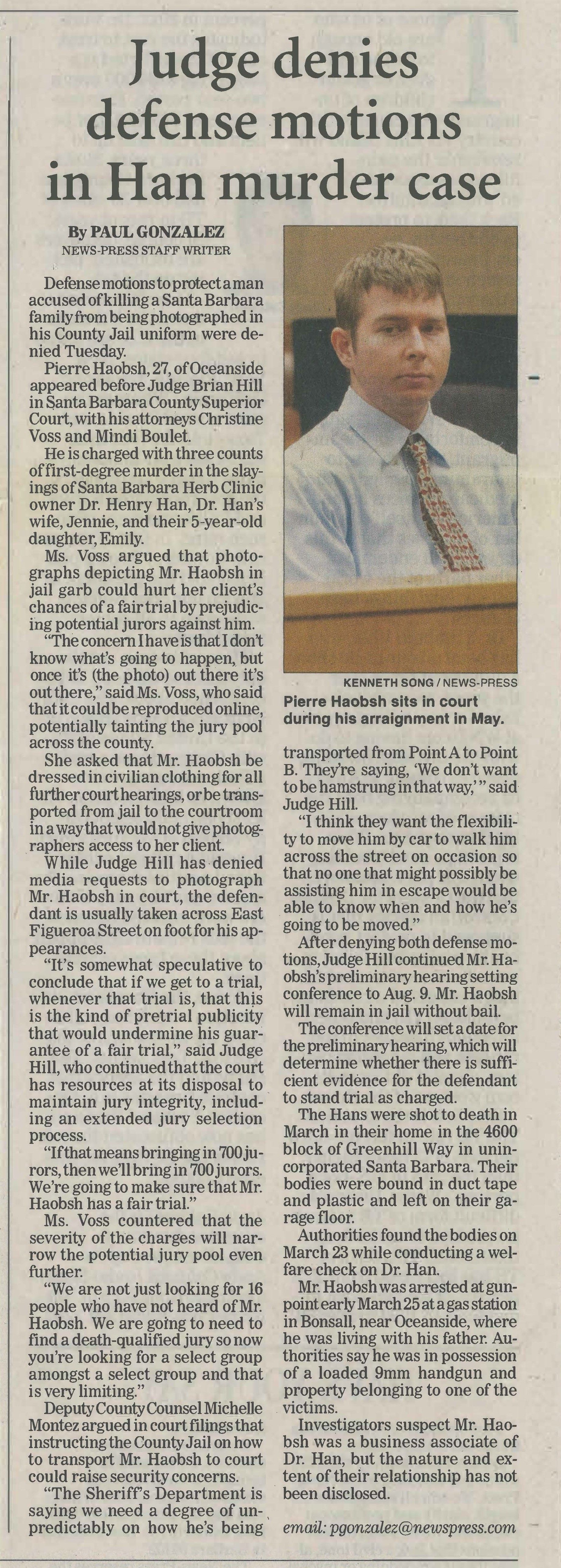One of the highlights of the case was that after Pierre's preliminary hearing Christine found out that the district attorney was going to give a press conference after Pierre's court date. She know that meant that the district attorney was going to announce that they were going to seek the death penalty, and then have a press conference to make a statement that would only taint potential jurors. Christine then, on the fly, filed a motion for a gag order, which the judge granted, the district attorney had to cancel the press conference.