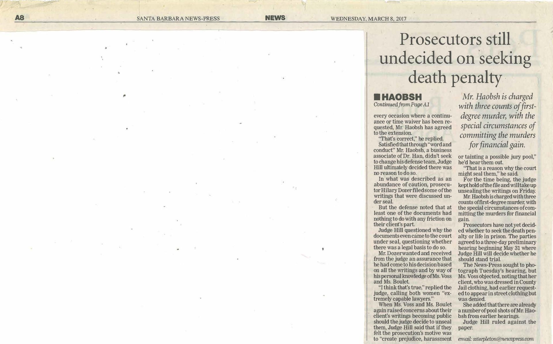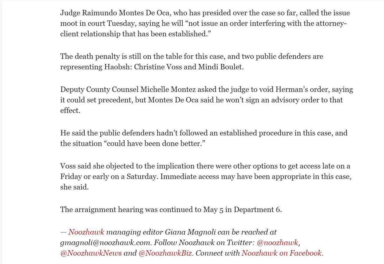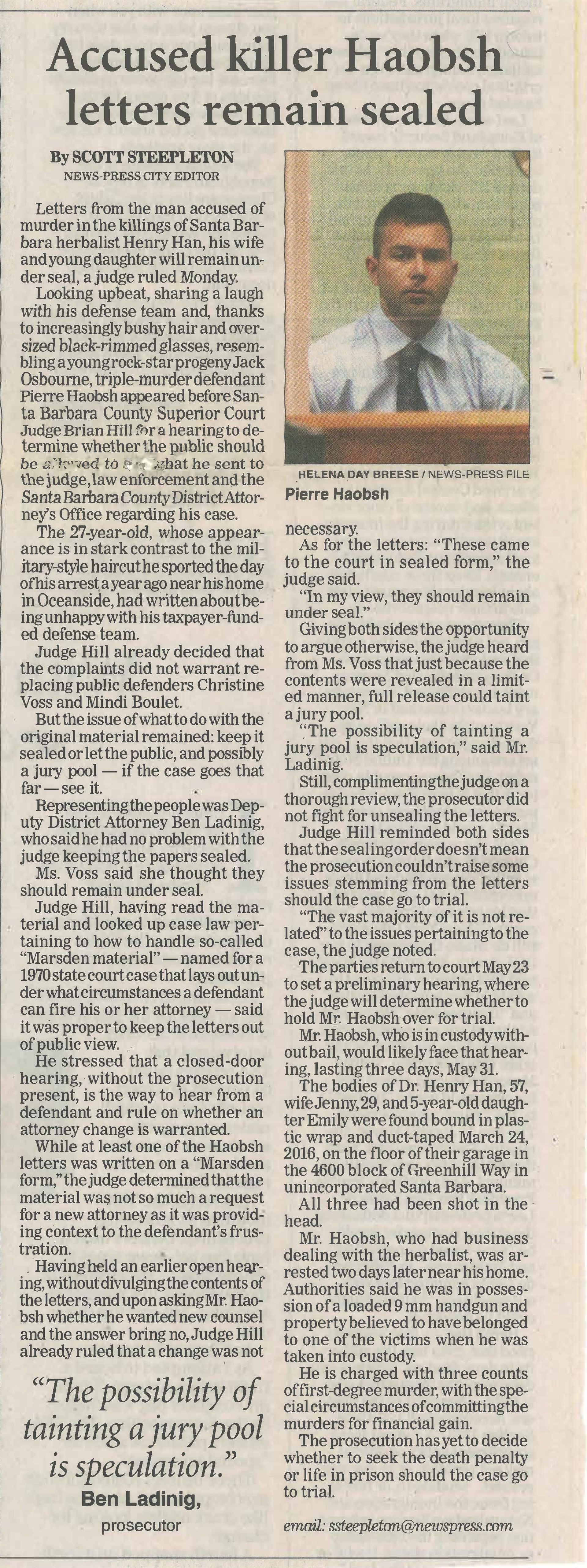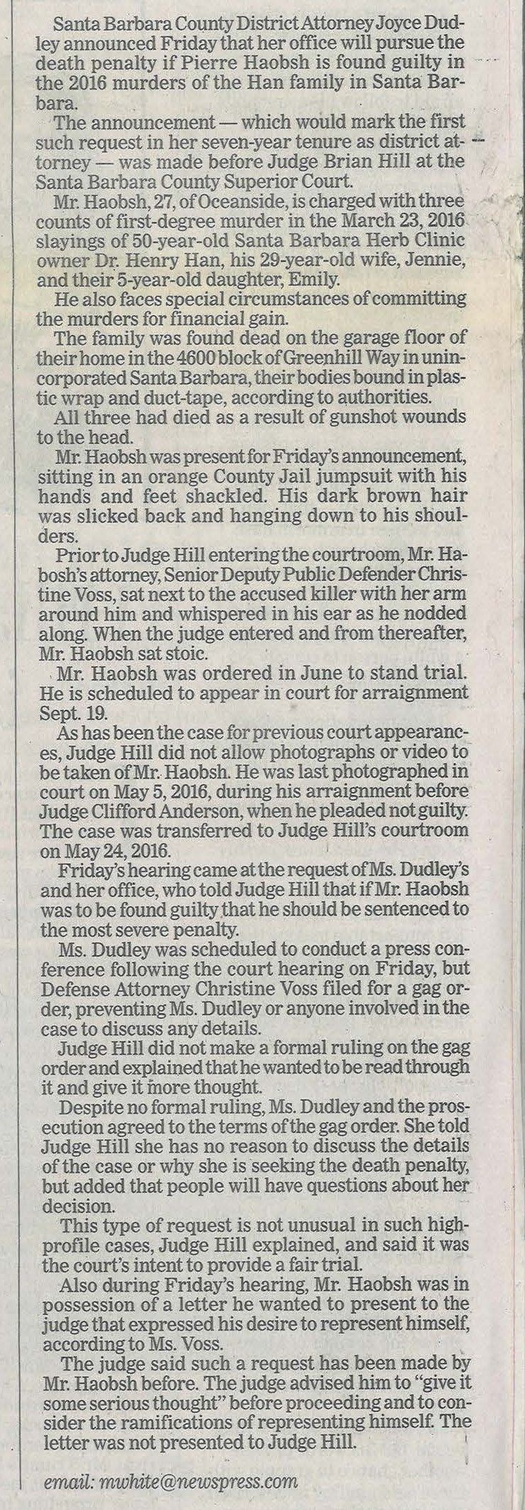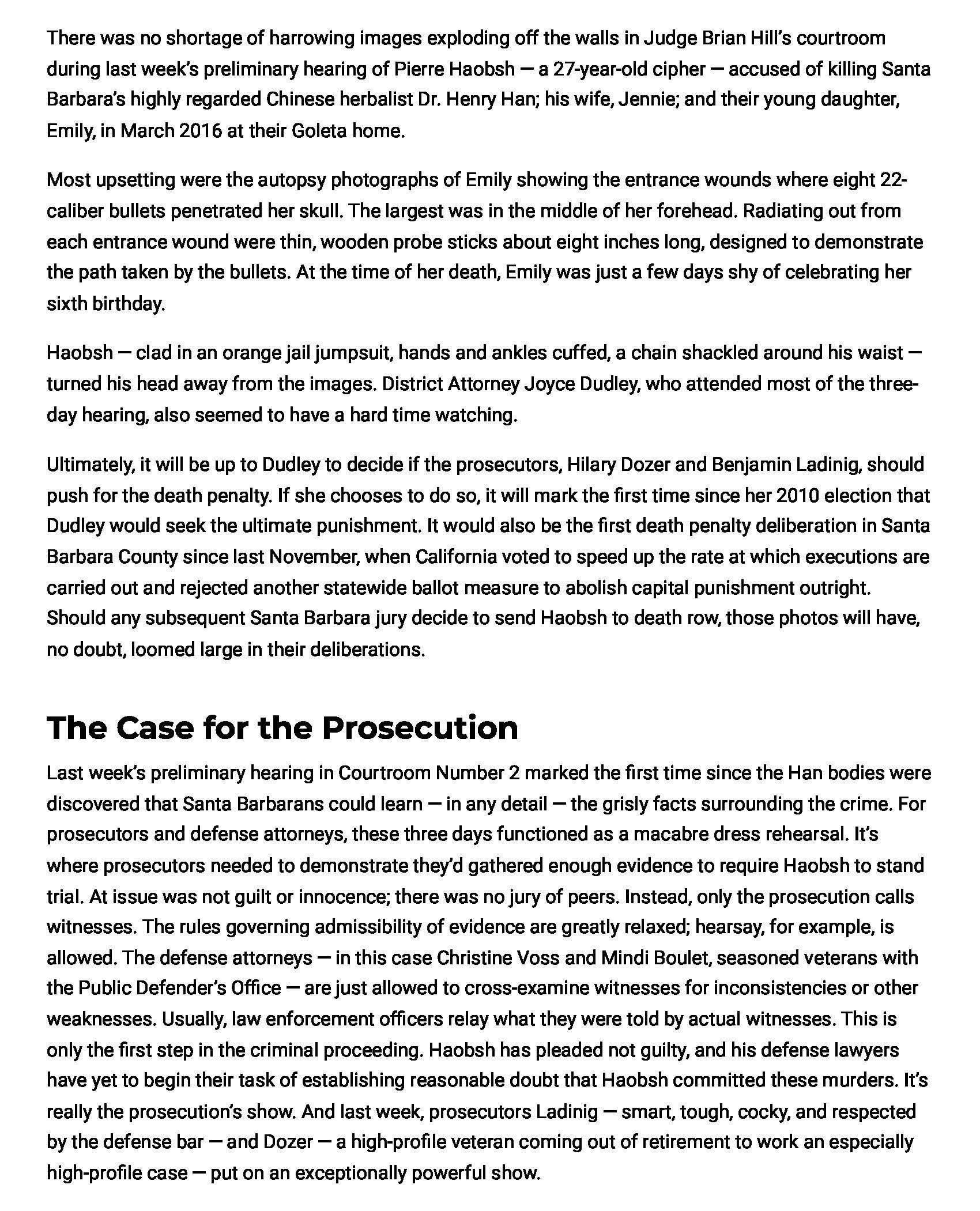 One of the highlights of the case was that after Pierre's preliminary hearing Christine found out that the district attorney was going to give a press conference after Pierre's court date. She know that meant that the district attorney was going to announce that they were going to seek the death penalty, and then have a press conference to make a statement that would only taint potential jurors. Christine then, on the fly, filed a motion for a gag order, which the judge granted, the district attorney had to cancel the press conference.