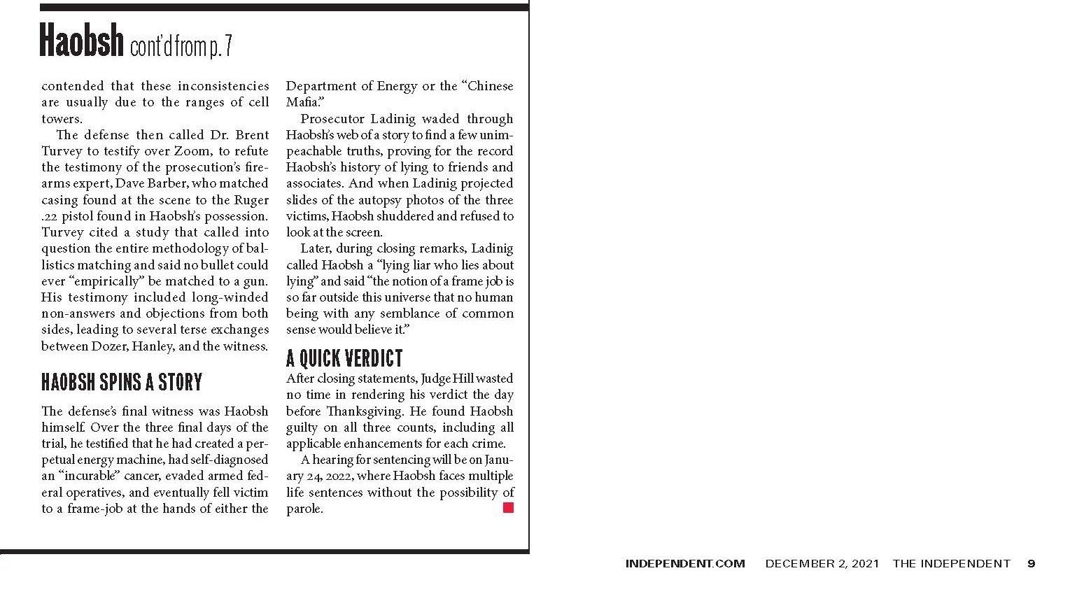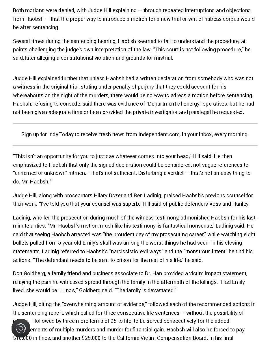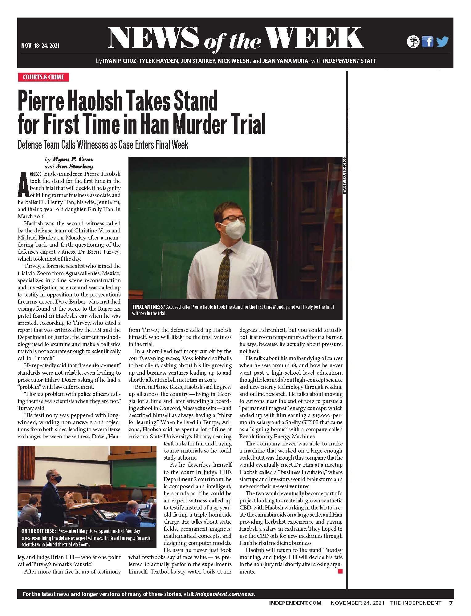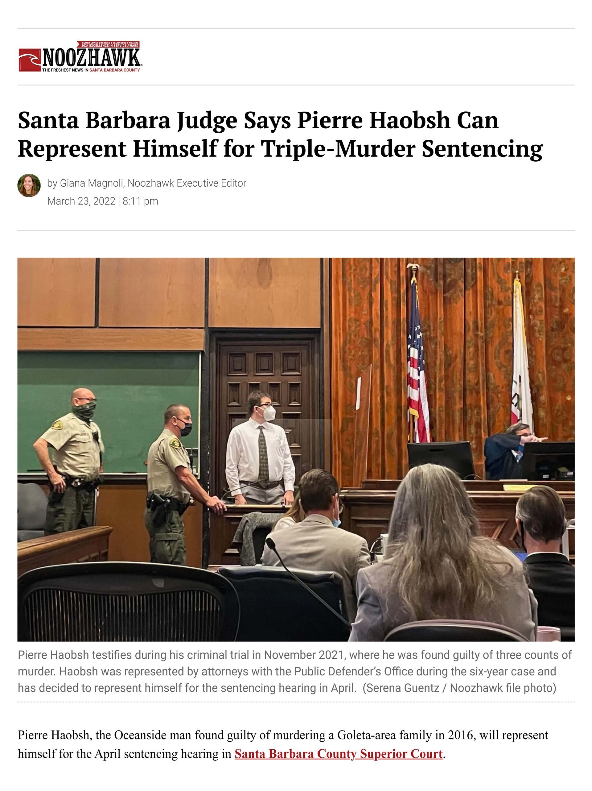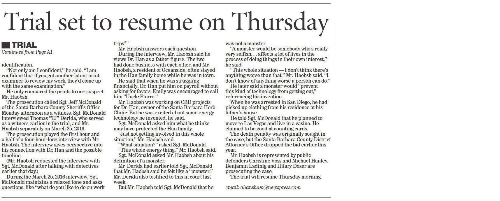 This was a triple murder case. Pierre was facing the Death Penalty. Christine started out, as is the case in all capital murders, by trying to convince the district attorney to not seek death. When that didn't work she made sure that everything was prepared for trial. Right before the trial started there was agreement between the district attorney and Christine to remove the death penalty from the case. Pierre and Christine agreed to elect a court trial (a trial with just a judge instead of a jury) and the district attorney agreed to remove the death penalty from the case. Pierre testified at his trial to what the press called, "A fantastical story" of the Department of Energy committing the murders to frame him. Pierre's testimony was that he had invented a perpetual energy machine and that the Department of Energy then set out to stop him because his invention would bankrupt the fossil fuel industry, which the Department of Energy was intent on protecting. He testified about a Department energy tactical team attempting to kill him, but that he killed the entire tactical team before they could kill him, and that he then fled the scene, and when he later returned the bodies of the tactical team members had been removed and the scene was cleaned up so that no one would be able tell that there had been a multiple fatality five on one gunfight. He also testified that although he did not make it through Army boot camp, he was recruited to be a secret government agent and was trained at an underground black ops site. When asked why there was no record of his work as a secret agent, his answer that it was of course all classified. When asked during the trial if he's mentally ill, he testified that was not.
