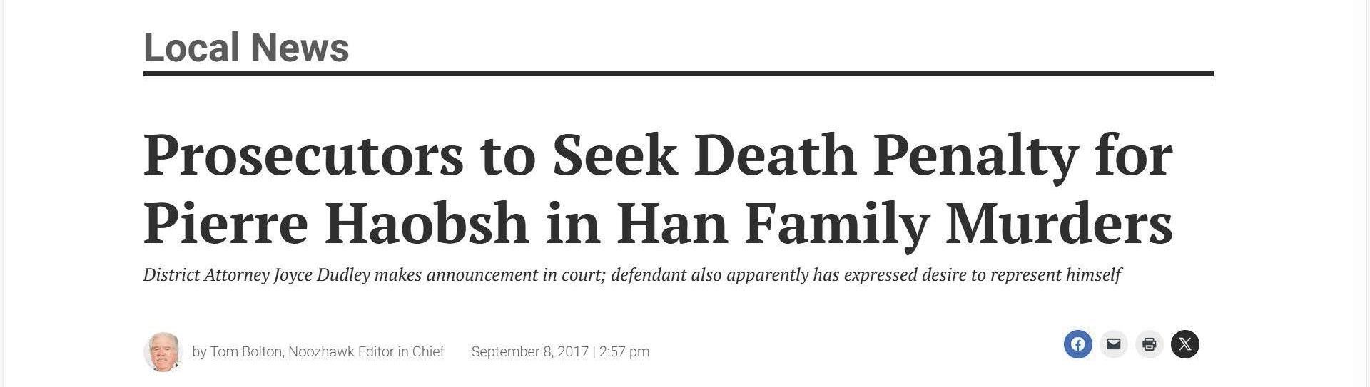 - Outcome: As the trial was beginning the death penalty was withdrawn in exchange for waiver of jury for his trial.