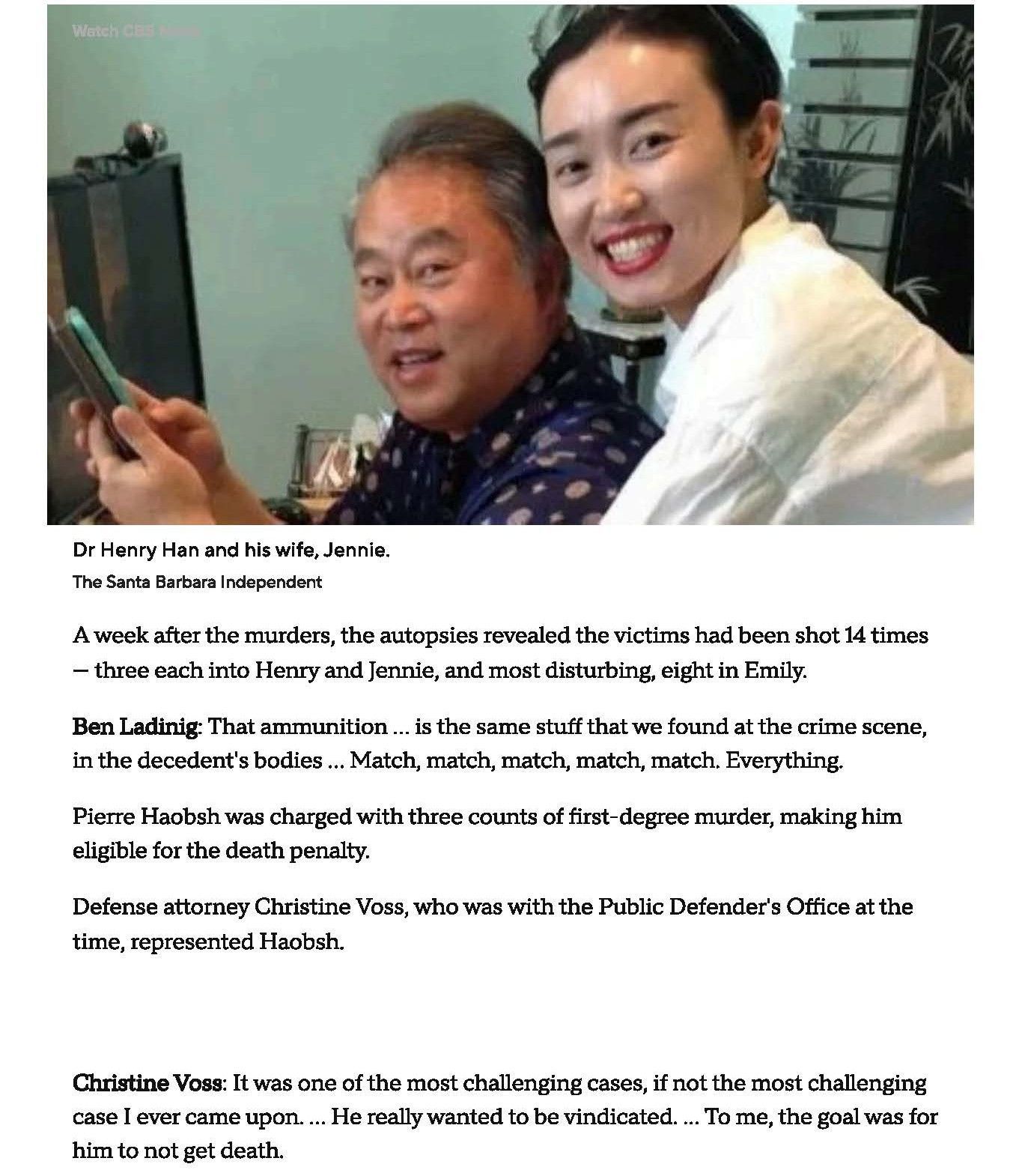 This was a triple murder case. Pierre was facing the Death Penalty. Christine started out, as is the case in all capital murders, by trying to convince the district attorney to not seek death. When that didn't work she made sure that everything was prepared for trial. Right before the trial started there was agreement between the district attorney and Christine to remove the death penalty from the case. Pierre and Christine agreed to waive jury and the district attorney agreed to remove the death penalty from the case. Pierre testified at his trial to what the press called, "A fantastical story" of the Department of Energy committing the murders to frame him. Pierre's testimony was that he had invented a perpetual energy machine and that the Department of Energy then set out to stop him because his invention would bankrupt the fossil fuel industry, which the Department of Energy was intent on protecting. He testified about a Department energy tactical team attempting to kill him, but that he killed the entire tactical team before they could kill him, and that he then fled the scene, and when he later returned the bodies of the tactical team members had been removed and the scene was cleaned up so that no one would be able tell that there had been a fatal five on one gunfight. He also testified that although he did not make it through Army boot camp, he was recruited to be a secret government agent and was trained at an underground black ops site. When asked why there was no record of his work as a secret agent, his answer that it was of course all classified. When asked during the trial if he's mentally ill, he testified that was not.