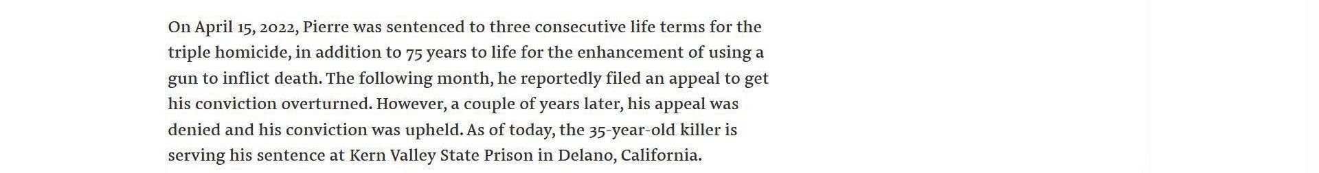 Christine saved Pierre from Death Row, but he was convicted of all three murders and sentenced to life in prison without the possibility of parole. The trial was extensively covered by the press.