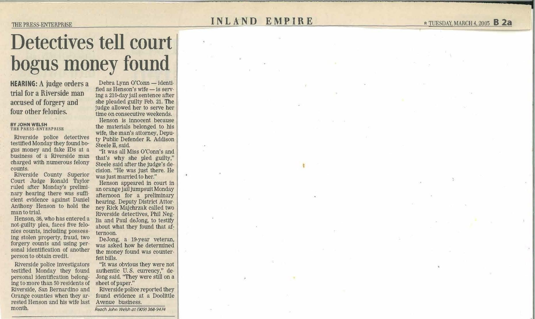 Daniel H. RIF108333 Addison did his preliminary hearing which got press Coverage