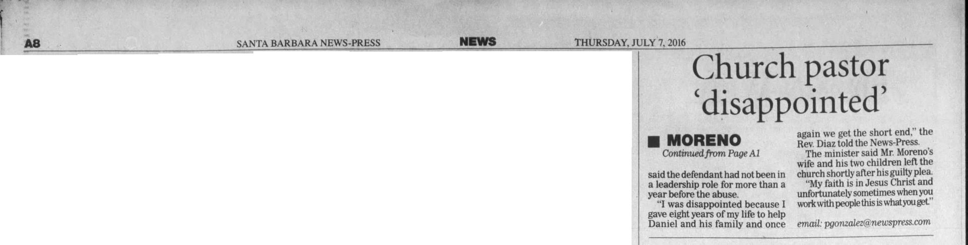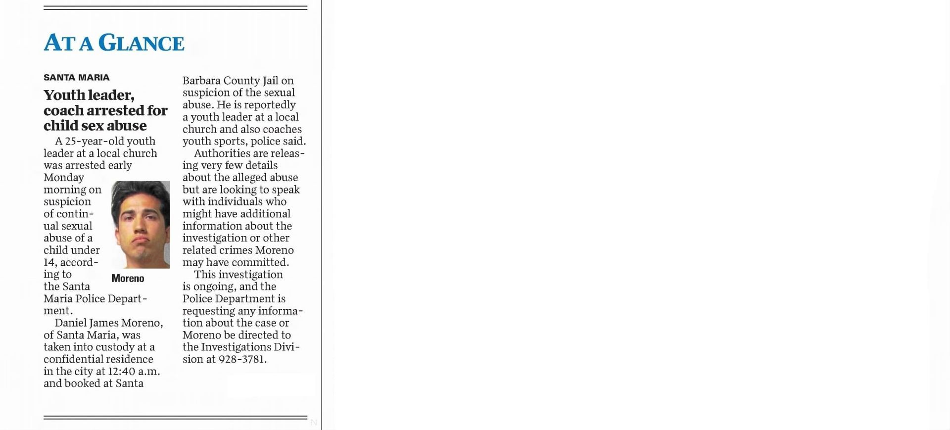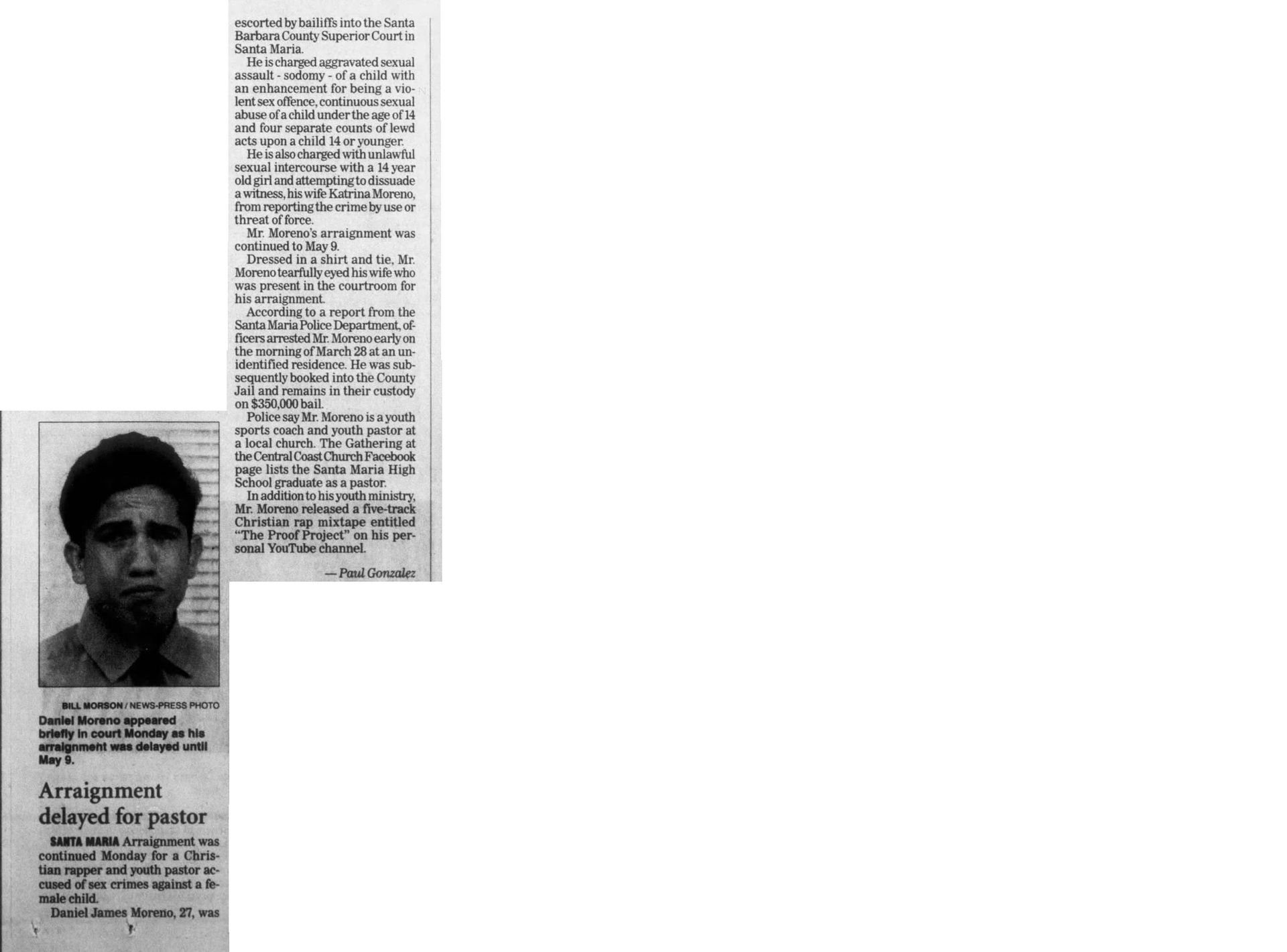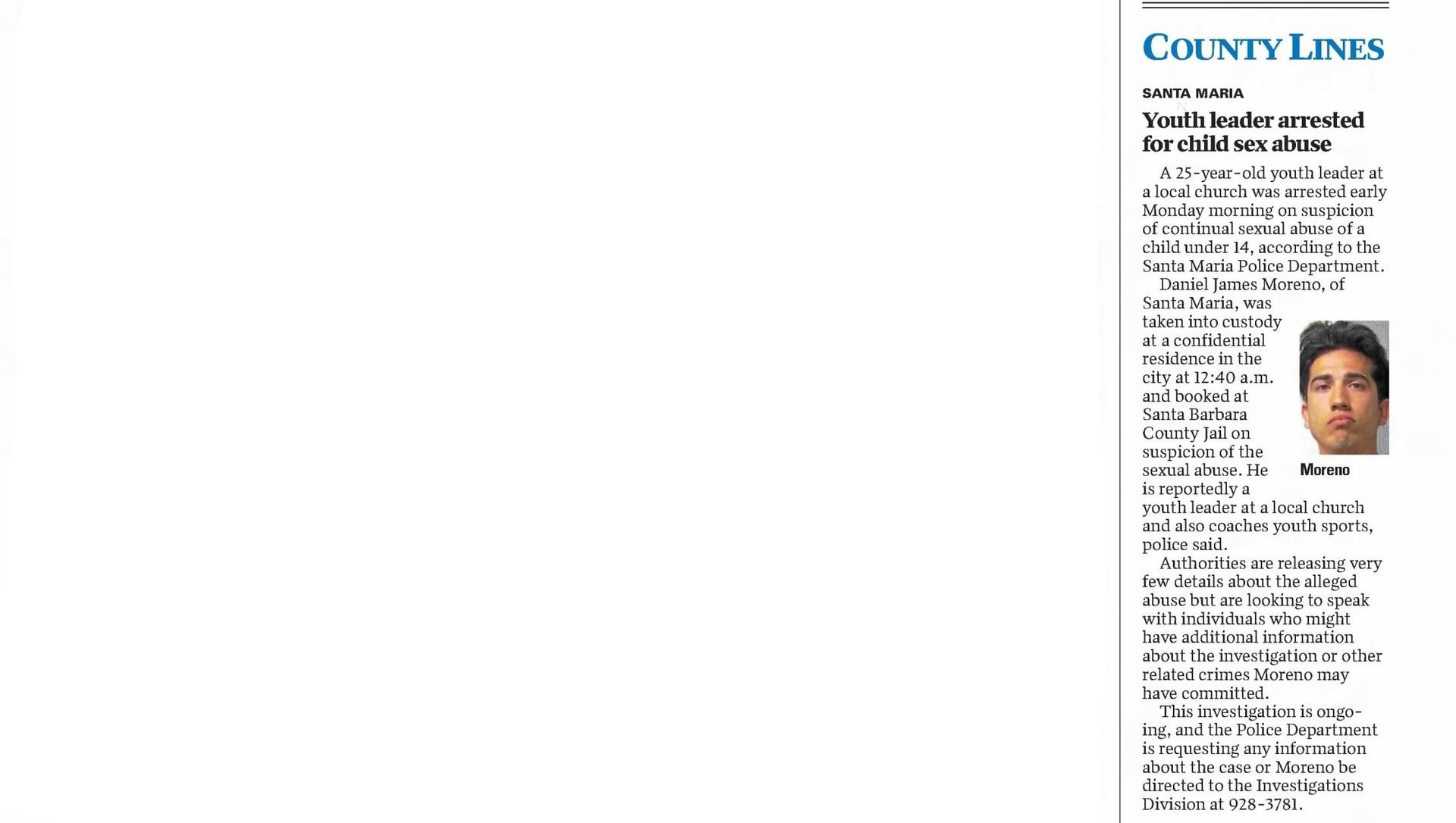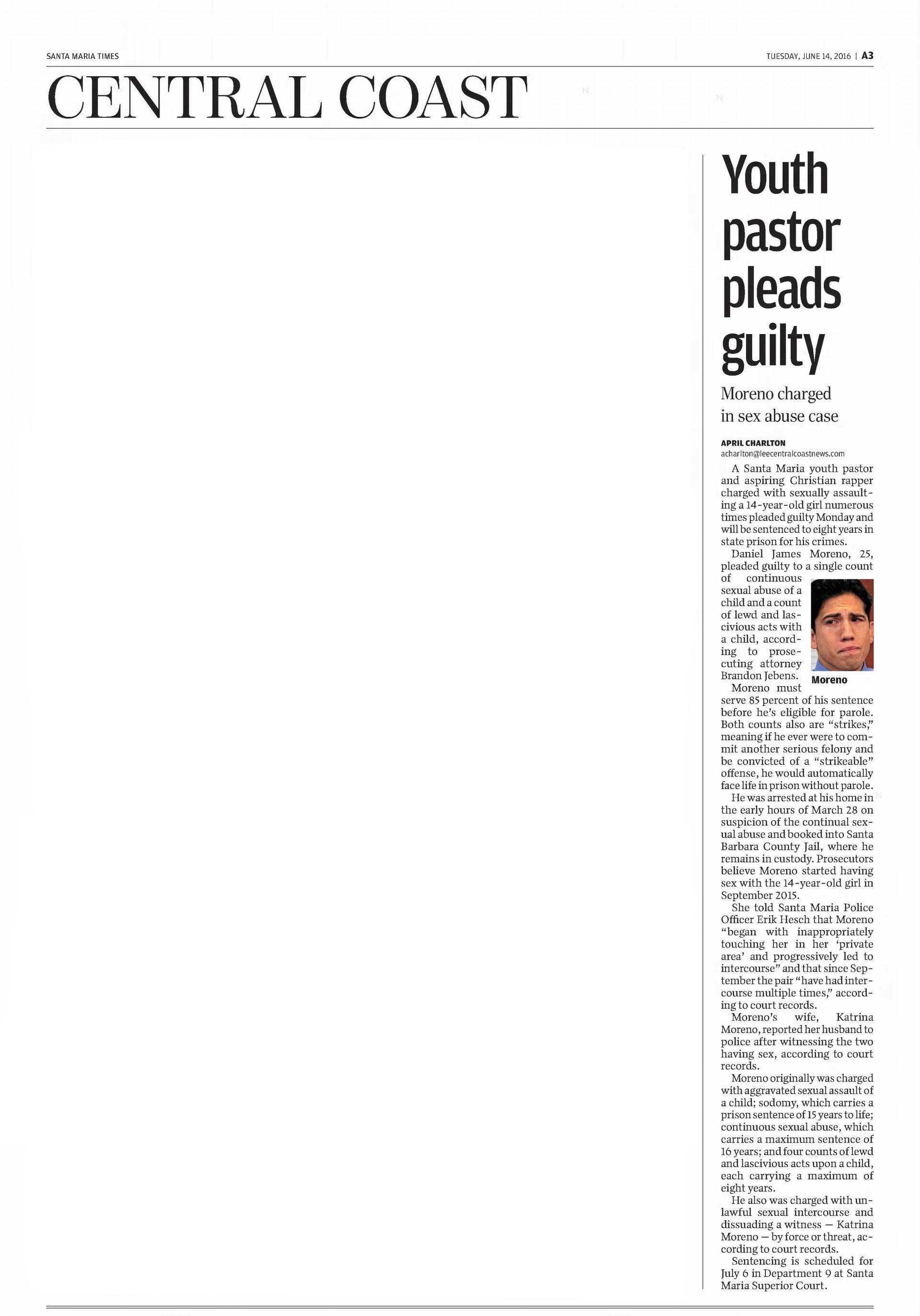 Defendants In Marilyn Pharis's Death Make Brief Court Appearance | November 19, 2015 | Noozhawk | Janene Scully Goleta-Area Man Accused of Killing His Family Enters Not Guilty by Reason of Insanity | October 21, 2015 | Noozhawk | Lara Cooper Arraignment Delayed for Former Hancock College Basketball Players Charged With Murder | October 19, 2015 | Noozhawk | Janene Scully At a Glance: Santa Maria: Arraignment continued again in Lompoc murder case | September 30, 2015 | Lompoc Record Men accused in Marilyn Pharis attack in court, case continued: New attorney on board as Public Defender's Office prepares for potential death penalty defense | September 17, 2015 | Santa Ynes Valley News | Kyle Harding Men accused in Marilyn Pharis attack in court, case continued: New attorney on board as Public Defender's Office prepares for potential death penalty defense | September 17, 2015 | Santa Maria Times | Kyle Harding Psychiatric Search Narrows in Holzer Case: Five Forensic Experts Considered to Perform Evaluation | September 16, 2015 | Santa Barbara Independent | Kelsey Knorp Prosecution in Lompoc murder case focuses on social media activity | September 1, 2015 | Santa Maria Times | Kenny Lindberg Inept Inmate Care by Corizon? Supervisors Must Decide Path for County Inmates' Health | August 20, 2015 | Santa Barbara Independent | Kelsey Brugger Defense continues cross-examination of boy, 14 | August 20, 2015 | Santa Barbara Times | Kenny Lindberg Man Accused of Murdering Family May Enter Insanity Plea in Santa Barbara Court | August 11, 2015 | Noozhawk | Lara Cooper Last U-Haul defendant sentenced | August 3, 2015 | Santa Ynez Valley News | Ryah Cooley Last U-Haul defendant sentenced | August 3, 2015 | Santa Maria Times | Ryah Cooley Man accused of ordering murder from behind bars appears in court: Three others enter not-guilty pleas, will proceed to trial | July 21, 2015 | Santa Maria Times | Kyle Harding Judge Rules Former Allan Hancock College Basketball Players to Be Tried on Murder, Other Charges | June 24, 2015 | Noozhawk | Janene Scully Preliminary Hearing Begins for Former Hancock College Basketball Players Charged with Murder: Ali Mohammed and Lavell White are accused of the fatal shooting of a 23-year-0ld man in Santa Maria during an alleged drug deal | June 23, 2015 | Noozhawk | Janene Scully Preliminary hearing set in robbery and carjacking case | May 27, 2015 | Santa Maria Times | Kyle Harding Five Men Sentenced to Life in Prison Without Parole for Torture-Murder of Anthony Ibarra: Judge rules on numerous motions during the hearing, during which family members of Ibarra speak out about 'the nightmare that will never end | May 22, 2015 | Noozhawk | Janene Scully Trio Held to Answer on Charges Related to Guadalupe Homicide | May 16, 2015 | Lompoc Record | Kyle Harding State Prison Inmate Accused of Orchestrating Murder of Santa Maria Man: Judge rules three other defendants should stand trial in the shooting of Javier Limon | May 15, 2015 | Noozhawk | Janene Scully 5 of 6 Defendants Found Guilty of First Degree Murder in U-Haul Trial: Sixth defendant pleads to kidnapping after mistrial declared | April 7, 2015 | Santa Maria Times | Kyle Harding 5 of 6 Defendants Found Guilty of First Degree Murder in U-Haul Trial: Sixth defendant pleads to kidnapping after mistrial declared | April 7, 2015 | Santa Ynez Valley News | Kyle Harding 5 Men Found Guilty in Santa Maria Torture-Murder Case: Jury in Ibarra case returns guilty verdicts against five of the six defendants | April 7, 2015 | Noozhawk | Janene Scully U-Haul juror dismissed, deliberations start over | March 31, 2015 | Santa Maria Times | Kyle Harding Jury Begins Deliberating in Santa Maria Torture-Murder Trial | March 24, 2015 | Noozhawk | Janene Scully U-Haul closing arguments continue | March 20, 2015 | Santa Maria Times | Kyle Harding U-Haul defense casts doubt on witness credibility | March 19, 2015 | Santa Maria Times | Kyle Harding County Lines: Santa Maria: U-Haul defense casts doubt on witness credibility | March 19, 2015 | Santa Maria Times No hearing yet for Hancock College basketball players | March 16, 2015 | Santa Maria Times | Staff Report Sentencing Hearing an Explosive Ending to Santa Barbara County's First Human Trafficking Trial: Brannon Lawrence Pitcher, found guilty by a jury of prostituting a teen girl, is kicked out of the courtroom for shouting at the judge | March 13, 2015 | Noozhawk | Lara Cooper Second Defendant Testifies in Ibarra Murder Trial | March 13, 2015 | Noozhawk | Janene Scully Second U-Haul Defendant Testifies, Counters Allegations | March 12, 2015 | Lompoc Record | Kyle Harding Sentencing Delayed in Human Trafficking Case | March 8, 2015 | Santa Barbara Independent | Colleen Flaherty Cameron Oliver Arraigned on Murder Charges is Drunk Driving Crash | March 8, 201 5 | News Channel 12-3-11 | News Channel 3-12 Week 8: Santa Maria Ibarra Murder Trial | March 7, 2015 | New Channel 12-3-11 | News Channel 3-12 Defendant testifies he was not present when Anthony Ibarra died | March 6, 2015 | Santa Maria Times | Kyle Harding U-Haul Defendant Takes the Stand | March 5, 2015 | Santa Maria Times | Kyle Harding Defendant Takes Witness Stand in Own Defense in Ibarra Murder Trial: Anthony "AJ" Solis denies gang membership during testimony | March 5, 2015 | Noozhawk | Janene Scully Defense Expert Testifies About Phrase 'Gang Associate' During Ibarra Murder Trial | March 3, 2015 | Noozhawk | Janene Scully Prosecution Rests in Santa Maria Trial of Six Defendants Charged in Ibarra Murder: Defense attorneys ask the judge to acquit their clients, accused of the gang-related torture-slaying of Anthony Ibarra in March 2013 | February 27, 2015 | Noozhawk | Janene Scully U-Haul defense continues cross-examination of SMPD gang detective | February 26, 2015 | Santa Maria Times | Kyle Harding U-Haul defense attorneys question SMPD detective: Prosecutor, detective paint picture of local gang violence | February 24, 2015 | Santa M