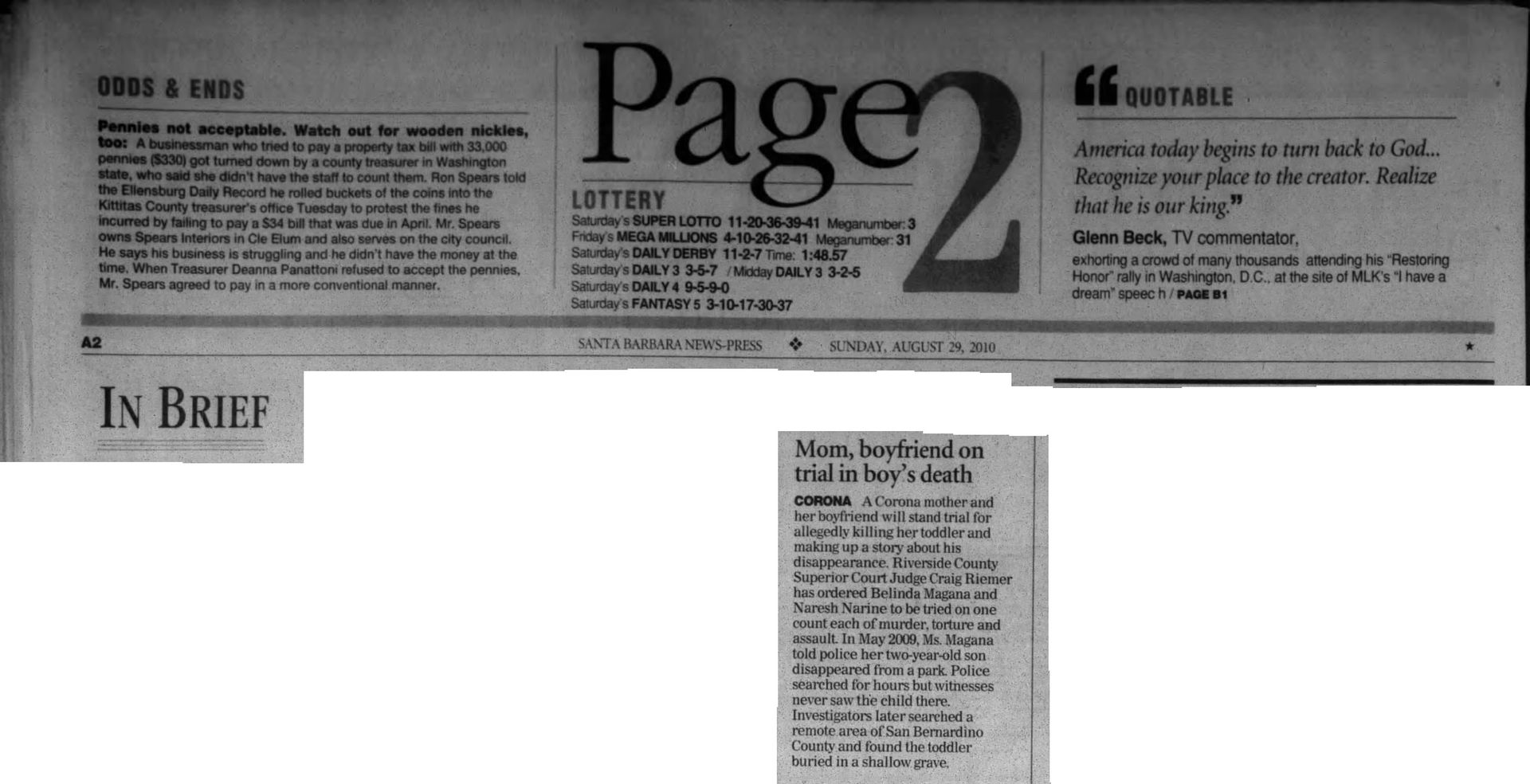 Defendants In Marilyn Pharis's Death Make Brief Court Appearance | November 19, 2015 | Noozhawk | Janene Scully Goleta-Area Man Accused of Killing His Family Enters Not Guilty by Reason of Insanity | October 21, 2015 | Noozhawk | Lara Cooper Arraignment Delayed for Former Hancock College Basketball Players Charged With Murder | October 19, 2015 | Noozhawk | Janene Scully At a Glance: Santa Maria: Arraignment continued again in Lompoc murder case | September 30, 2015 | Lompoc Record Men accused in Marilyn Pharis attack in court, case continued: New attorney on board as Public Defender's Office prepares for potential death penalty defense | September 17, 2015 | Santa Ynes Valley News | Kyle Harding Men accused in Marilyn Pharis attack in court, case continued: New attorney on board as Public Defender's Office prepares for potential death penalty defense | September 17, 2015 | Santa Maria Times | Kyle Harding Psychiatric Search Narrows in Holzer Case: Five Forensic Experts Considered to Perform Evaluation | September 16, 2015 | Santa Barbara Independent | Kelsey Knorp Prosecution in Lompoc murder case focuses on social media activity | September 1, 2015 | Santa Maria Times | Kenny Lindberg Inept Inmate Care by Corizon? Supervisors Must Decide Path for County Inmates' Health | August 20, 2015 | Santa Barbara Independent | Kelsey Brugger Defense continues cross-examination of boy, 14 | August 20, 2015 | Santa Barbara Times | Kenny Lindberg Man Accused of Murdering Family May Enter Insanity Plea in Santa Barbara Court | August 11, 2015 | Noozhawk | Lara Cooper Last U-Haul defendant sentenced | August 3, 2015 | Santa Ynez Valley News | Ryah Cooley Last U-Haul defendant sentenced | August 3, 2015 | Santa Maria Times | Ryah Cooley Man accused of ordering murder from behind bars appears in court: Three others enter not-guilty pleas, will proceed to trial | July 21, 2015 | Santa Maria Times | Kyle Harding Judge Rules Former Allan Hancock College Basketball Players to Be Tried on Murder, Other Charges | June 24, 2015 | Noozhawk | Janene Scully Preliminary Hearing Begins for Former Hancock College Basketball Players Charged with Murder: Ali Mohammed and Lavell White are accused of the fatal shooting of a 23-year-0ld man in Santa Maria during an alleged drug deal | June 23, 2015 | Noozhawk | Janene Scully Preliminary hearing set in robbery and carjacking case | May 27, 2015 | Santa Maria Times | Kyle Harding Five Men Sentenced to Life in Prison Without Parole for Torture-Murder of Anthony Ibarra: Judge rules on numerous motions during the hearing, during which family members of Ibarra speak out about 'the nightmare that will never end | May 22, 2015 | Noozhawk | Janene Scully Trio Held to Answer on Charges Related to Guadalupe Homicide | May 16, 2015 | Lompoc Record | Kyle Harding State Prison Inmate Accused of Orchestrating Murder of Santa Maria Man: Judge rules three other defendants should stand trial in the shooting of Javier Limon | May 15, 2015 | Noozhawk | Janene Scully 5 of 6 Defendants Found Guilty of First Degree Murder in U-Haul Trial: Sixth defendant pleads to kidnapping after mistrial declared | April 7, 2015 | Santa Maria Times | Kyle Harding 5 of 6 Defendants Found Guilty of First Degree Murder in U-Haul Trial: Sixth defendant pleads to kidnapping after mistrial declared | April 7, 2015 | Santa Ynez Valley News | Kyle Harding 5 Men Found Guilty in Santa Maria Torture-Murder Case: Jury in Ibarra case returns guilty verdicts against five of the six defendants | April 7, 2015 | Noozhawk | Janene Scully U-Haul juror dismissed, deliberations start over | March 31, 2015 | Santa Maria Times | Kyle Harding Jury Begins Deliberating in Santa Maria Torture-Murder Trial | March 24, 2015 | Noozhawk | Janene Scully U-Haul closing arguments continue | March 20, 2015 | Santa Maria Times | Kyle Harding U-Haul defense casts doubt on witness credibility | March 19, 2015 | Santa Maria Times | Kyle Harding County Lines: Santa Maria: U-Haul defense casts doubt on witness credibility | March 19, 2015 | Santa Maria Times No hearing yet for Hancock College basketball players | March 16, 2015 | Santa Maria Times | Staff Report Sentencing Hearing an Explosive Ending to Santa Barbara County's First Human Trafficking Trial: Brannon Lawrence Pitcher, found guilty by a jury of prostituting a teen girl, is kicked out of the courtroom for shouting at the judge | March 13, 2015 | Noozhawk | Lara Cooper Second Defendant Testifies in Ibarra Murder Trial | March 13, 2015 | Noozhawk | Janene Scully Second U-Haul Defendant Testifies, Counters Allegations | March 12, 2015 | Lompoc Record | Kyle Harding Sentencing Delayed in Human Trafficking Case | March 8, 2015 | Santa Barbara Independent | Colleen Flaherty Cameron Oliver Arraigned on Murder Charges is Drunk Driving Crash | March 8, 201 5 | News Channel 12-3-11 | News Channel 3-12 Week 8: Santa Maria Ibarra Murder Trial | March 7, 2015 | New Channel 12-3-11 | News Channel 3-12 Defendant testifies he was not present when Anthony Ibarra died | March 6, 2015 | Santa Maria Times | Kyle Harding U-Haul Defendant Takes the Stand | March 5, 2015 | Santa Maria Times | Kyle Harding Defendant Takes Witness Stand in Own Defense in Ibarra Murder Trial: Anthony "AJ" Solis denies gang membership during testimony | March 5, 2015 | Noozhawk | Janene Scully Defense Expert Testifies About Phrase 'Gang Associate' During Ibarra Murder Trial | March 3, 2015 | Noozhawk | Janene Scully Prosecution Rests in Santa Maria Trial of Six Defendants Charged in Ibarra Murder: Defense attorneys ask the judge to acquit their clients, accused of the gang-related torture-slaying of Anthony Ibarra in March 2013 | February 27, 2015 | Noozhawk | Janene Scully U-Haul defense continues cross-examination of SMPD gang detective | February 26, 2015 | Santa Maria Times | Kyle Harding U-Haul defense attorneys question SMPD detective: Prosecutor, detective paint picture of local gang violence | February 24, 2015 | Santa M