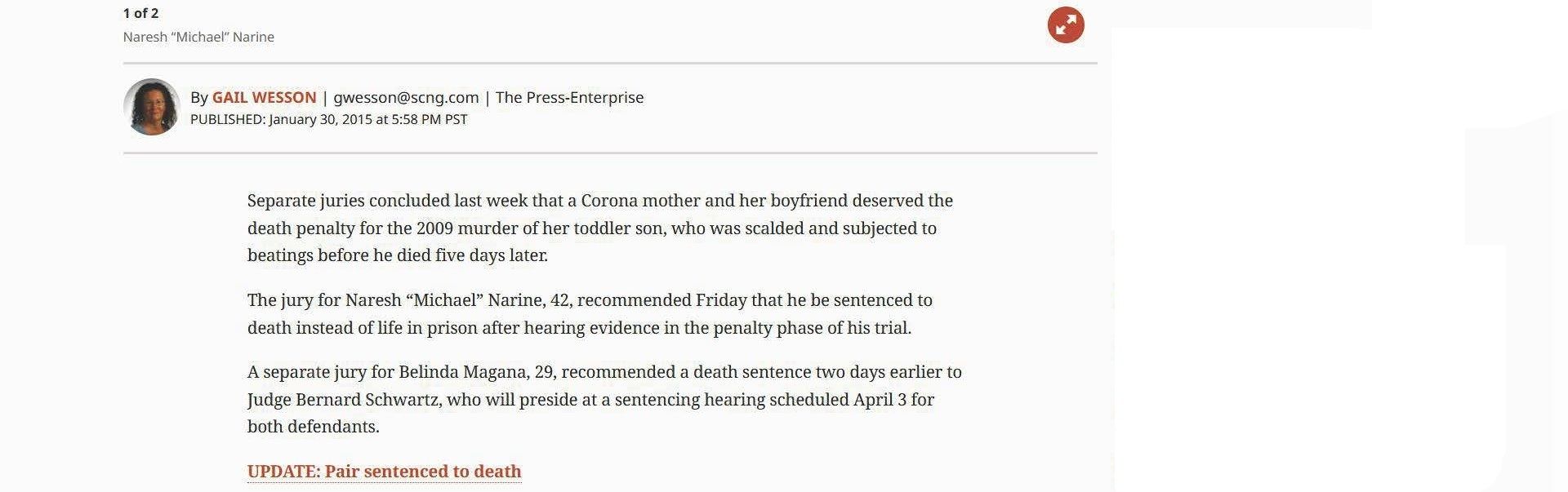 Pierre Haobsh's Triple-Murder Trial in Han Family Deaths Pushed to 2020 | March 18, 2019 | Noozhawk | Giana Magnoli News Commentary: Death Penalty Shouts and Whispers: Governor's Reprieve Has Little Effect in Santa Barbara | March 17, 2019 | Santa Barbara Independent | Nick Welsh