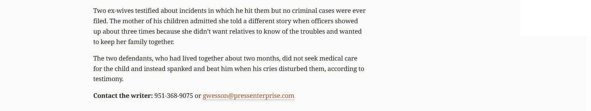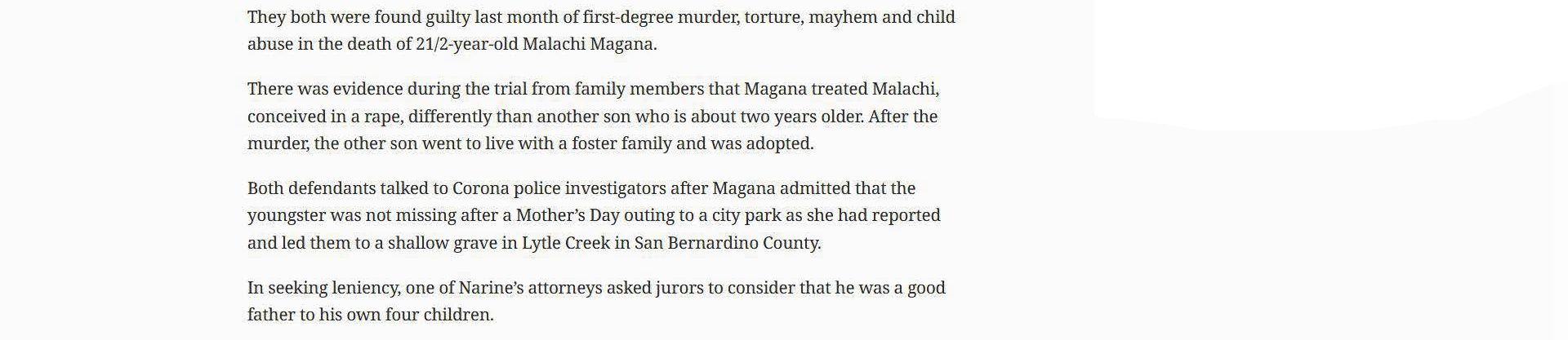 A Grisly Crime: Recap of the Pierre Haobsh Trial: How the Triple-Murder Case Played Out Leading to the Guilty Verdict | December 1, 2021 | Santa Barbara Independent | Ryan P. Cruz Triple-Murder Suspect Pierre Haobsh Gives His Account of Days Leading to Han Family Murders; Defendant describes his involvement with multiple companies and his belief that the U.S. Department of Energy was targeting him | November 23, 2021 | Noozhawk | Serena Guentz Haobsh Spins a Story on the Stand: Accused of Triple Murder, Alleged Killer Gives His Version of the Evidence | November 23, 2021 | Santa Barbara Independent | Jean Yamamura & Nick Welsh Triple-Murder Suspect Pierre Haobsh Starts Testifying in Own Defense During Santa Barbara Trial: He faces murder charges in the 2016 killings of Goleta-area Dr. Weidong 'Henry' Han, Huijie 'Jennie' Yu and their daughter, Emily | November 22, 2021 | Noozhawk | Serena Guentz Defense Team Raises Doubts in Case Against Accused Han Family Killer: Pierre Haobsh's Attorneys Question Reliability of Cell Phone Data Records | November 19, 2021 | Santa Barbara Independent | Ryan P. Cruz & Jun Starkey Triple-Murder Trial for Pierre Haobsh Continues with Defense Witnesses | November 18, 2021 | Noozhawk | Serena Guentz Review of Suspect's Computer Search History May Implicate Him in Triple Homicide | November 17, 2021 | Vanguard | Mairead Perez Computer Analyst Provides Forensic Evidence in Triple Murder Case | November 16, 2021 | Vanguard | Joshua Cenzano Trial for Triple-Murder Suspect Pierre Haobsh Hears Testimony From Expert Witness: Lead investigator says the web history on Haobsh's laptop included a search for 'can 22lr hollow point penetrate the skull' | November 12, 2021 | Noozhawk | Serena Guentz Grim Friday Hearing in Haobsh Trial; Photos Displayed of Triple Murder Victims as Evidence Unfolds | November 5, 2021 | Santa Barbara Independent | Jean Yamamura Triple-Murder Trial for Pierre Haobsh Continues with Testimony From Sheriff's Personnel: Segments of Detective Jeff McDaniel's four-hour interrogation with the suspect, accused of killing the Han family in 2016, also a shown in court | November 5, 2021 | Noozhawk | Serena Guentz Inside the Interrogation Room with Accused Killer Pierre Haobsh; Witness Testimony Continued Thursday in Han Family Triple Murder Case | November 4, 2021 | Santa Barbara Independent | Ryan P. Cruz Witness Testimony Begins in Han Family Triple Murder Case: Prosecutors Lay the Foundation for Arguments Against Alleged Murderer Pierre Haobsh | October 29, 2021 | Santa Barbara Independent | Serena Guentz Triple-Murder Trial Starts for Pierre Haobsh, Accused of 2016 Slayings of Han Family | October 28, 2021 | Noozhawk | Giana Magnoli P ublic Defender Objects to Late Trial Video Evidence, Suggesting It Was Racist and Offensive | September 1, 2021 | Vanguard | Carson Eschen Santa Barbara DA Drops Bid for Death Penalty in Han Family Murder Case: In Exchange, Triple Homicide Defendant Agrees to Trial by Judge Instead of Jury | August 13, 2021 | Santa Barbara Independent | Nick Welsh Triple-Murder Suspect Pierre Haobsh Waives Right to Jury Trial, Will Have Case Heard in a Bench Trial: Santa Barbara County District Attorney's Office drops intention to seek death penalty in the case, attorneys said Thursday | August 12, 2021 | Noozhawk | Brooke Holland Public Defender Argues Defendant Should Be Allowed to Possess Discovery During Trial; District Attorney Disagrees, Citing Safety Concern | August 12, 2021 | Vanguard | Michelle Lagos Defendant Waive Rights, Accepts Plea Deal, Pleads No Contest to Charges | August 8, 2021 | Vanguard | Lauren Smith Triple-Murder Suspect Pierre Haobsh Expected to Waive Right to Jury Trial, Defense Says: Attorneys make a brief appearance as they work toward a final agreement for a bench trial in the deaths of Dr. Henry Han, his wife and child | July 22, 2021 | Noozhawk | Brooke Holland Santa Barbara County judge approves motion to continue MS-13 trial May 3 | January 8, 2021 | Santa Maria Times | Dave Minsky