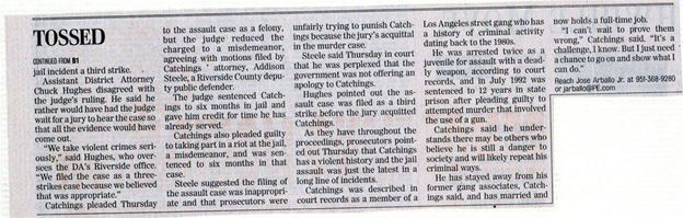 The Los Angeles Daily Journal article covering Robbie and Addison's three strikes victory.