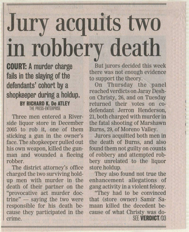 This is the newspaper article that covered when Robbie and I beat the district attorney's attempt to give Robbie a life sentence after we had won the murder trial.