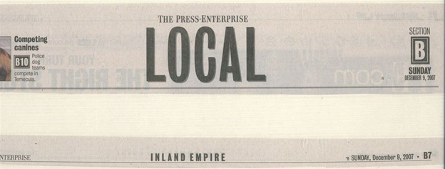 - Public defender's office honors staff, Sonja Bjelland, The Press-Enterprise, Local B7, December 9, 2007.