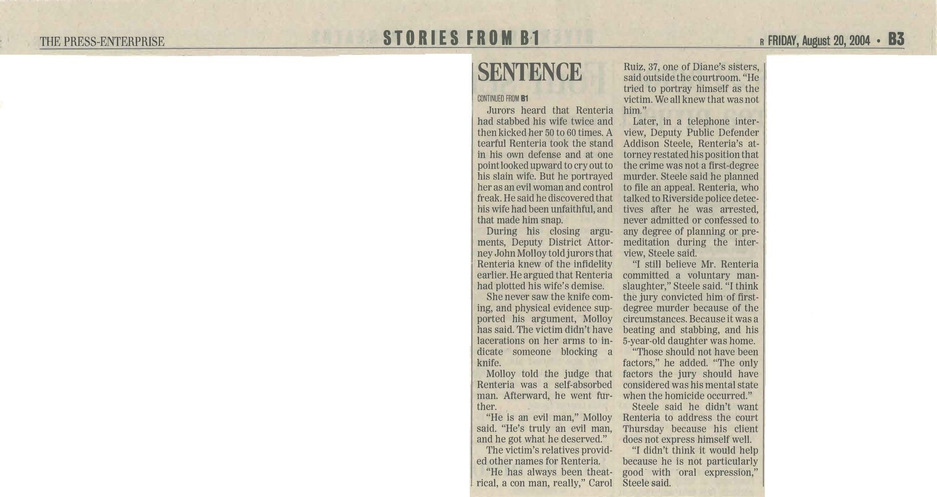 Patrick R. RIF111175, on July 8, 2004 his trial started, Addison fought hard against the murder charge, unfortunately the evidence was too much to overcome, of the dozen murder trials Addison has done this is the only one he's lost