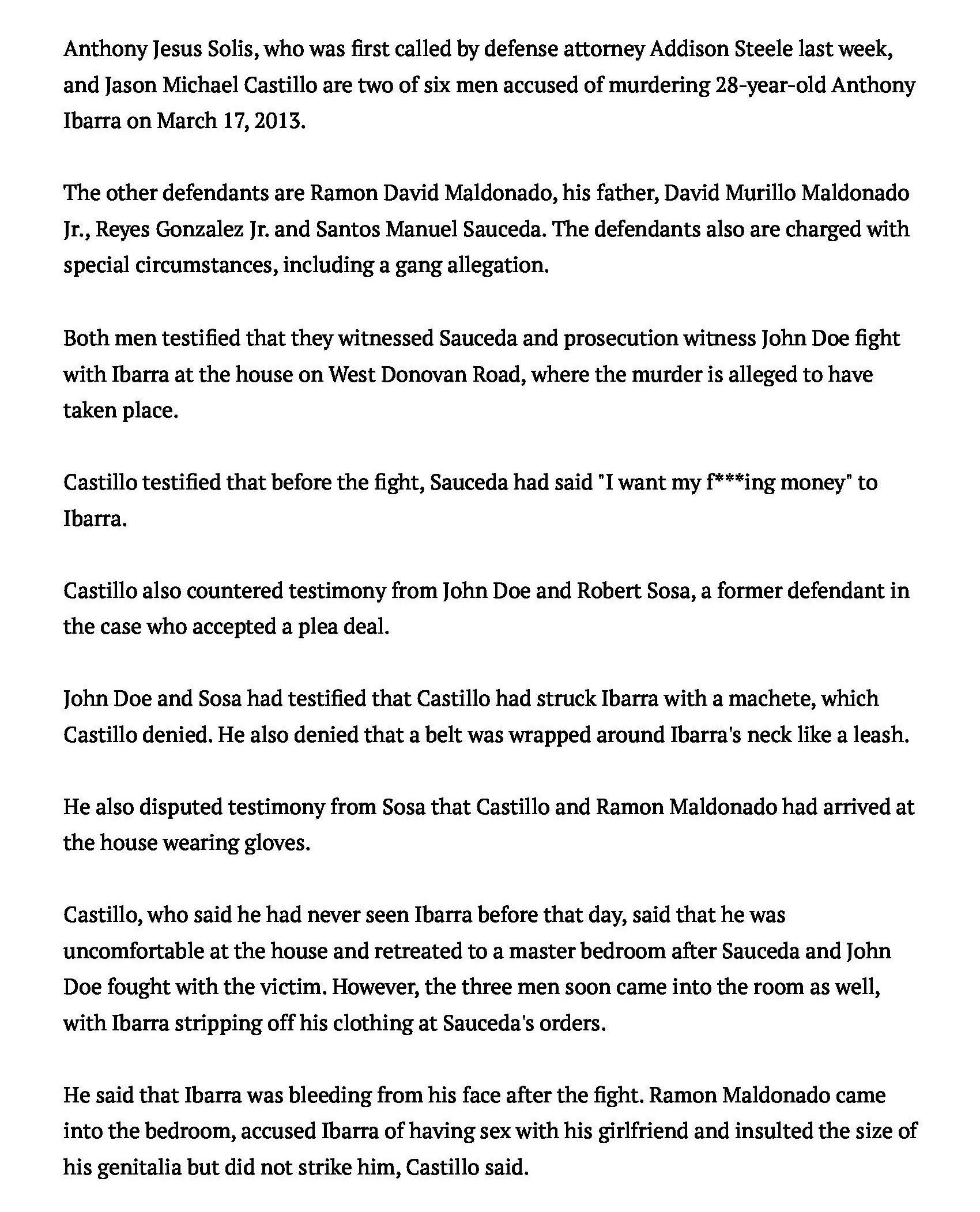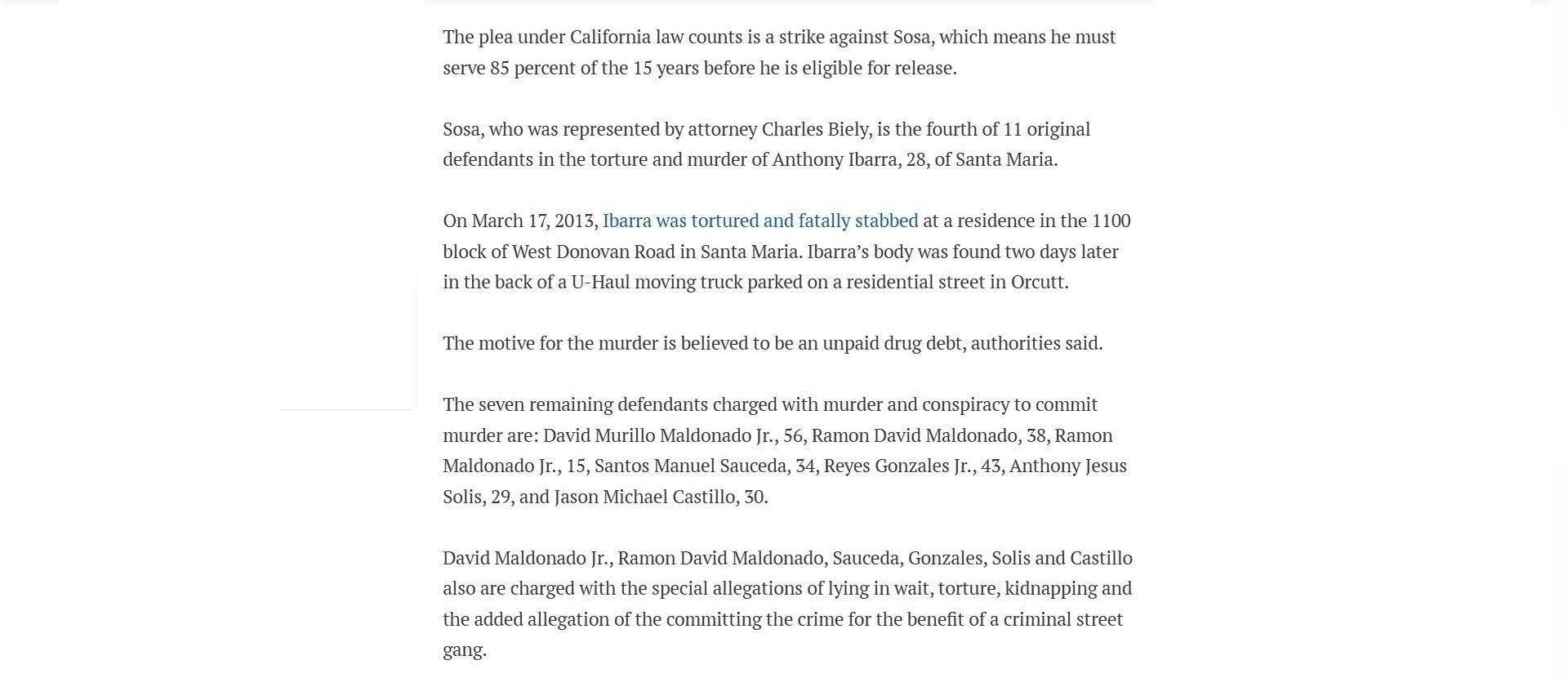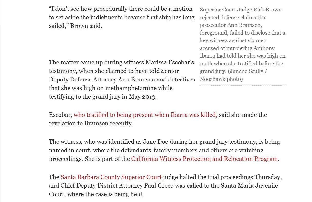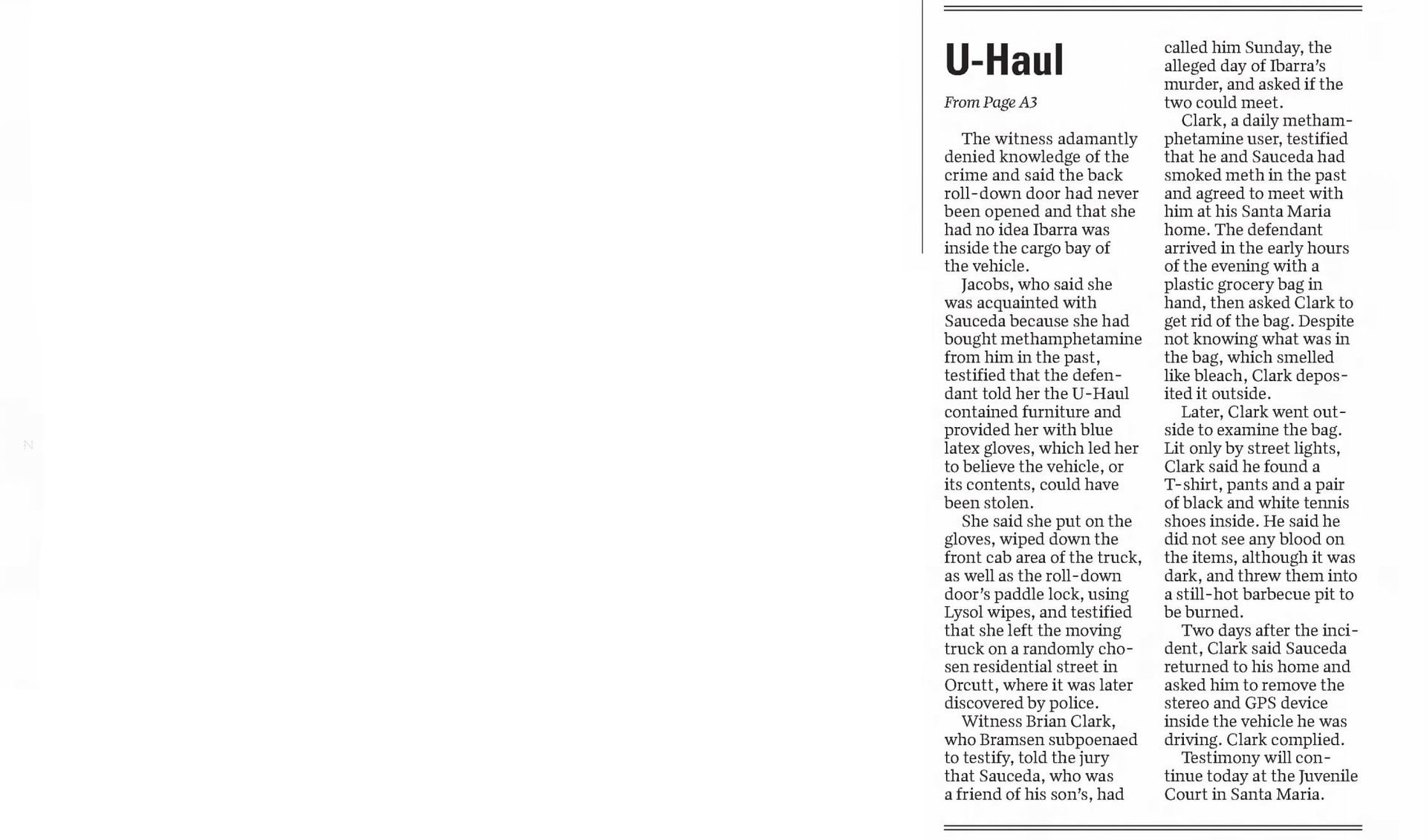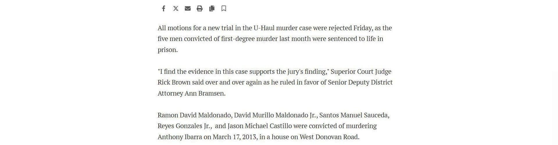 The district attorney's theory was that the decedent was a drug dealer, and that he had been scamming customers as well as not paying "taxes" to the Mexican Mafia. The district attorney believed that a co-defendant with the nickname (they said gang moniker) of Crazy Ray, had recruited a group to "check" (impose a punishment) on the decedent for both ripping off customers and for not paying a portion of his proceeds to the Mexican Mafia. The believed that the group then tortured the decedent to death, rented a U-Haul, put his body in the U-Haul and abandoned it. The incident occurred at a house that didn't belong to any of the people in the group with Crazy Ray. The house belonged to two people that testified as witnesses for the prosecution, Angel "Buddha" Escobar and his sister Marissa Escobar, who were put in the witness protection program. That means that the government paid to set the witnesses up with new lives in exchange for their snitch testimony. What the defense presented was that Crazy Ray and his group were at the house, but they had left and that it was in fact the district attorney's two witnesses that had killed the decedent, and that after the fact they called upon Crazy Ray to help with the aftermath. The defense was that he may have helped after the fact, but neither he nor anyone in his group did the killing. The defense that was presented was that various members of the group had come and gone from the house, but none were there when the murder occurred.