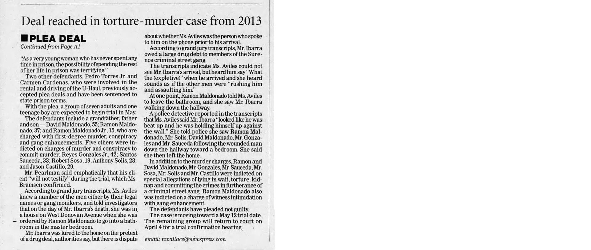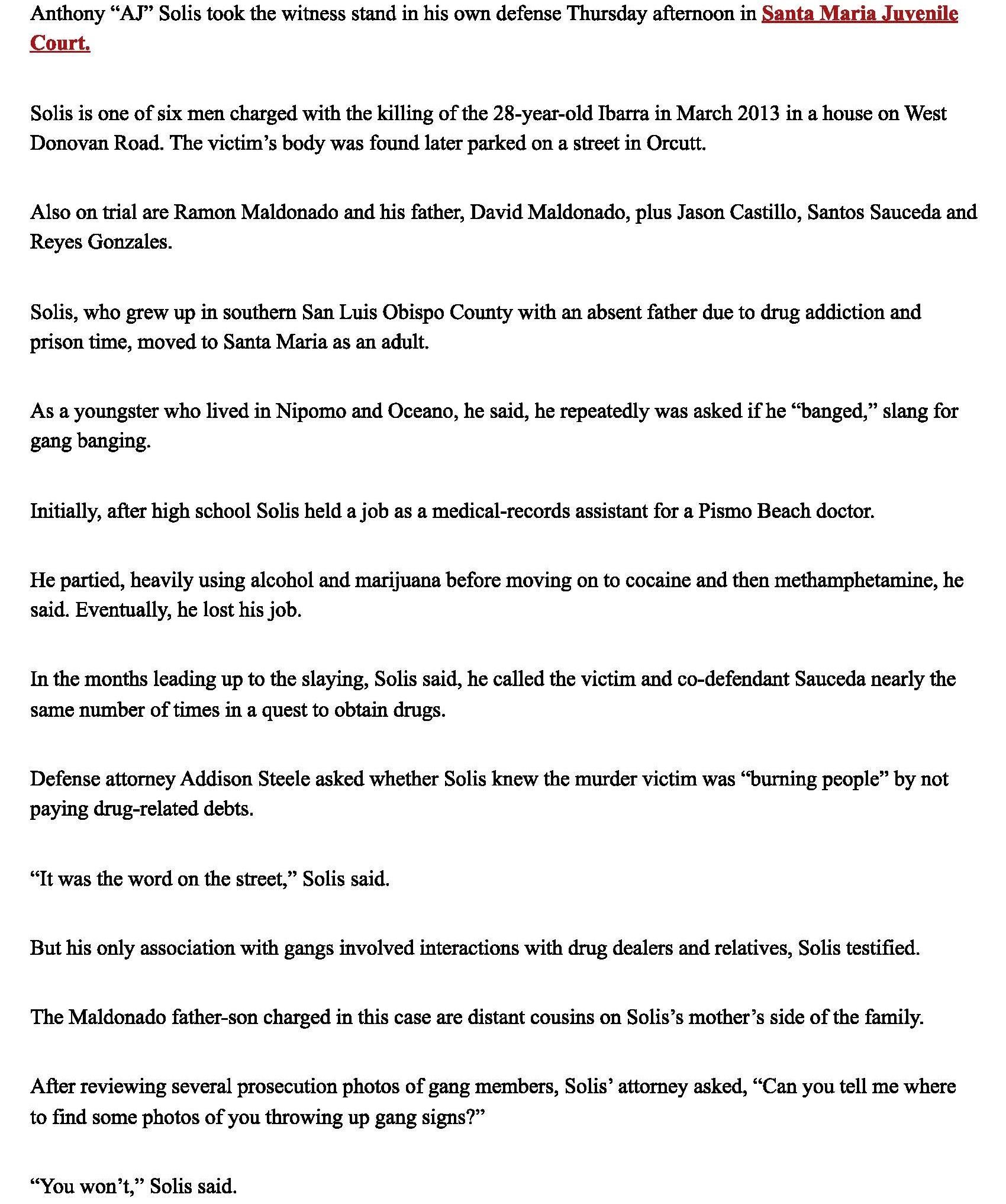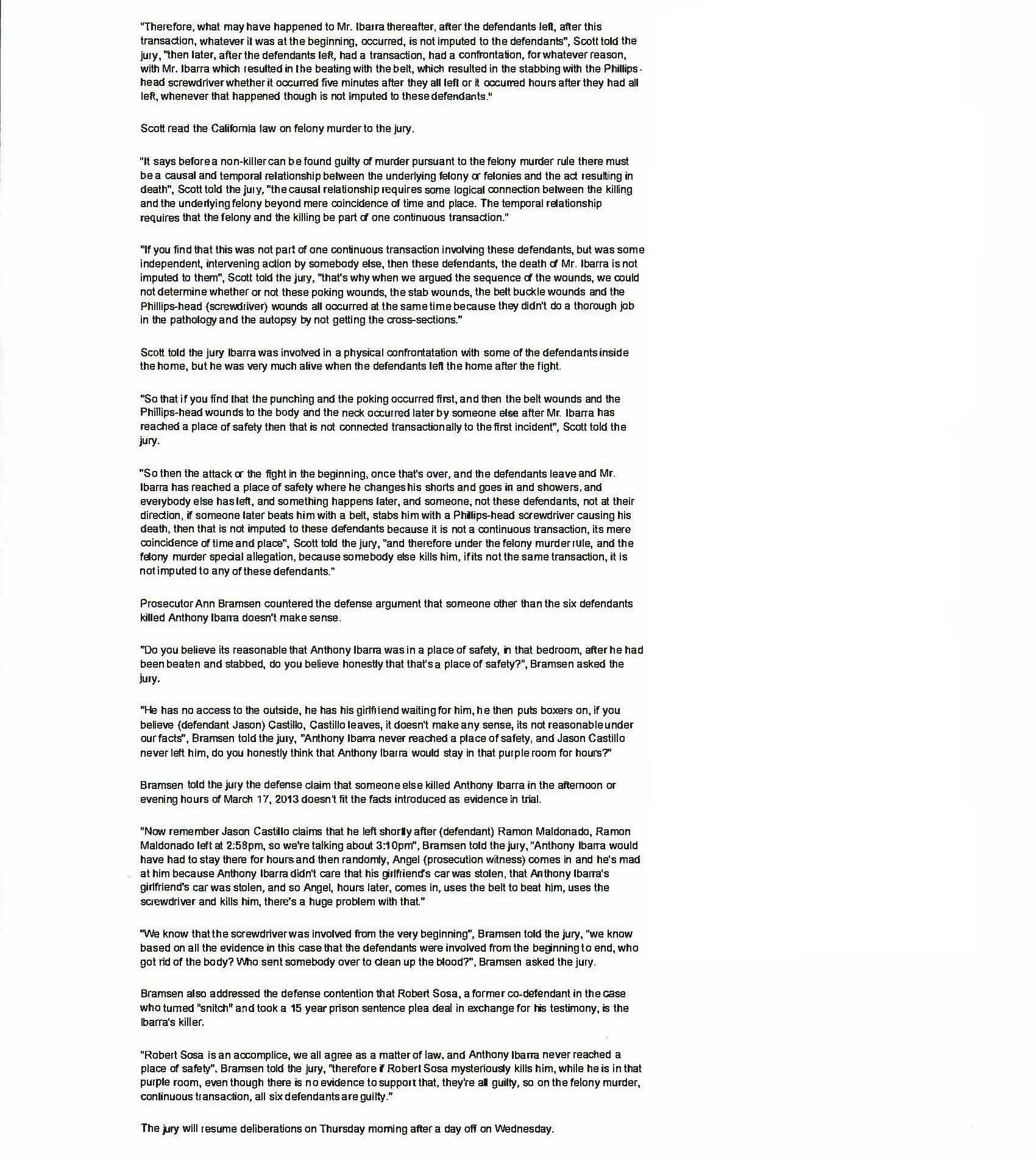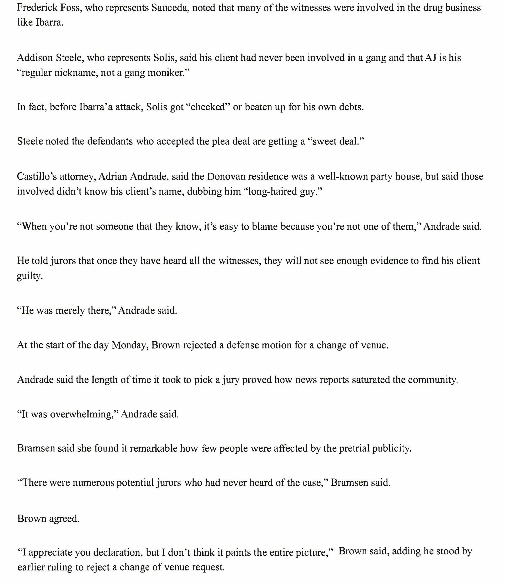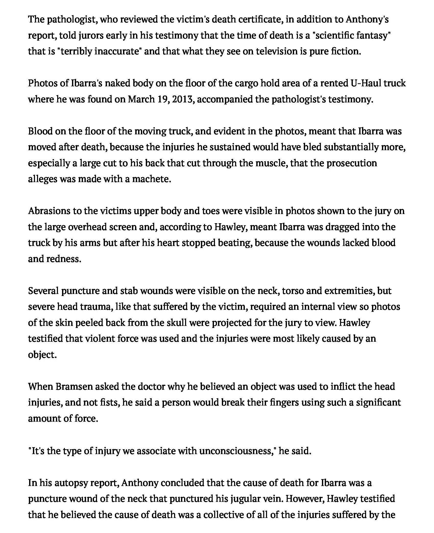 The district attorney's theory was that the decedent was a drug dealer, and that he had been scamming customers as well as not paying "taxes" to the Mexican Mafia. The district attorney believed that a co-defendant with the nickname (they said gang moniker) of Crazy Ray, had recruited a group to "check" (impose a punishment) on the decedent for both ripping off customers and for not paying a portion of his proceeds to the Mexican Mafia. The believed that the group then tortured the decedent to death, rented a U-Haul, put his body in the U-Haul and abandoned it. The incident occurred at a house that didn't belong to any of the people in the group with Crazy Ray. The house belonged to two people that testified as witnesses for the prosecution, Angel "Buddha" Escobar and his sister Marissa Escobar, who were put in the witness protection program. That means that the government paid to set the witnesses up with new lives in exchange for their snitch testimony. What the defense presented was that Crazy Ray and his group were at the house, but they had left and that it was in fact the district attorney's two witnesses that had killed the decedent, and that after the fact they called upon Crazy Ray to help with the aftermath. The defense was that he may have helped after the fact, but neither he nor anyone in his group did the killing. The defense that was presented was that various members of the group had come and gone from the house, but none were there when the murder occurred.