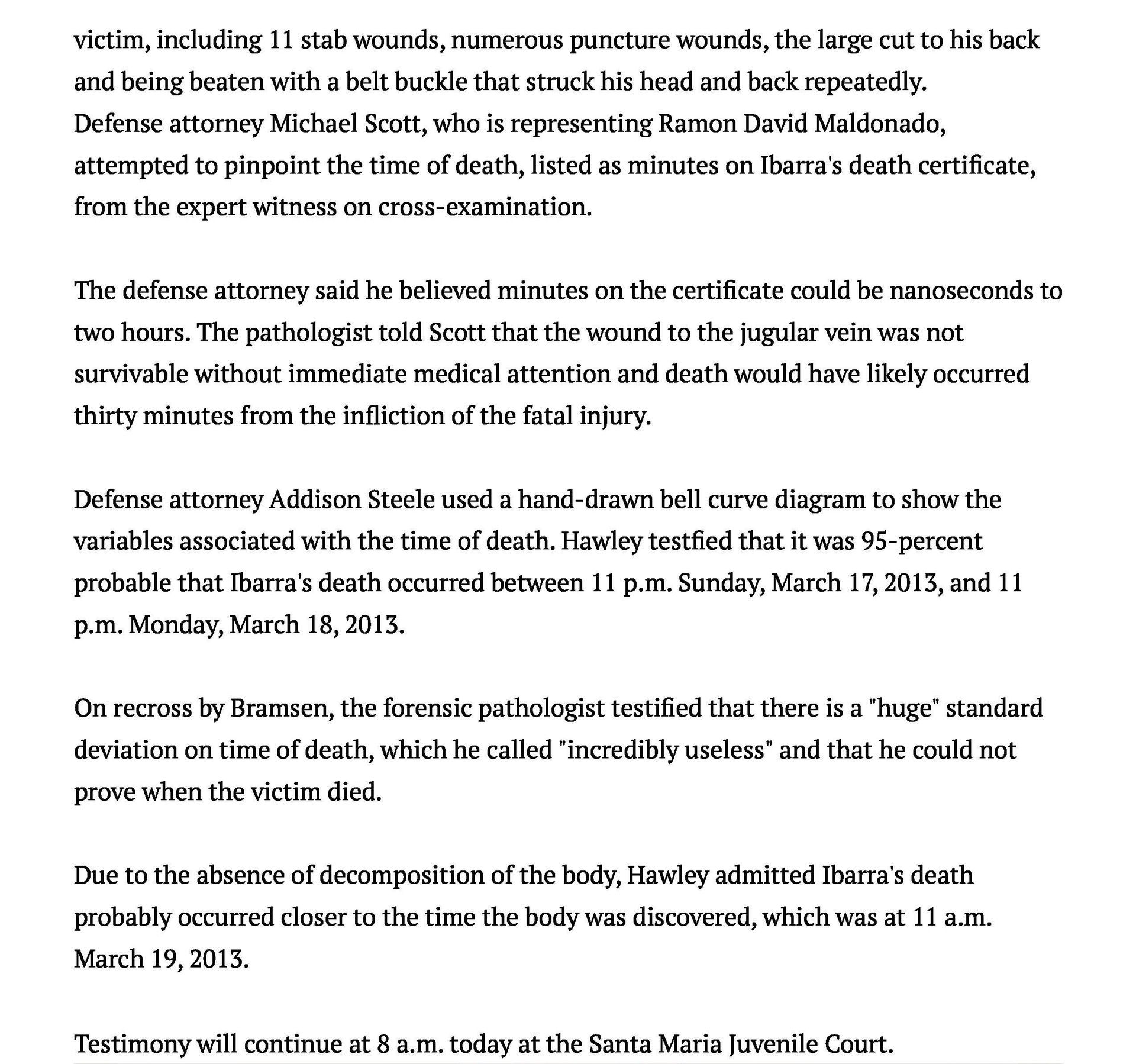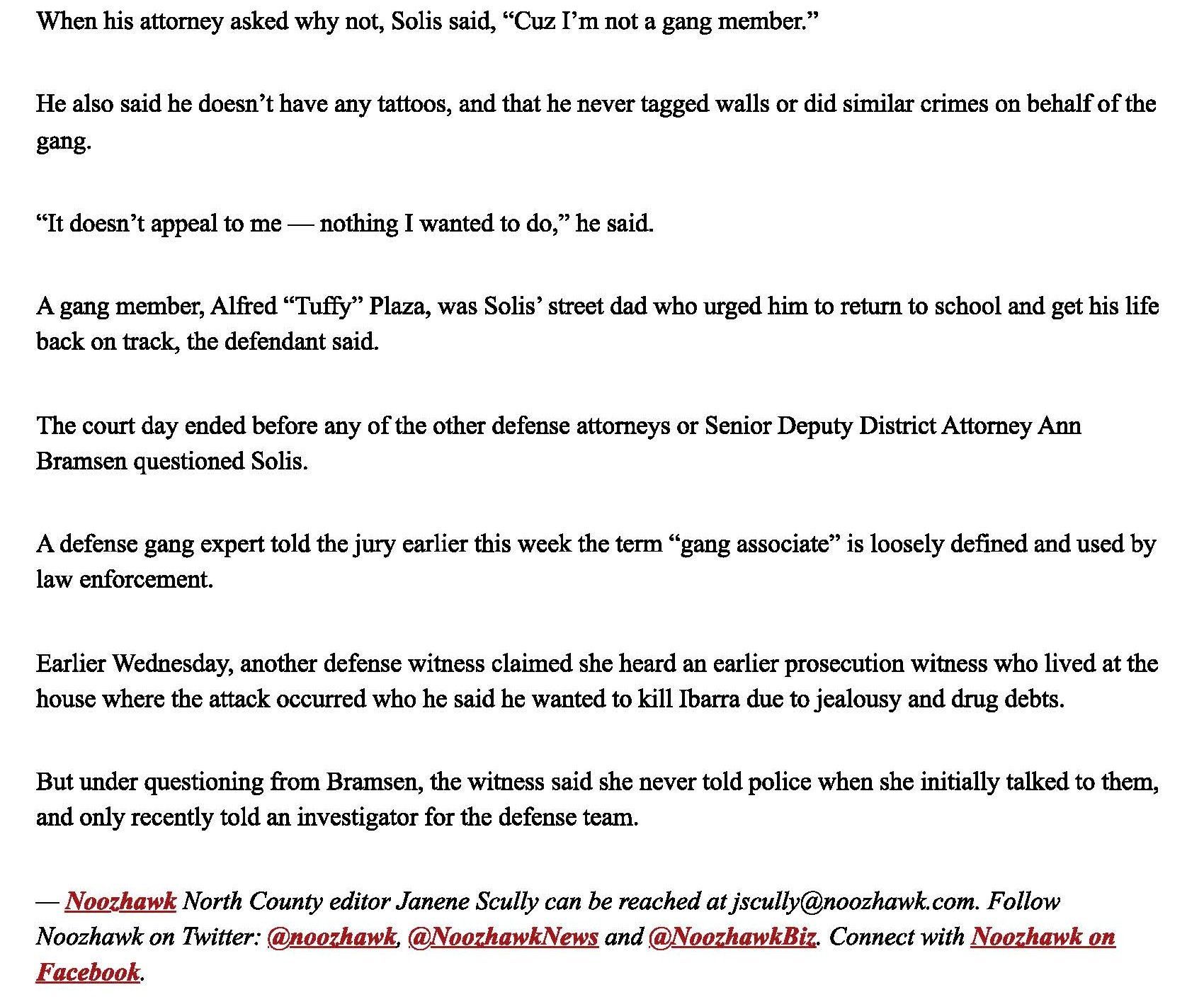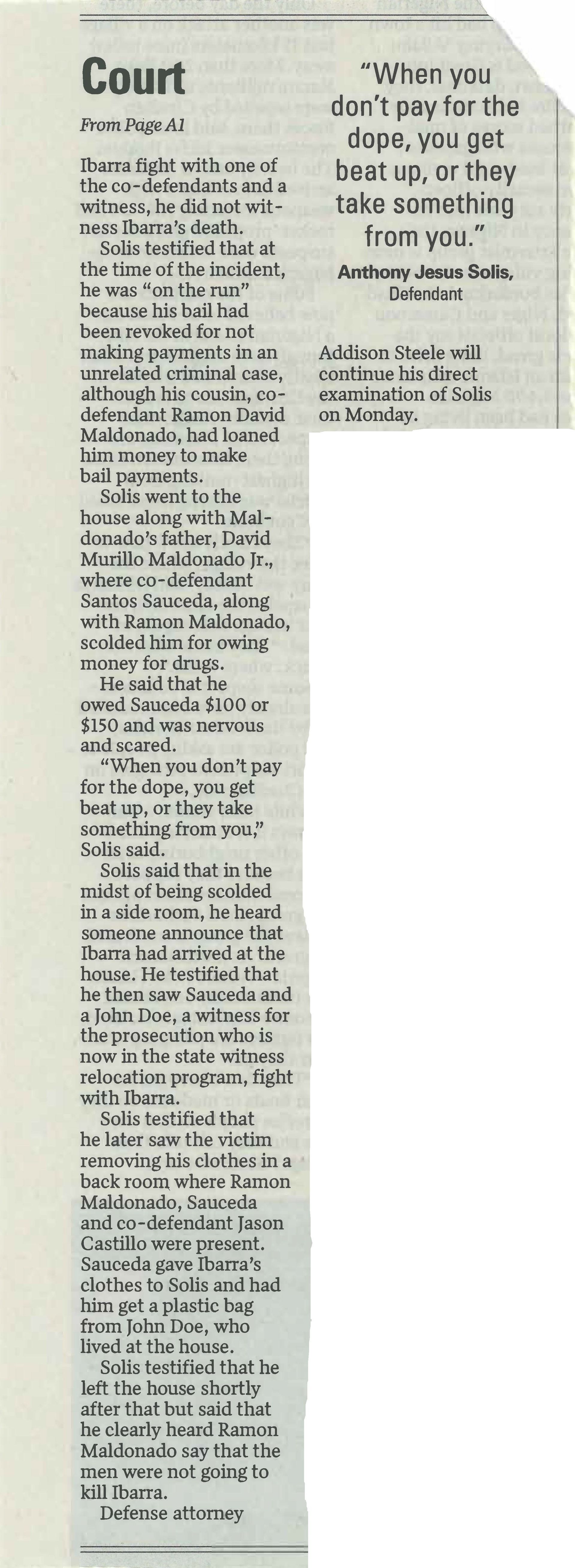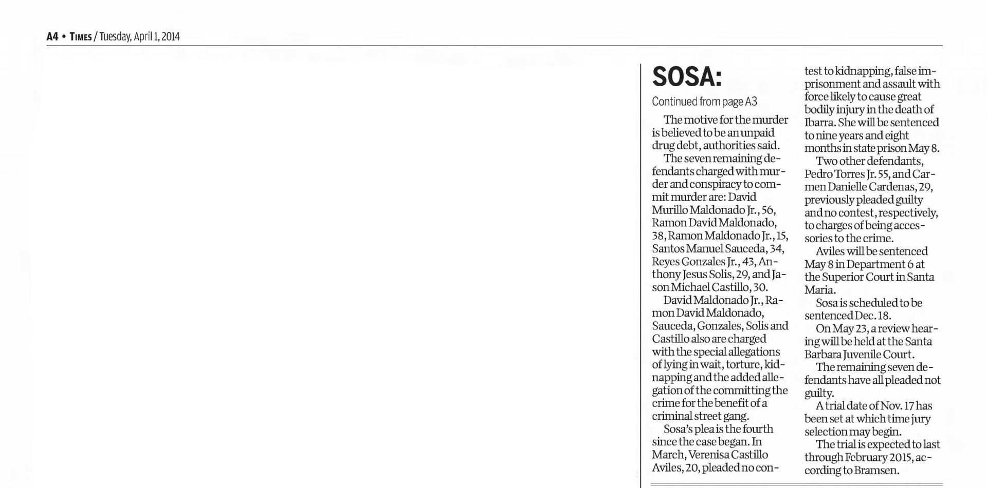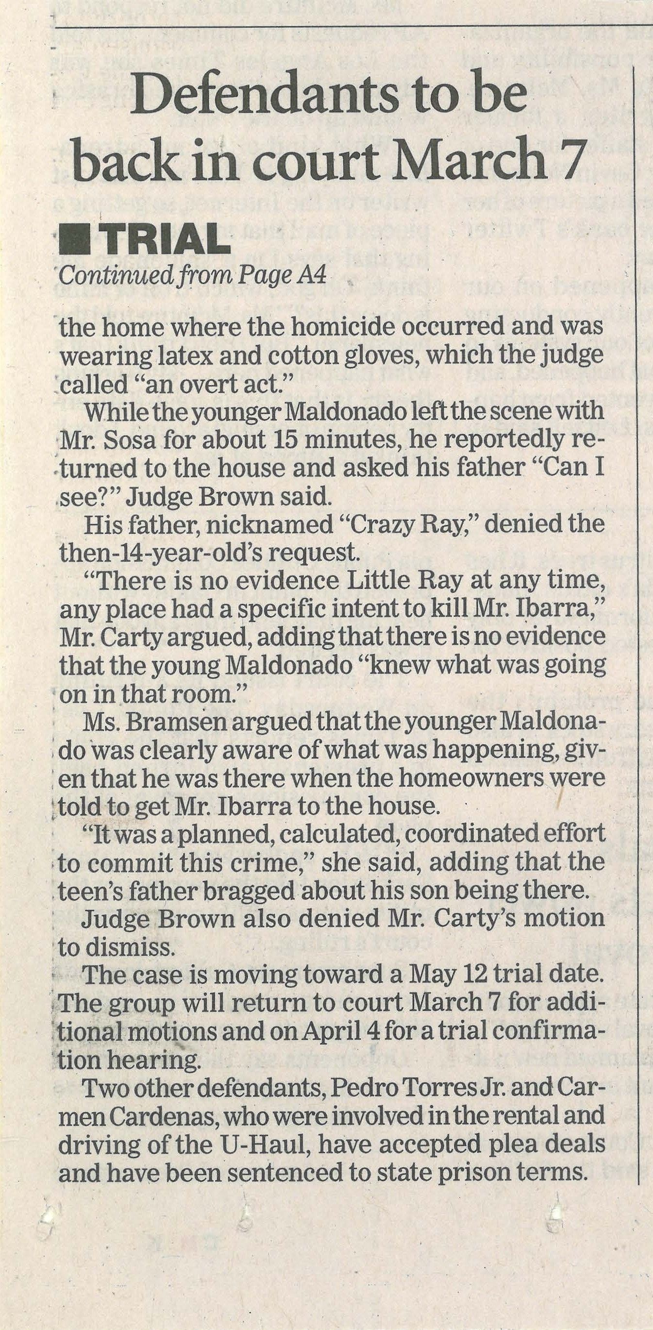 The district attorney's theory was that the decedent was a drug dealer, and that he had been scamming customers as well as not paying "taxes" to the Mexican Mafia. The district attorney believed that a co-defendant with the nickname (they said gang moniker) of Crazy Ray, had recruited a group to "check" (impose a punishment) on the decedent for both ripping off customers and for not paying a portion of his proceeds to the Mexican Mafia. The believed that the group then tortured the decedent to death, rented a U-Haul, put his body in the U-Haul and abandoned it. The incident occurred at a house that didn't belong to any of the people in the group with Crazy Ray. The house belonged to two people that testified as witnesses for the prosecution, Angel "Buddha" Escobar and his sister Marissa Escobar, who were put in the witness protection program. That means that the government paid to set the witnesses up with new lives in exchange for their snitch testimony. What the defense presented was that Crazy Ray and his group were at the house, but they had left and that it was in fact the district attorney's two witnesses that had killed the decedent, and that after the fact they called upon Crazy Ray to help with the aftermath. The defense was that he may have helped after the fact, but neither he nor anyone in his group did the killing. The defense that was presented was that various members of the group had come and gone from the house, but none were there when the murder occurred.