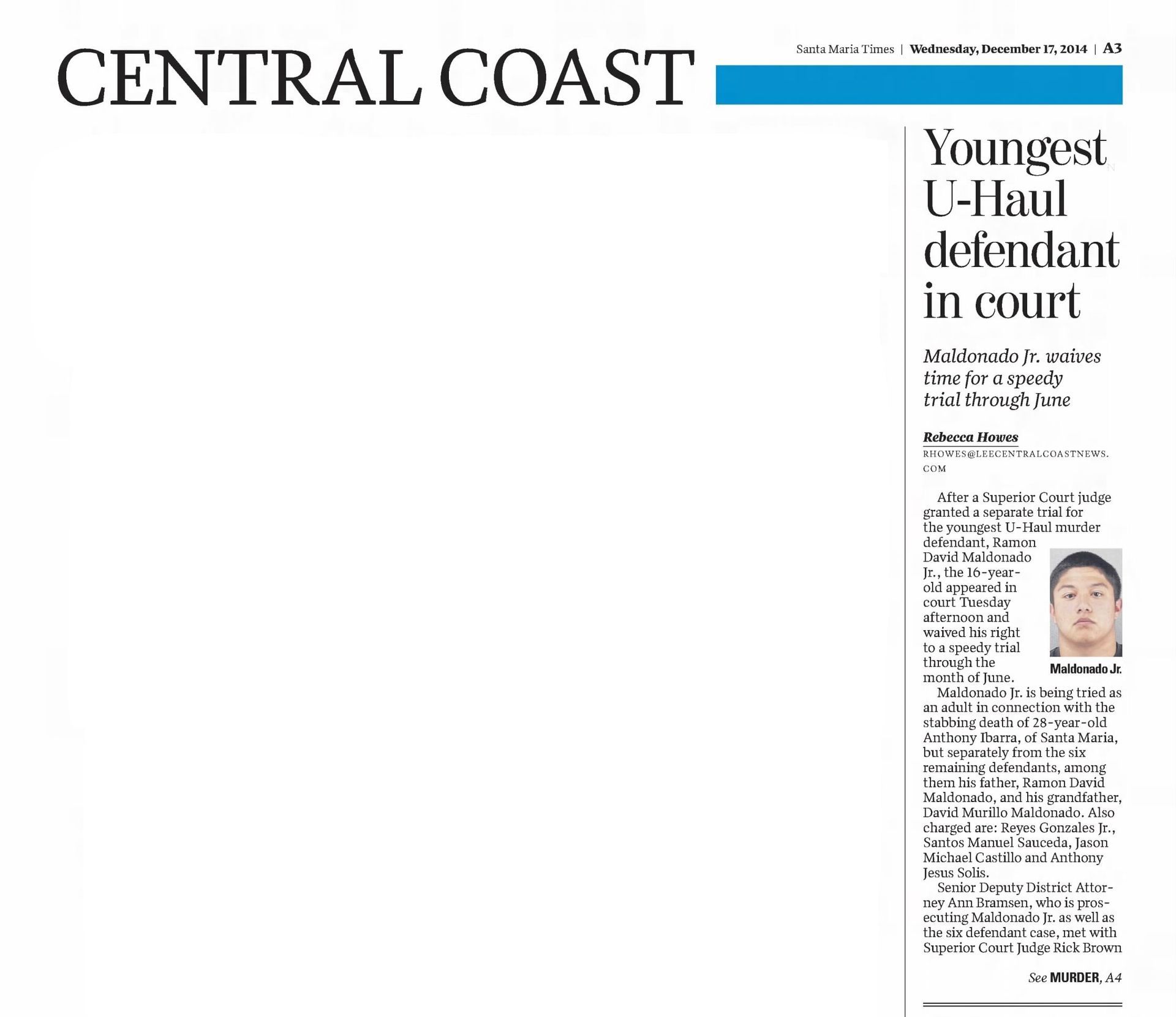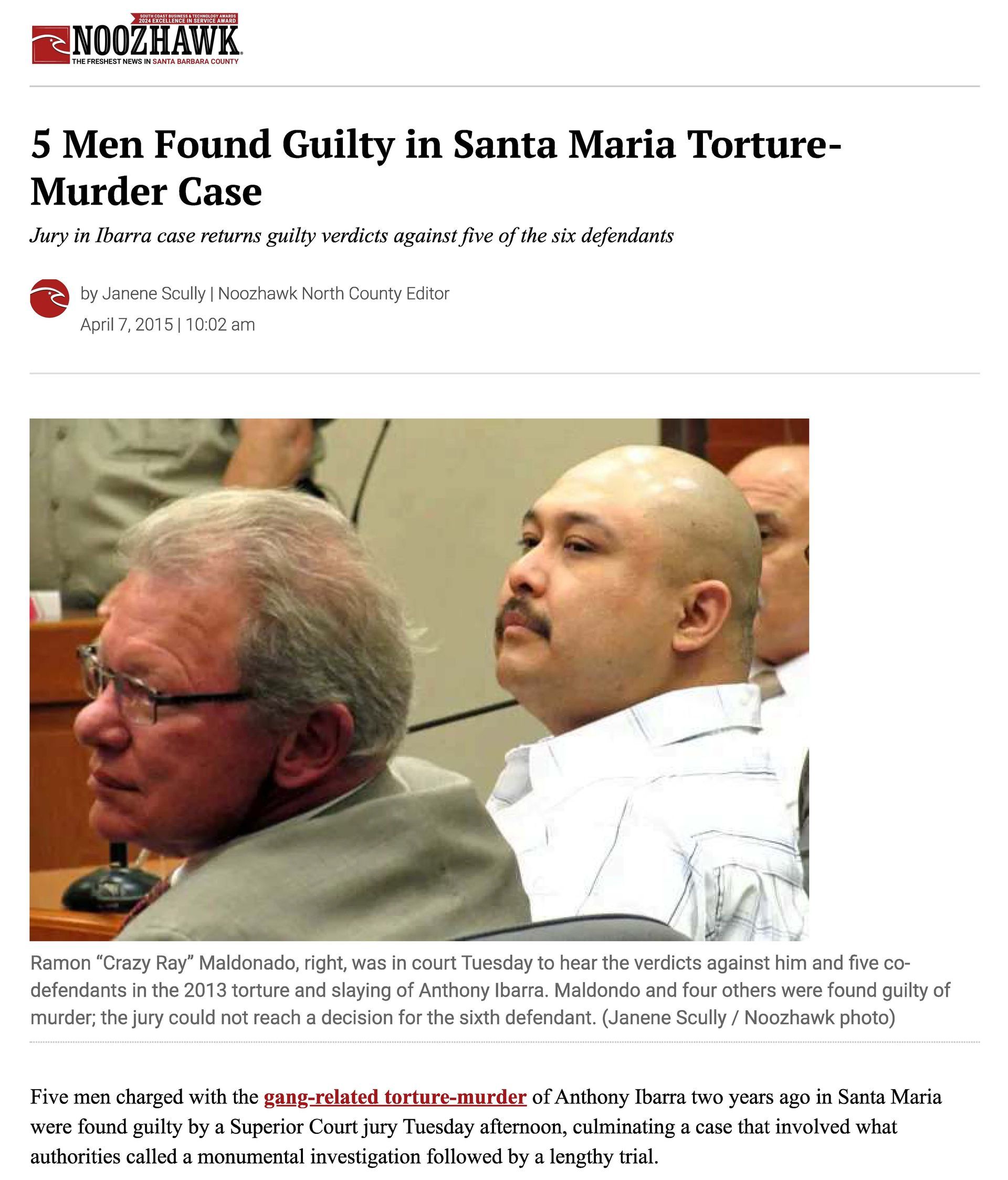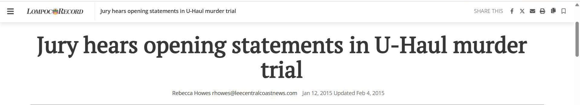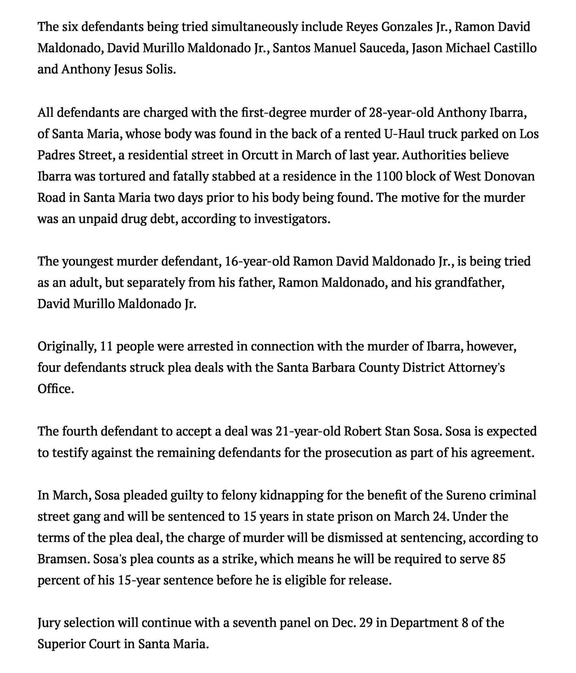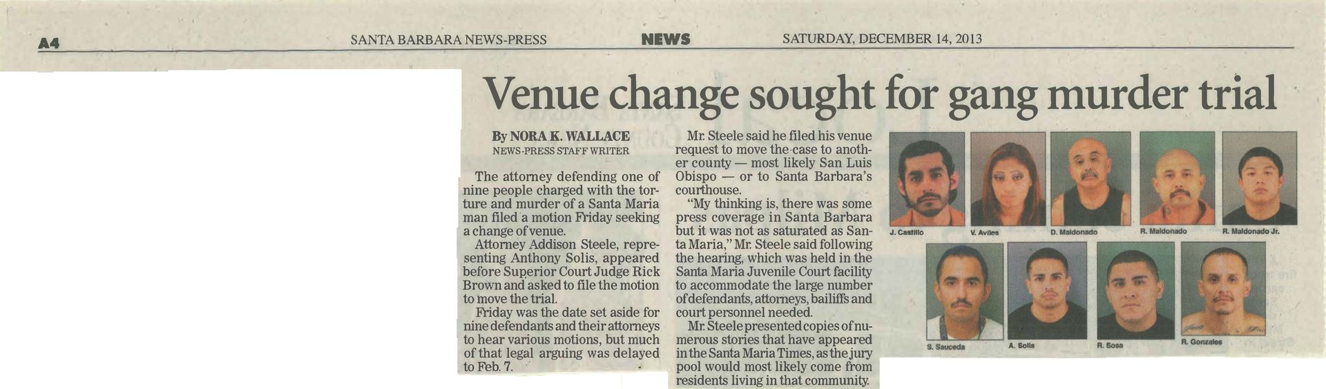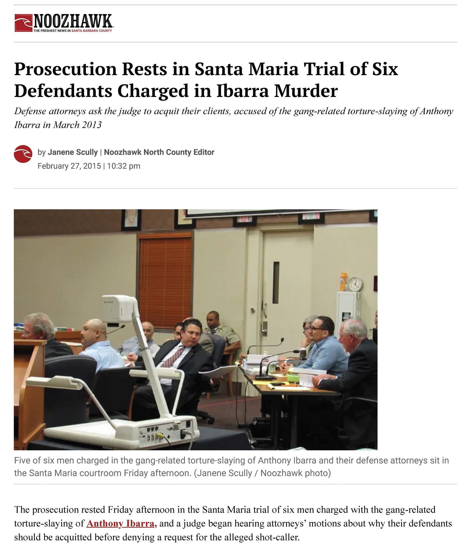 This was a particularly long and grueling murder trial. The press dubbed the case "The U-Haul Murder Trial" because the decedent's body was discovered in an abandoned U-Haul truck with his blood dripping out of the back of the truck. There were originally 13 co-defendants, not all of which were charged with murder. The plea negotiations parred it down to six co-defendants, all charged with murder, all with special circumstances that included torture and gang murder. All six defendants were facing LWOPP sentences. It was largest number of co-defendants in a murder trial ever in Santa Barbara County, and probably the state. There wasn't a courtroom in the county large enough for the trial. The largest courtroom in the county is at the Juvenile Court in Santa Maria, however it didn't have a jury box because juveniles do not have a right to a jury trial. The courtroom was modified by having a jury box built in it. However, even that was far too small for jury selection because of the several hundreds of prospective jurors would need to be called.