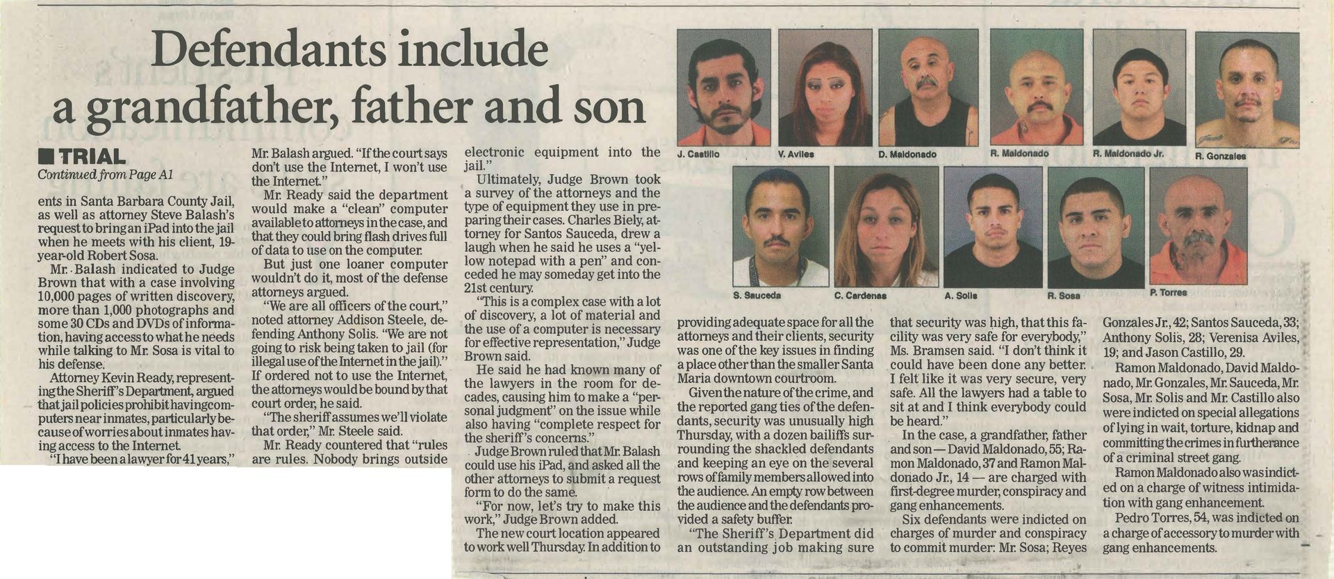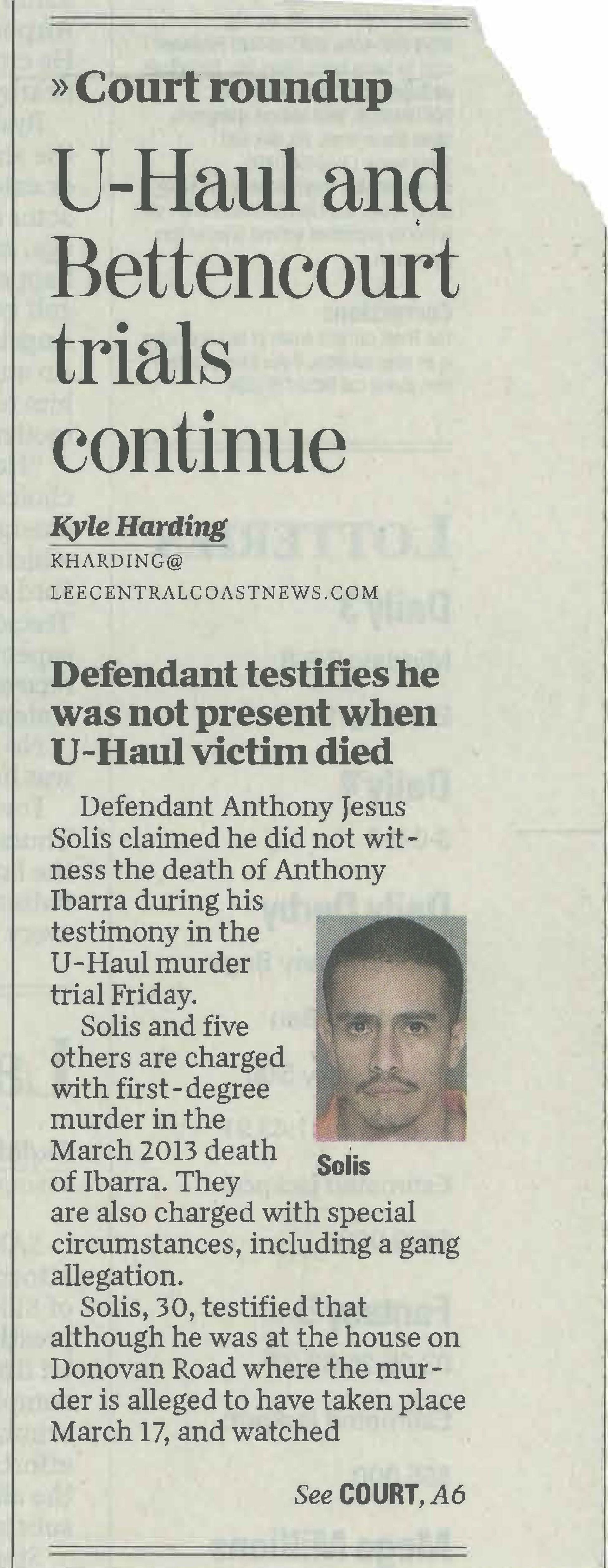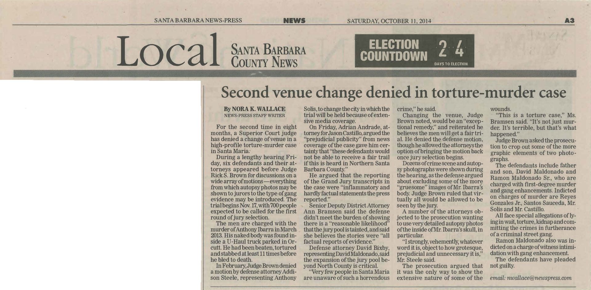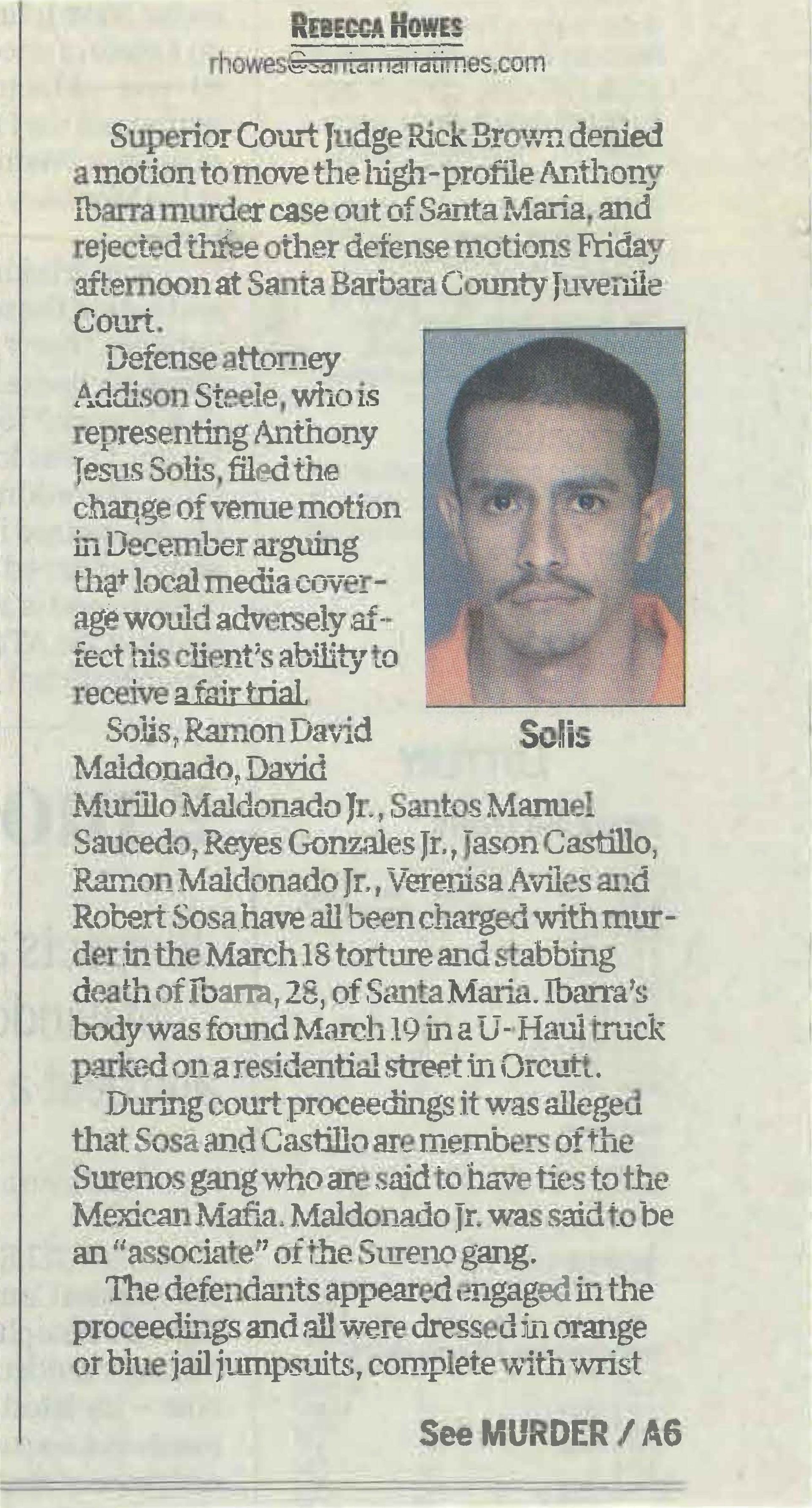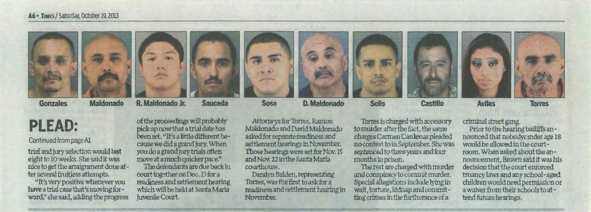 This was a particularly long and grueling murder trial. The press dubbed the case "The U-Haul Murder Trial" because the decedent's body was discovered in an abandoned U-Haul truck with his blood dripping out of the back of the truck. There were originally 13 co-defendants, not all of which were charged with murder. The plea negotiations parred it down to six co-defendants, all charged with murder, all with special circumstances that included torture and gang murder. All six defendants were facing LWOPP sentences. It was largest number of co-defendants in a murder trial ever in Santa Barbara County, and probably the state. There wasn't a courtroom in the county large enough for the trial. The largest courtroom in the county is at the Juvenile Court in Santa Maria, however it didn't have a jury box because juveniles do not have a right to a jury trial. The courtroom was modified by having a jury box built in it. However, even that was far too small for jury selection because of the several hundreds of prospective jurors would need to be called.