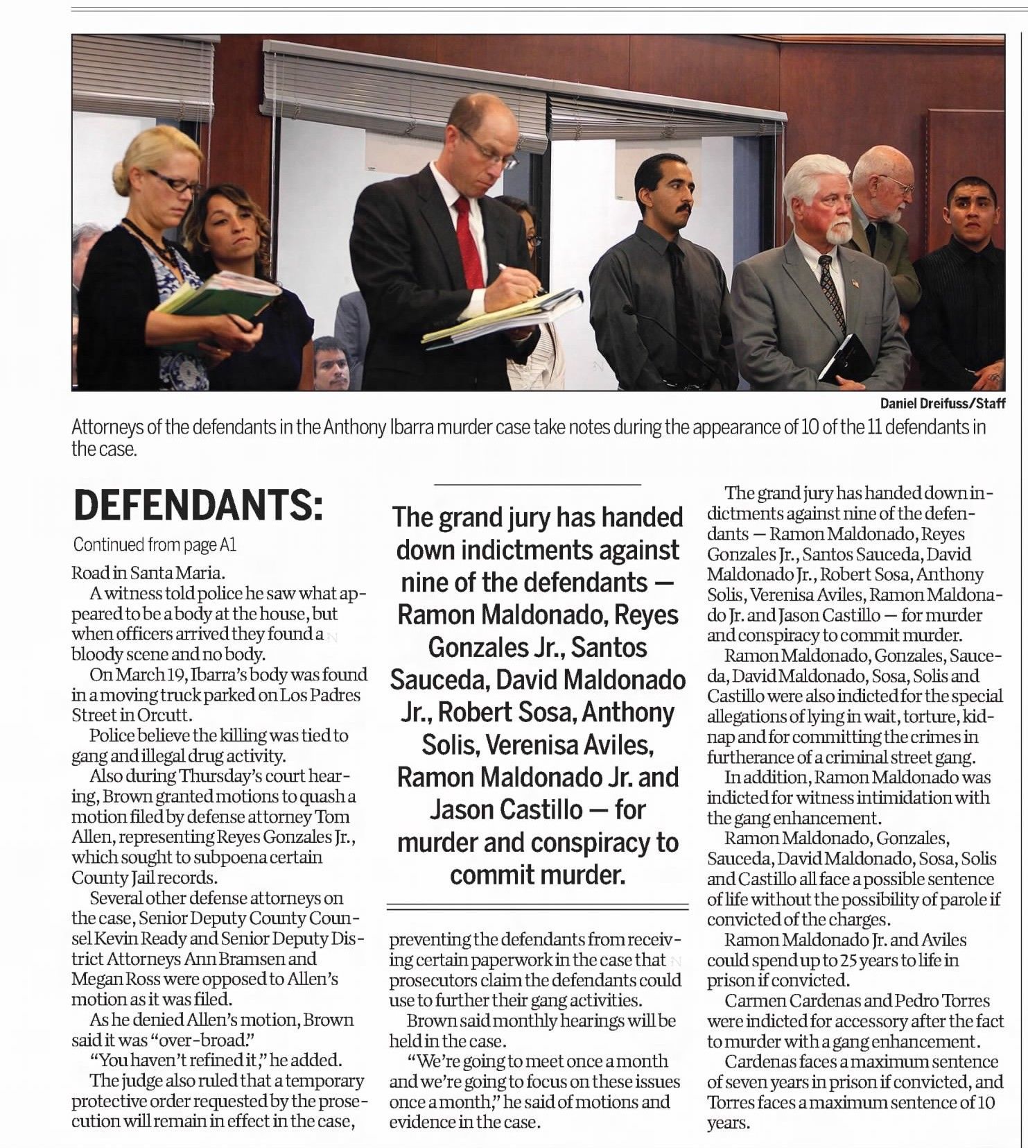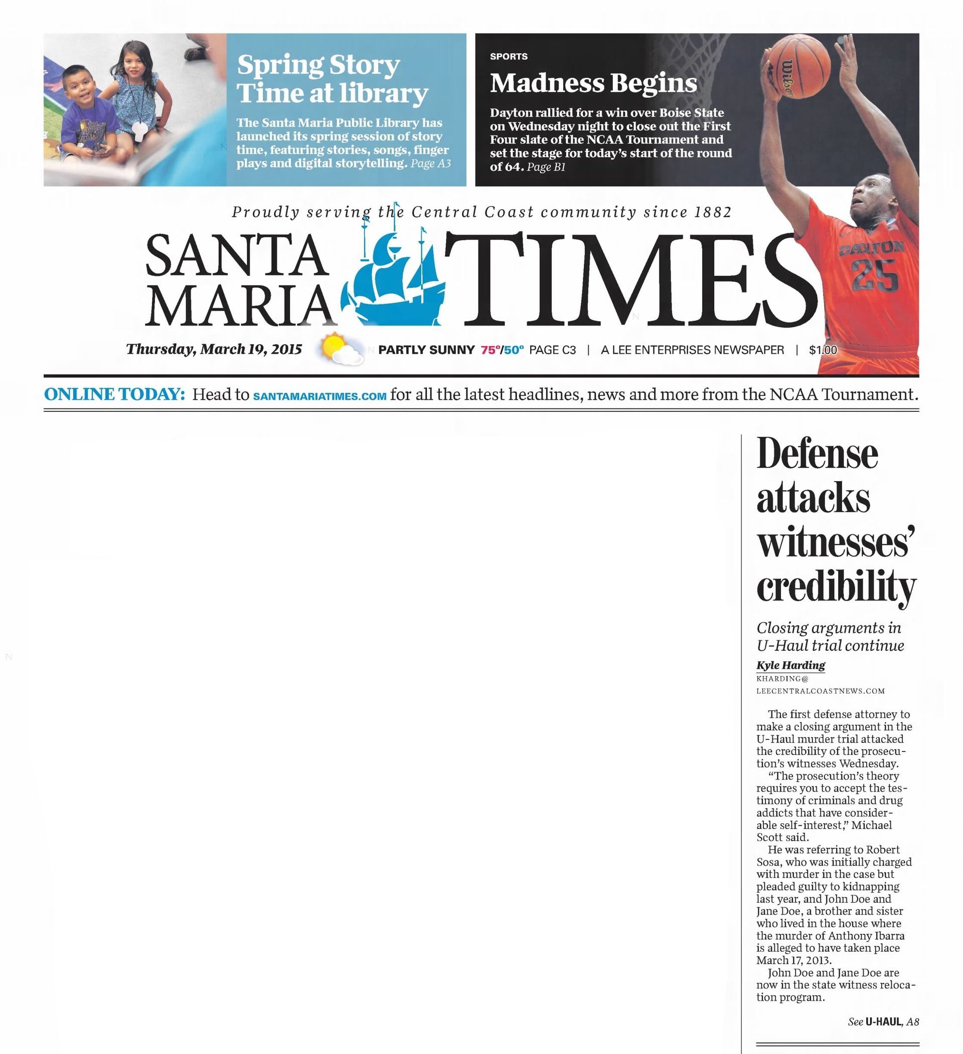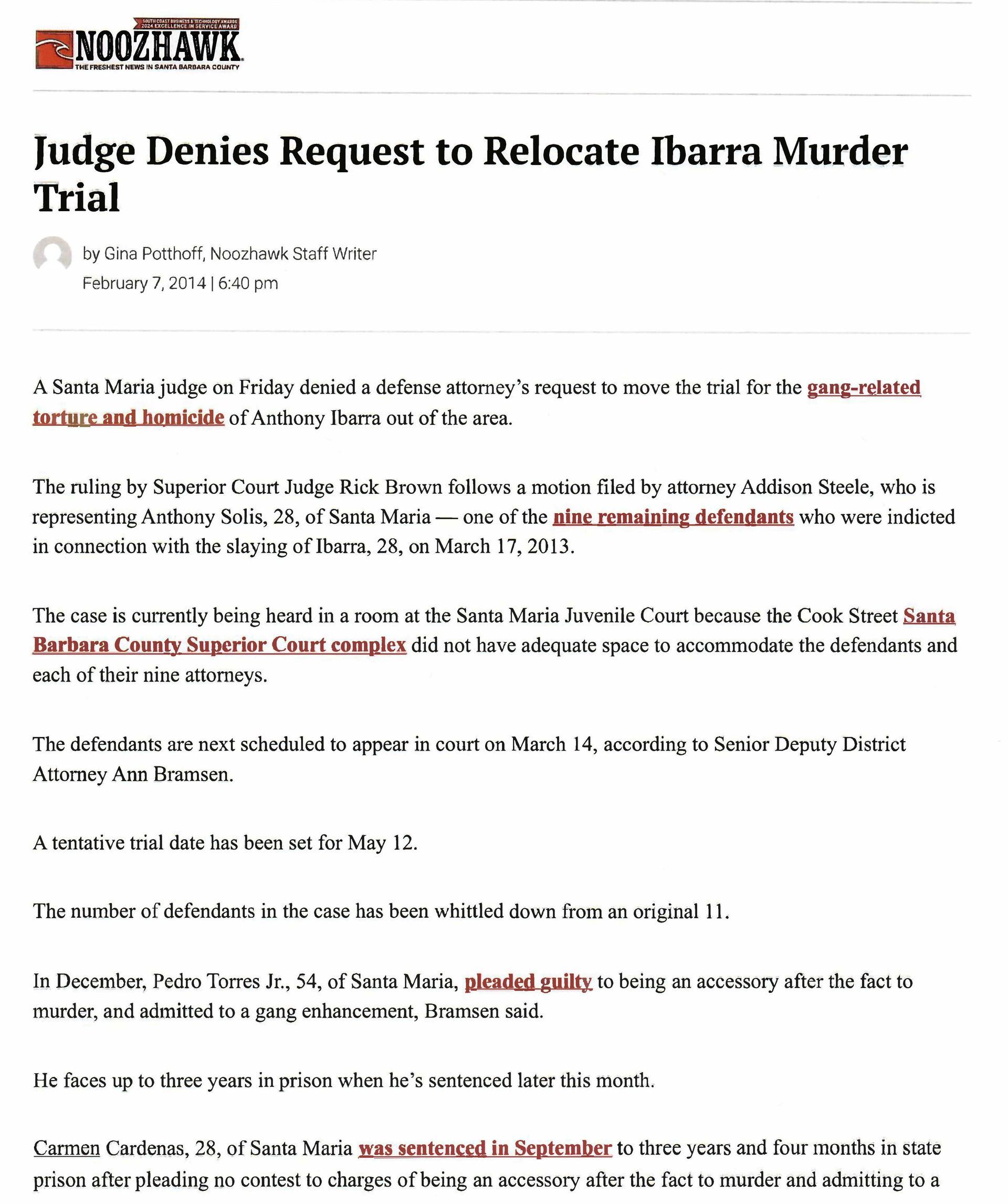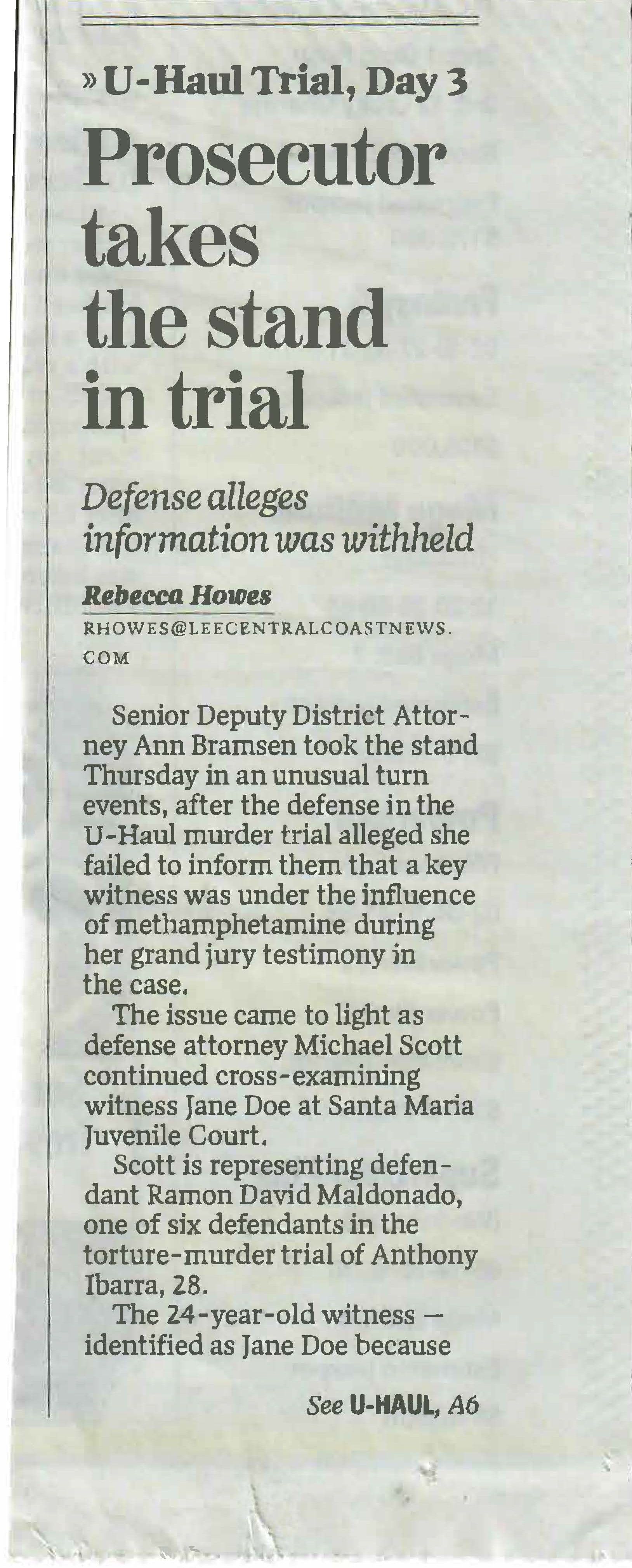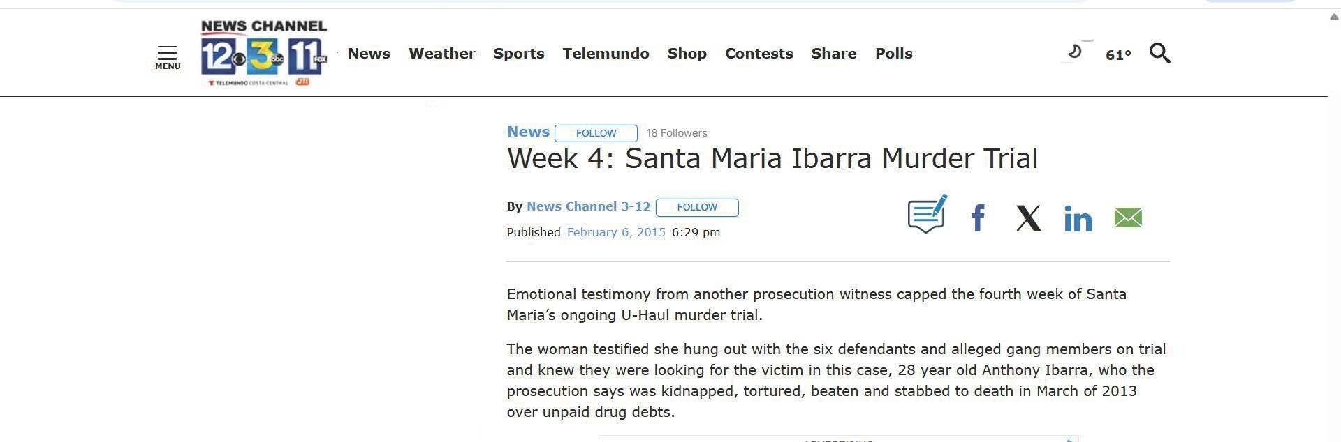 This was a particularly long and grueling murder trial. The press dubbed the case "The U-Haul Murder Trial" because the decedent's body was discovered in an abandoned U-Haul truck with his blood dripping out of the back of the truck. There were originally 13 co-defendants, not all of which were charged with murder. The plea negotiations parred it down to six co-defendants, all charged with murder, all with special circumstances that included torture and gang murder. All six defendants were facing LWOPP sentences. It was largest number of co-defendants in a murder trial ever in Santa Barbara County, and probably the state. There wasn't a courtroom in the county large enough for the trial. The largest courtroom in the county is at the Juvenile Court in Santa Maria, however it didn't have a jury box because juveniles do not have a right to a jury trial. The courtroom was modified by having a jury box built in it. However, even that was far too small for jury selection because of the several hundreds of prospective jurors would need to be called.