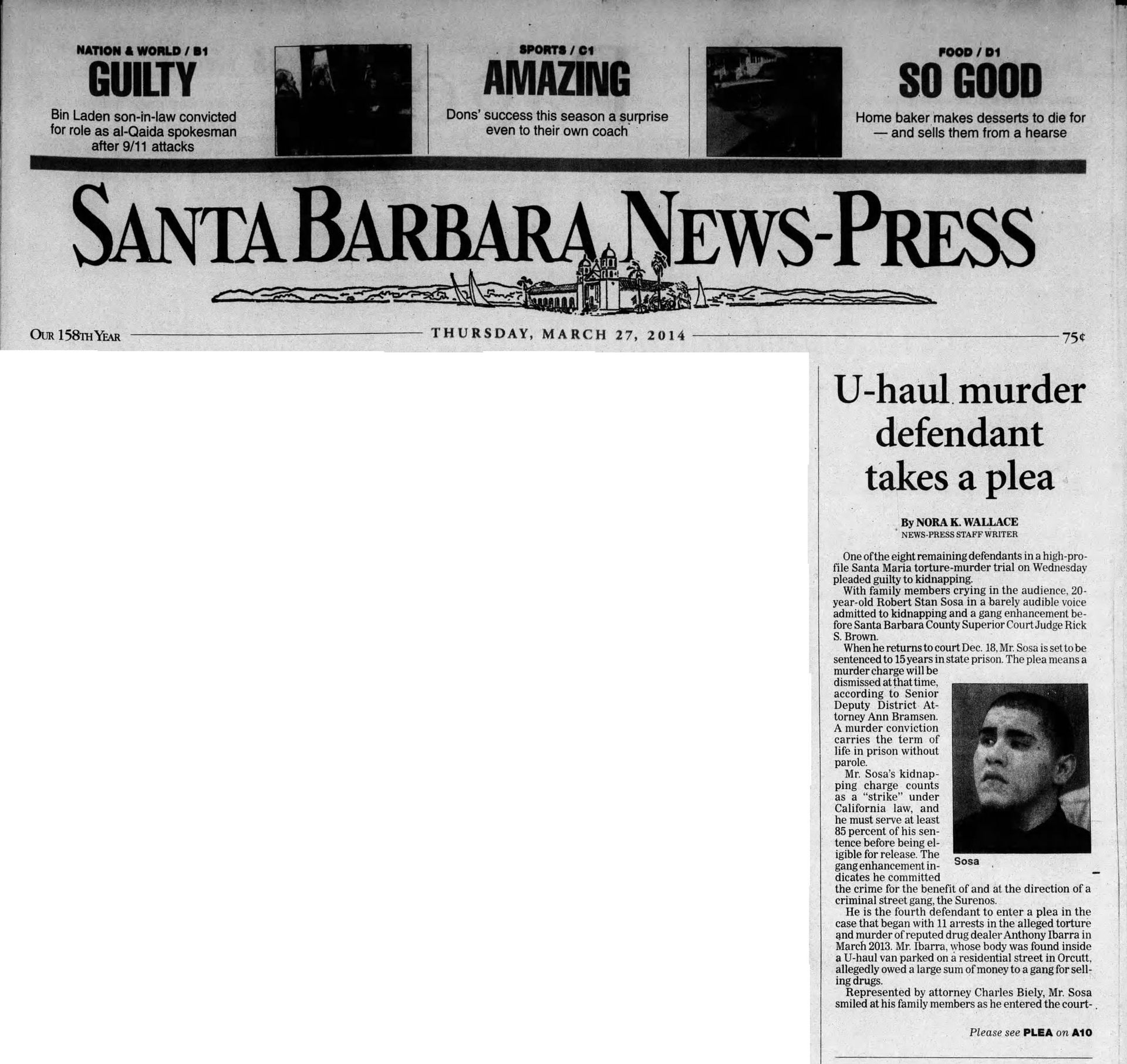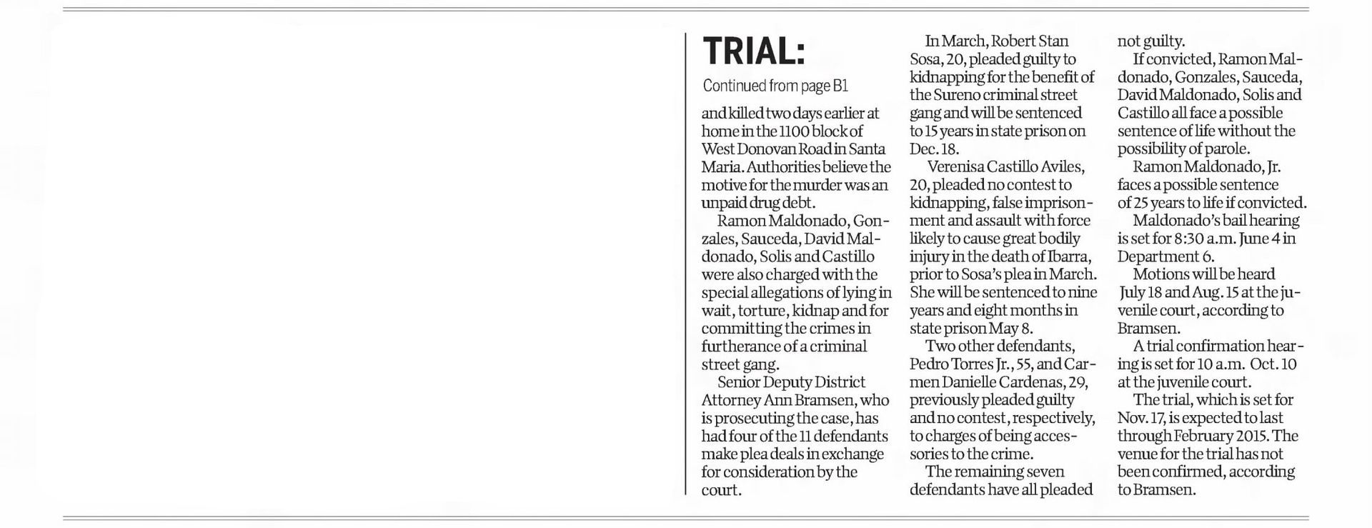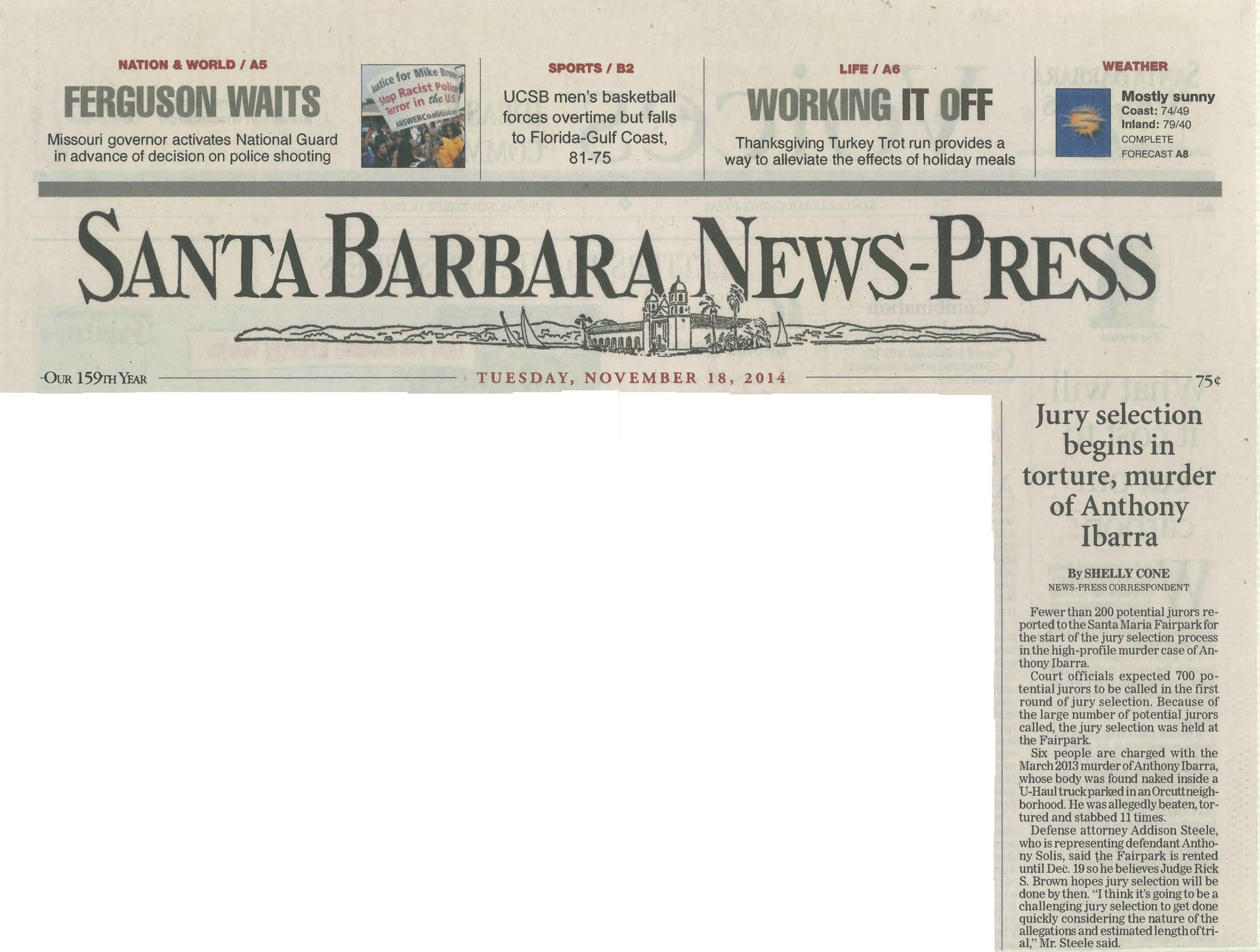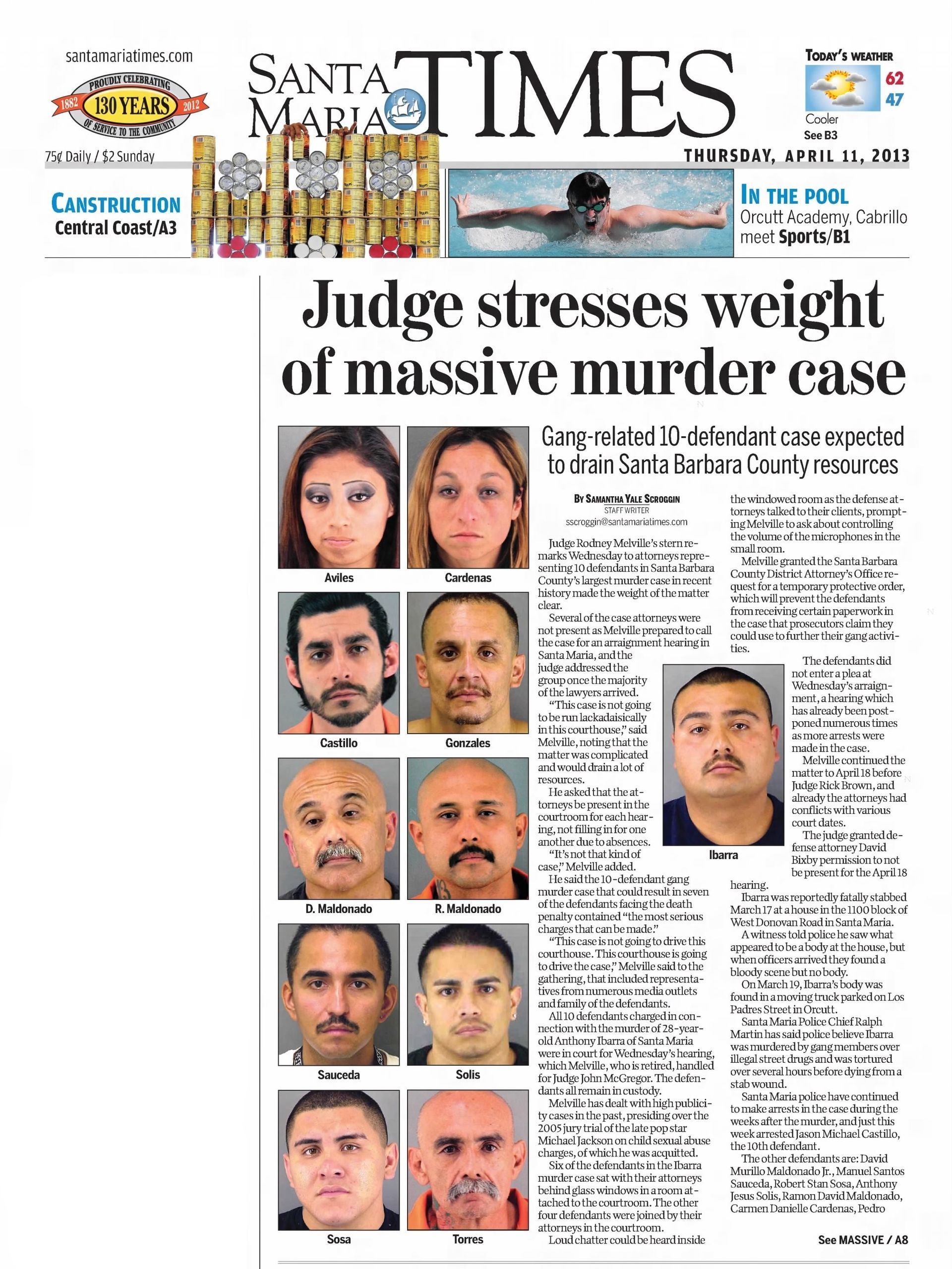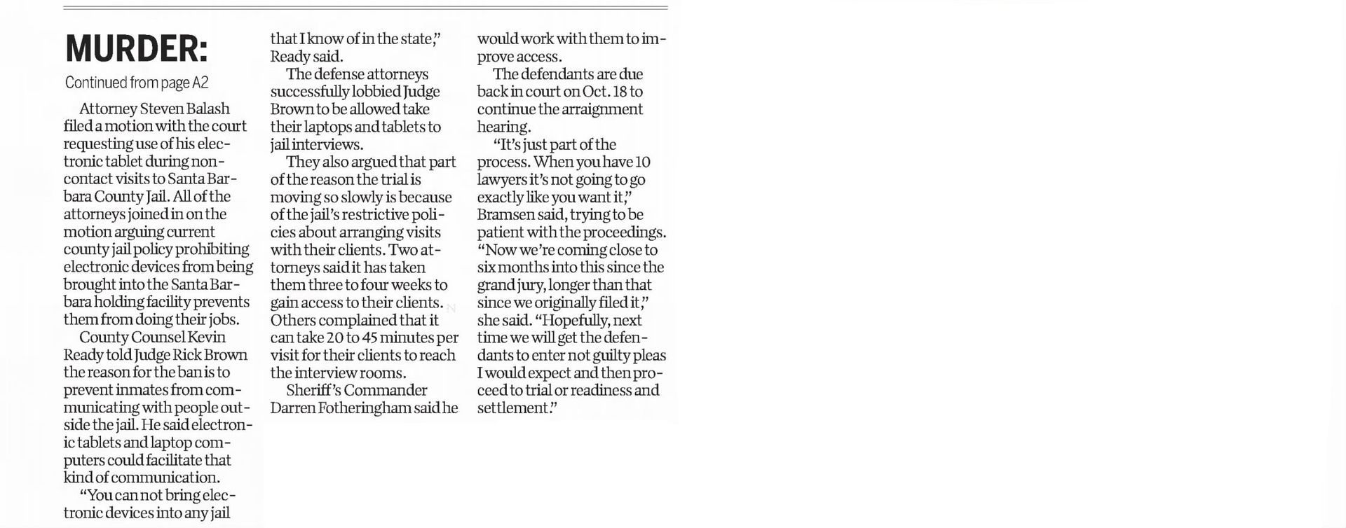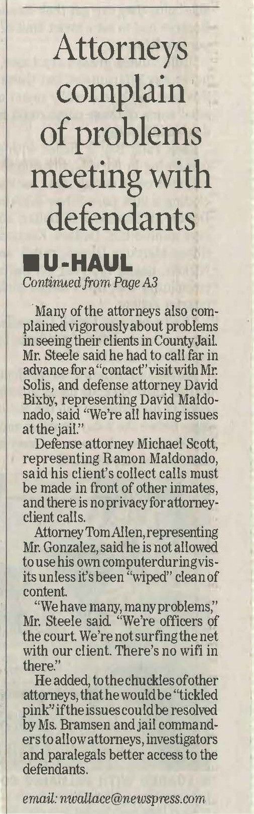 This was a particularly long and grueling murder trial. The press dubbed the case "The U-Haul Murder Trial" because the decedent's body was discovered in an abandoned U-Haul truck with his blood dripping out of the back of the truck. There were originally 13 co-defendants, not all of which were charged with murder. The plea negotiations parred it down to six co-defendants, all charged with murder, all with special circumstances that included torture and gang murder. All six defendants were facing LWOPP sentences. It was largest number of co-defendants in a murder trial ever in Santa Barbara County, and probably the state. There wasn't a courtroom in the county large enough for the trial. The largest courtroom in the county is at the Juvenile Court in Santa Maria, however it didn't have a jury box because juveniles do not have a right to a jury trial. The courtroom was modified by having a jury box built in it. However, even that was far too small for jury selection because of the several hundreds of prospective jurors would need to be called.