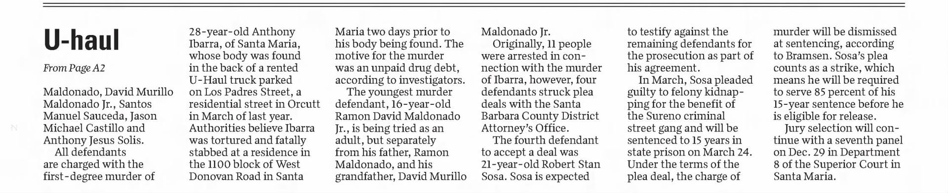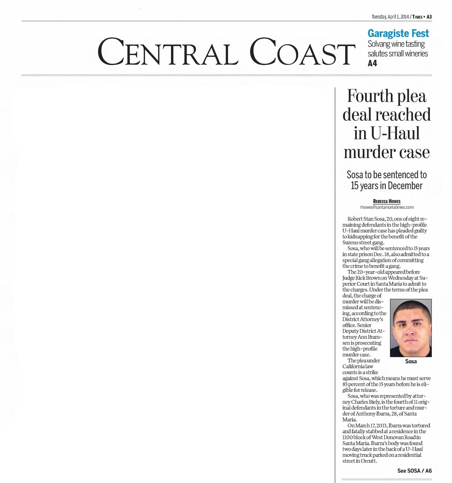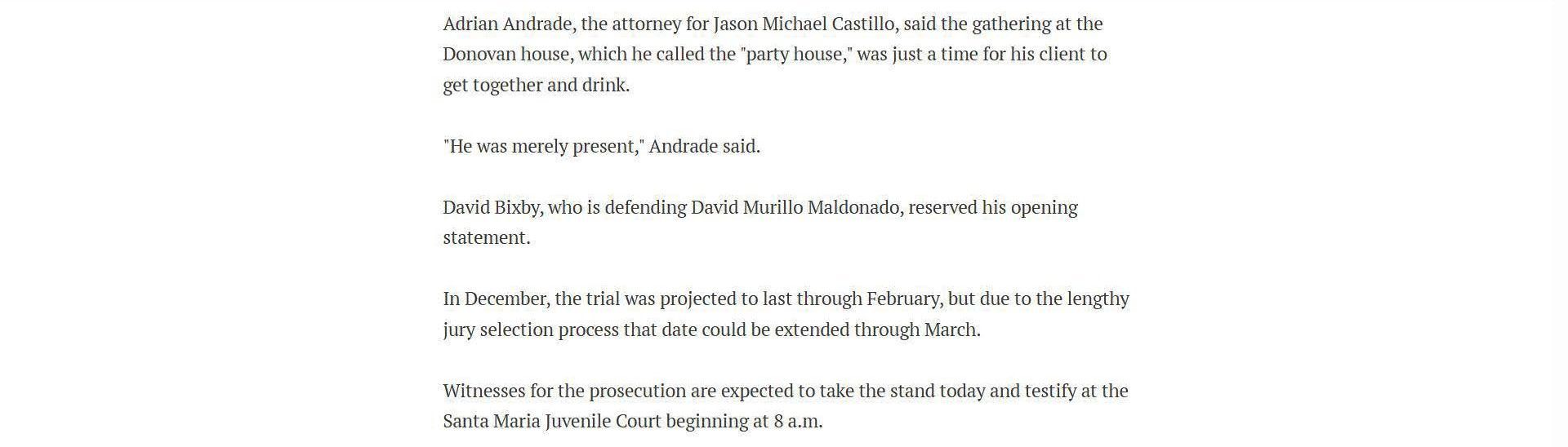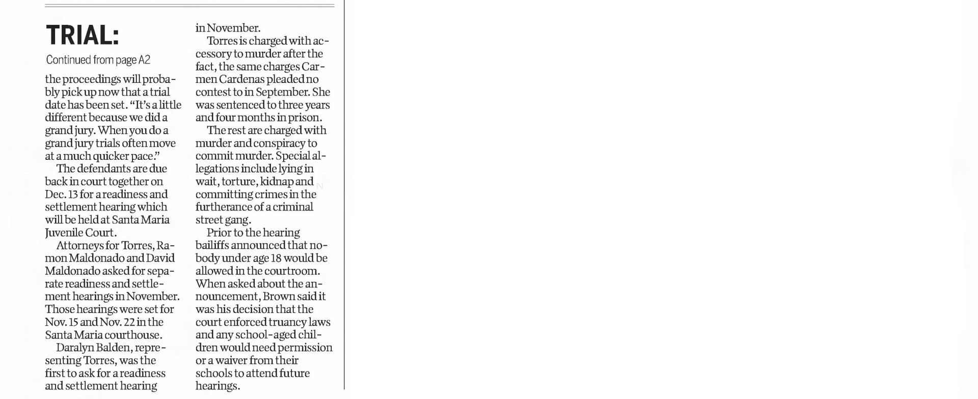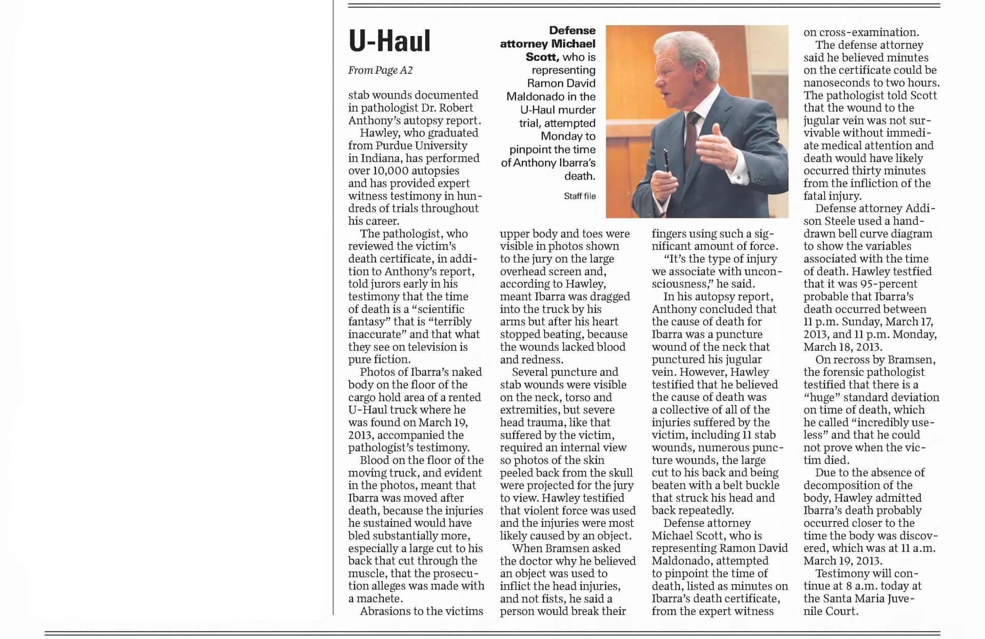 This was a particularly long and grueling murder trial. The press dubbed the case "The U-Haul Murder Trial" because the decedent's body was discovered in an abandoned U-Haul truck with his blood dripping out of the back of the truck. There were originally 13 co-defendants, not all of which were charged with murder. The plea negotiations parred it down to six co-defendants, all charged with murder, all with special circumstances that included torture and gang murder. All six defendants were facing LWOPP sentences. It was largest number of co-defendants in a murder trial ever in Santa Barbara County, and probably the state. There wasn't a courtroom in the county large enough for the trial. The largest courtroom in the county is at the Juvenile Court in Santa Maria, however it didn't have a jury box because juveniles do not have a right to a jury trial. The courtroom was modified by having a jury box built in it. However, even that was far too small for jury selection because of the several hundreds of prospective jurors would need to be called.