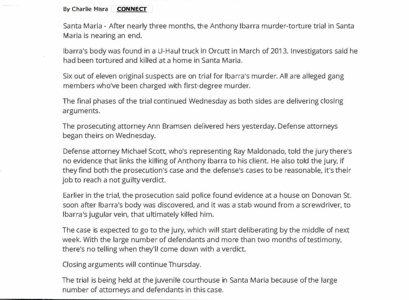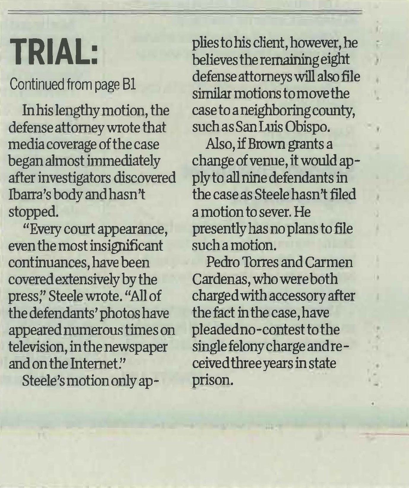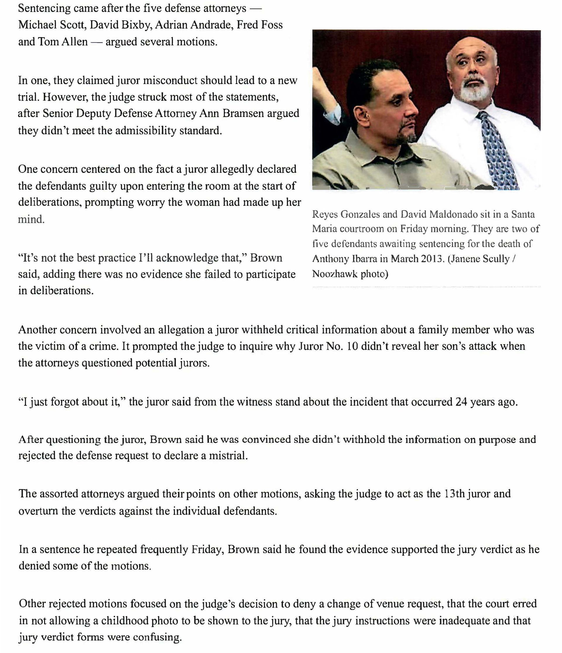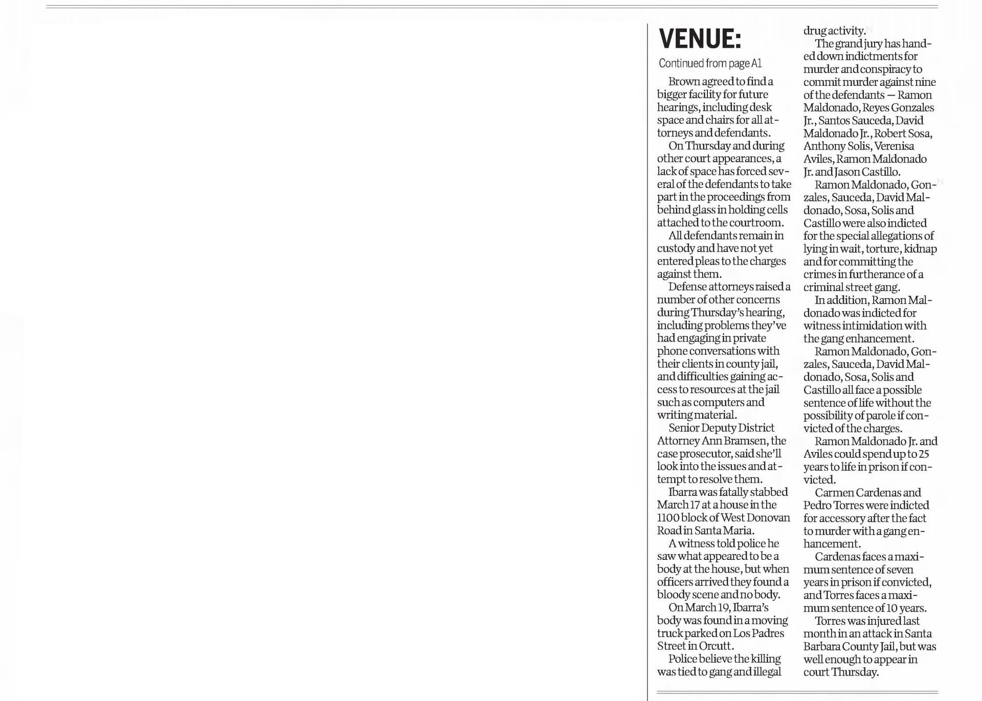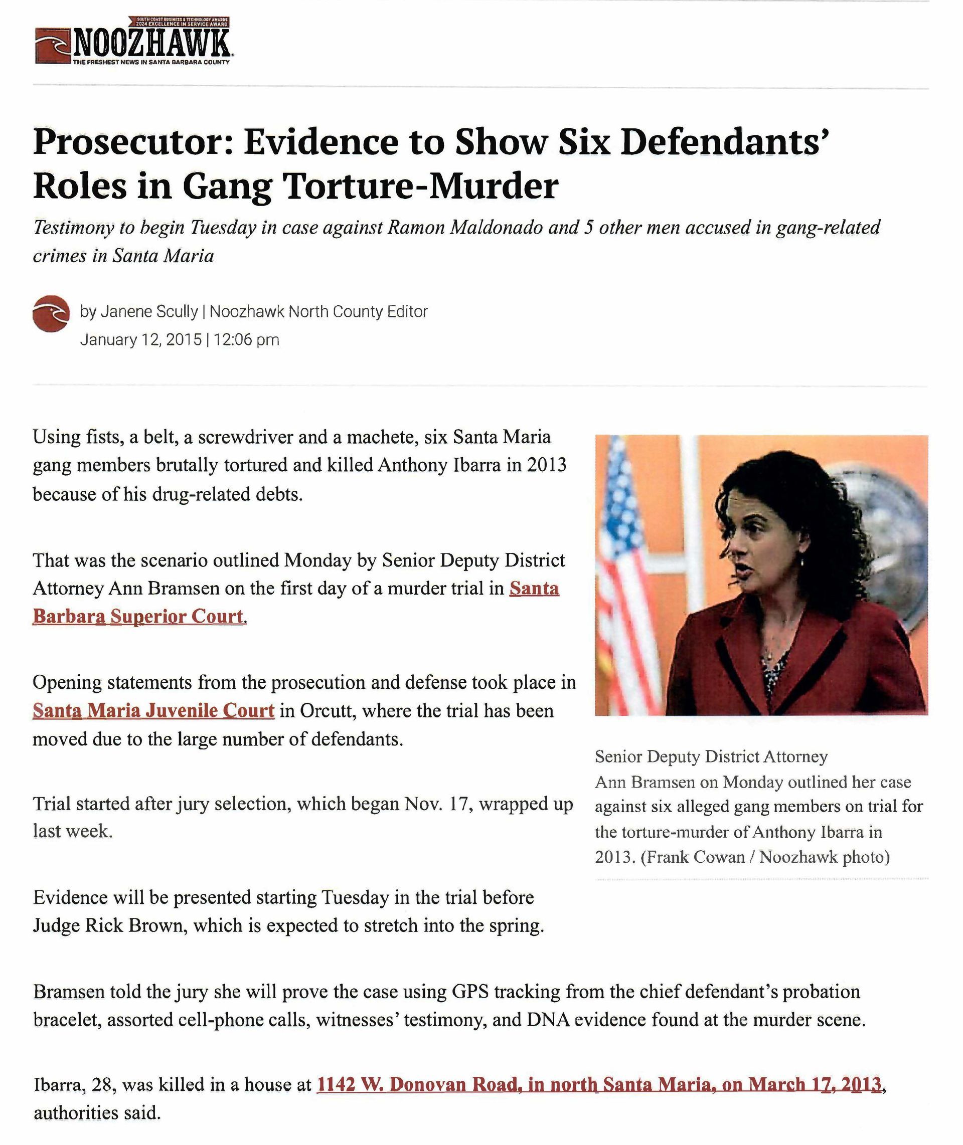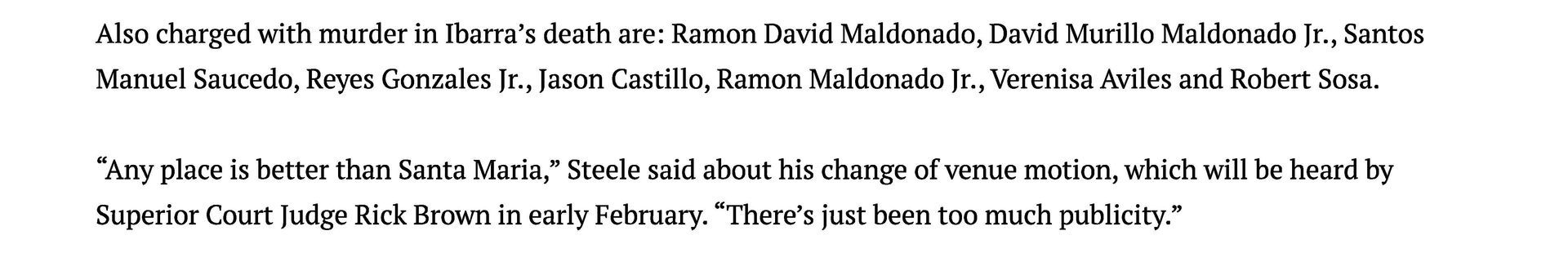 This was a particularly long and grueling murder trial. The press dubbed the case "The U-Haul Murder Trial" because the decedent's body was discovered in an abandoned U-Haul truck with his blood dripping out of the back of the truck. There were originally 13 co-defendants, not all of which were charged with murder. The plea negotiations parred it down to six co-defendants, all charged with murder, all with special circumstances that included torture and gang murder. All six defendants were facing LWOPP sentences. It was largest number of co-defendants in a murder trial ever in Santa Barbara County, and probably the state. There wasn't a courtroom in the county large enough for the trial. The largest courtroom in the county is at the Juvenile Court in Santa Maria, however it didn't have a jury box because juveniles do not have a right to a jury trial. The courtroom was modified by having a jury box built in it. However, even that was far too small for jury selection because of the several hundreds of prospective jurors would need to be called.