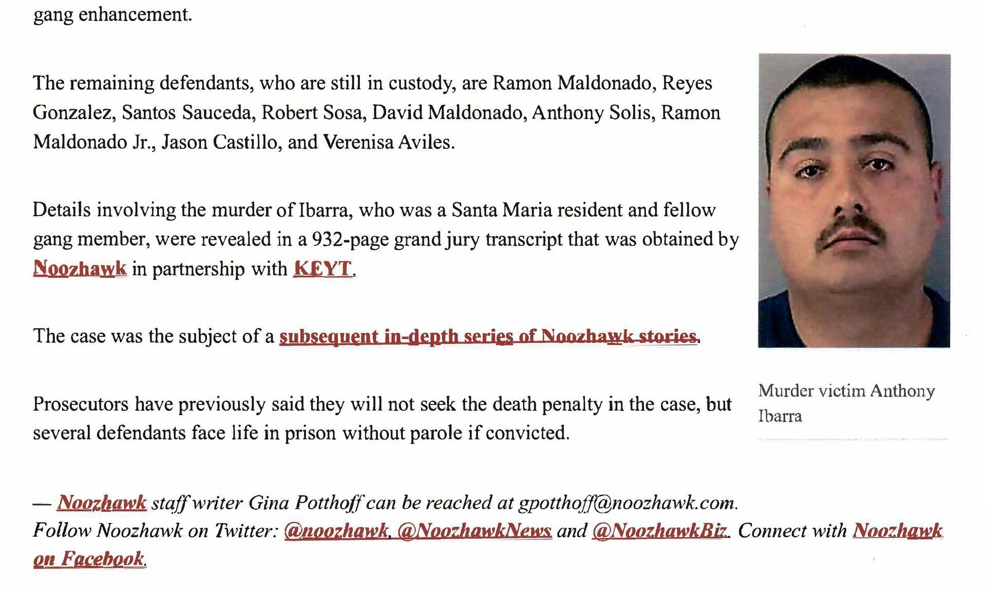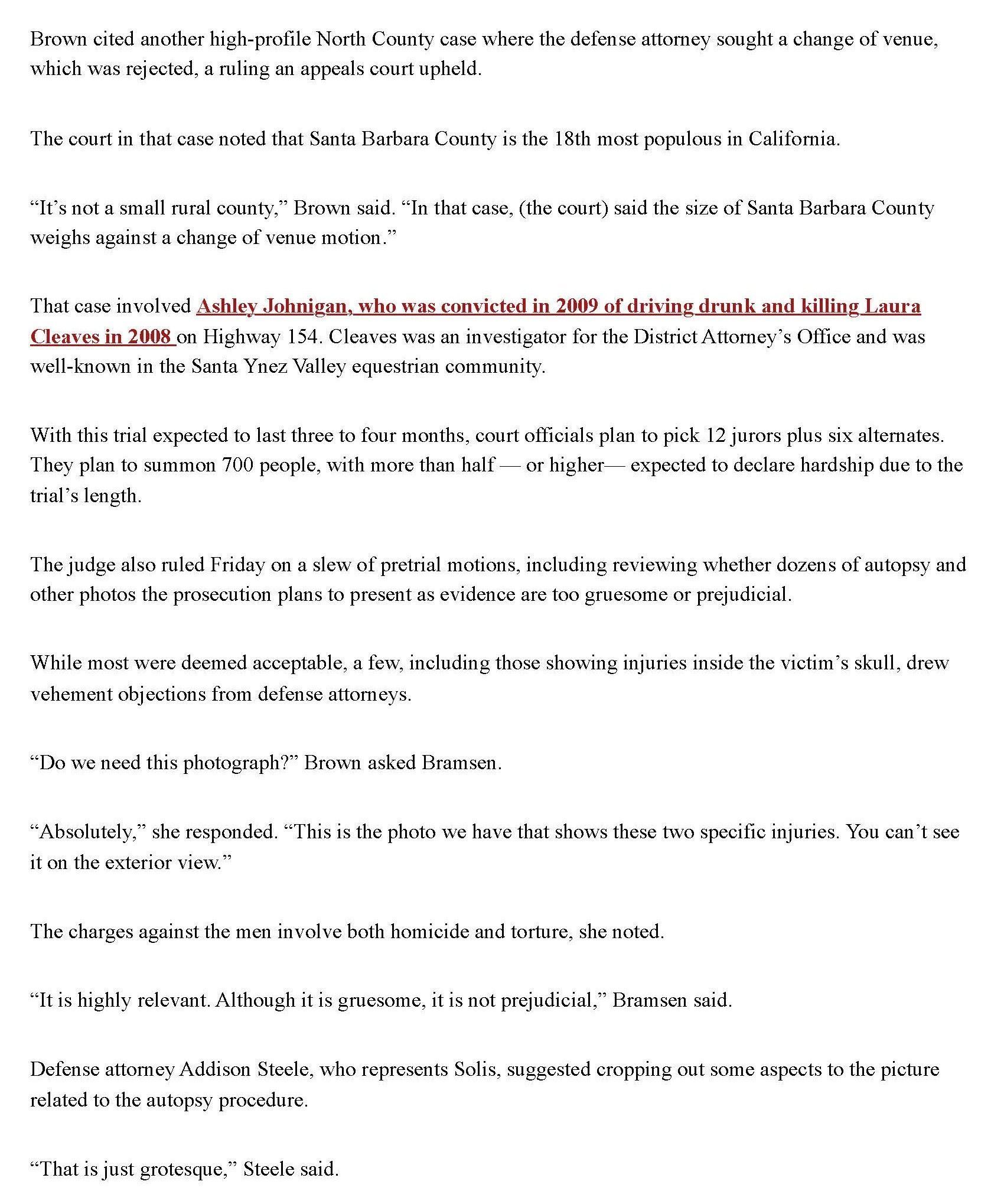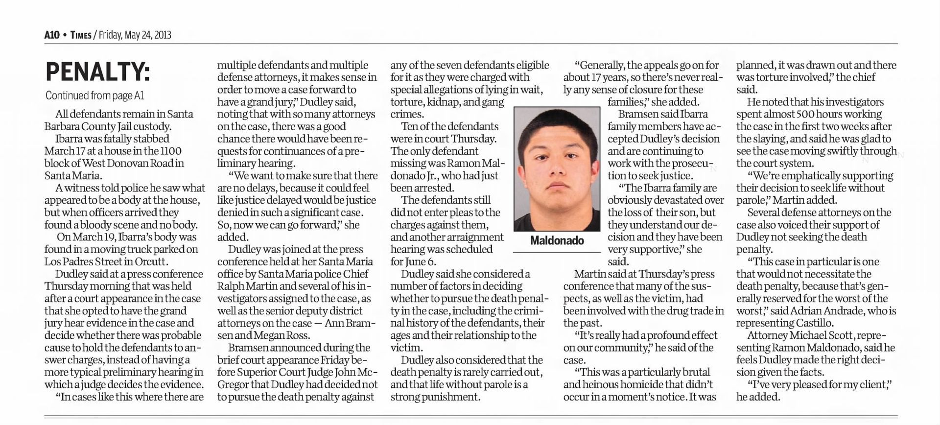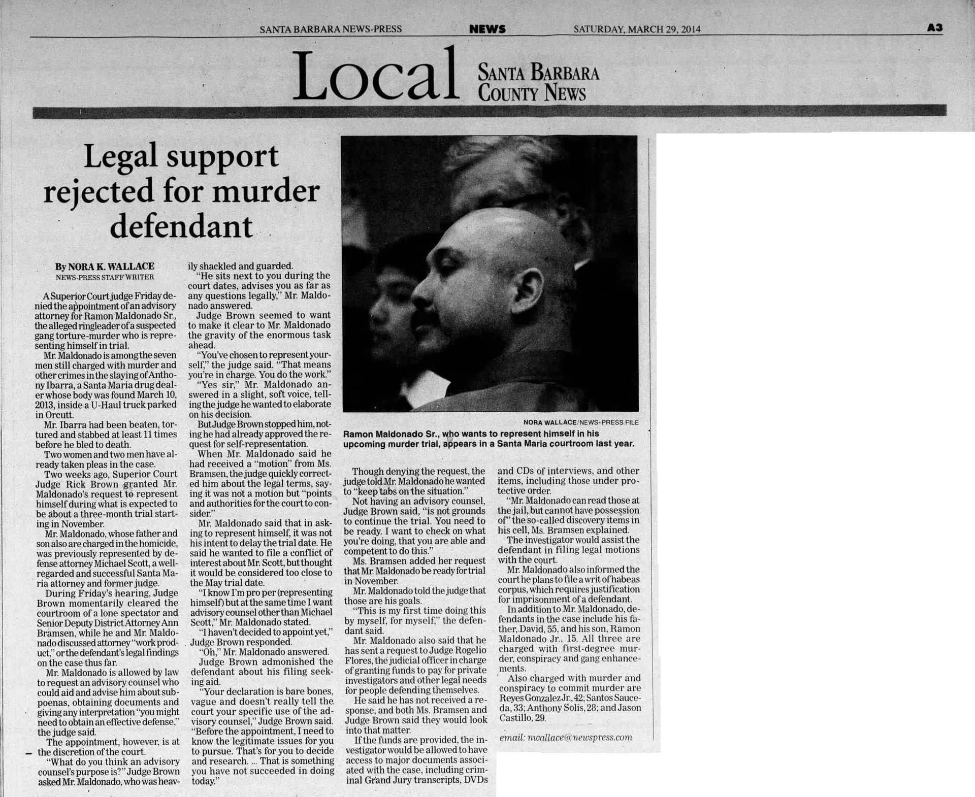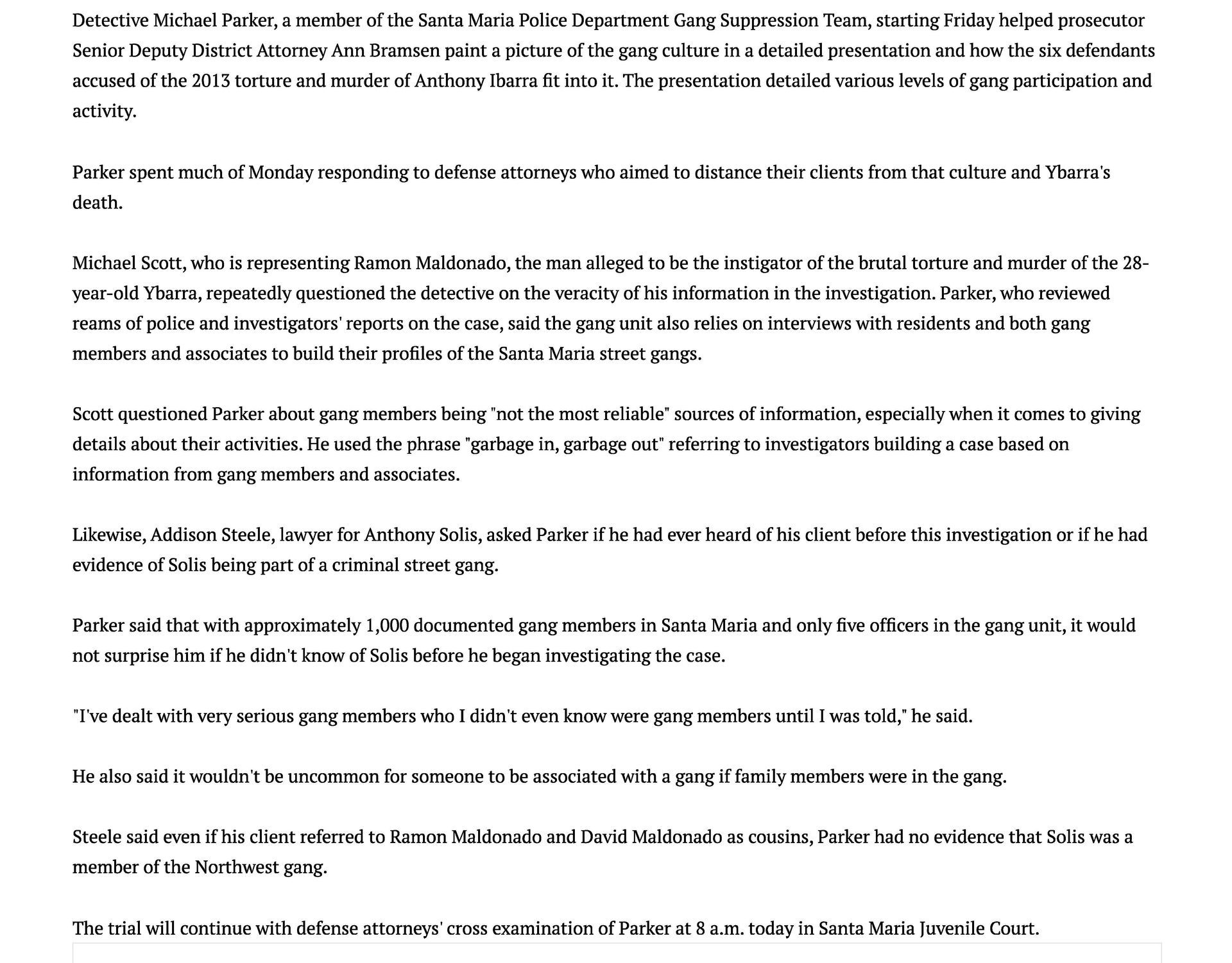 This was a particularly long and grueling murder trial. The press dubbed the case "The U-Haul Murder Trial" because the decedent's body was discovered in an abandoned U-Haul truck with his blood dripping out of the back of the truck. There were originally 13 co-defendants, not all of which were charged with murder. The plea negotiations parred it down to six co-defendants, all charged with murder, all with special circumstances that included torture and gang murder. All six defendants were facing LWOPP sentences. It was largest number of co-defendants in a murder trial ever in Santa Barbara County, and probably the state. There wasn't a courtroom in the county large enough for the trial. The largest courtroom in the county is at the Juvenile Court in Santa Maria, however it didn't have a jury box because juveniles do not have a right to a jury trial. The courtroom was modified by having a jury box built in it. However, even that was far too small for jury selection because of the several hundreds of prospective jurors would need to be called.