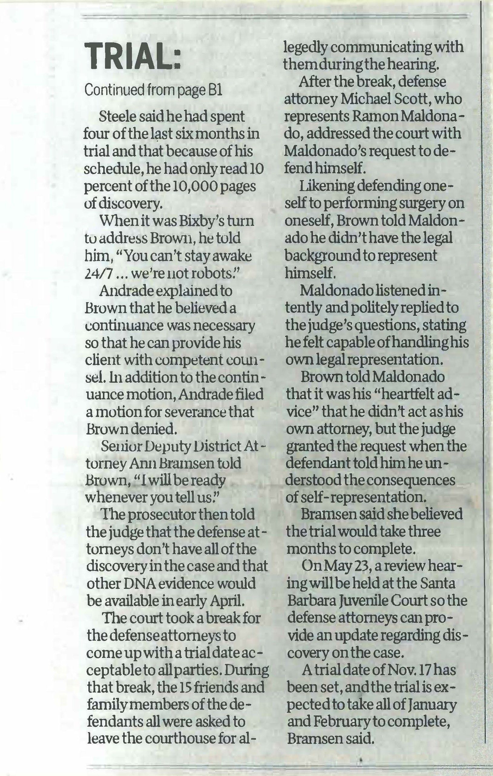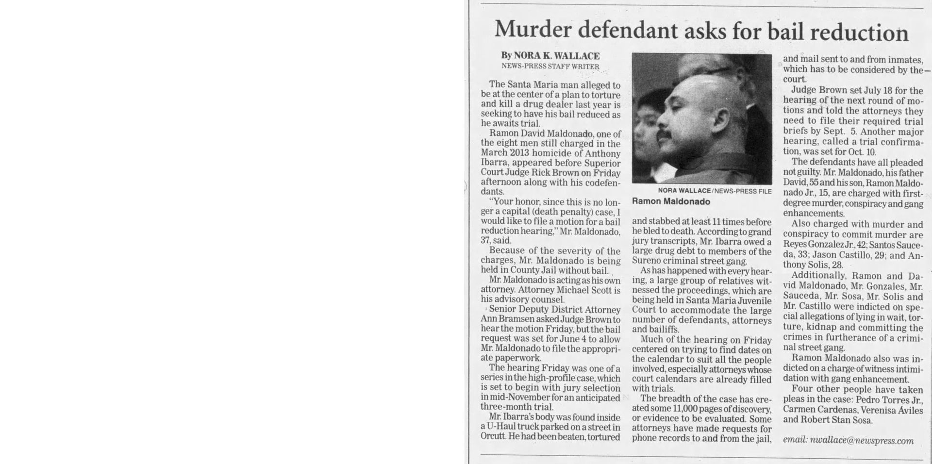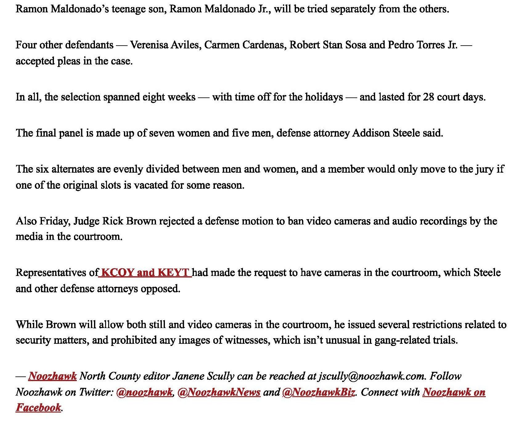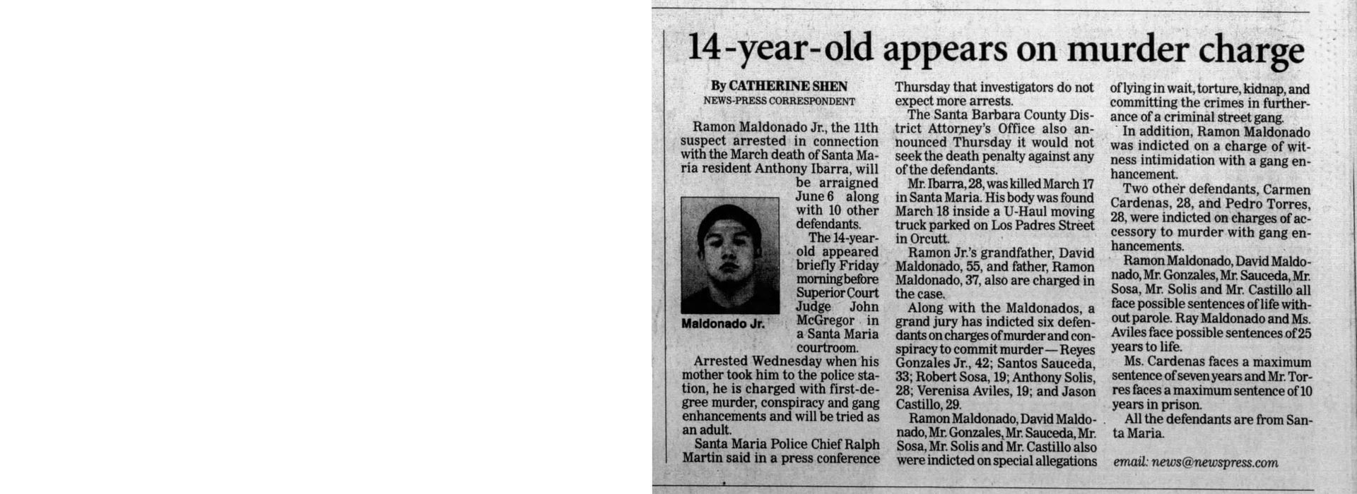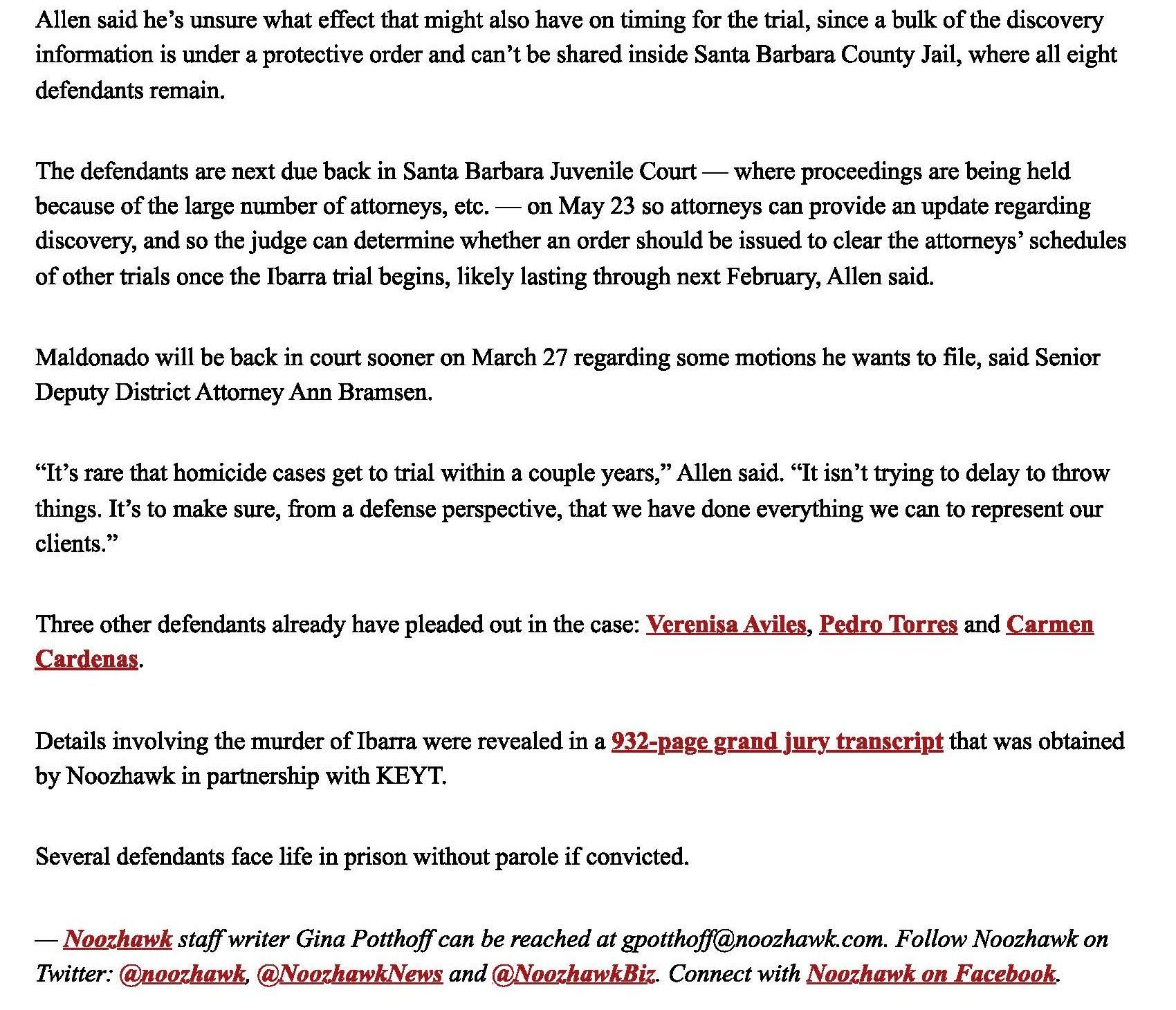 This was a particularly long and grueling murder trial. The press dubbed the case "The U-Haul Murder Trial" because the decedent's body was discovered in an abandoned U-Haul truck with his blood dripping out of the back of the truck. There were originally 13 co-defendants, not all of which were charged with murder. The plea negotiations parred it down to six co-defendants, all charged with murder, all with special circumstances that included torture and gang murder. All six defendants were facing LWOPP sentences. It was largest number of co-defendants in a murder trial ever in Santa Barbara County, and probably the state. There wasn't a courtroom in the county large enough for the trial. The largest courtroom in the county is at the Juvenile Court in Santa Maria, however it didn't have a jury box because juveniles do not have a right to a jury trial. The courtroom was modified by having a jury box built in it. However, even that was far too small for jury selection because of the several hundreds of prospective jurors would need to be called.