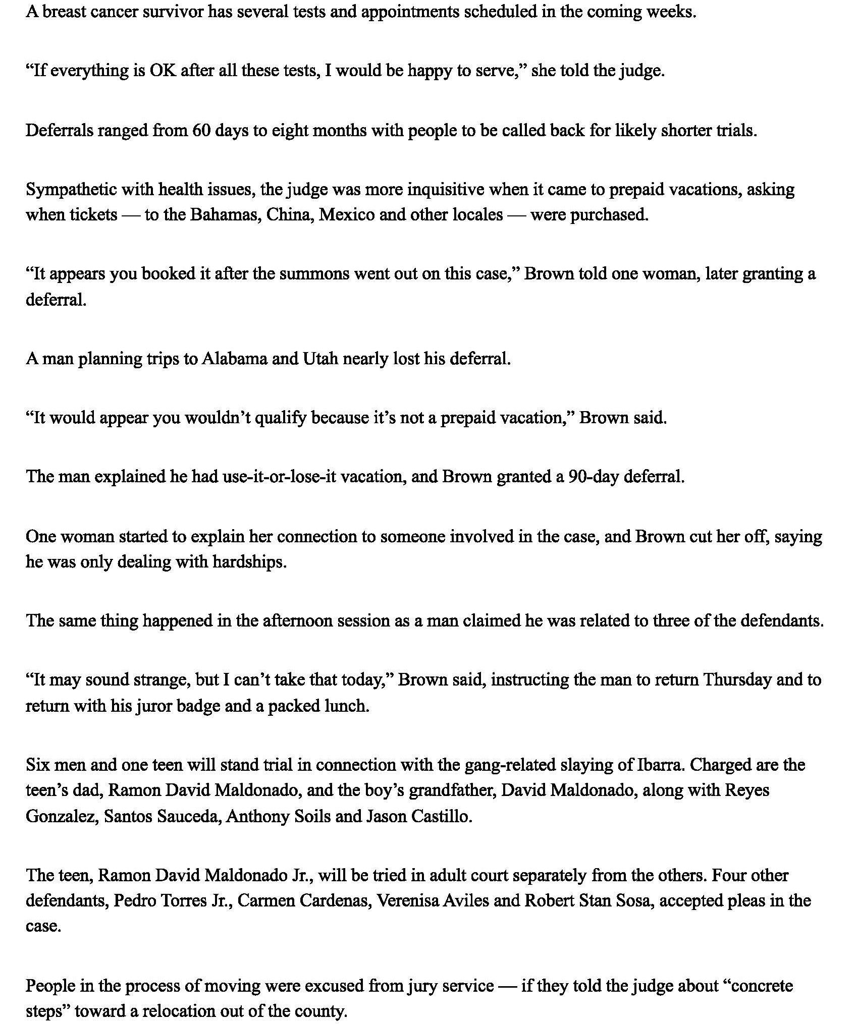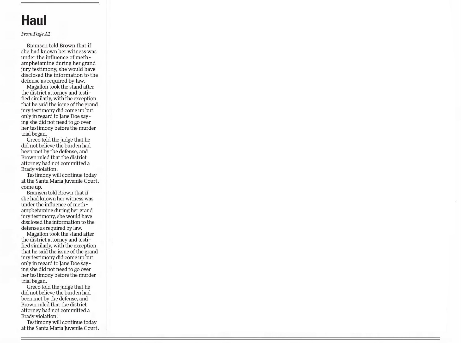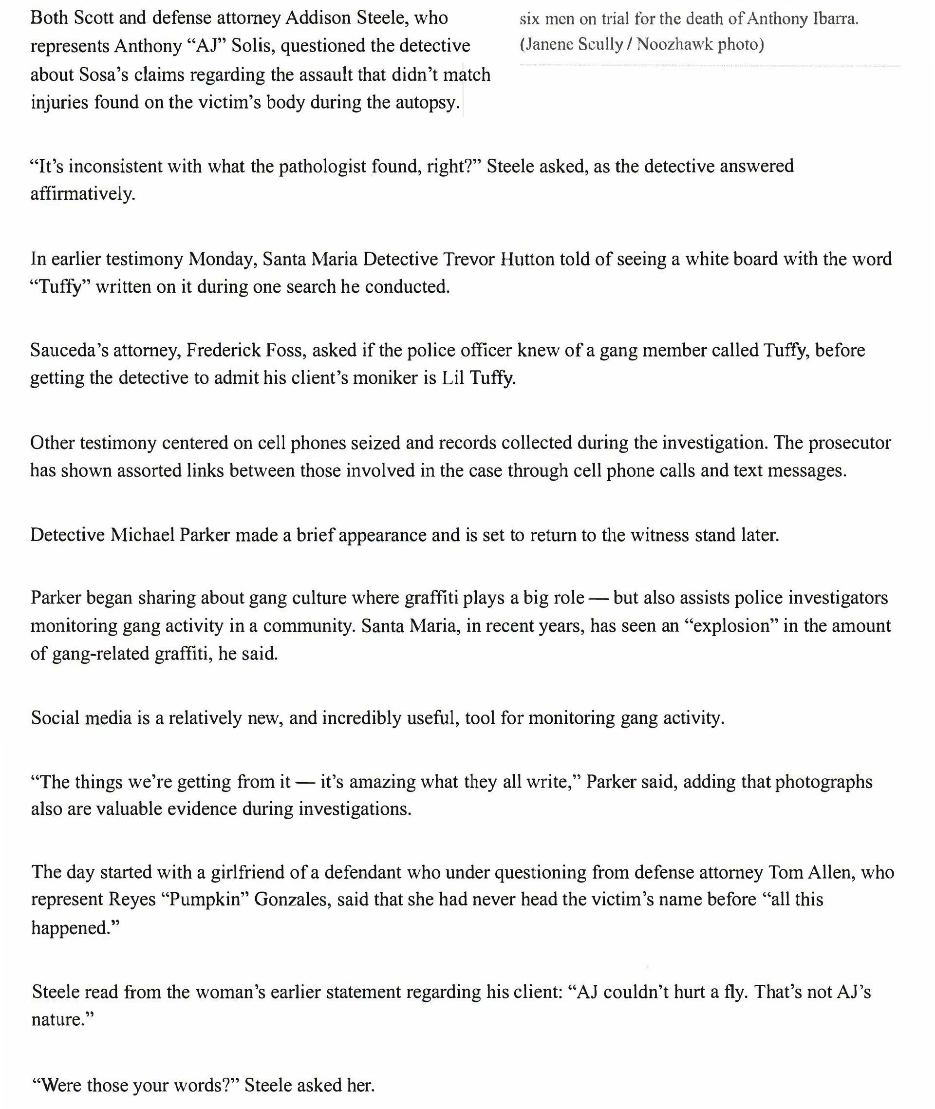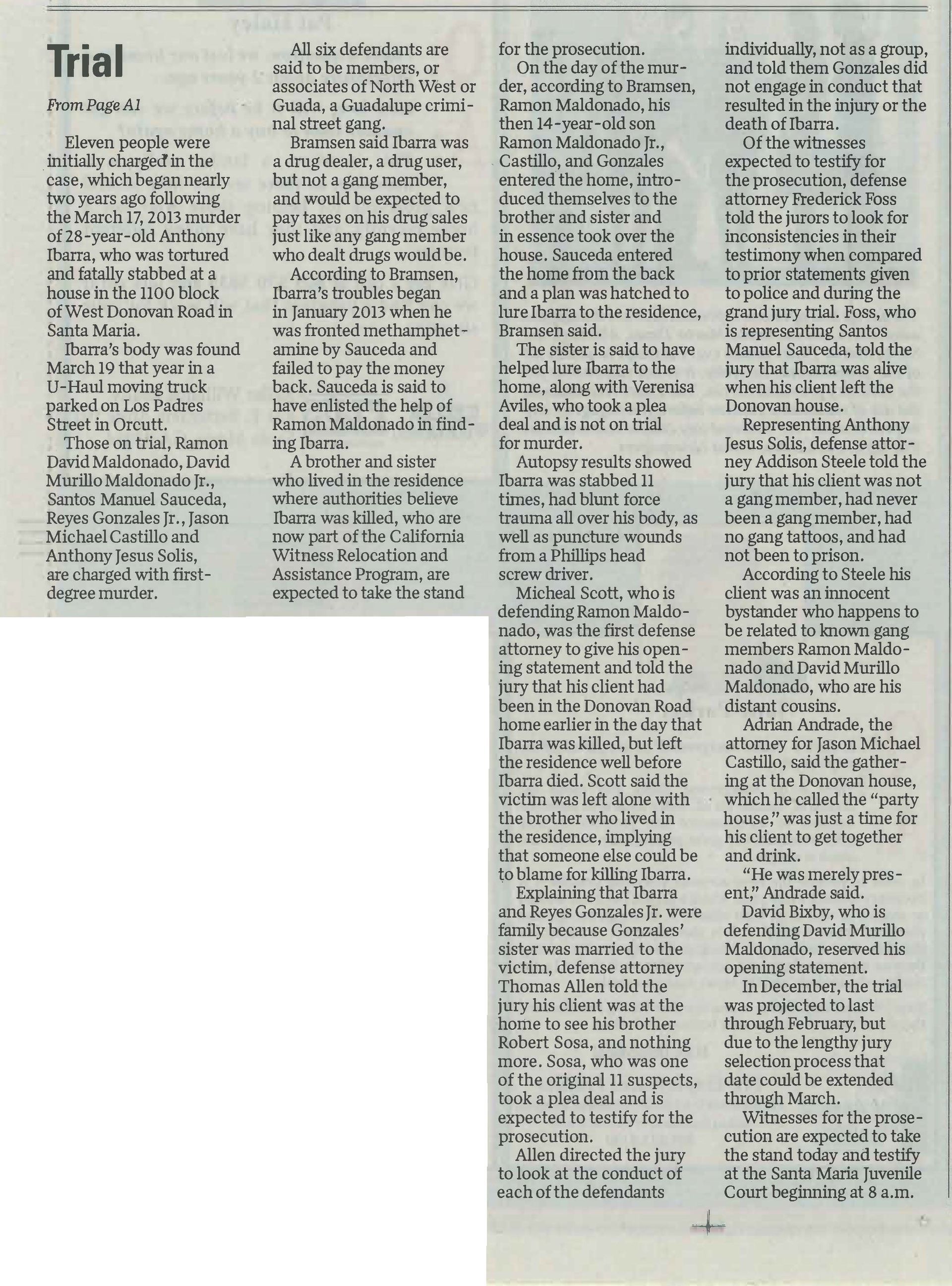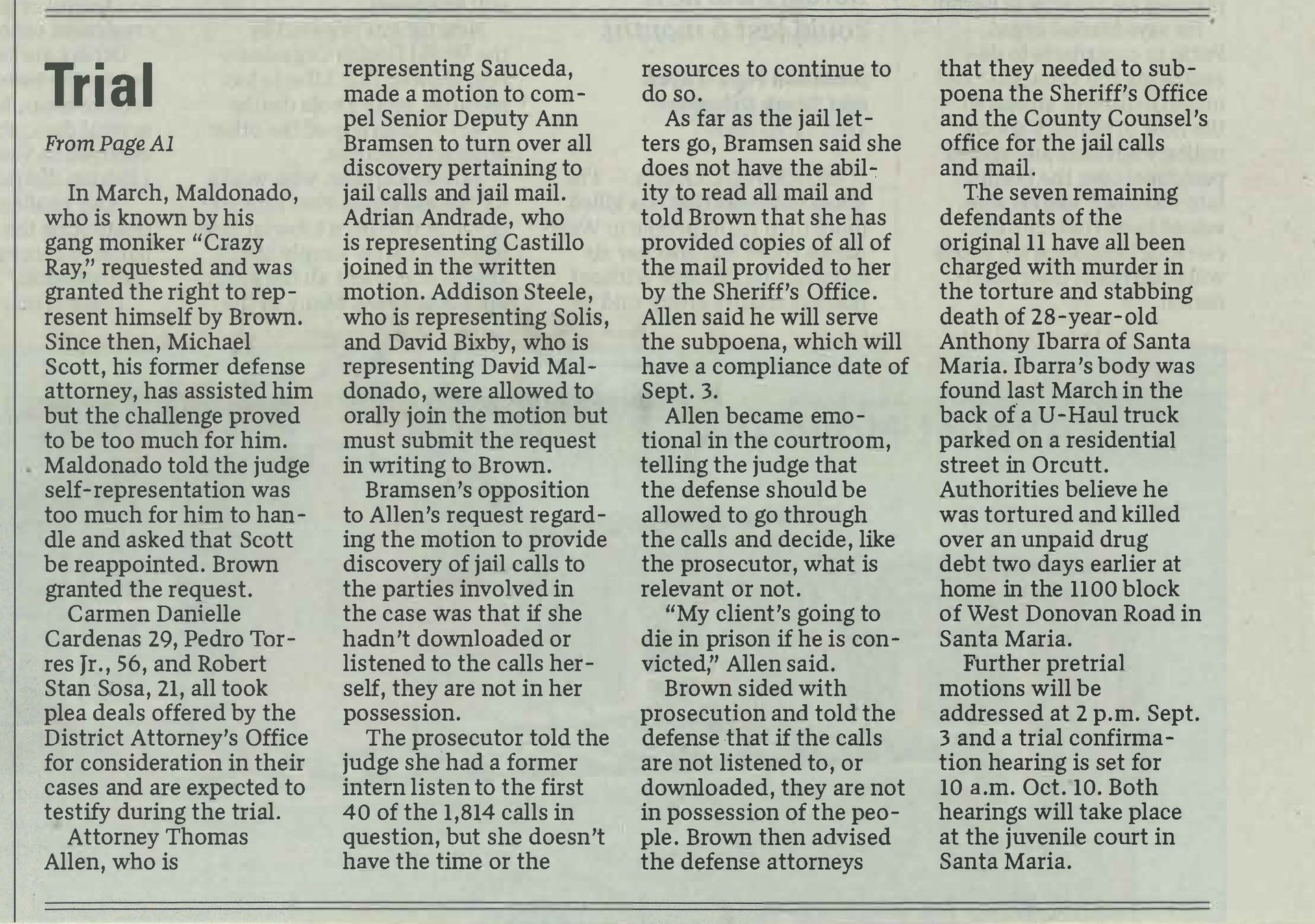 This was a particularly long and grueling murder trial. The press dubbed the case "The U-Haul Murder Trial" because the decedent's body was discovered in an abandoned U-Haul truck with his blood dripping out of the back of the truck. There were originally 13 co-defendants, not all of which were charged with murder. The plea negotiations parred it down to six co-defendants, all charged with murder, all with special circumstances that included torture and gang murder. All six defendants were facing LWOPP sentences. It was largest number of co-defendants in a murder trial ever in Santa Barbara County, and probably the state. There wasn't a courtroom in the county large enough for the trial. The largest courtroom in the county is at the Juvenile Court in Santa Maria, however it didn't have a jury box because juveniles do not have a right to a jury trial. The courtroom was modified by having a jury box built in it. However, even that was far too small for jury selection because of the several hundreds of prospective jurors would need to be called.