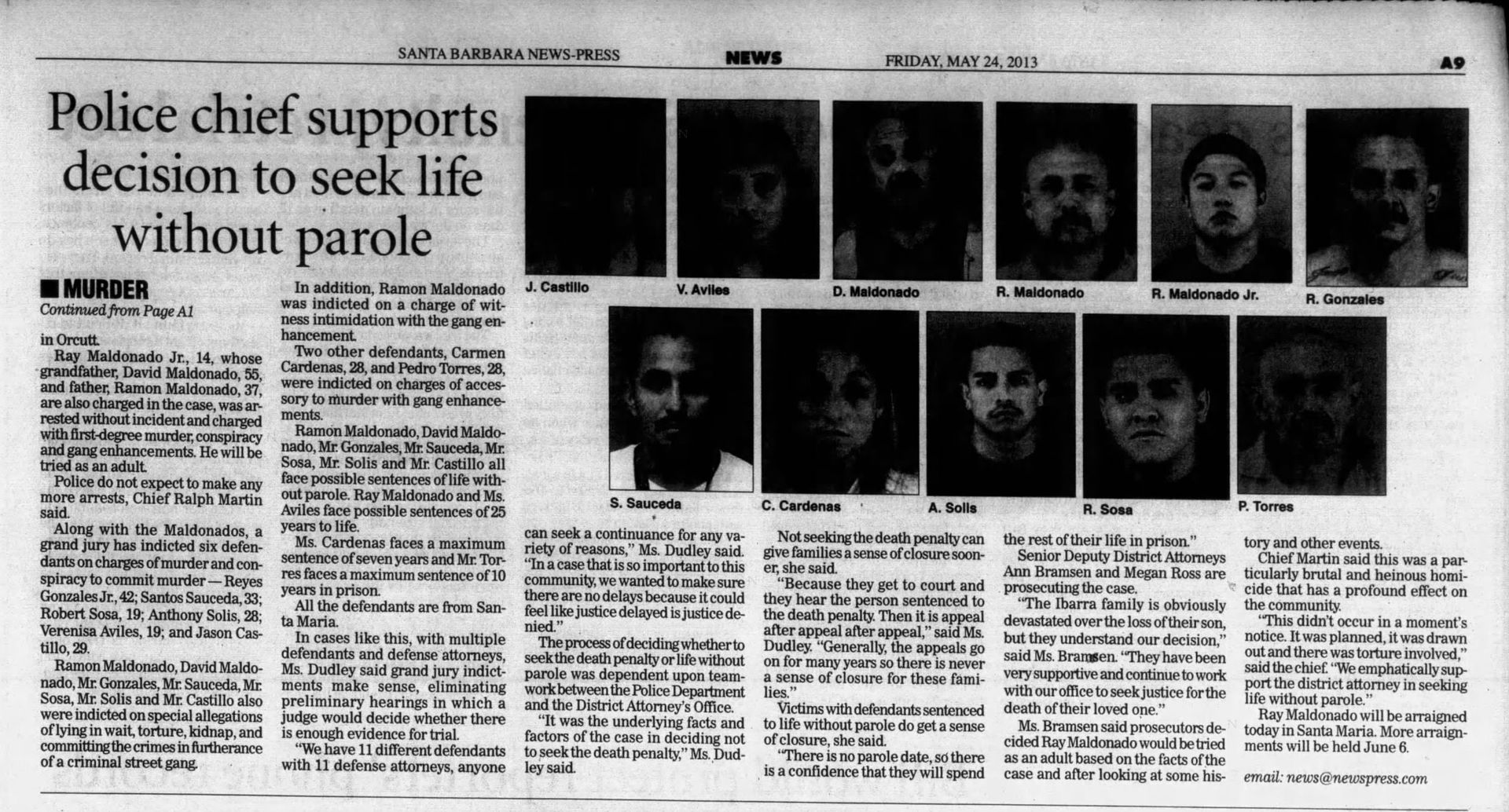 - Outcome: There was a hung jury; the case was then settled for dismissal of the first-degree murder charge in exchange for a no-contest plea to kidnapping with a gang allegation and possession of drugs in the jail with nine years in prison. A.J. is home now.