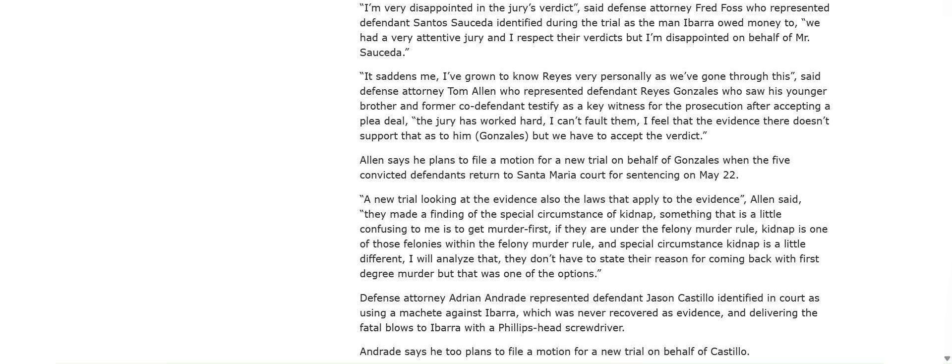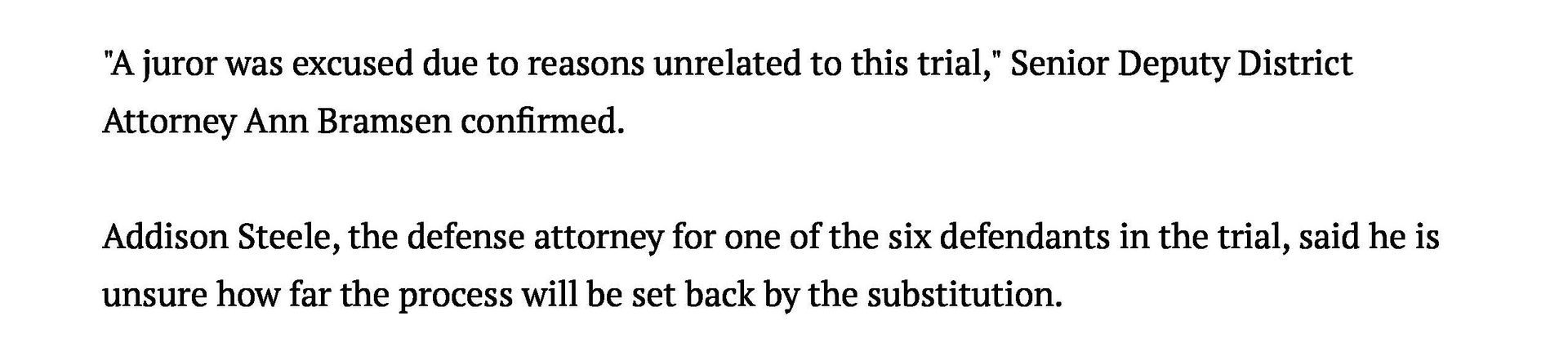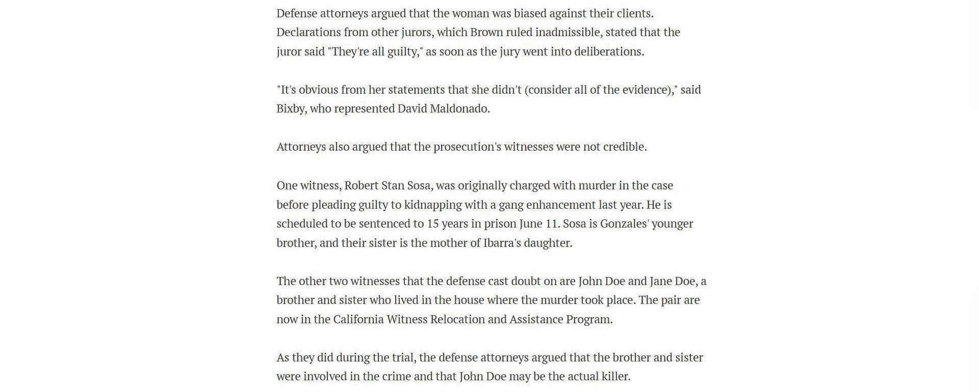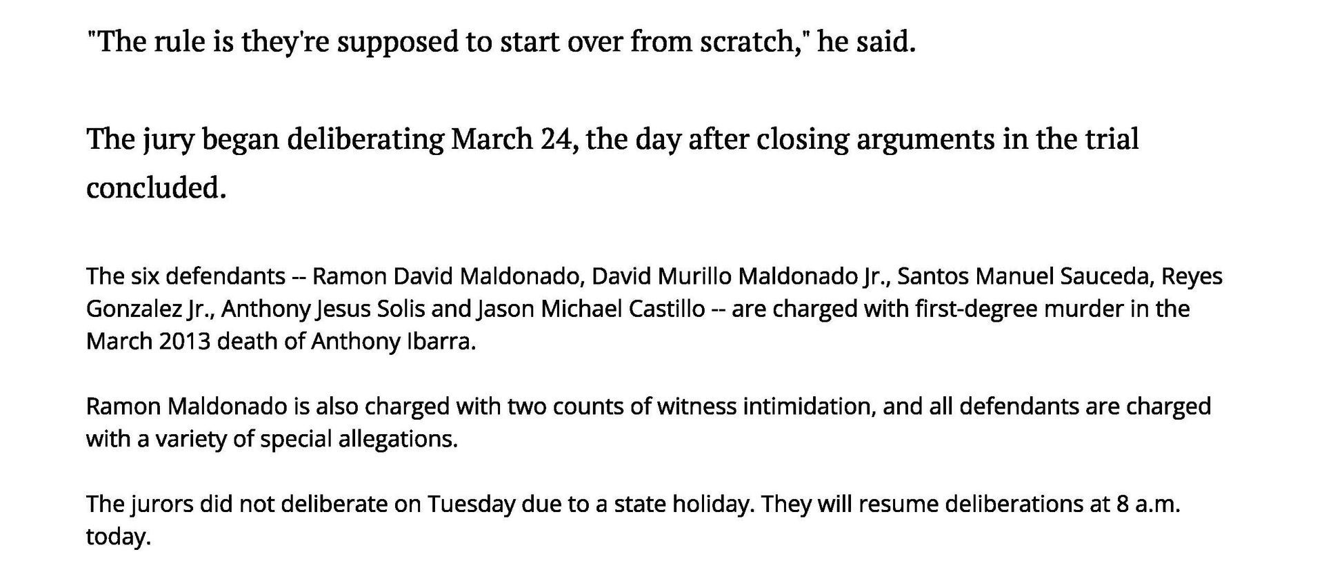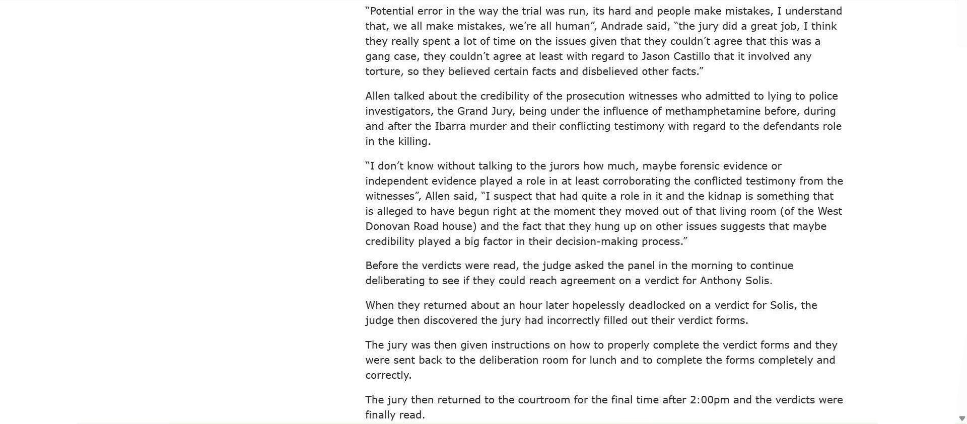 The jury found the other five co-defendants guilty and found at least one special circumstance true, which meant that they all would have mandatory LWOPP sentences. But that wasn't the case for A.J. It was a hung jury on all counts for A.J. It looked like A.J. and Addison were going to have to do the trial again. The risk was getting the same LWOPP sentence that his co-defendants got, but the potential gain was to maybe go home after a second trial. In the end A.J. resolved the case for a plea to kidnapping and nine years in prison, but it had taken so long to get to trial that he had almost half of that already served. A.J. is home now. He's the only one of the six that's home.