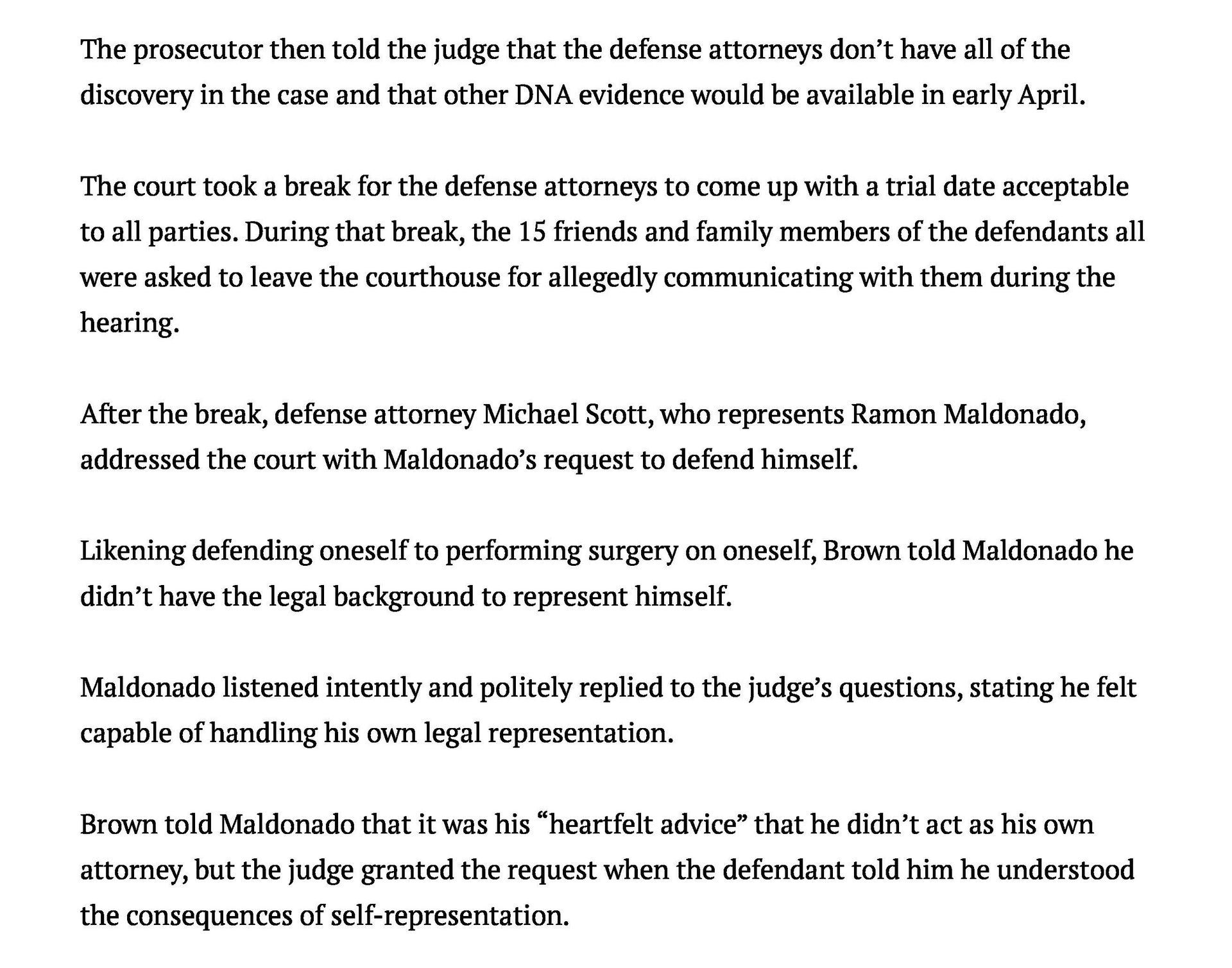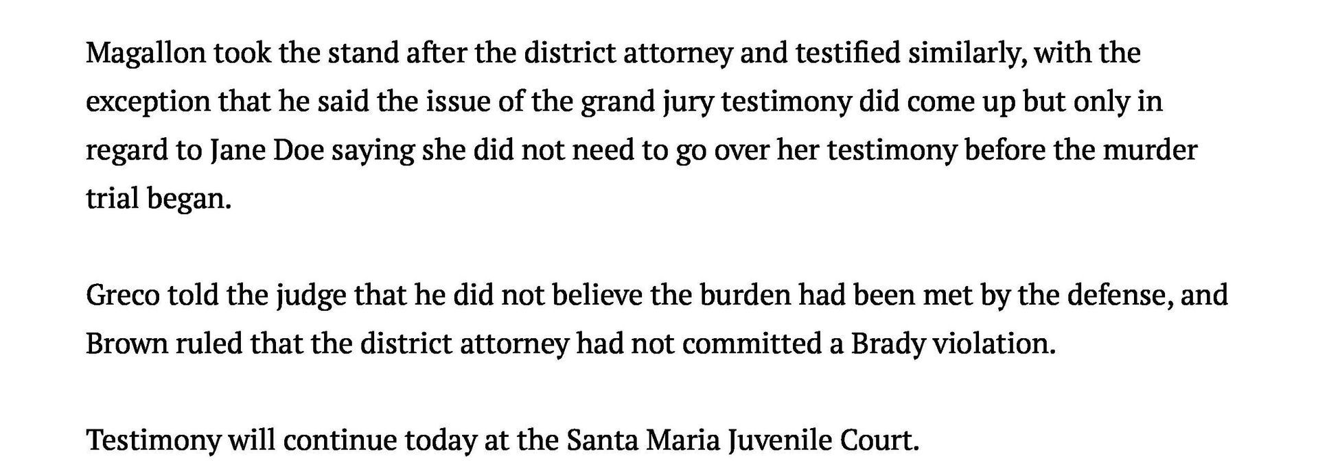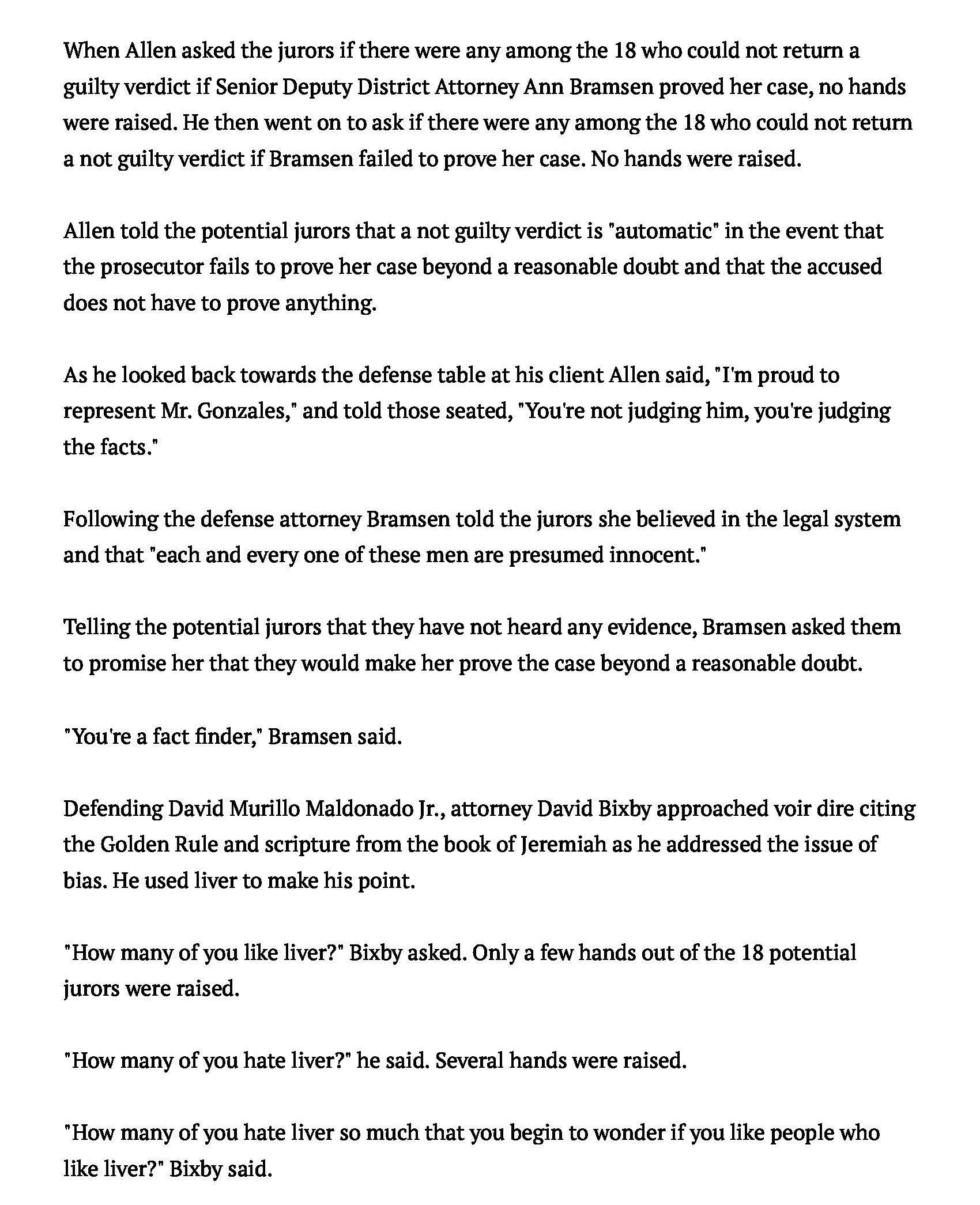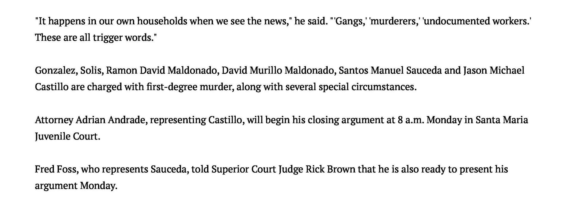 The jury found the other five co-defendants guilty and found at least one special circumstance true, which meant that they all would have mandatory LWOPP sentences. But that wasn't the case for A.J. It was a hung jury on all counts for A.J. It looked like A.J. and Addison were going to have to do the trial again. The risk was getting the same LWOPP sentence that his co-defendants got, but the potential gain was to maybe go home after a second trial. In the end A.J. resolved the case for a plea to kidnapping and nine years in prison, but it had taken so long to get to trial that he had almost half of that already served. A.J. is home now. He's the only one of the six that's home.