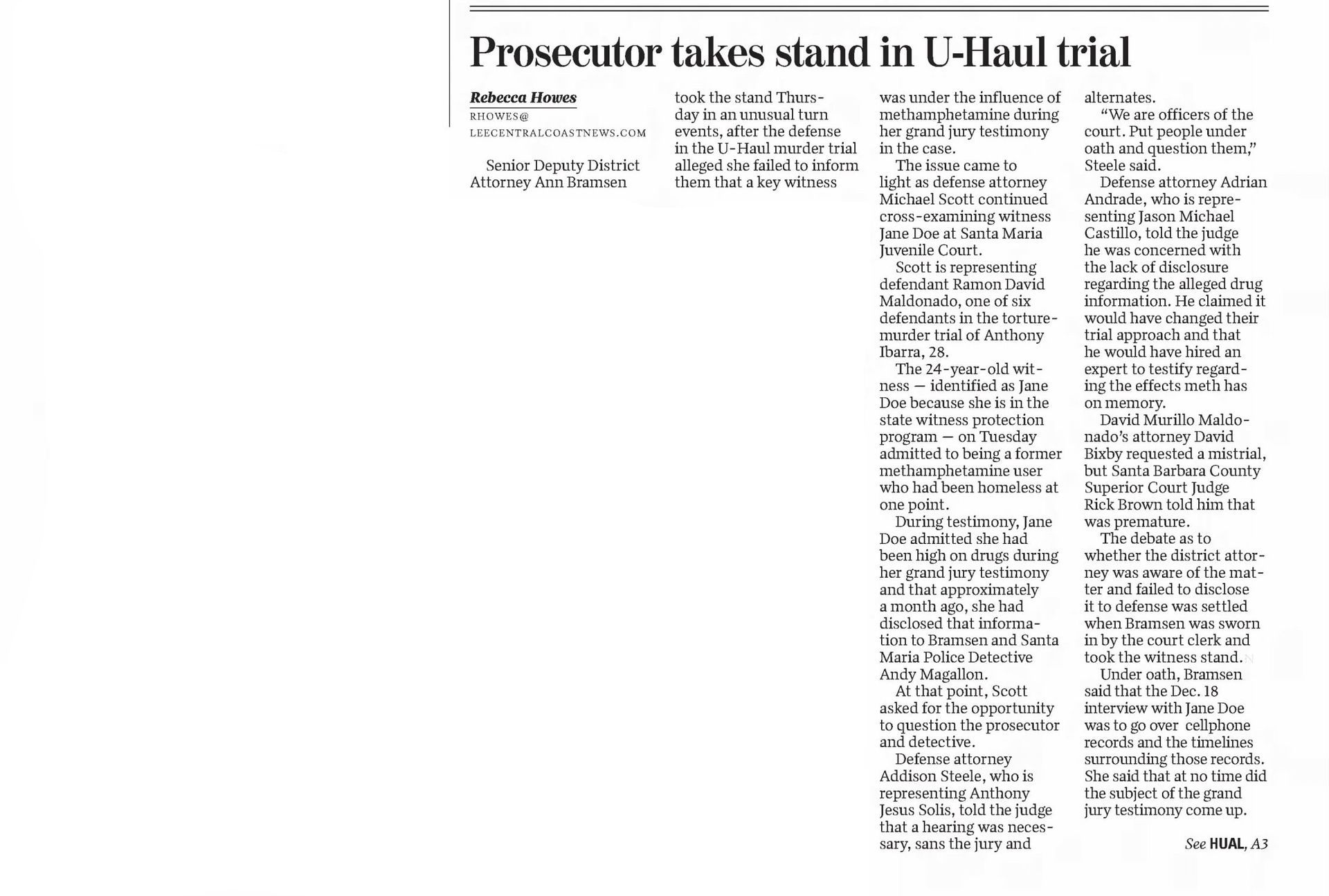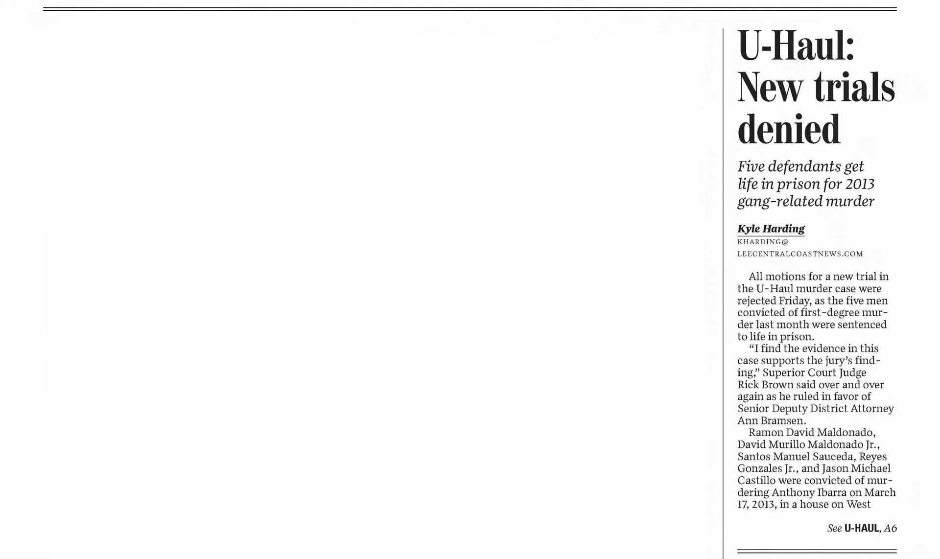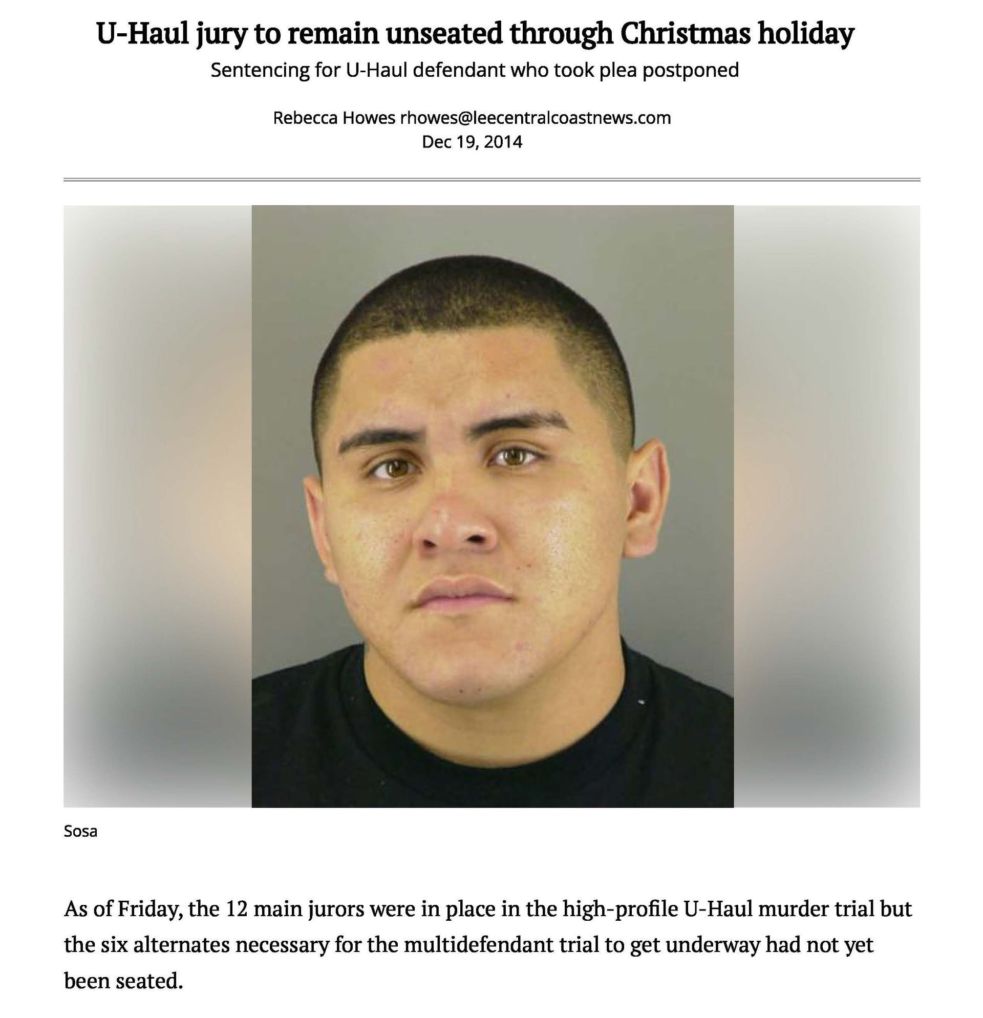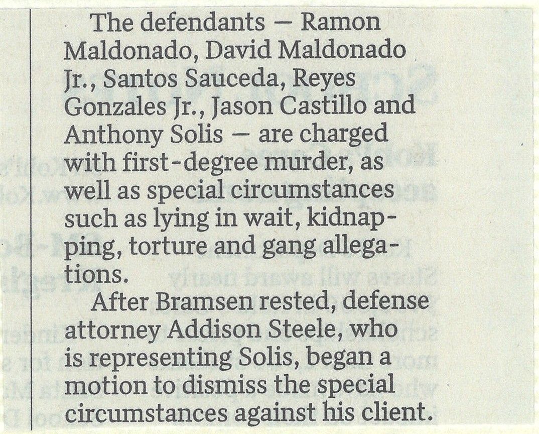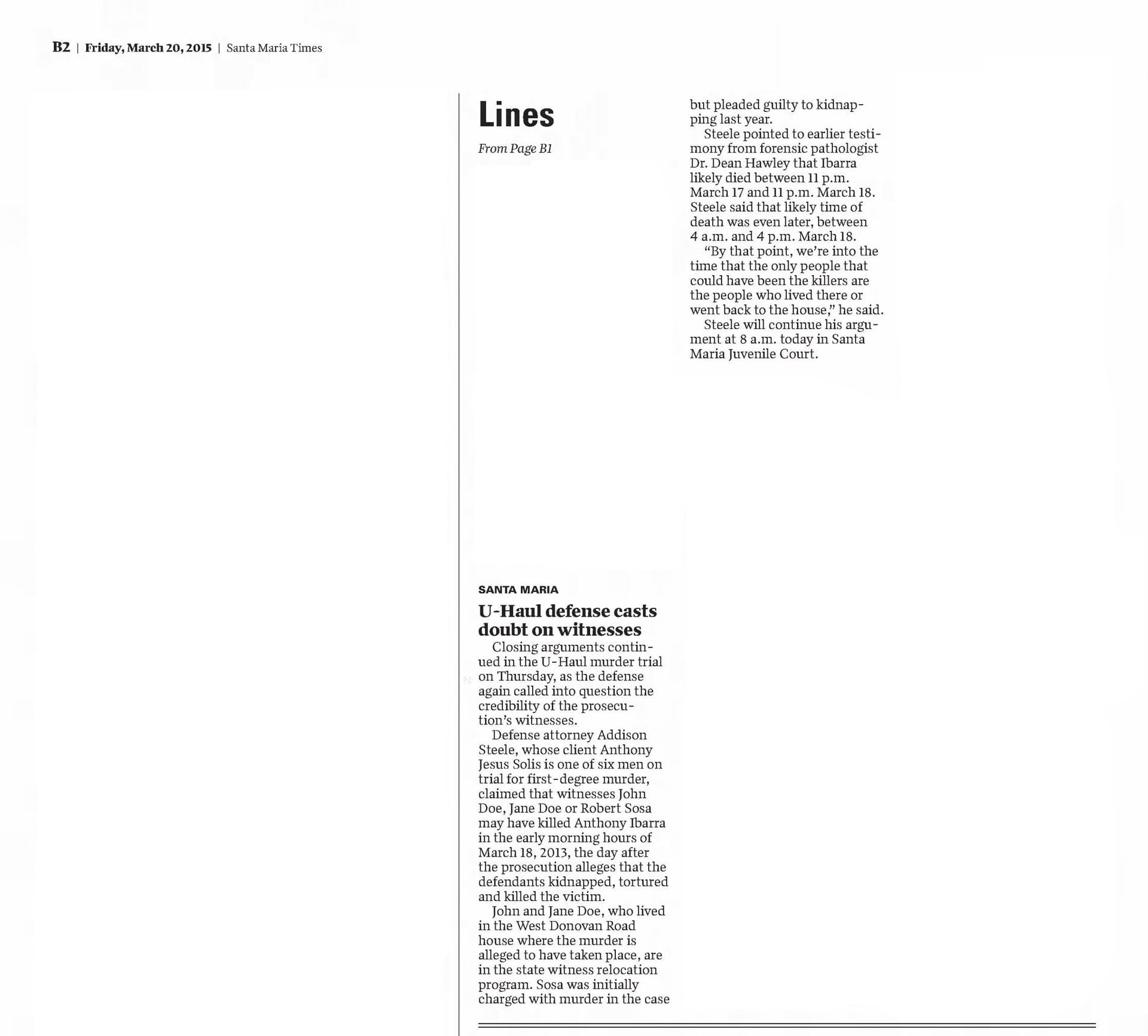 This was the "U-Haul Murder Trial," as the press called it, Addison's client was the only one of the six co-defendants that has gone home, The other five co-defendants were convicted of charges that resulted in life without the possibility of Parole (LWOPP) There was a hung jury on Addison's client's portion on the case, the case then resolved for a kidnapping charge