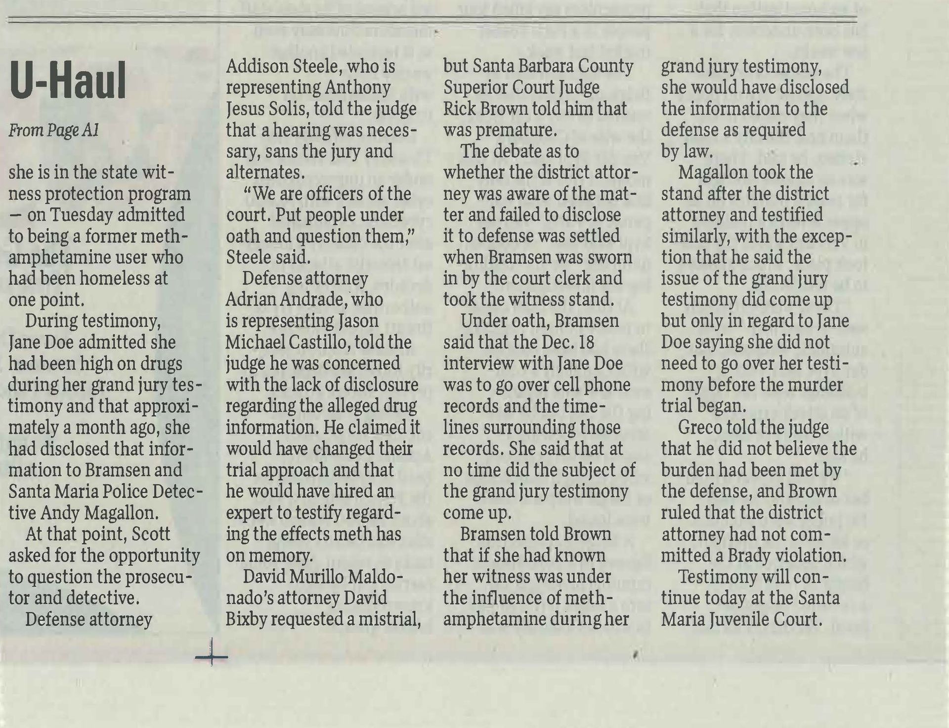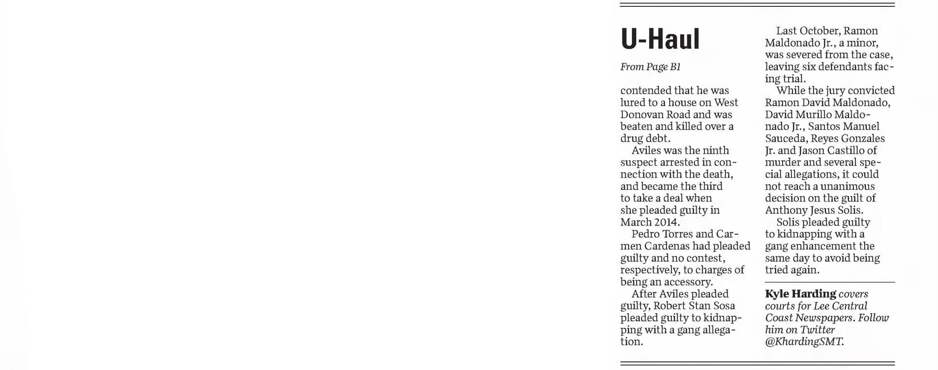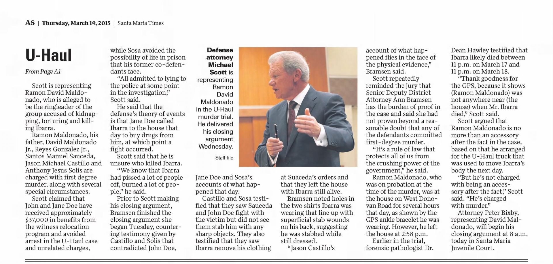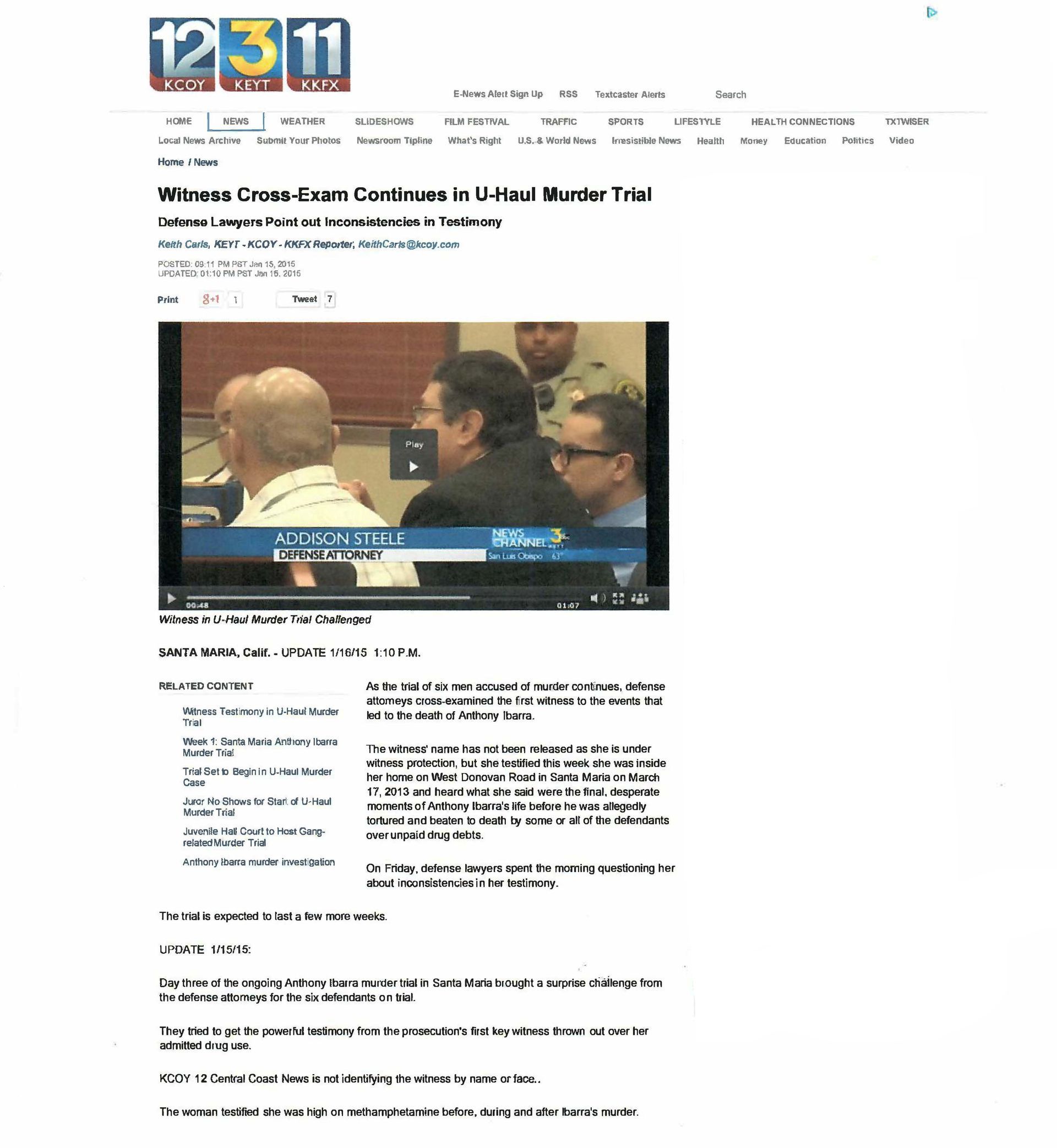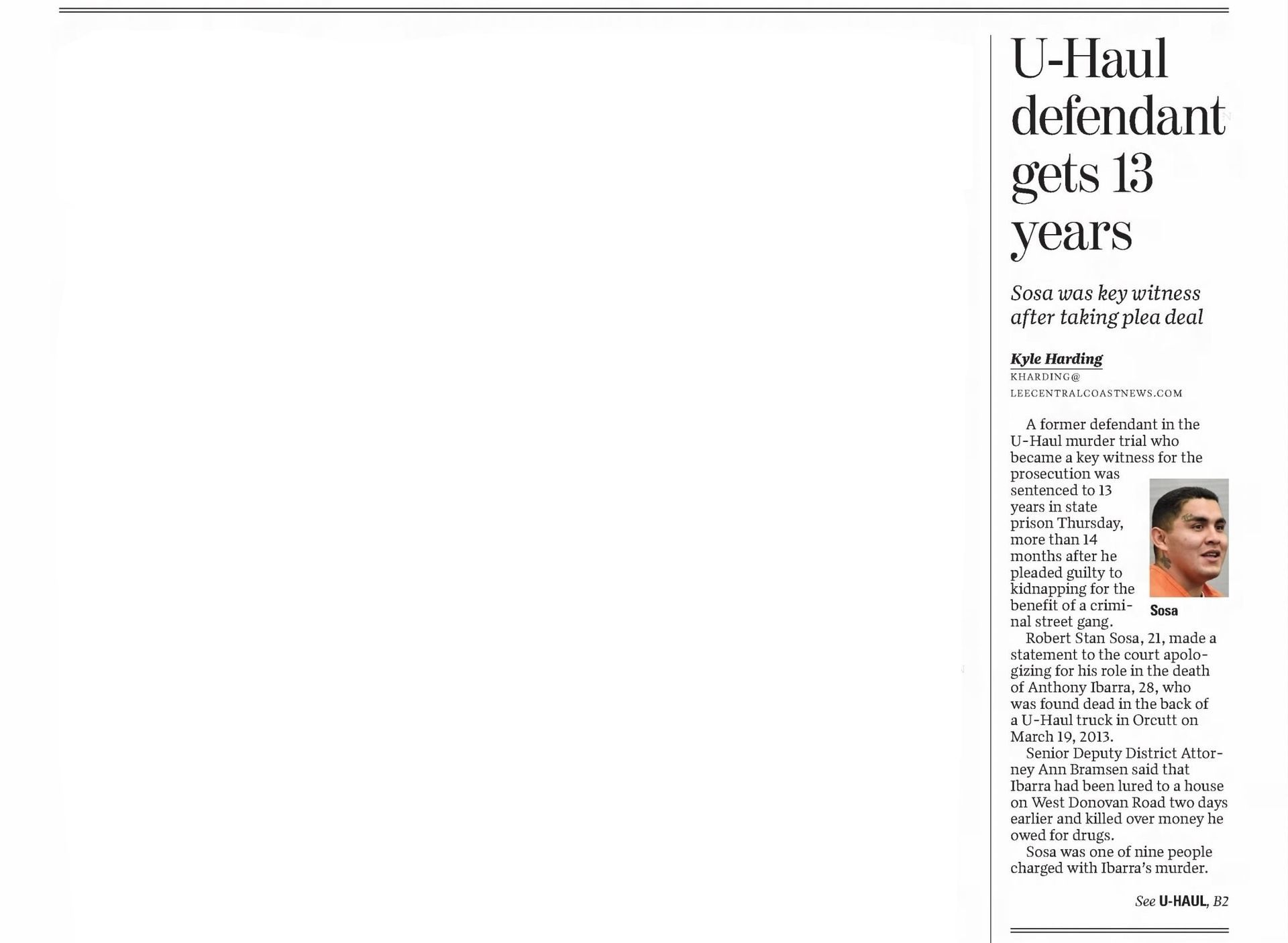 This was the "U-Haul Murder Trial," as the press called it, Addison's client was the only one of the six co-defendants that has gone home, The other five co-defendants were convicted of charges that resulted in life without the possibility of Parole (LWOPP) There was a hung jury on Addison's client's portion on the case, the case then resolved for a kidnapping charge