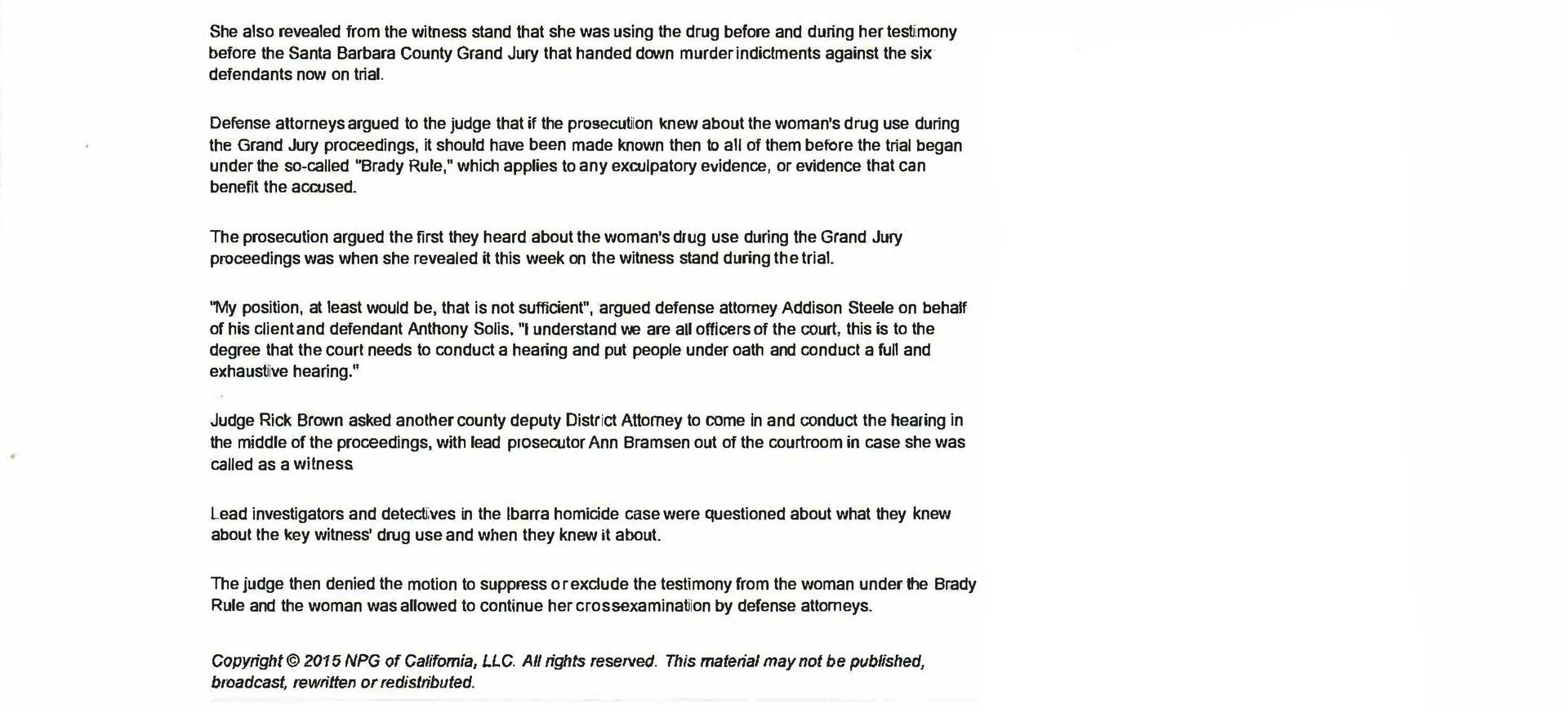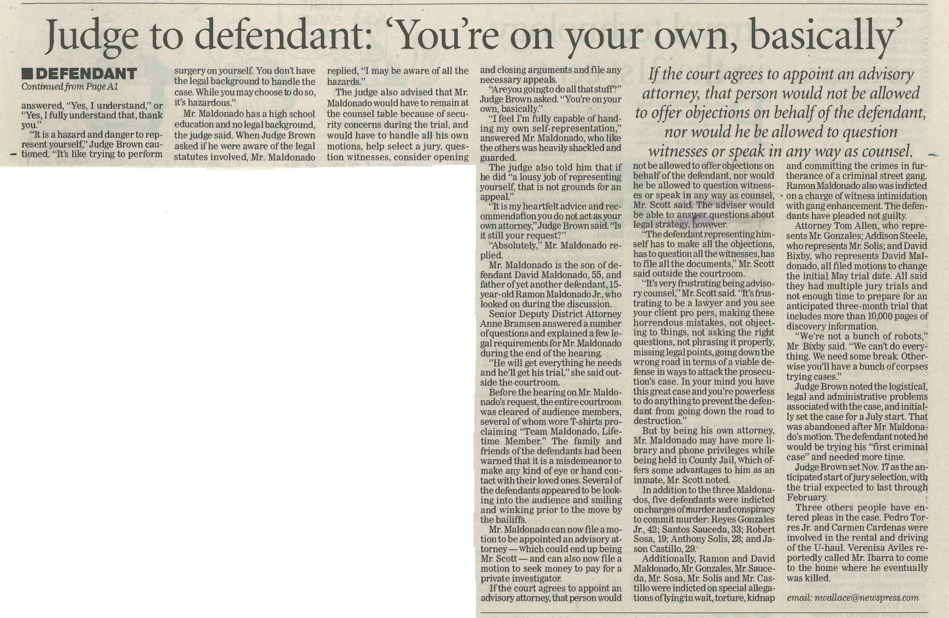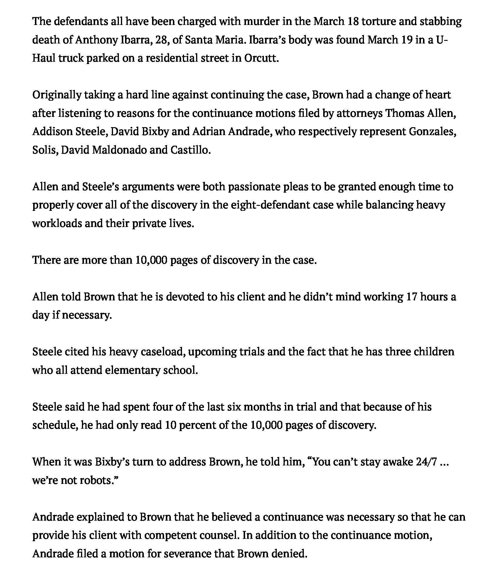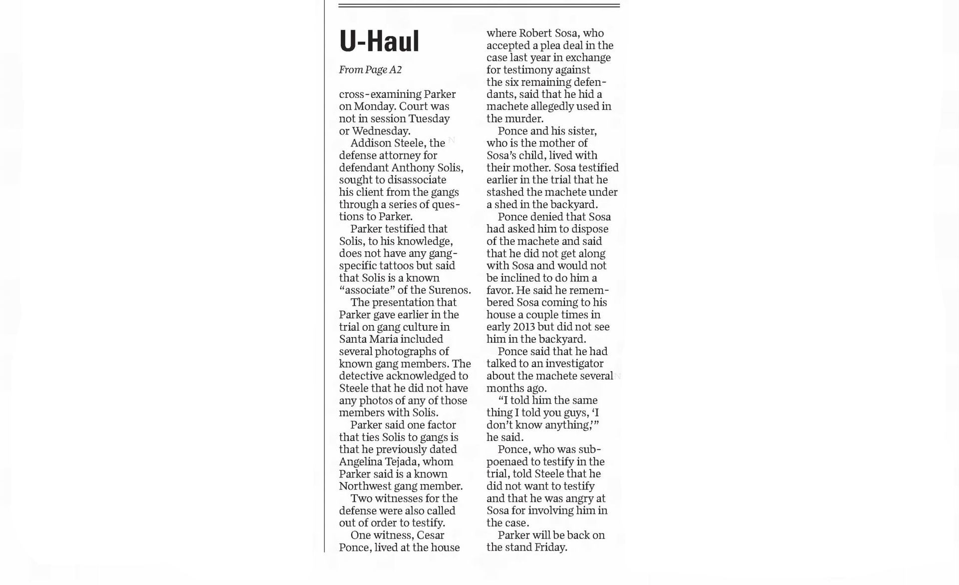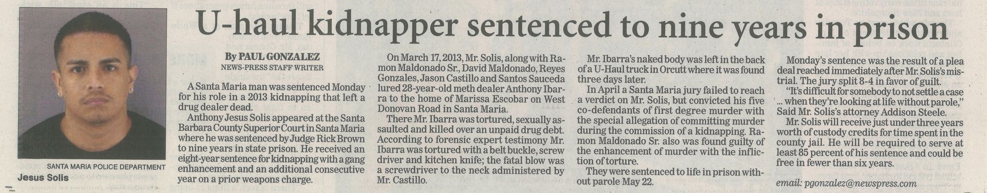 This was the "U-Haul Murder Trial," as the press called it, Addison's client was the only one of the six co-defendants that has gone home, The other five co-defendants were convicted of charges that resulted in life without the possibility of Parole (LWOPP) There was a hung jury on Addison's client's portion on the case, the case then resolved for a kidnapping charge
