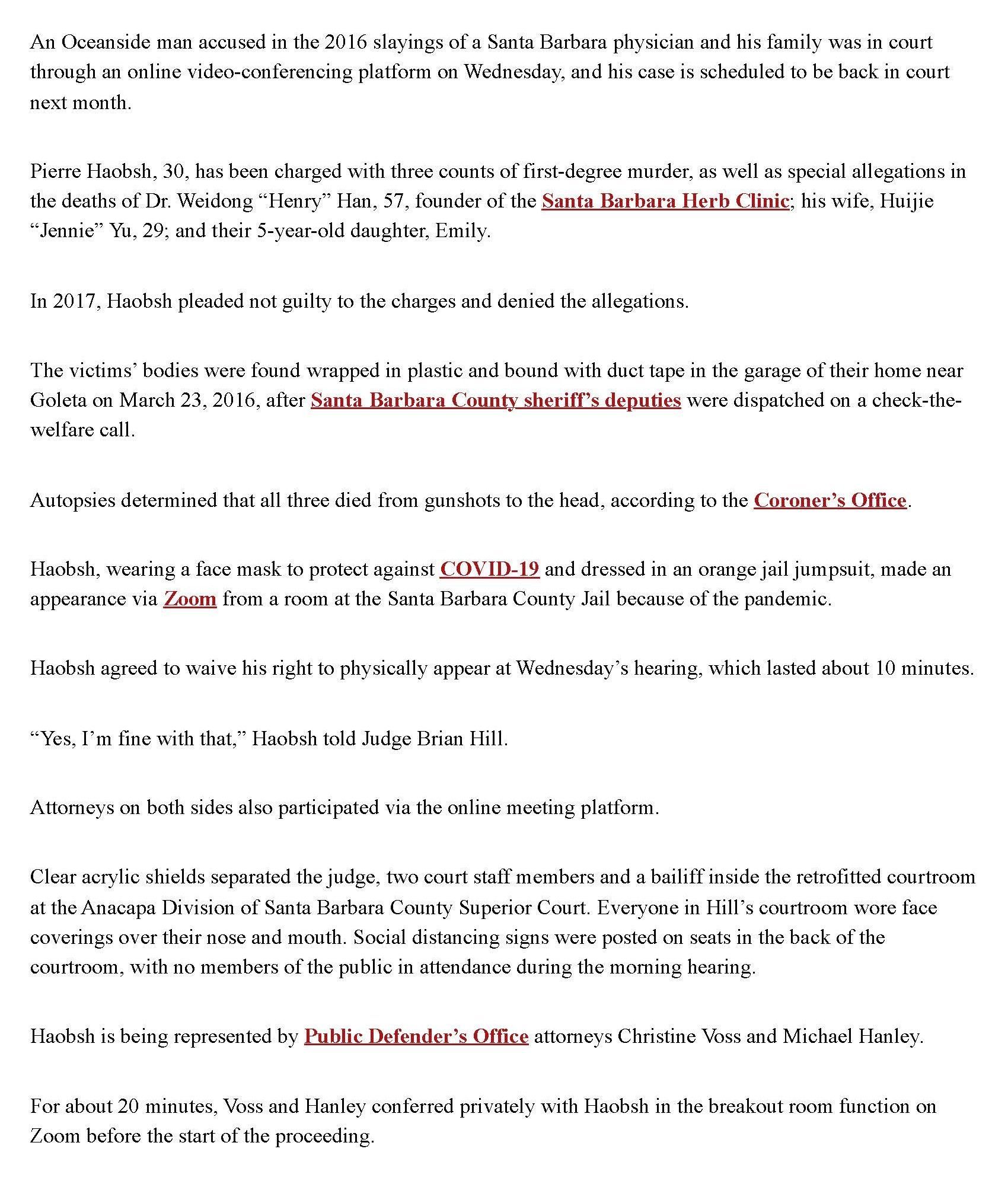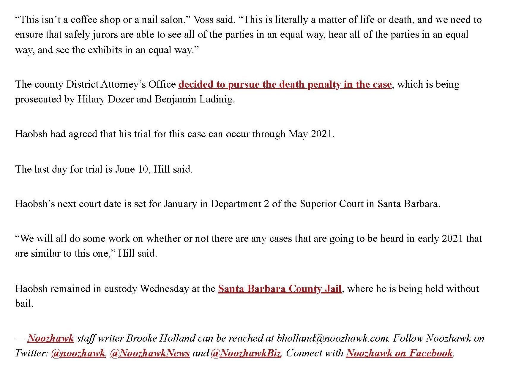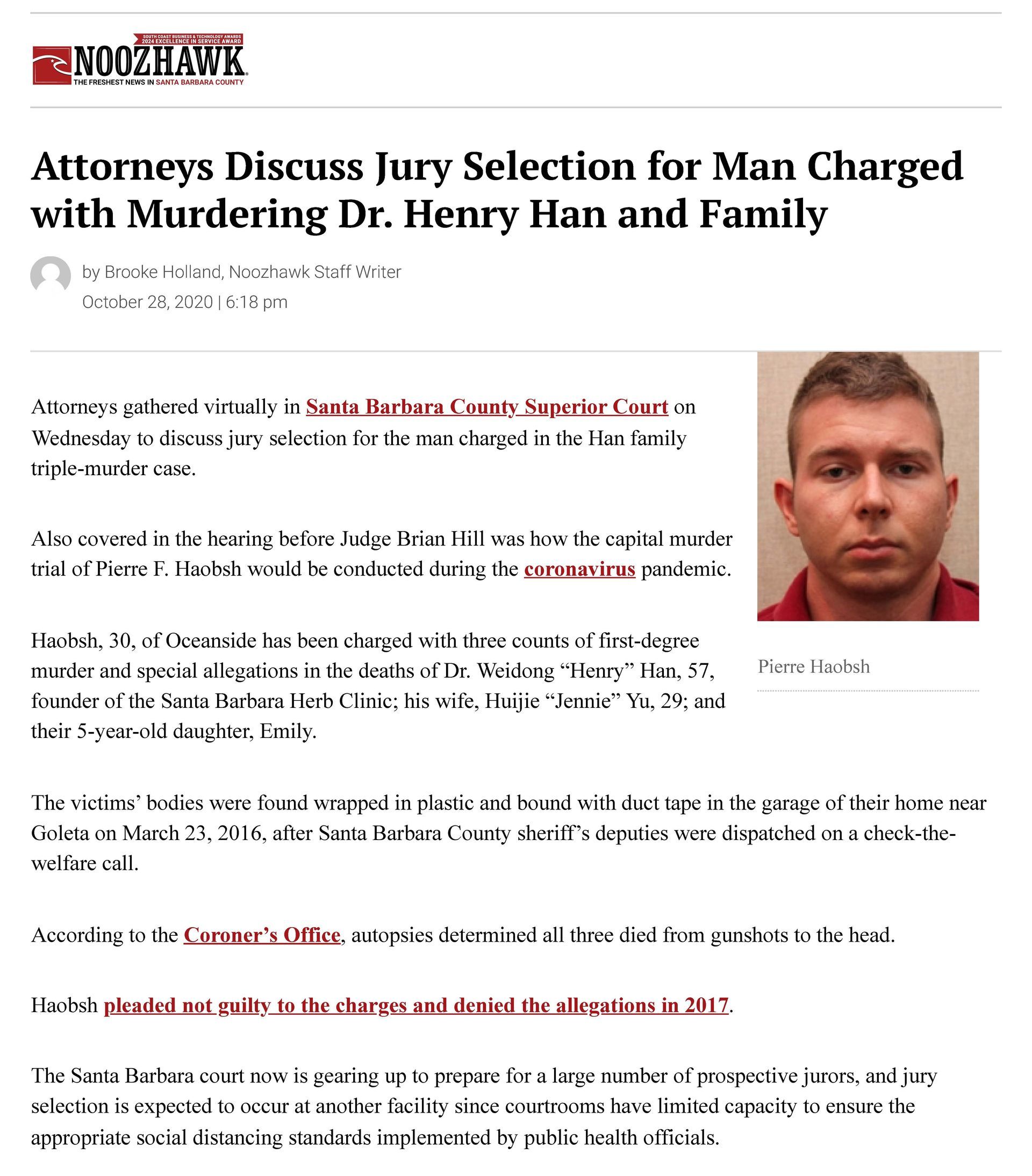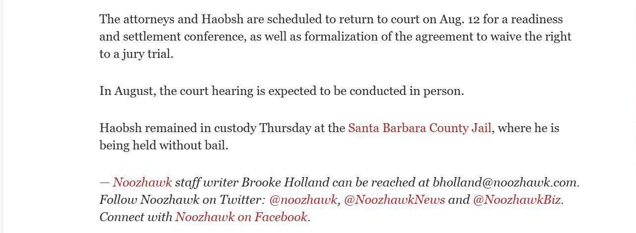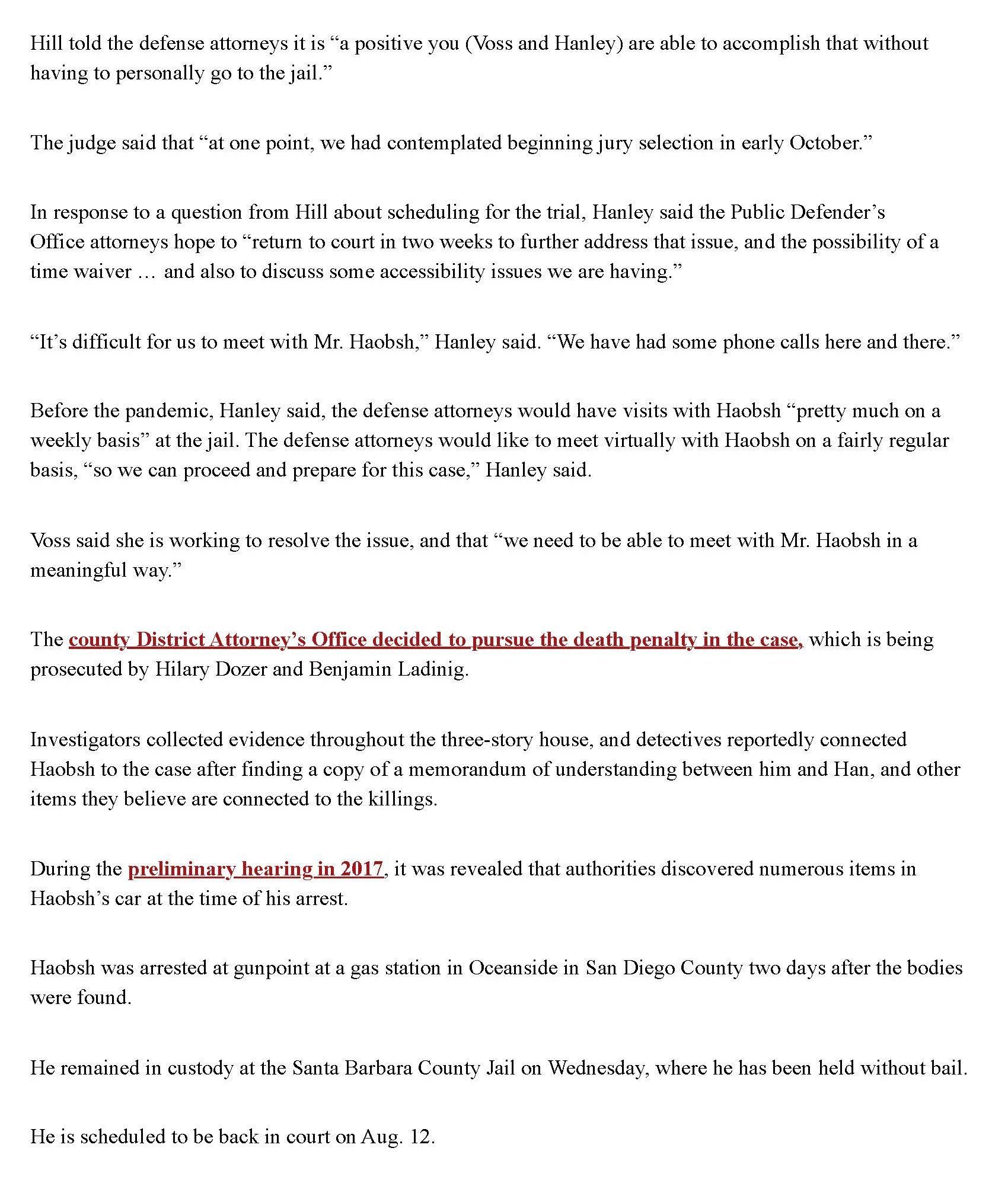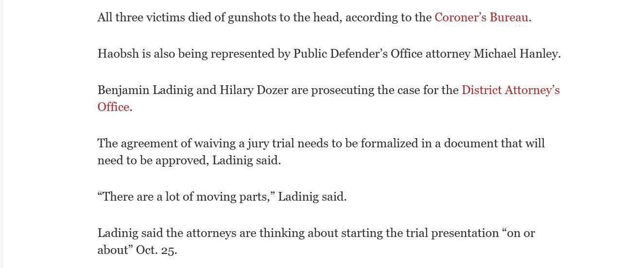 This is the press from Christine won the Haobsh case by agreeing to have a court trial (a trial just with the judge), instead of a jury trial, in exchange for the removal of the death penalty from the case. Removing the risk of a death sentence is an overwhelming victory for the defense.