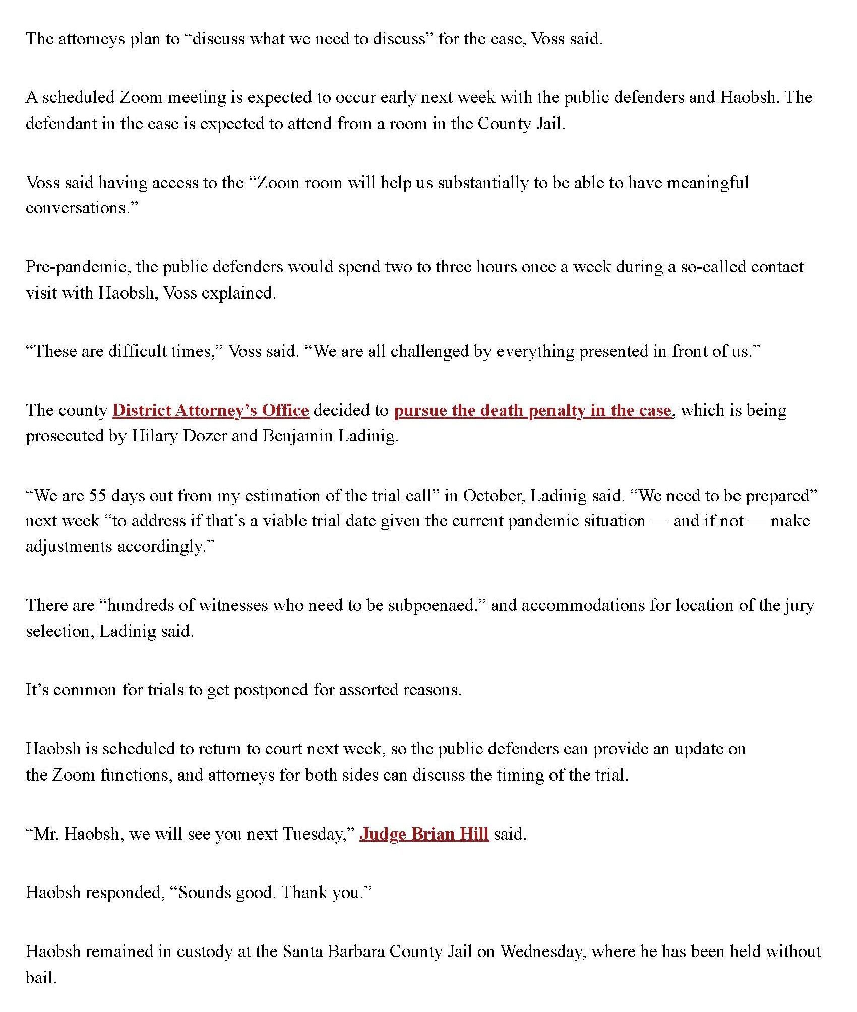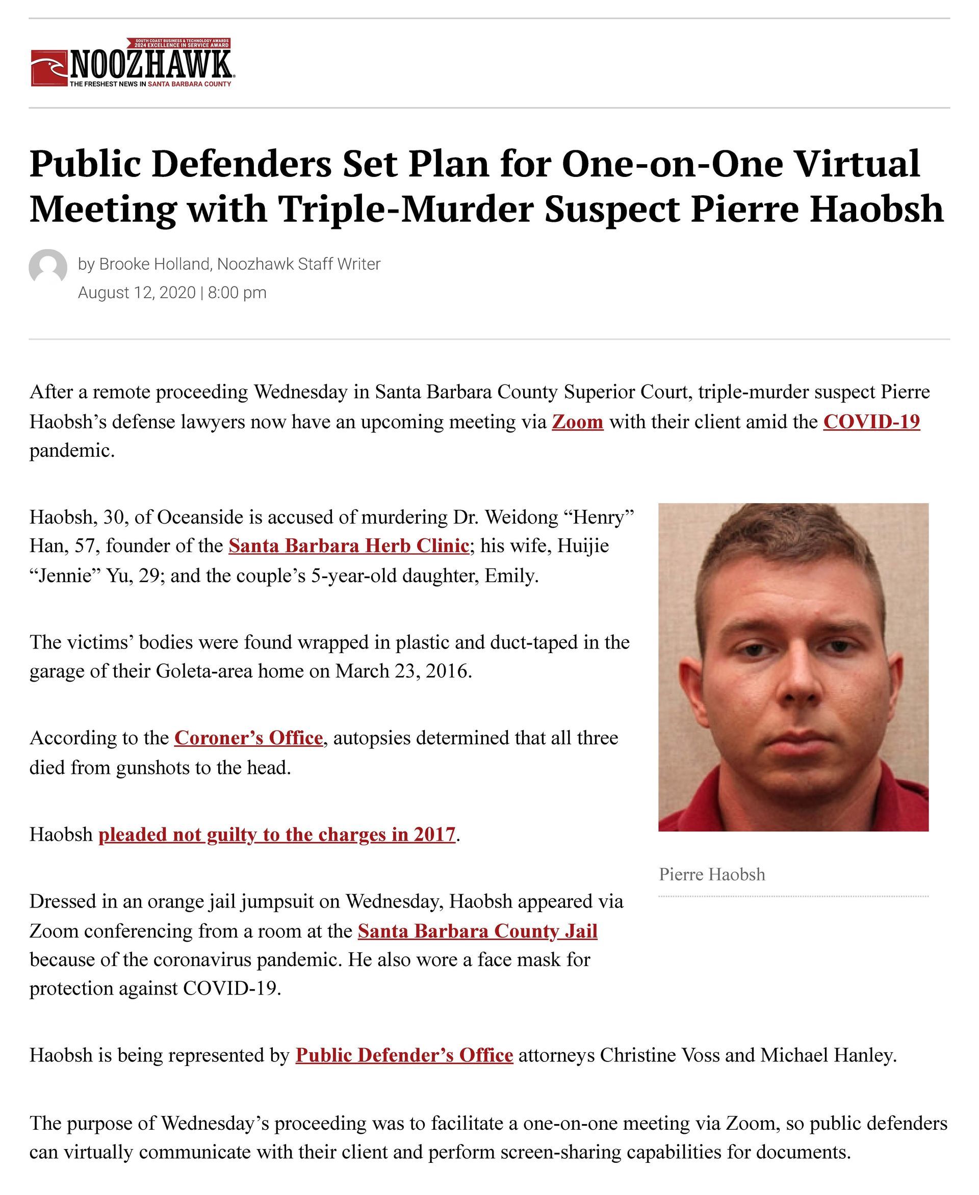 This is the press from when Christine won the Haobsh case. The trial hadn't even started, but the first and foremost goal was to save Pierre from the death penalty. Defense attorneys consider any capital murder (a case in which the district attorney is seeking the death penalty) in which the client is saved from Death Row an absolute victory. Once an agreement was reached where both the prosecution and the defense would allow a court trial (a trial with the judge instead of a jury) in exchange for the prosecution withdrawing its intention to seek the death penalty the case had been won by the defense.