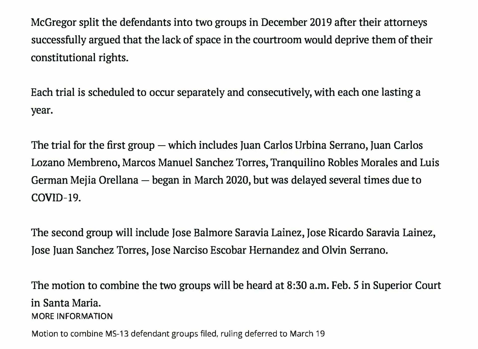 - Outcome: Santiago was found not guilty of all charges other than a lesser related misdemeanor offense of gang activity.