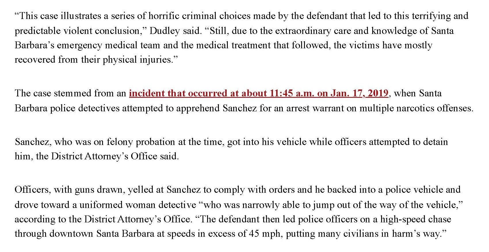 The San Luis Obispo County District Attorney puts out sensationalized press releases after securing convictions. In this case the press release implied that Addison's client and one of his co-defendants had been convicted as charged, when in fact the trial outcome was a tremendous victory for Addison's client and one of his co-defendants. They had both been saved from the possibility of spending the rest of their lives in prison. Addison's client, even if given the maximum sentence for the less serious charges for which he was convicted, is now only subject to a few more years of incarceration, which is of course a far cry from the possibility of spending the rest of his life in prison. A legal intern at Steele & Voss created this more truthful announcement.